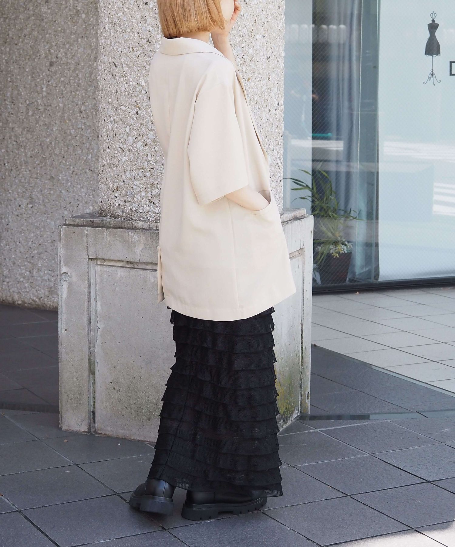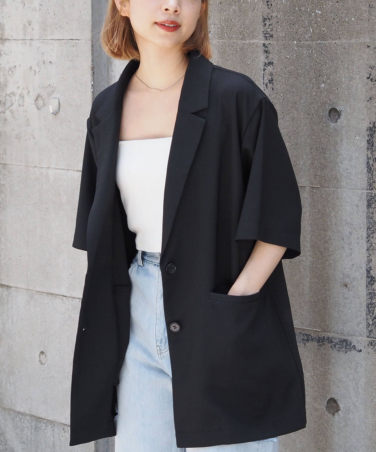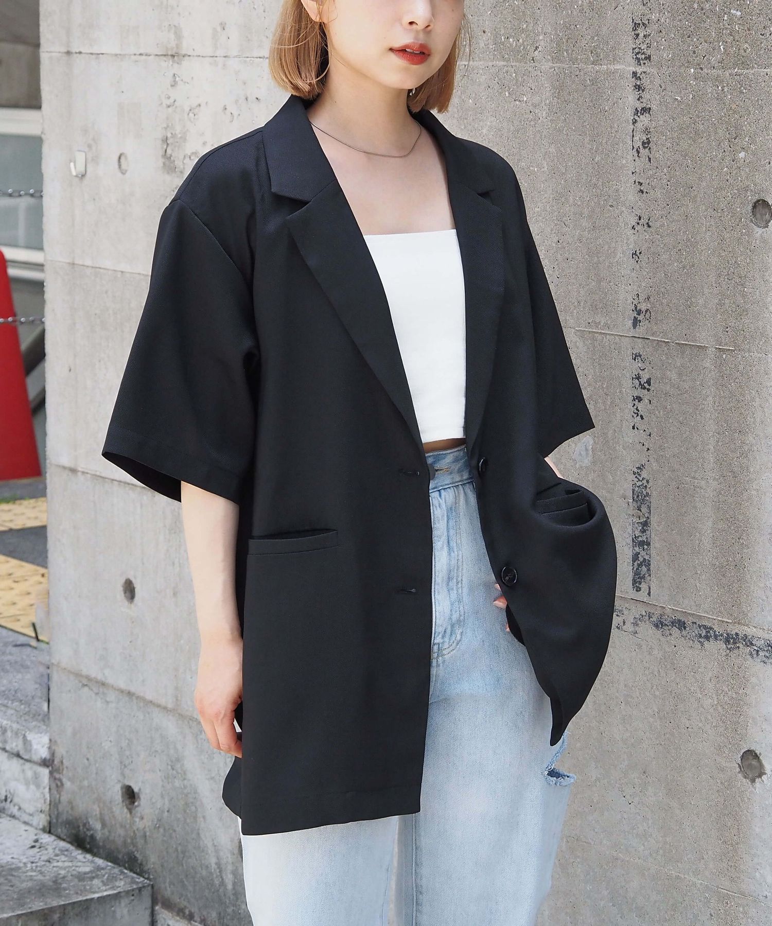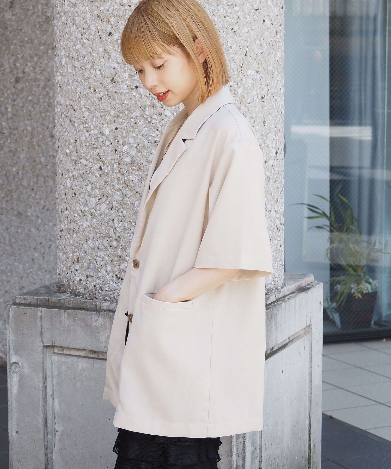 ・シャツ感覚でさらっと羽織れる半袖ジャケットは、オンオフ問わず着回しが可能◎