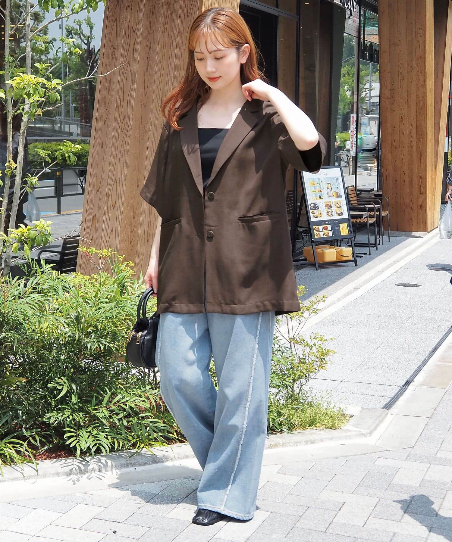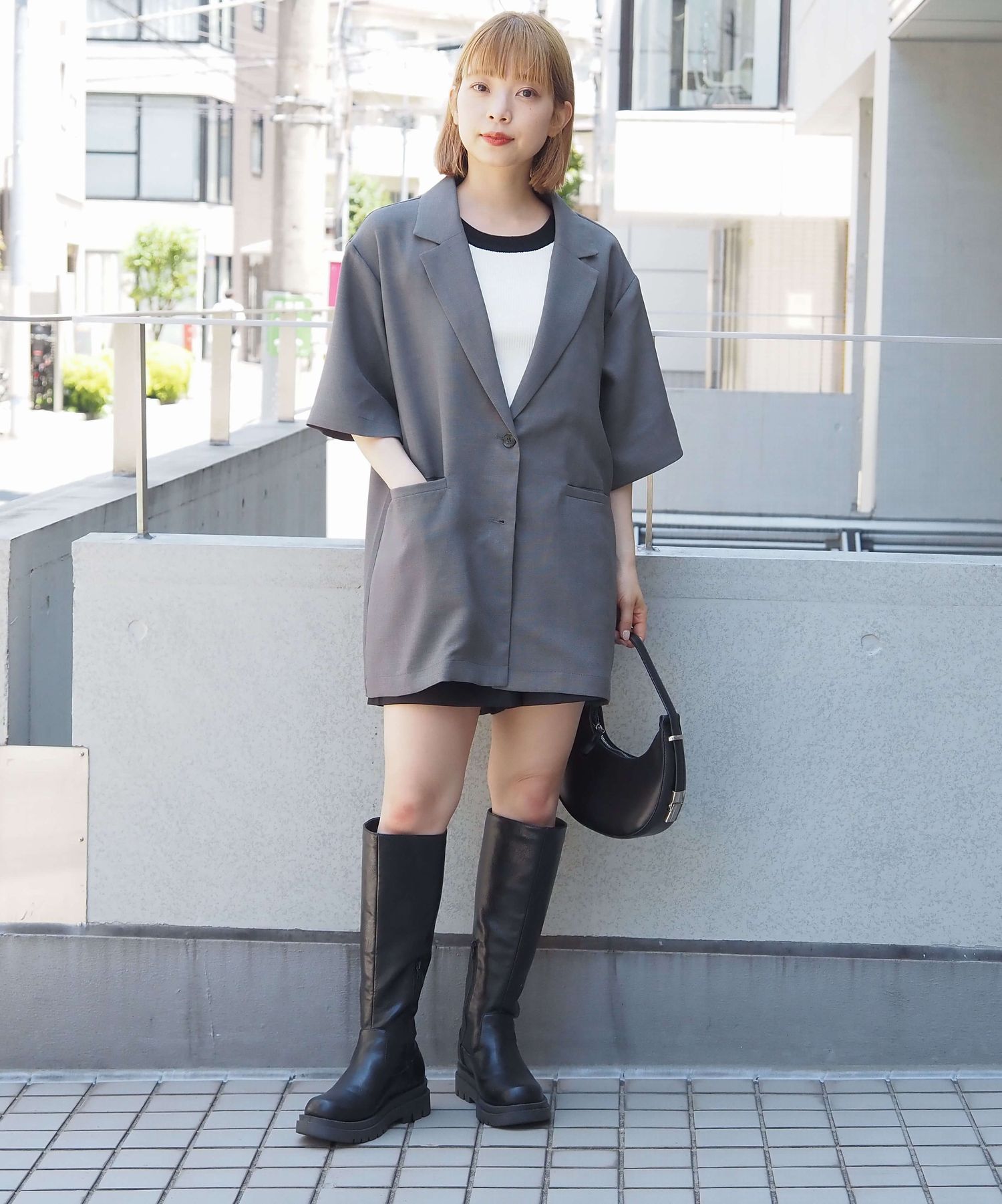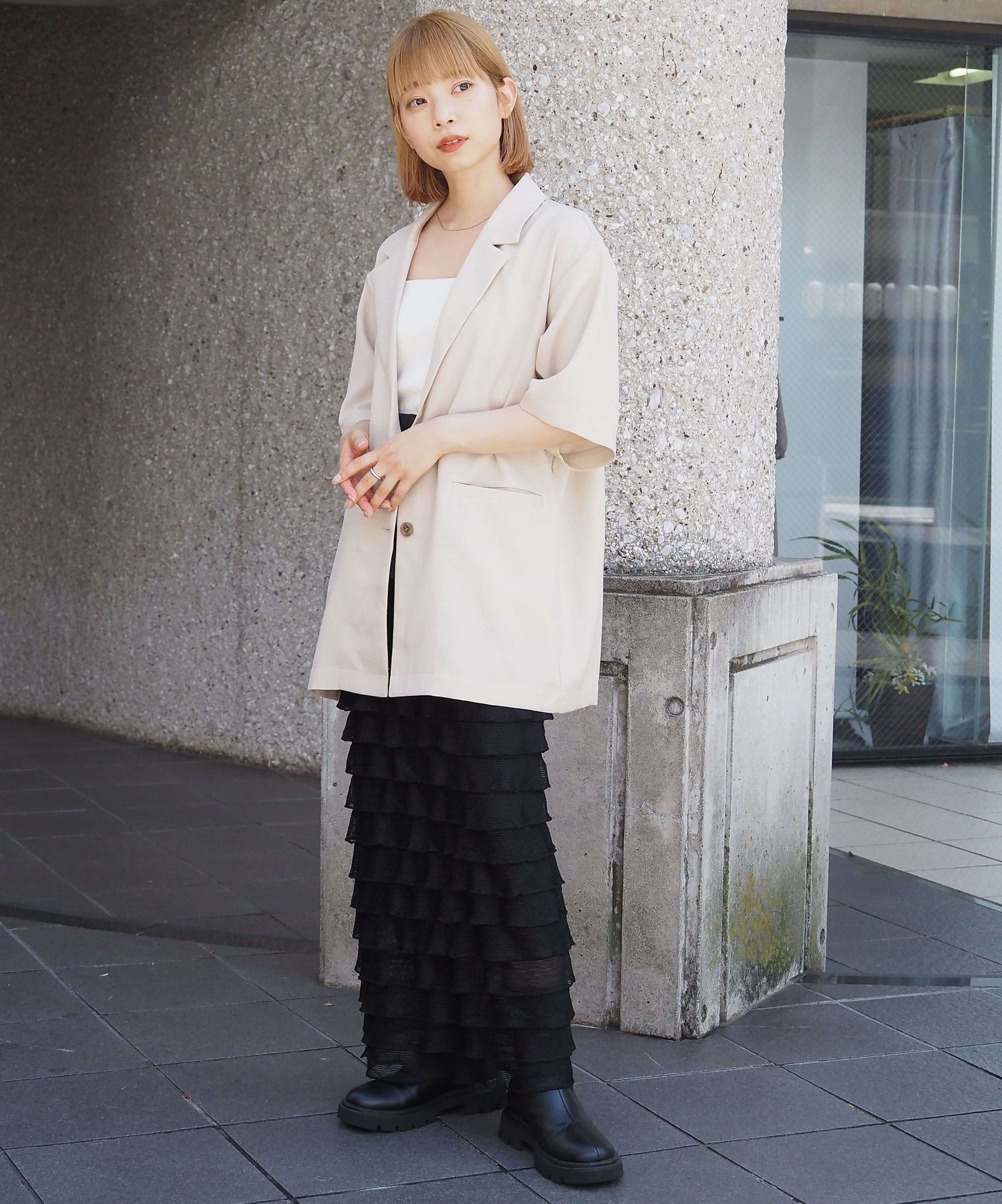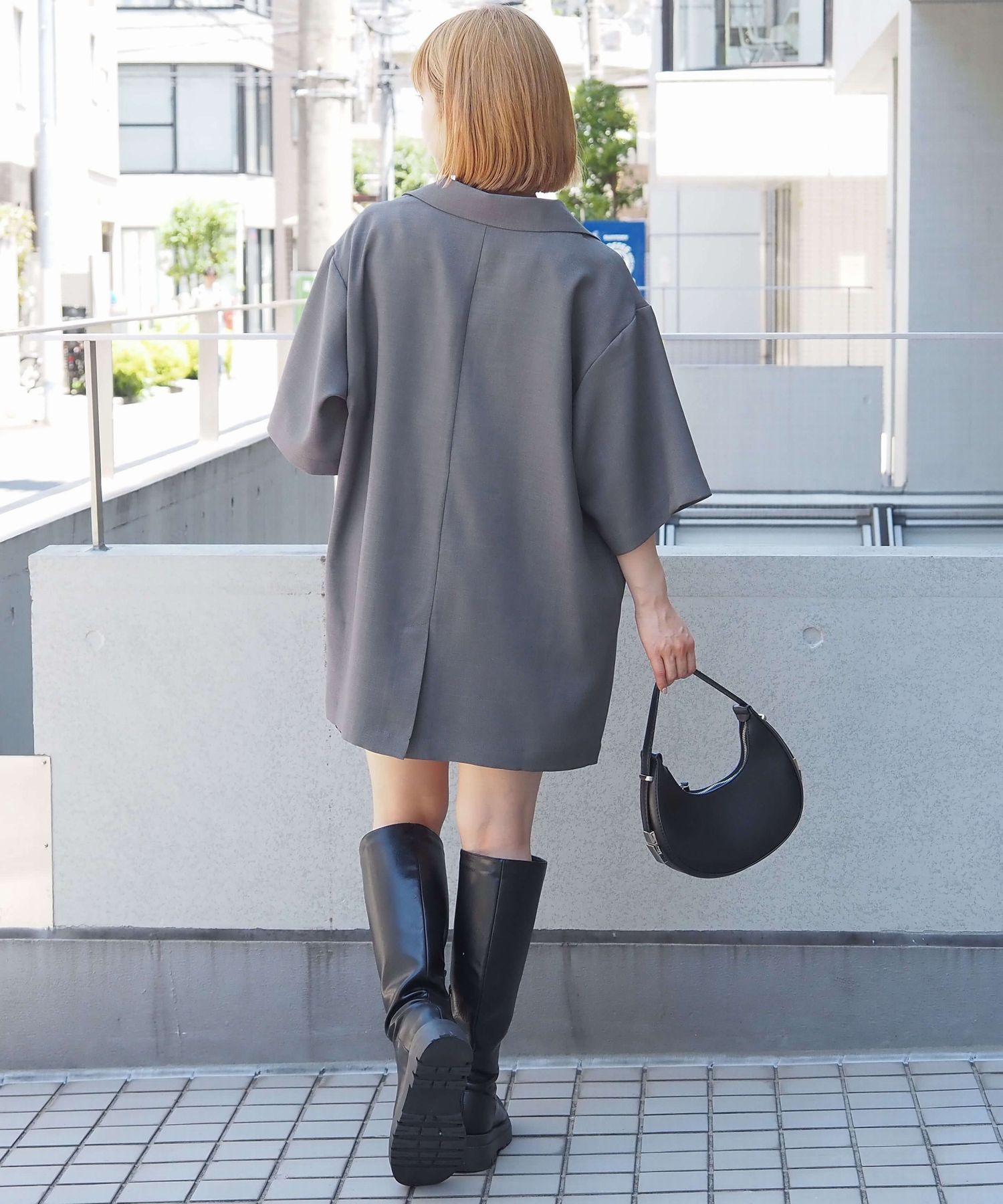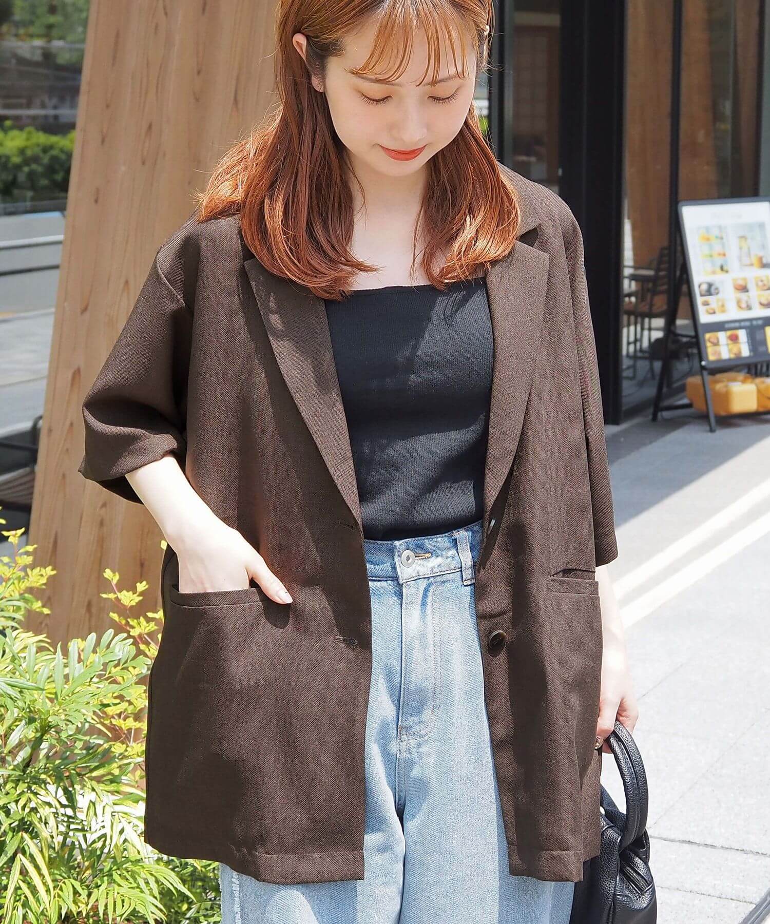 ・上品なテーラードデザインをビッグシルエットで仕上げたので、こなれ感のある大人カジュアルが楽しめます。