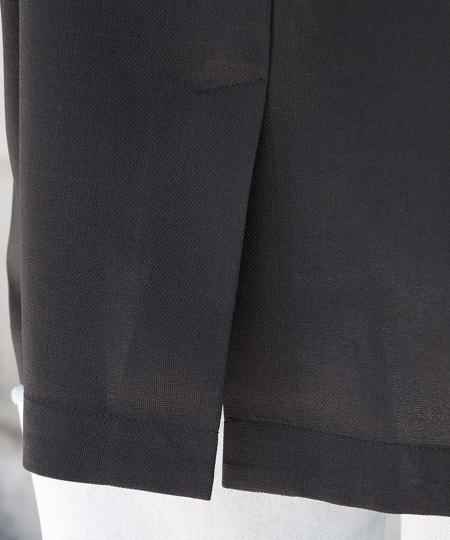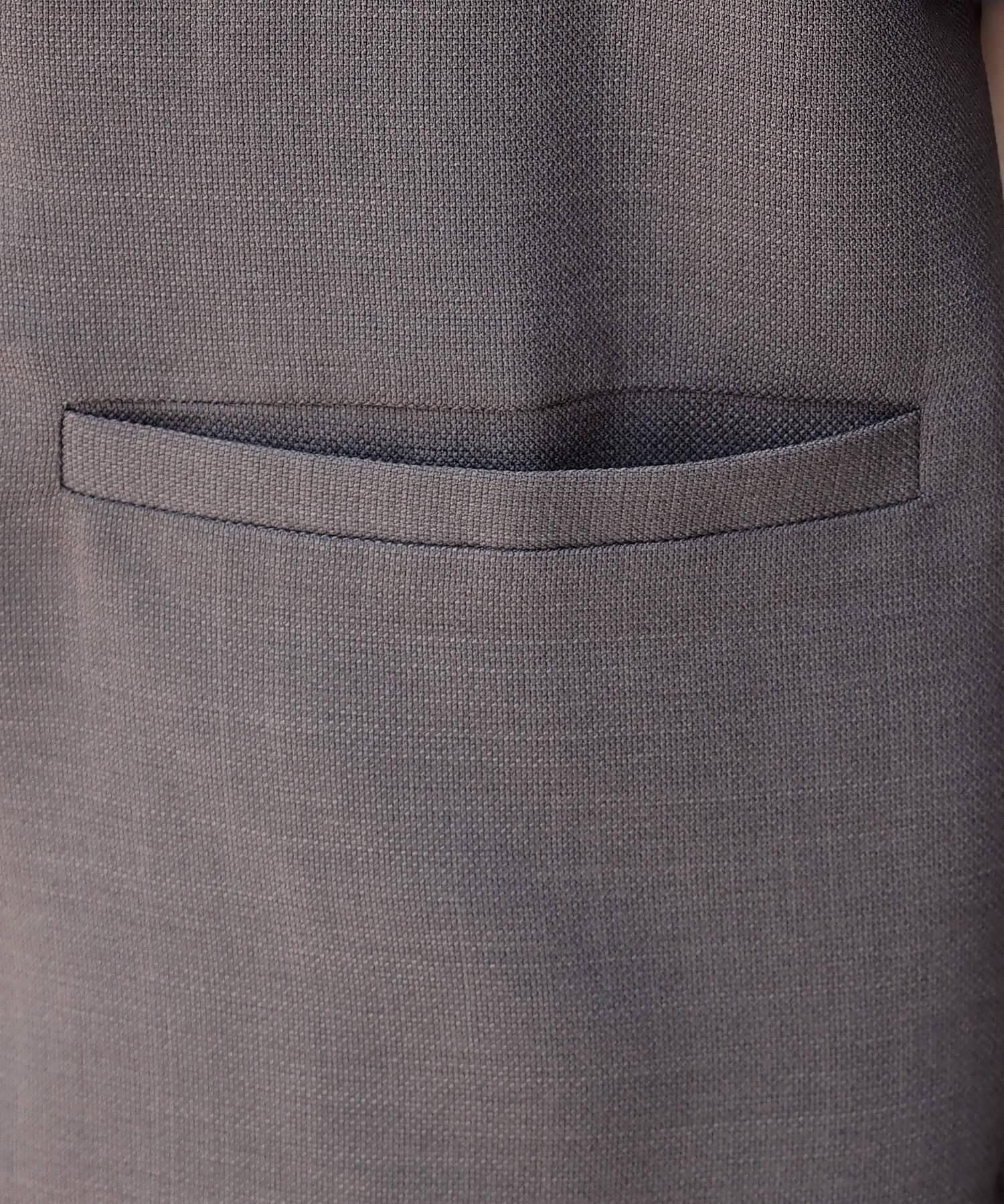 ・フラップのないポケットや裾のバックスリットなど、すっきり見えするディテールにも注目。