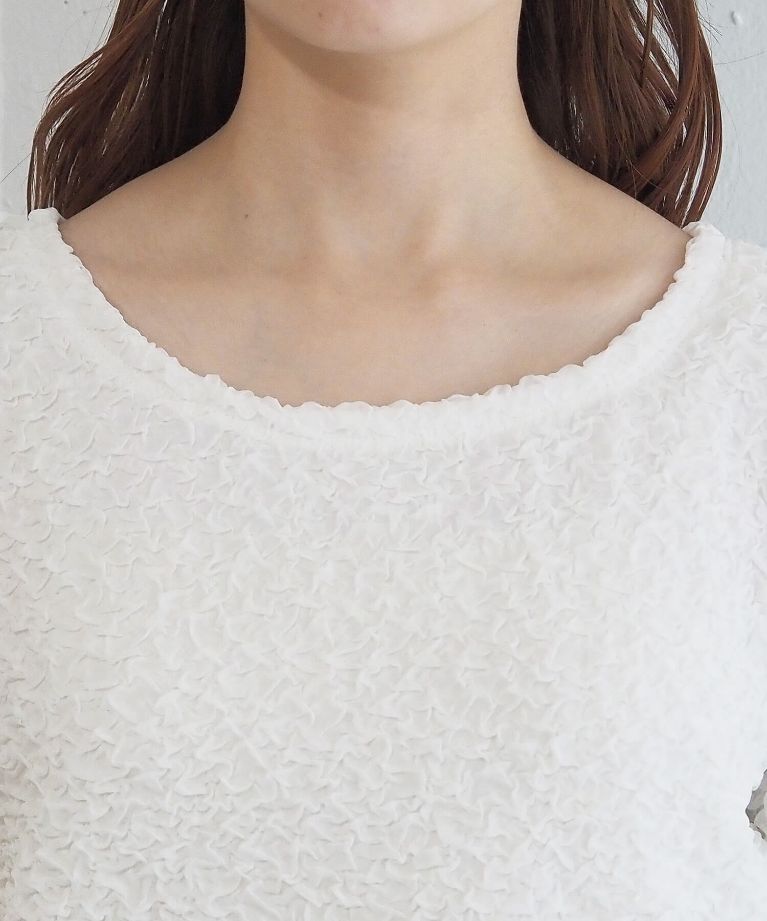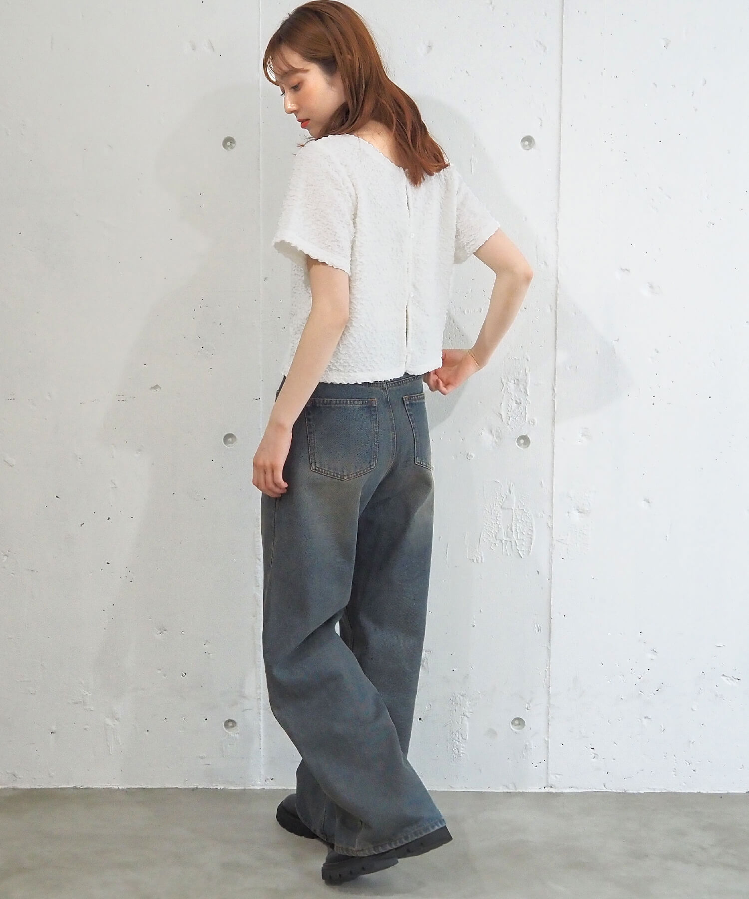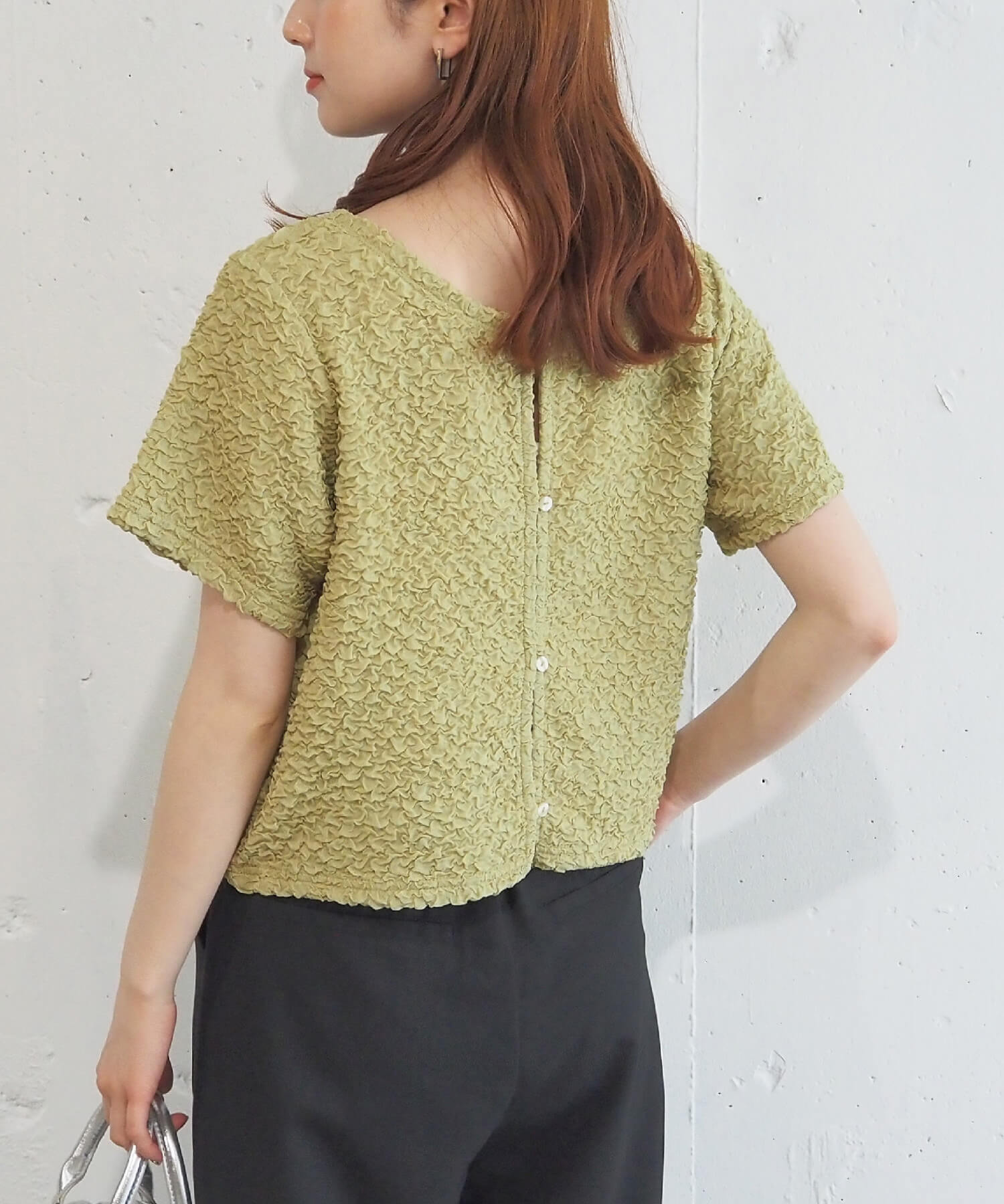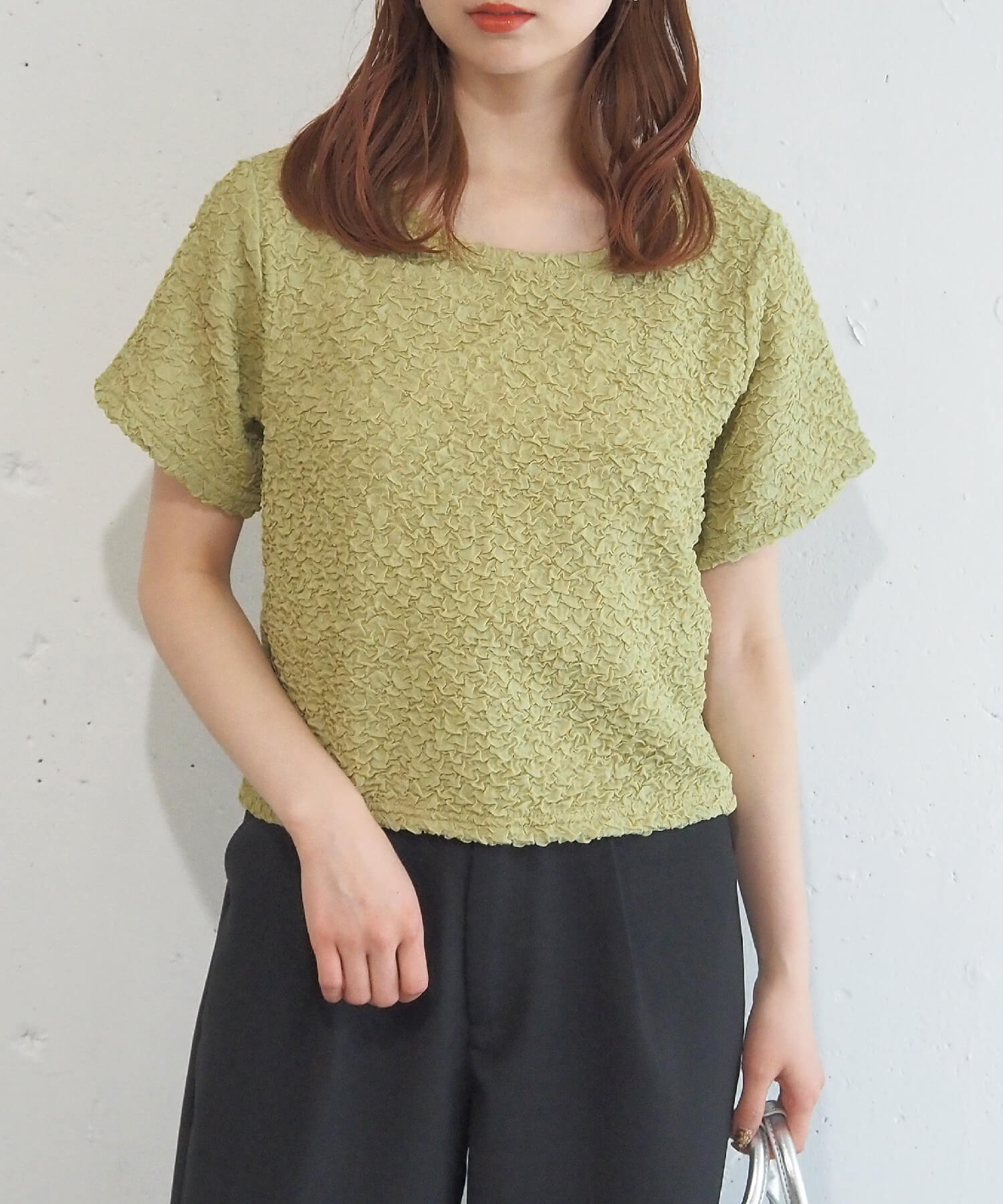 ・デニムやスラックスなどシンプルなボトムとのコーディネートなら、生地の表面感が際立ち程よく華やかに。好感度バツグンのな大人カジュアルが完成します。