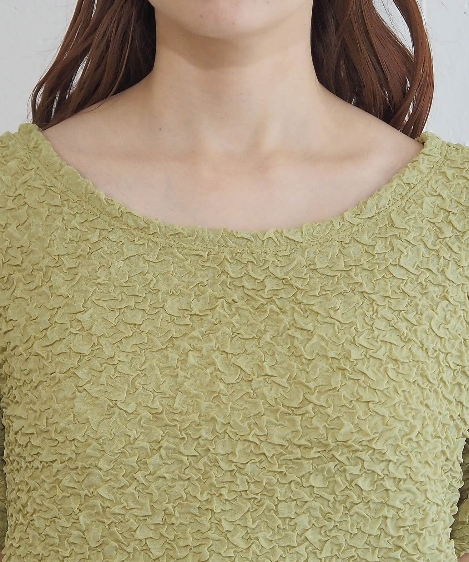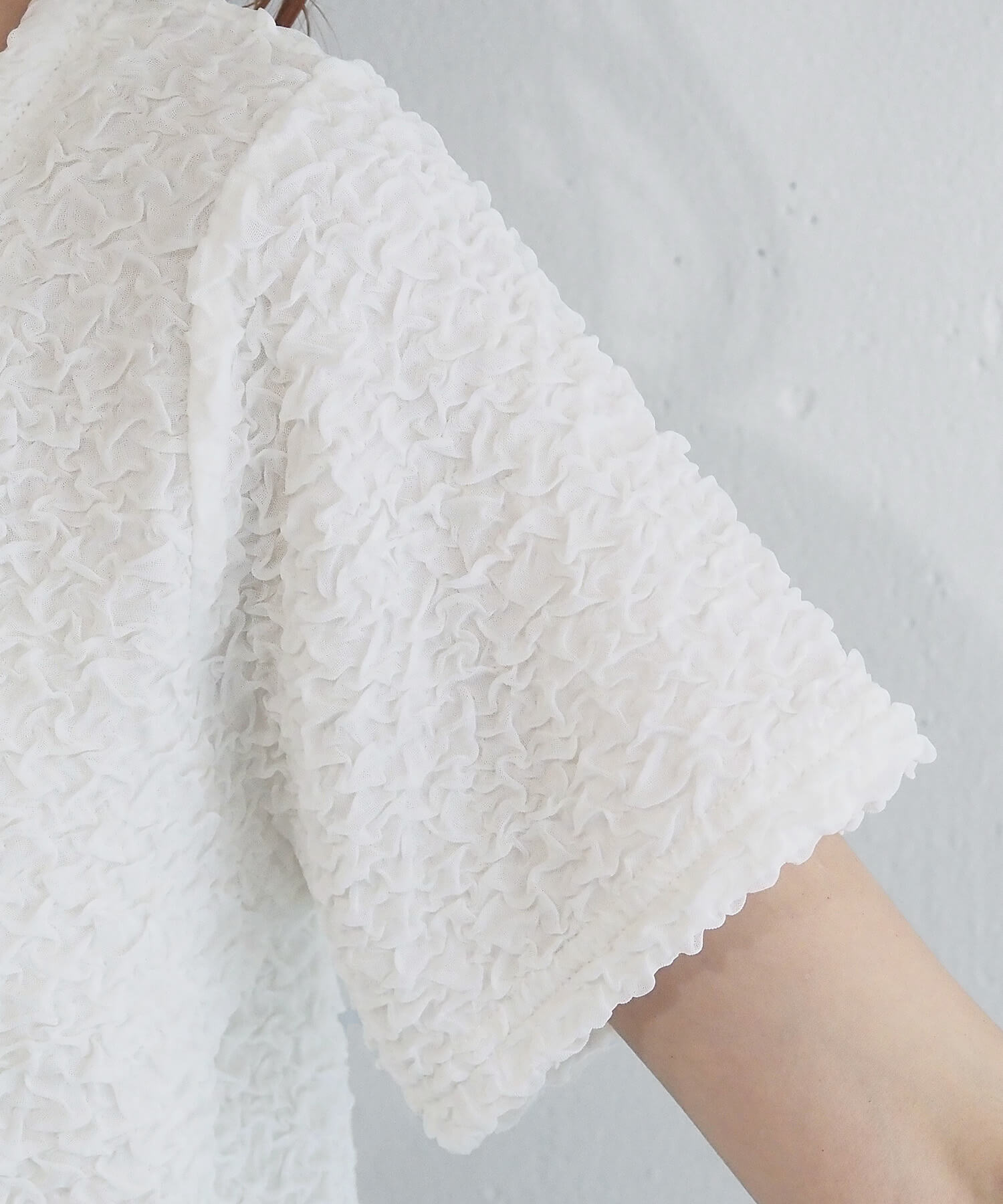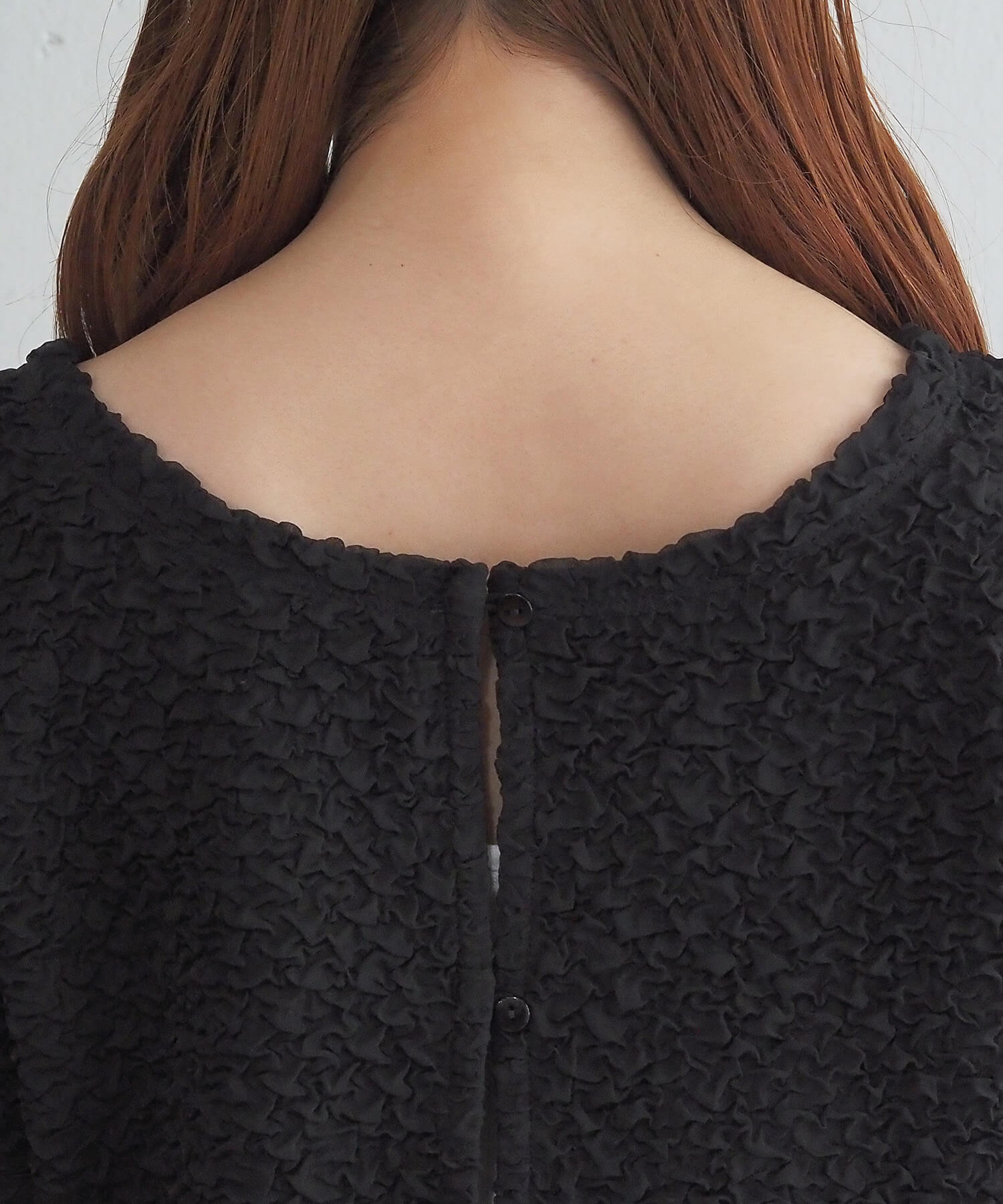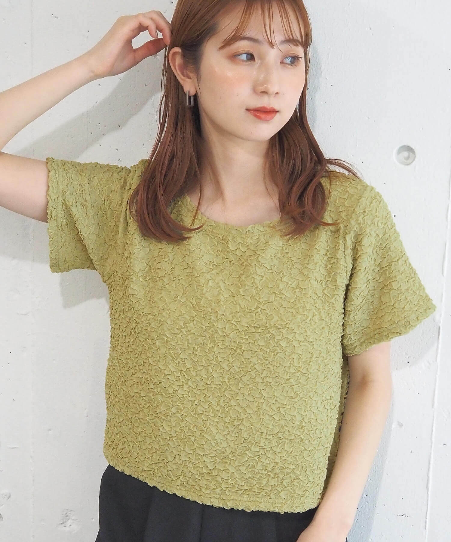 ・デニムやスラックスなどシンプルなボトムとのコーディネートなら、生地の表面感が際立ち程よく華やかに。好感度バツグンのな大人カジュアルが完成します。