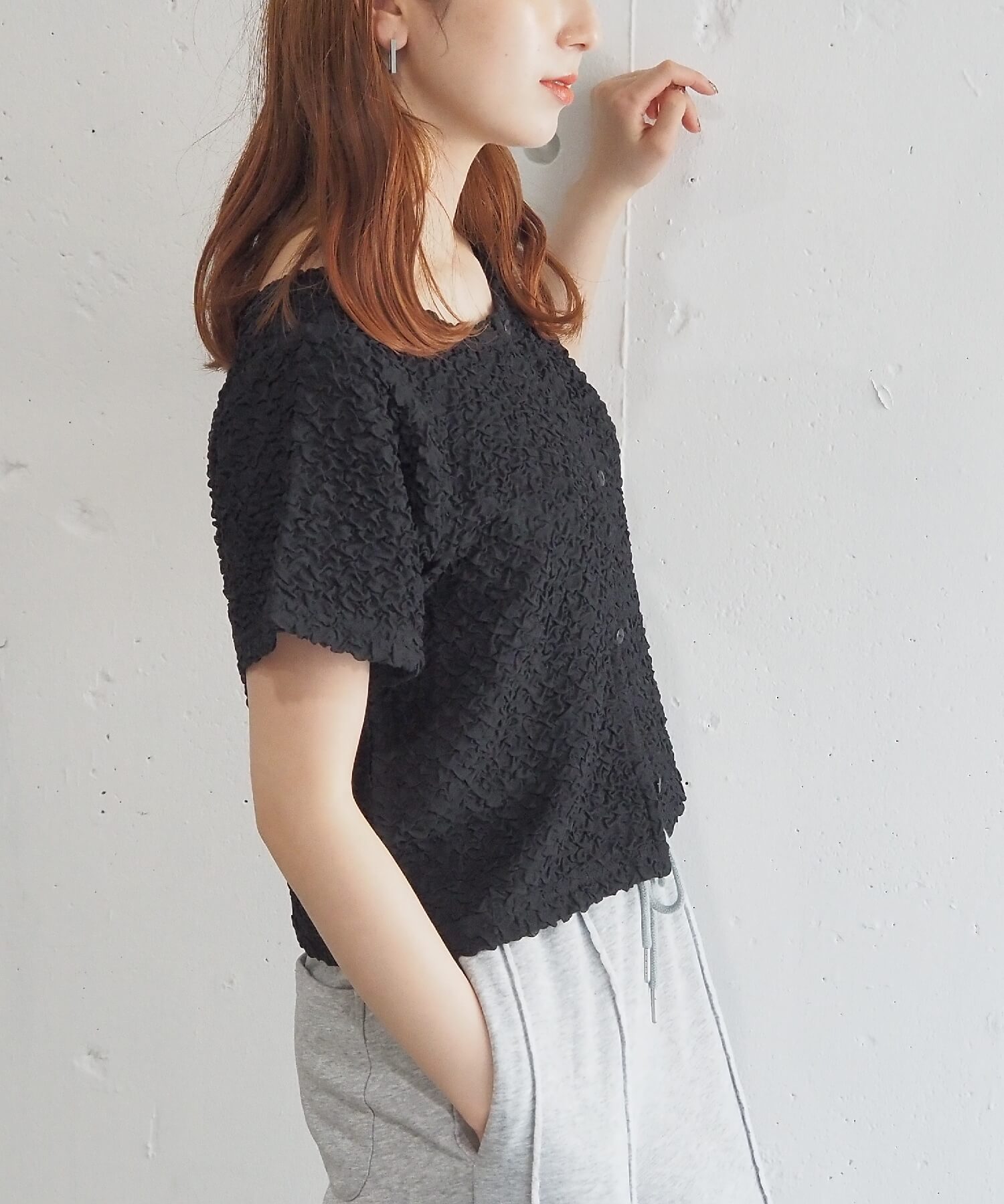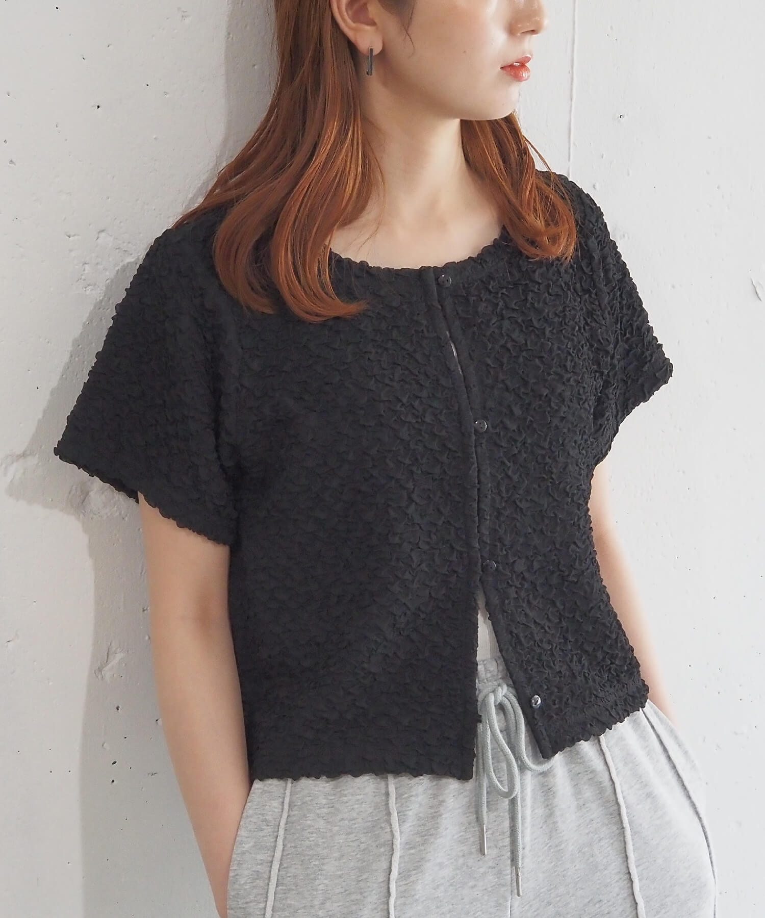 ・バランスのとりやすいショート丈なので、ワンピースの羽織りにも最適です。
