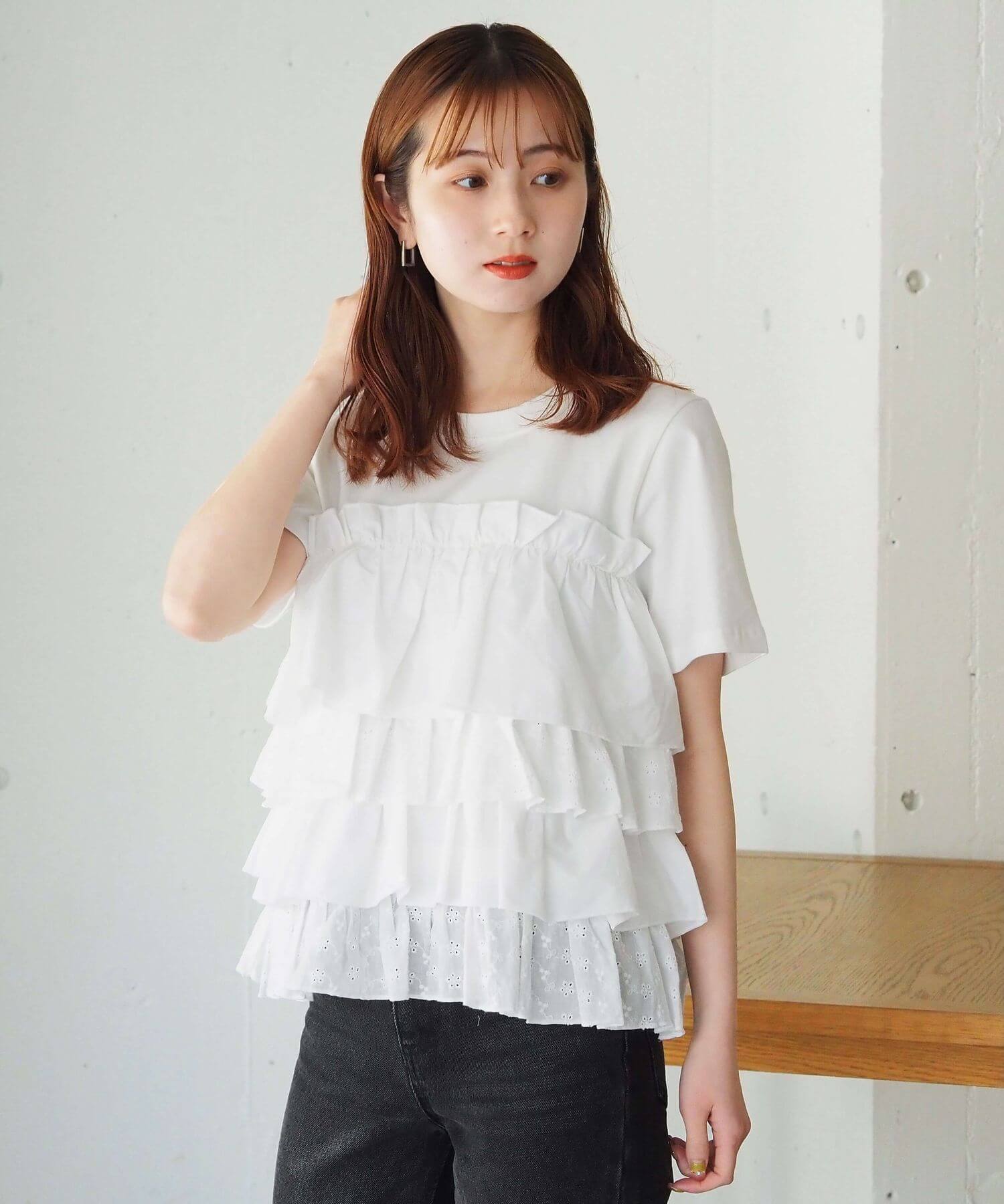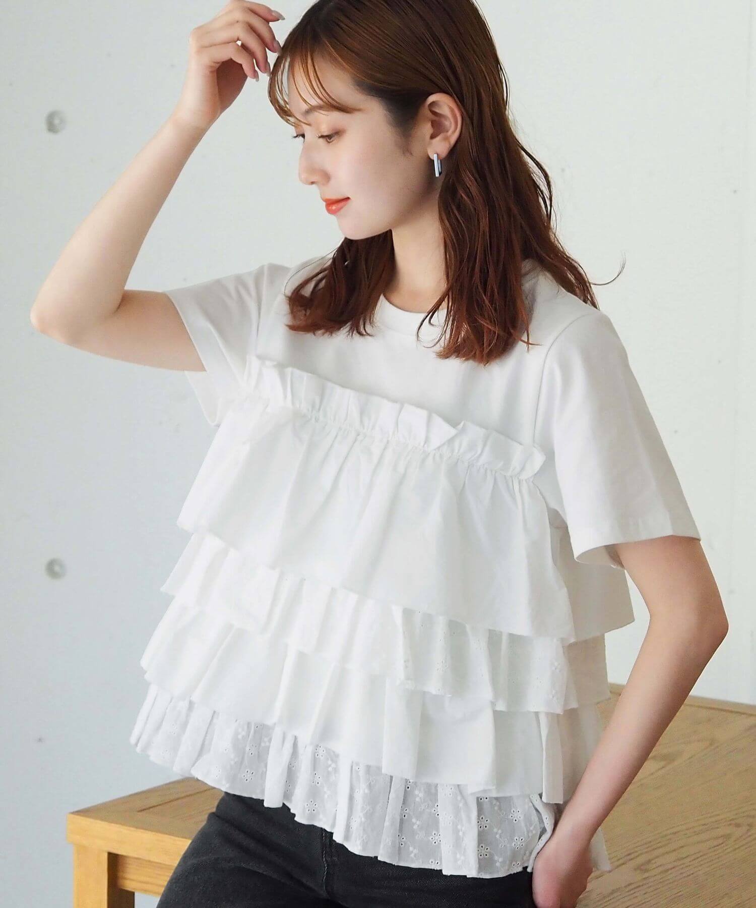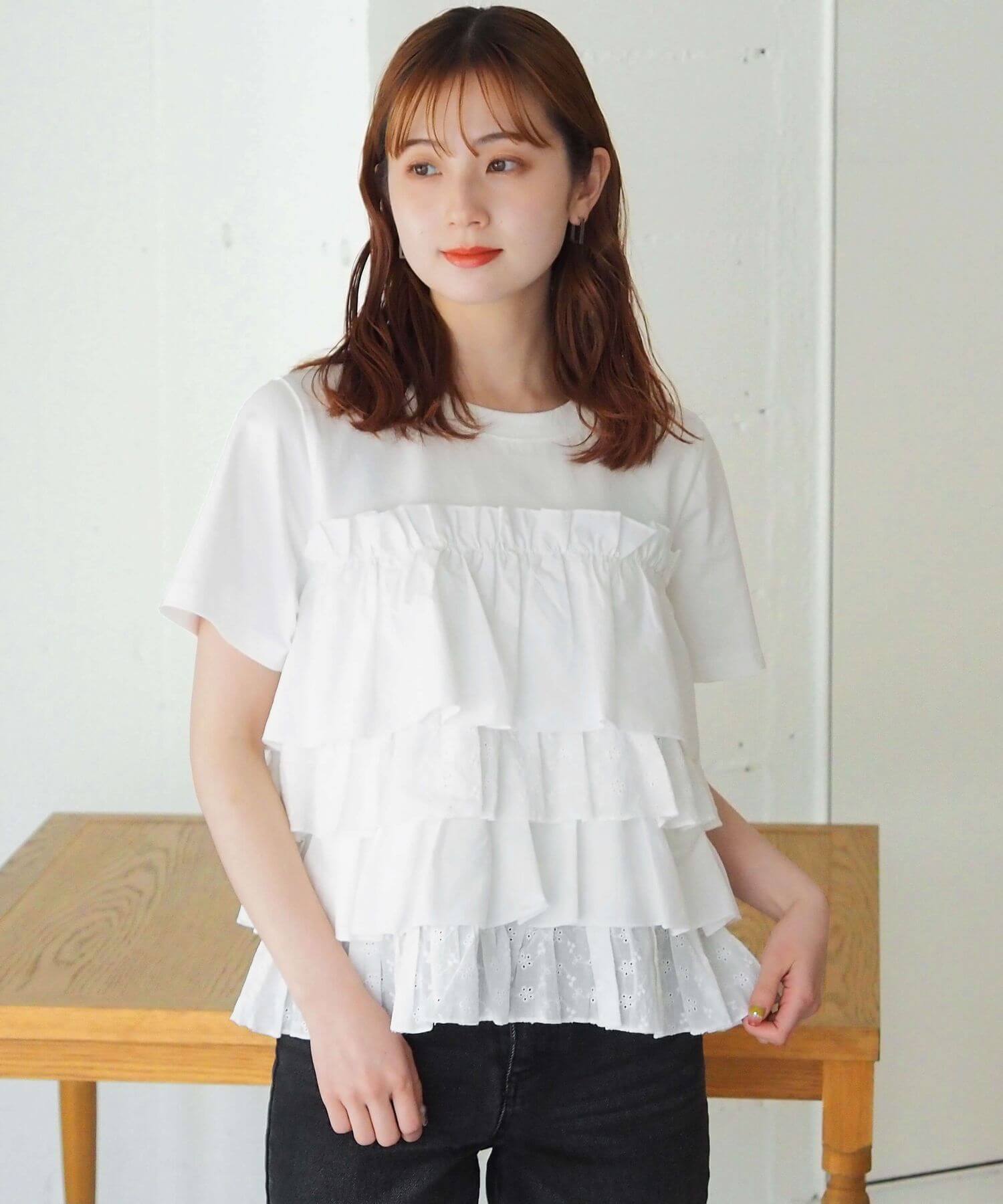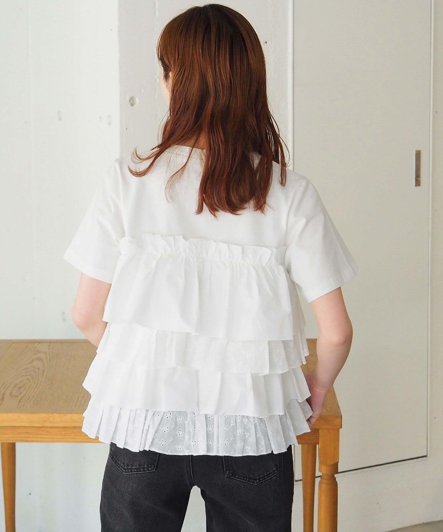 ・たっぷりのフリルとティアードデザインが女性らしいドッキングTシャツです。