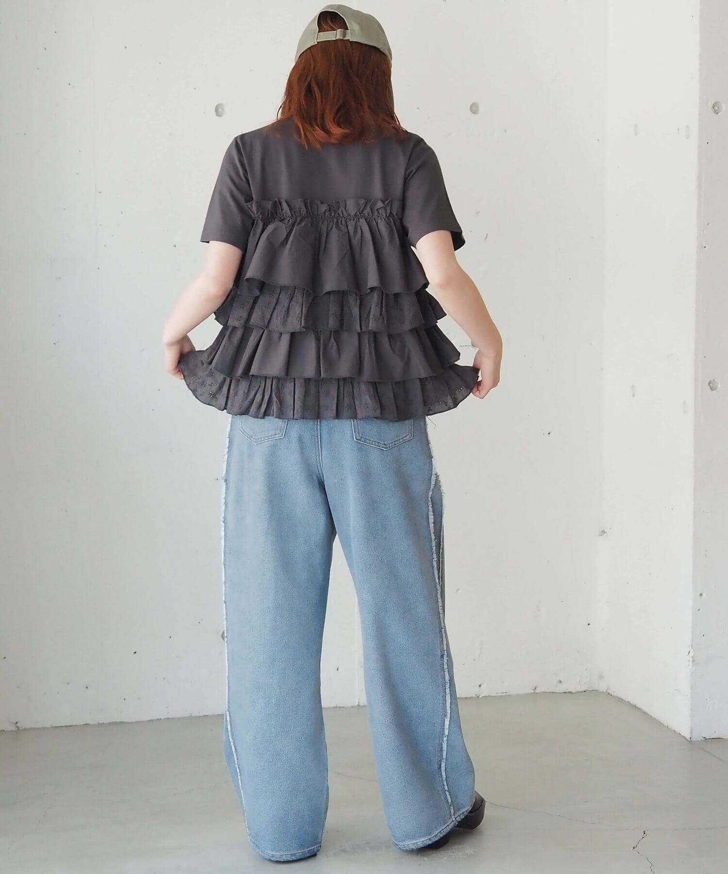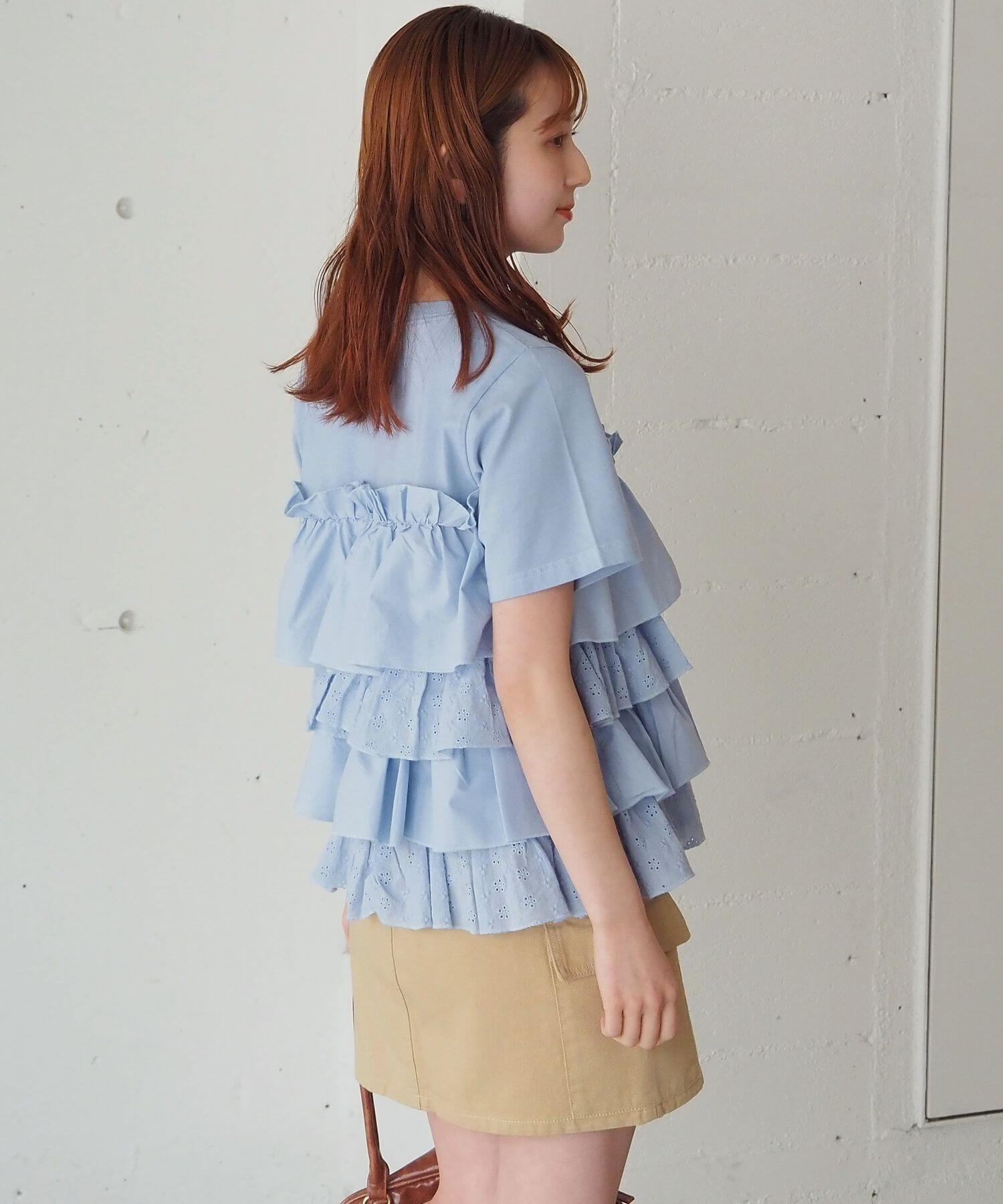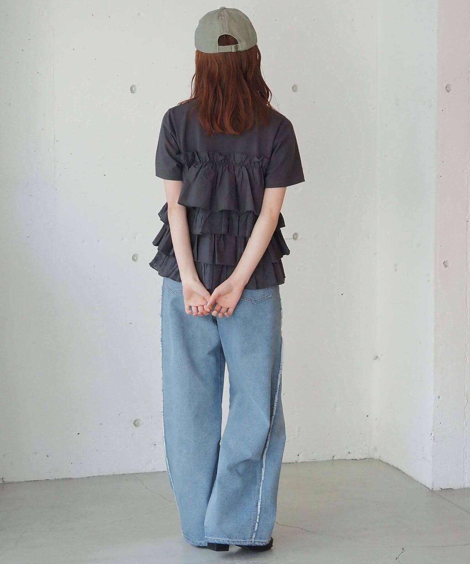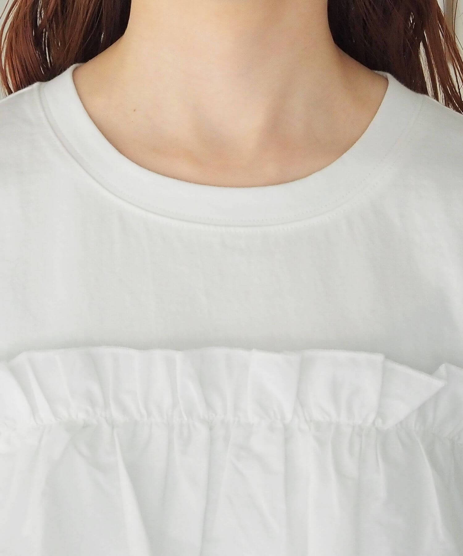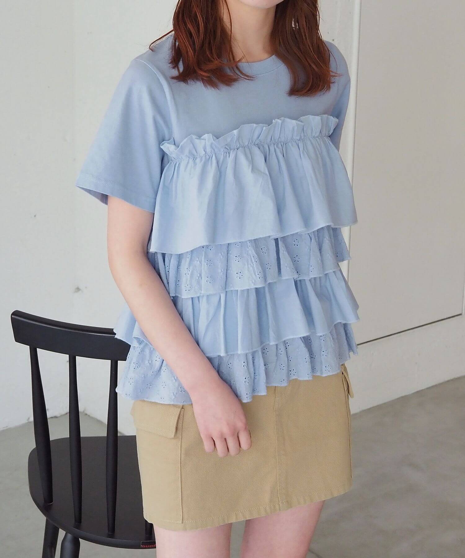 ・たっぷりのフリルとティアードデザインが女性らしいドッキングTシャツです。