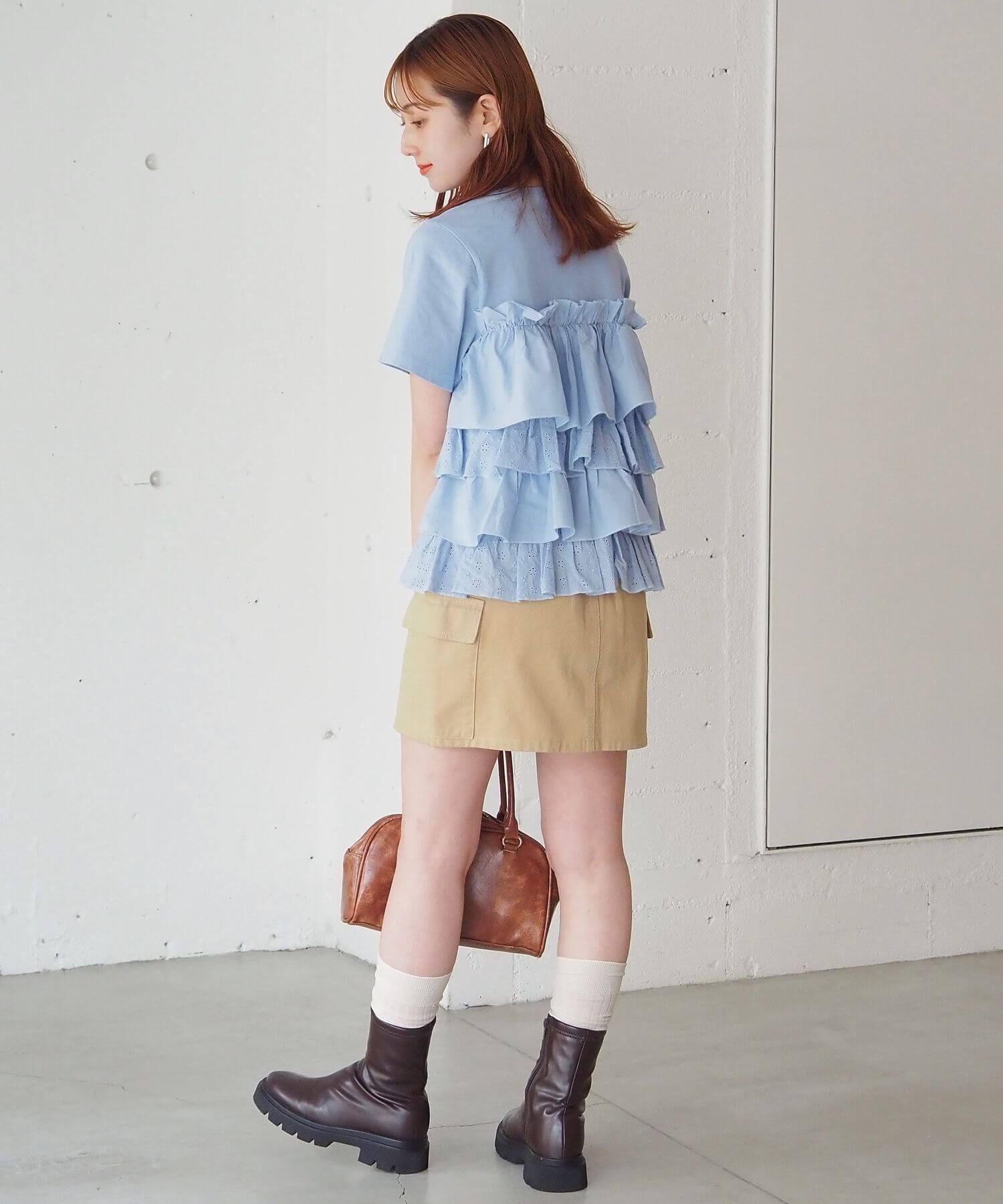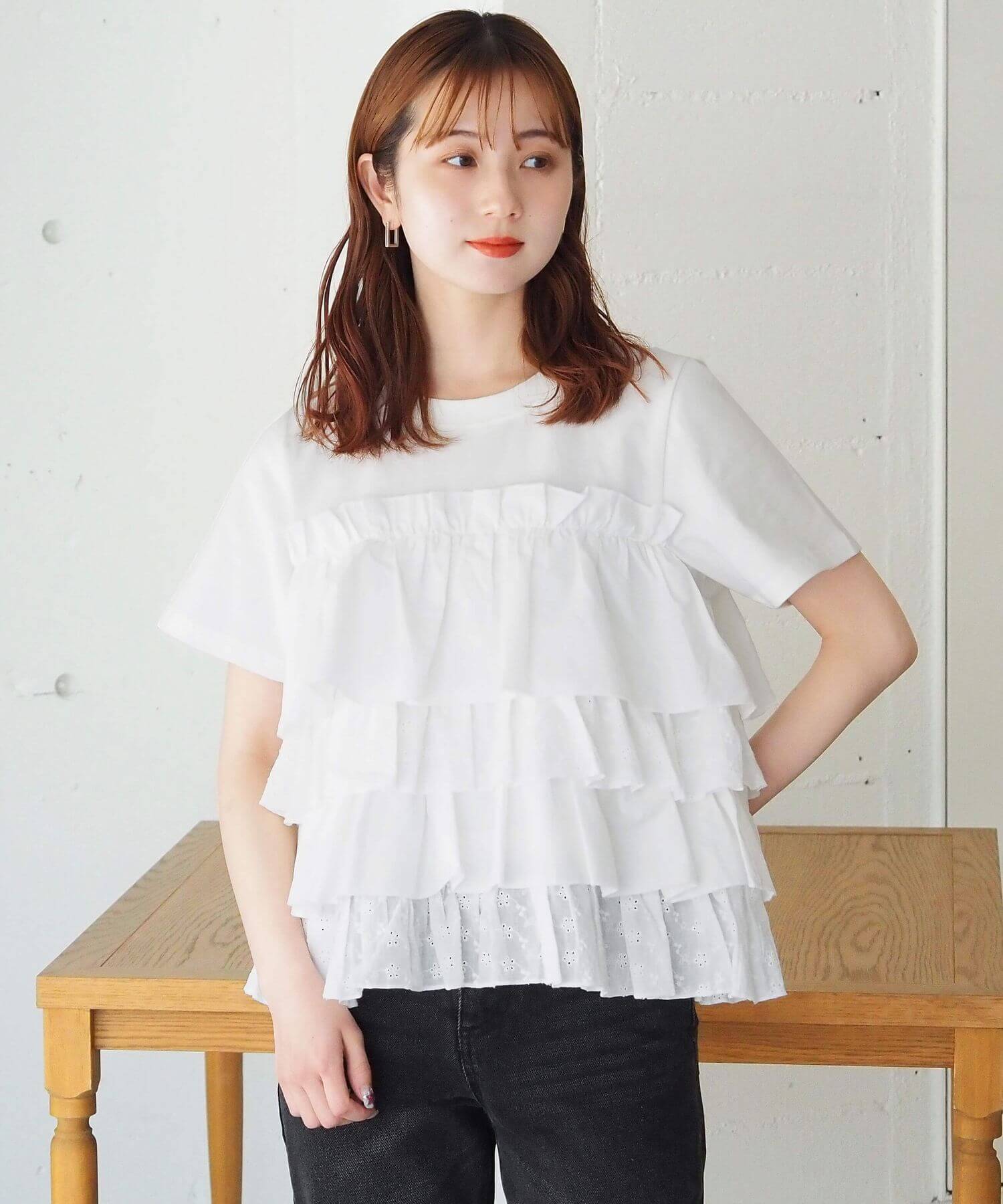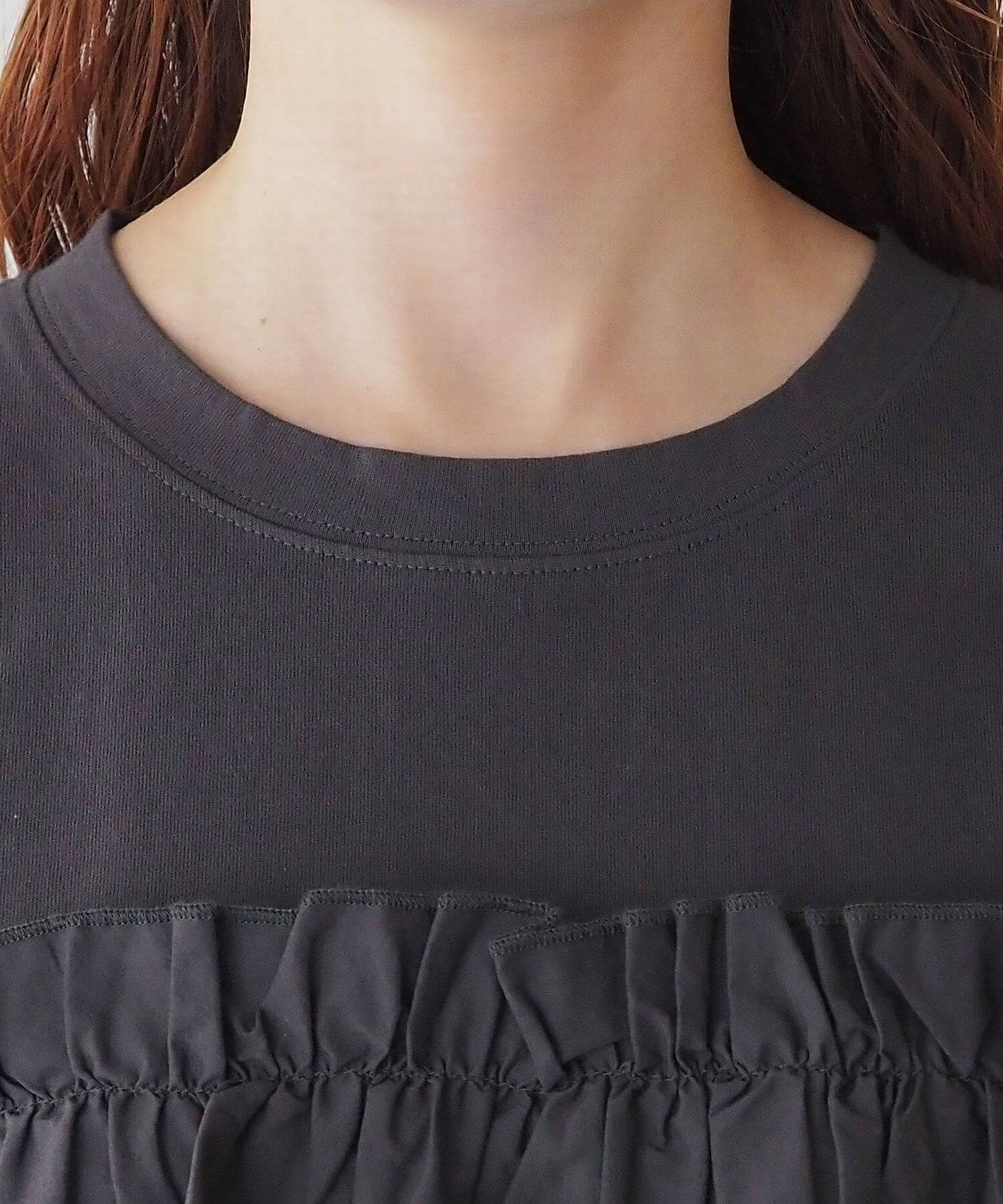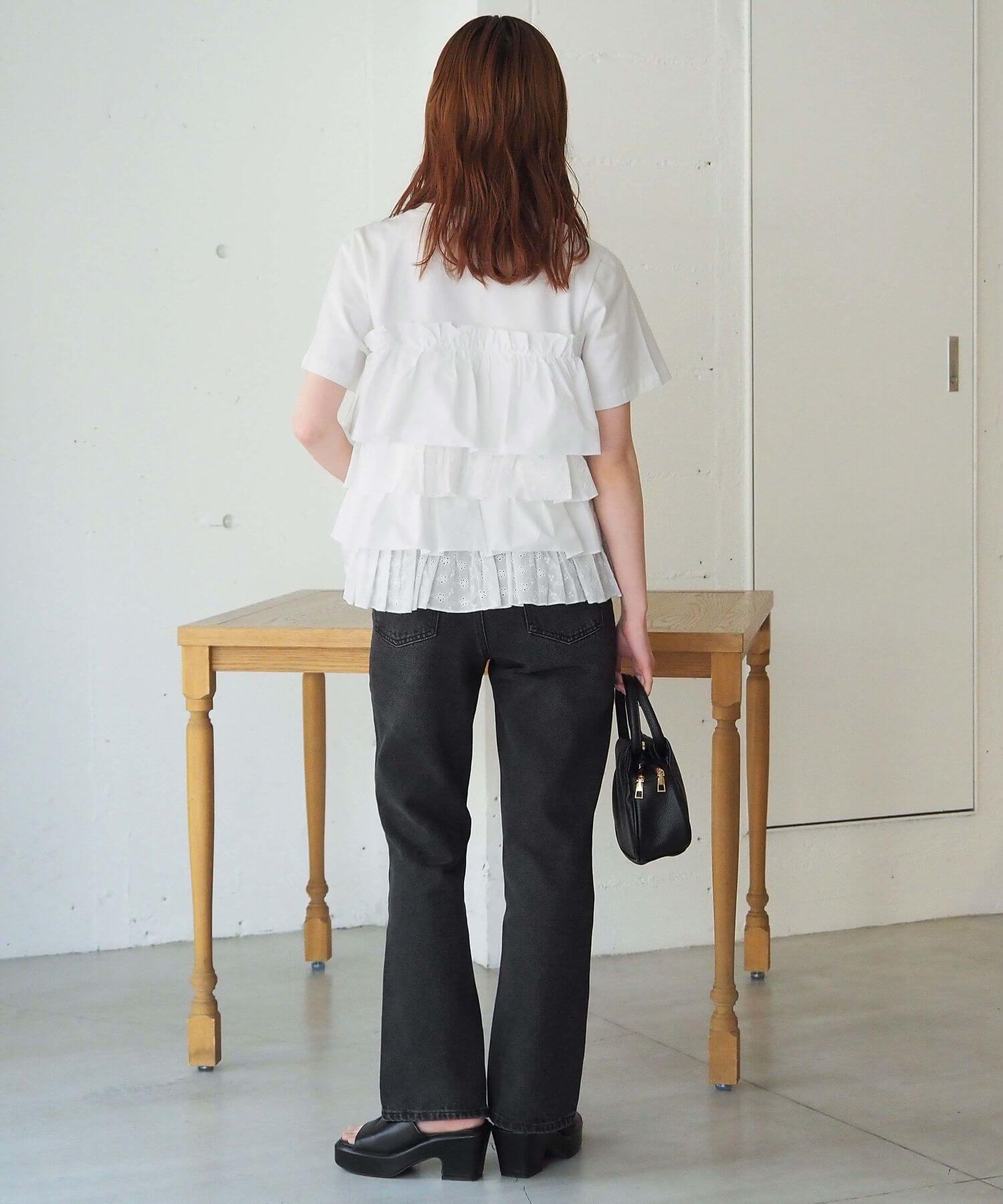 ・たっぷりのフリルとティアードデザインが女性らしいドッキングTシャツです。