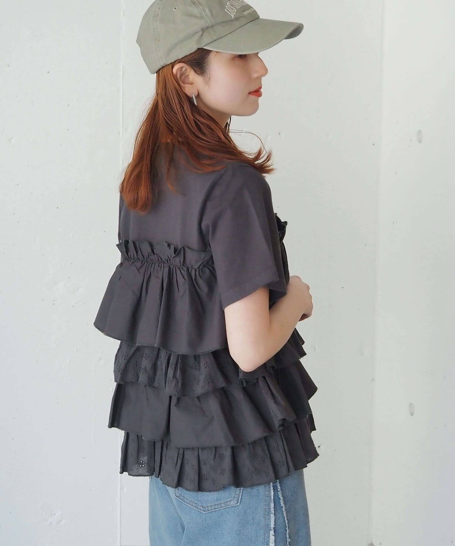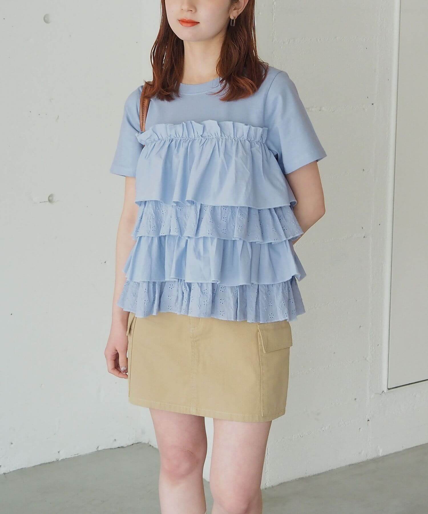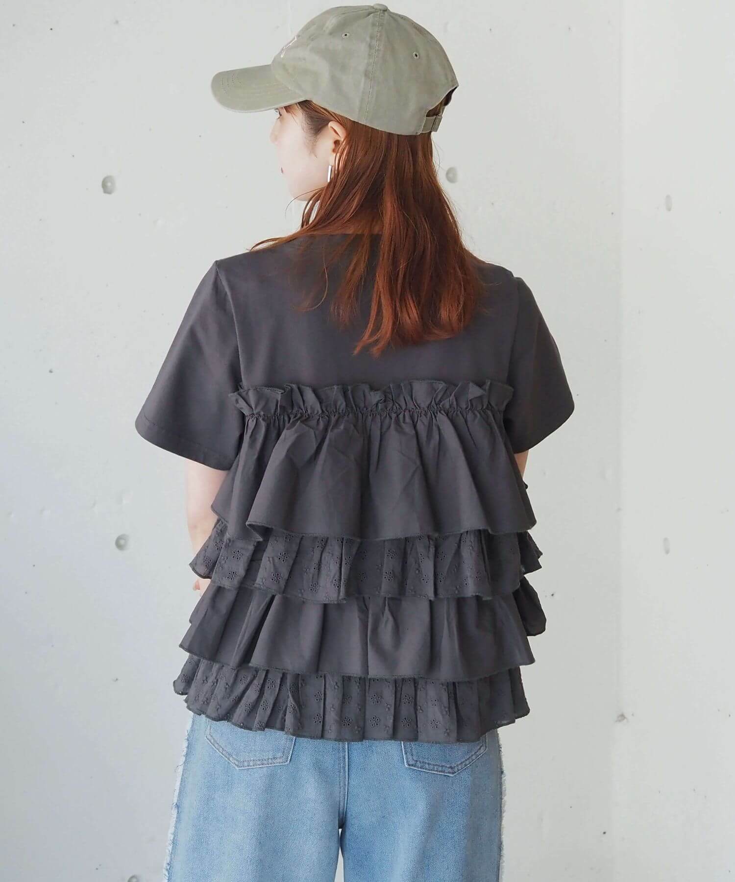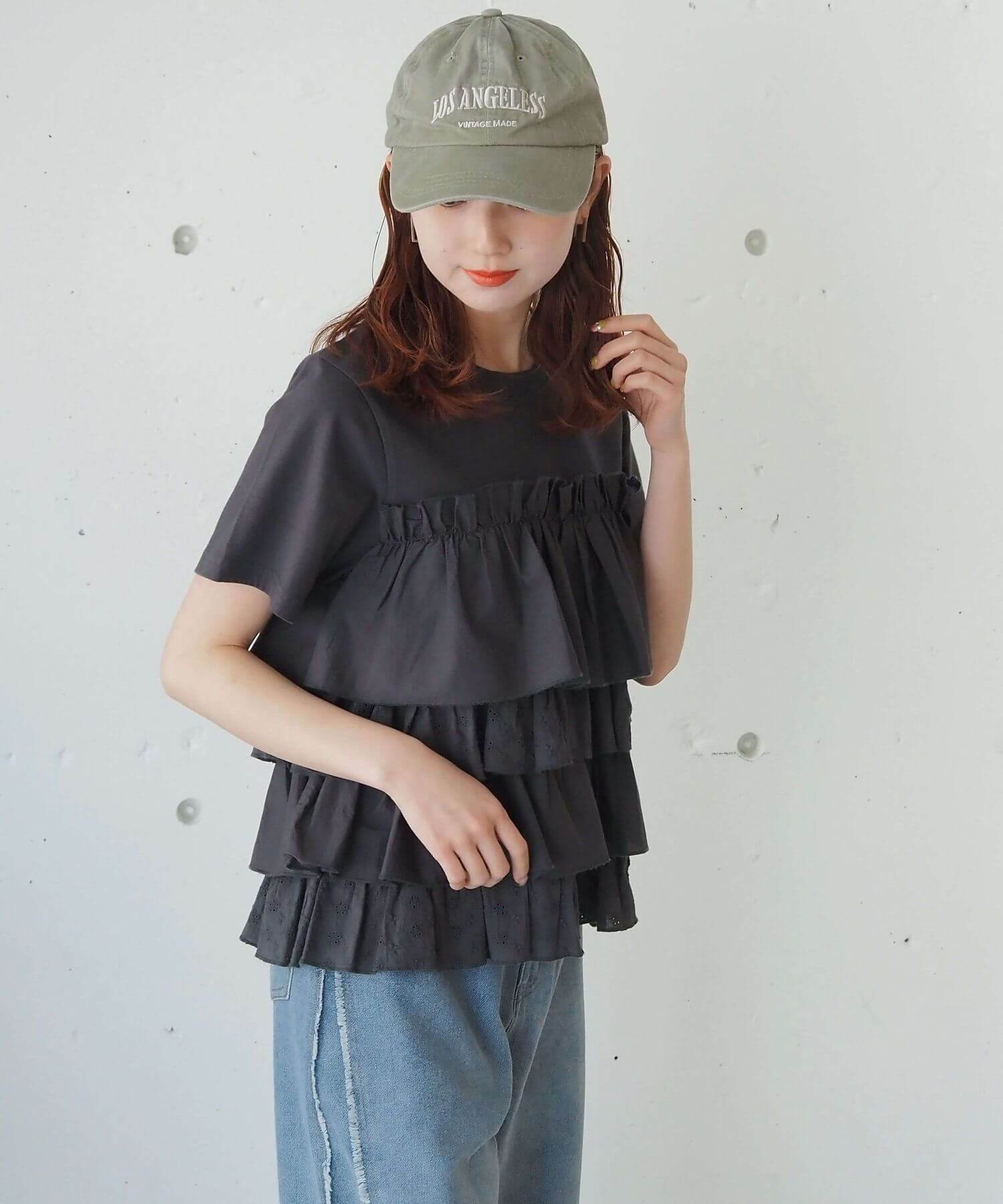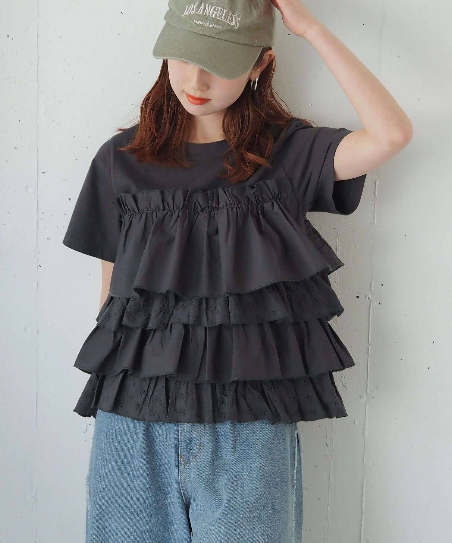 ・たっぷりのフリルとティアードデザインが女性らしいドッキングTシャツです。