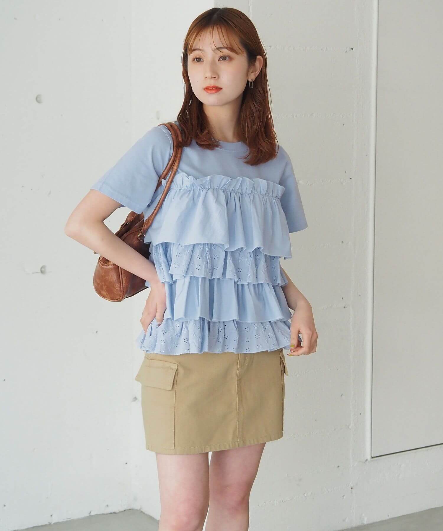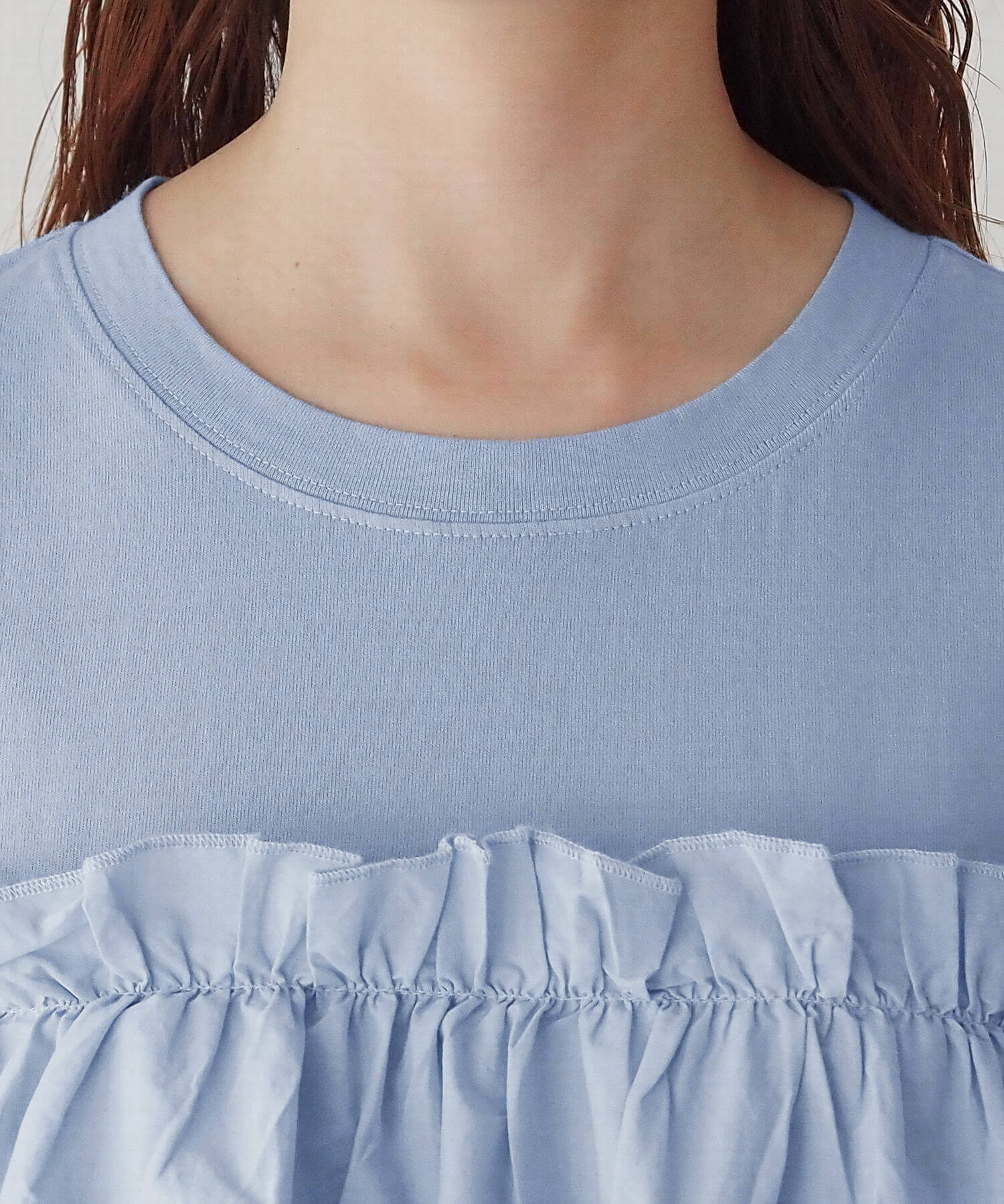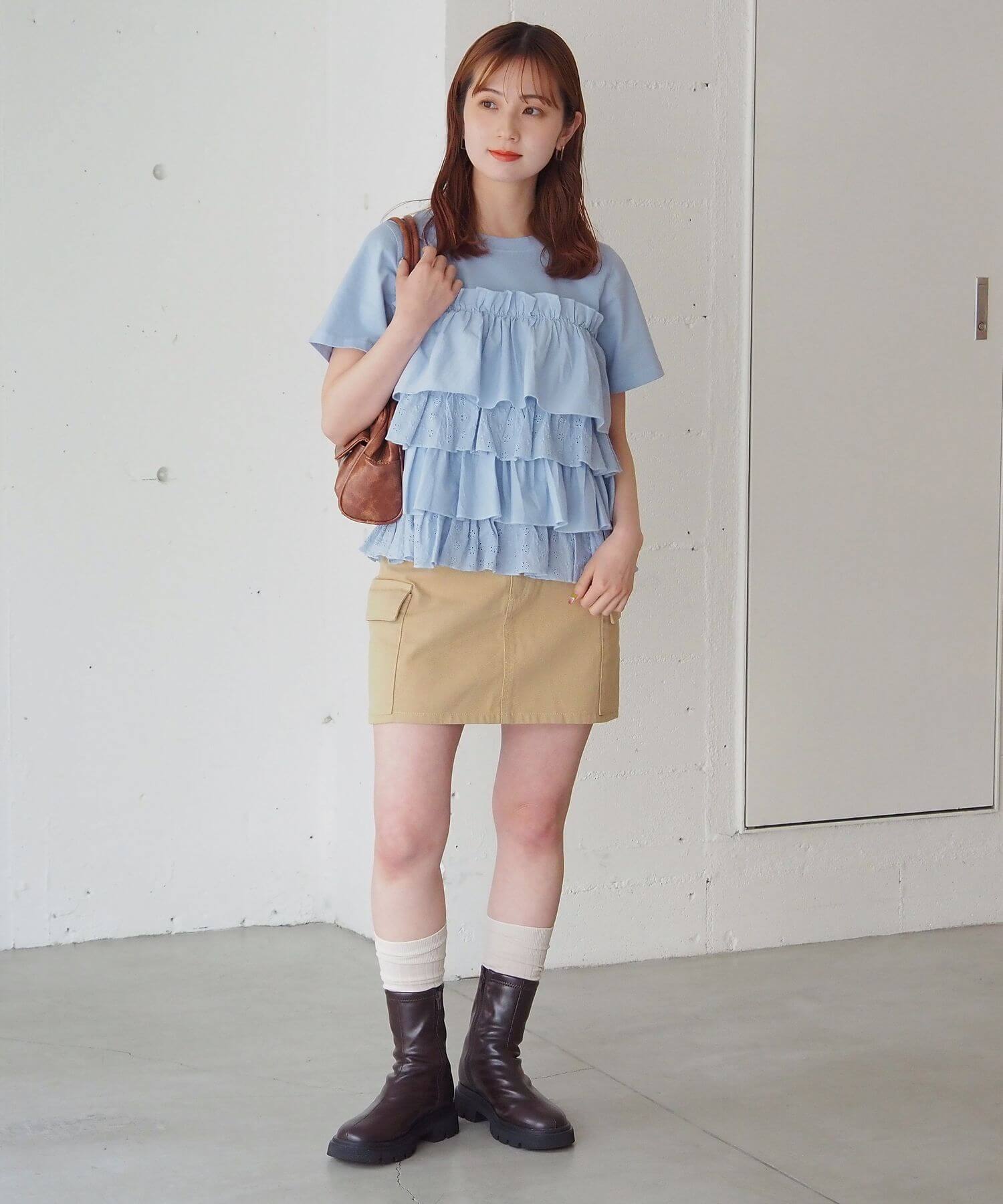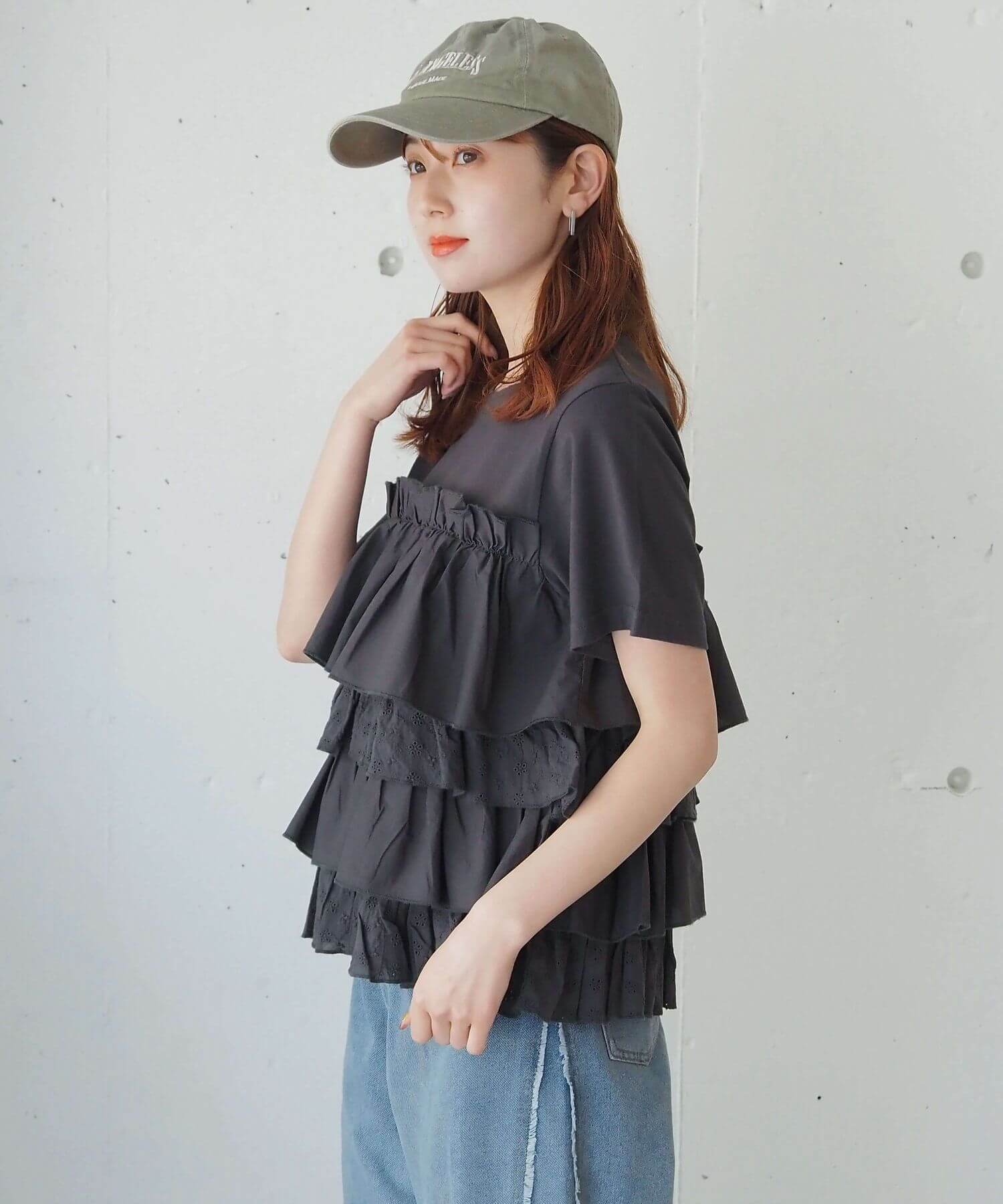・たっぷりのフリルとティアードデザインが女性らしいドッキングTシャツです。