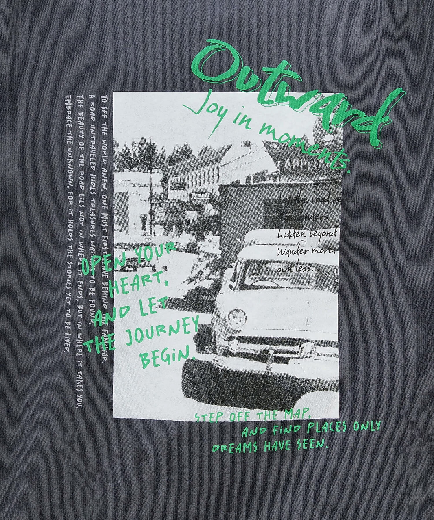・レタリング風ロゴとキャッチーなヴィンテージ風フォトプリントが魅力のTシャツです。