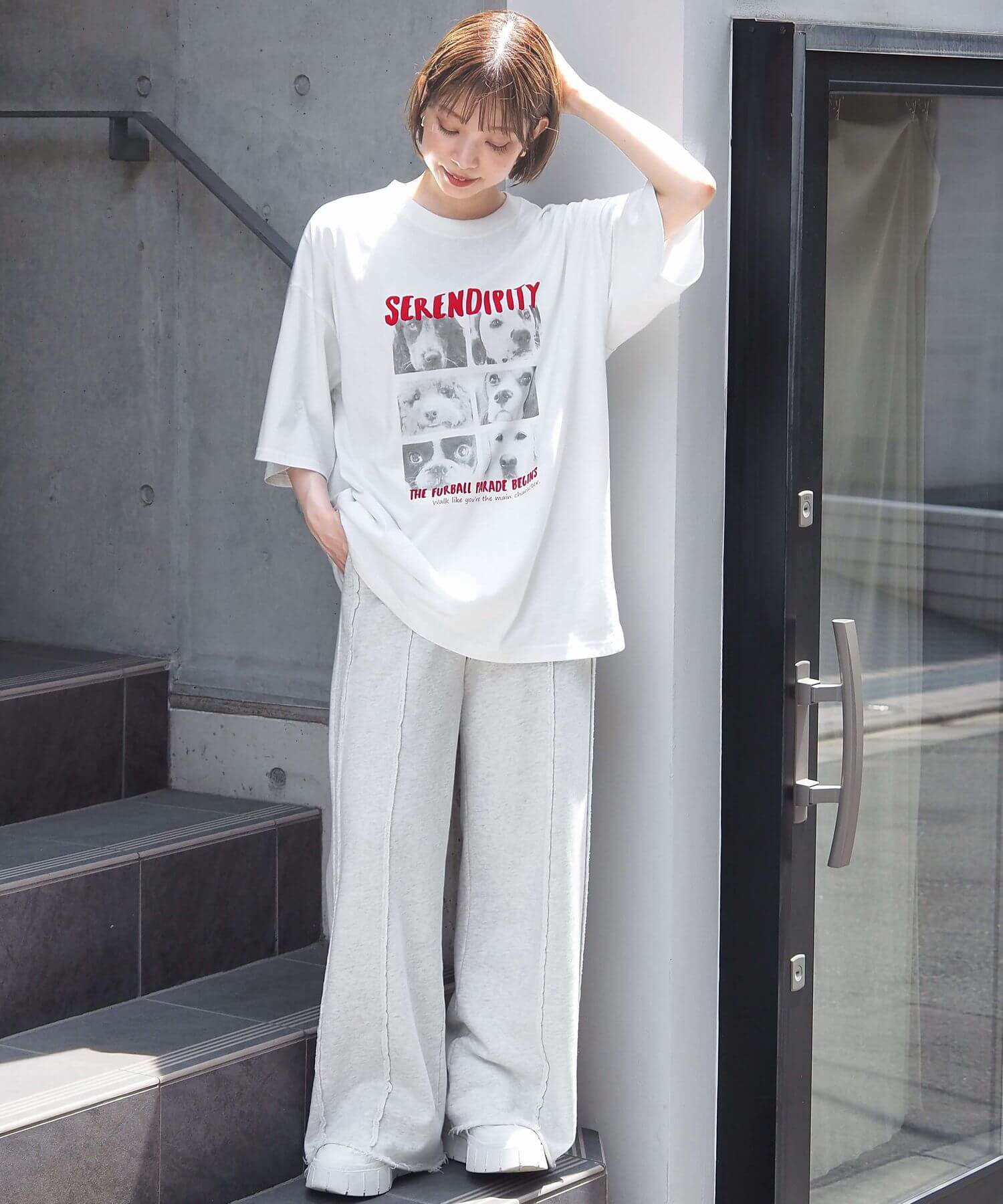 ・カラーロゴをポイントに、ワントーンコーデもおすすめです。