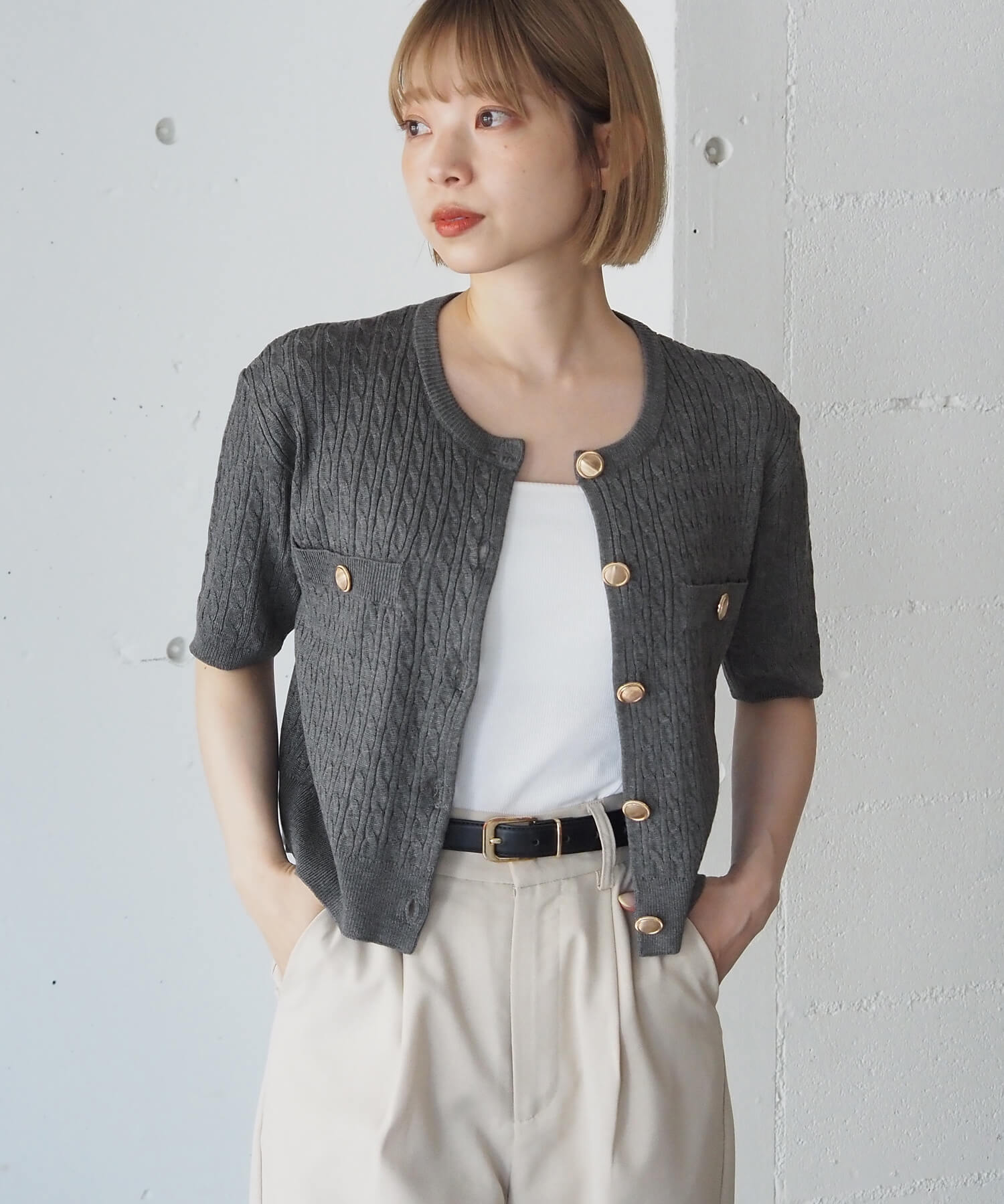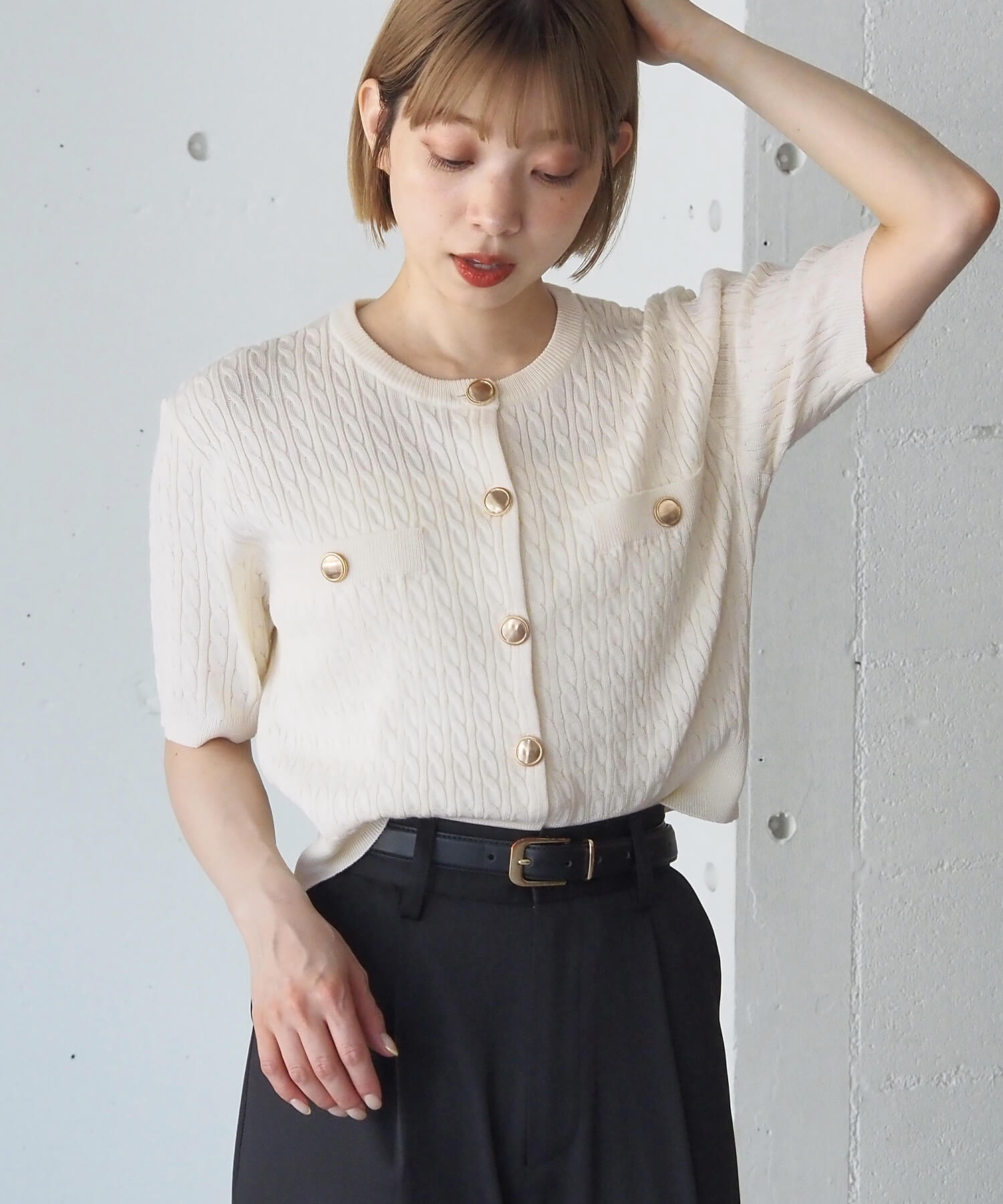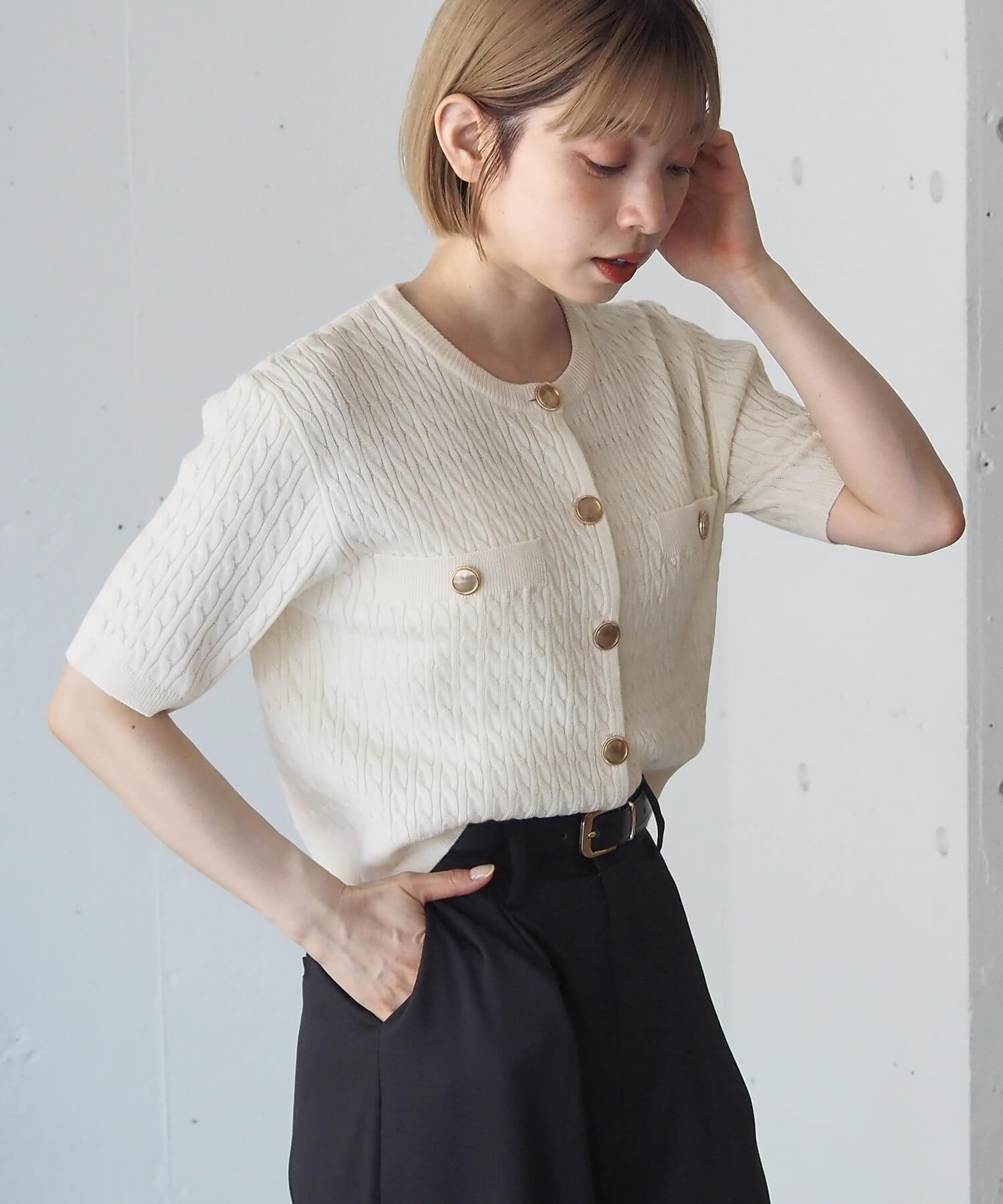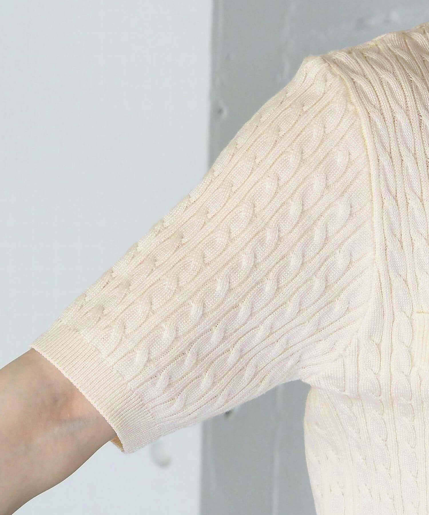 ・品のあるケーブル柄がトレンドライクな半袖ニットカーディガンです。