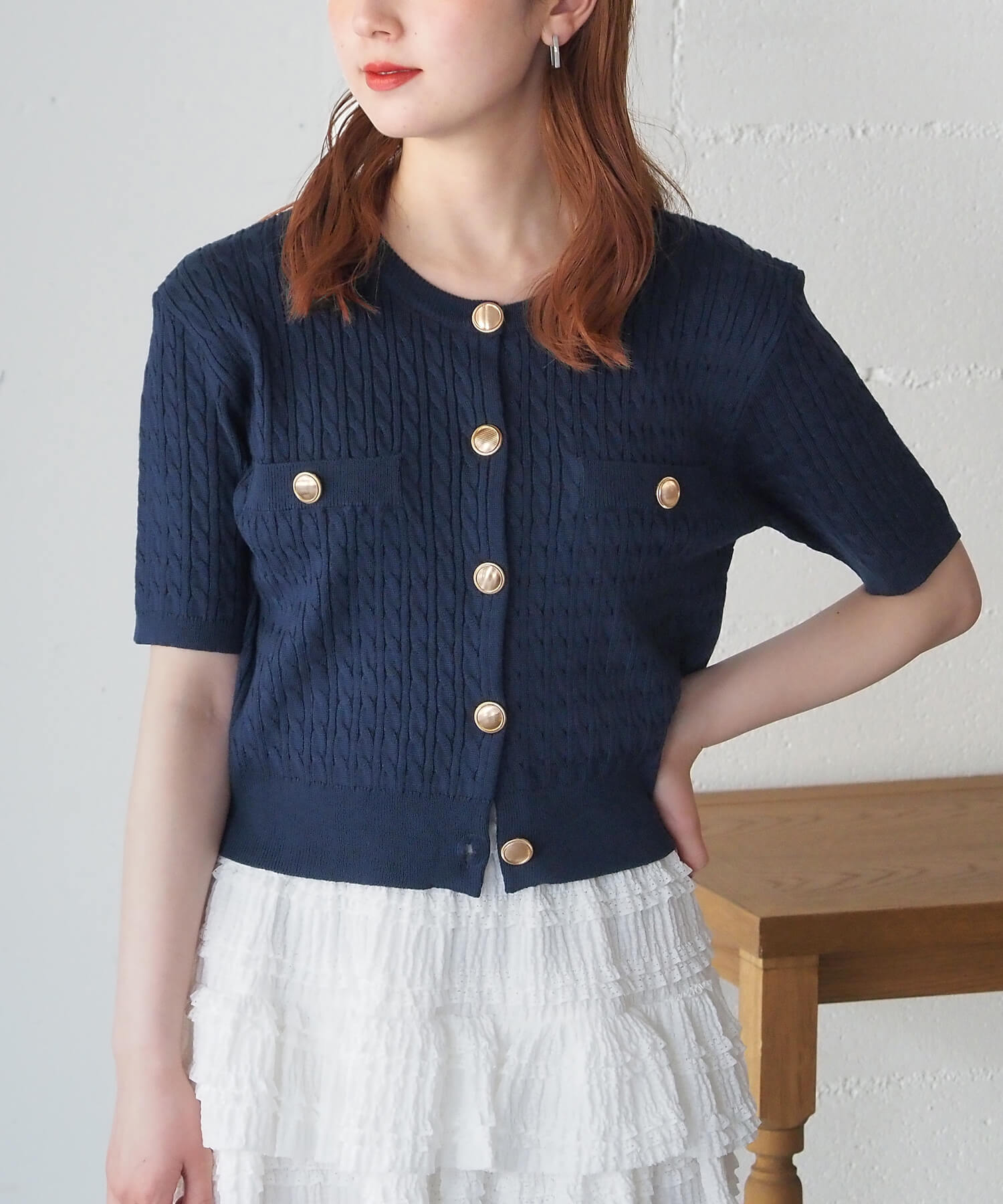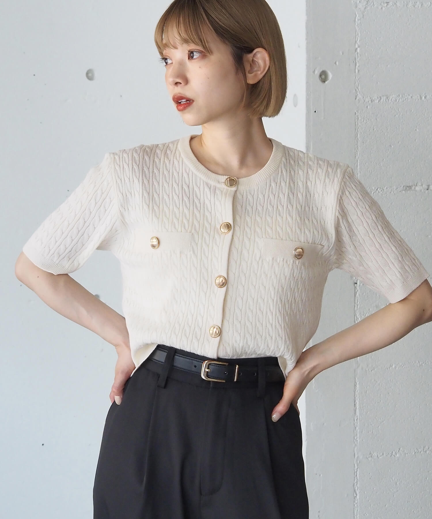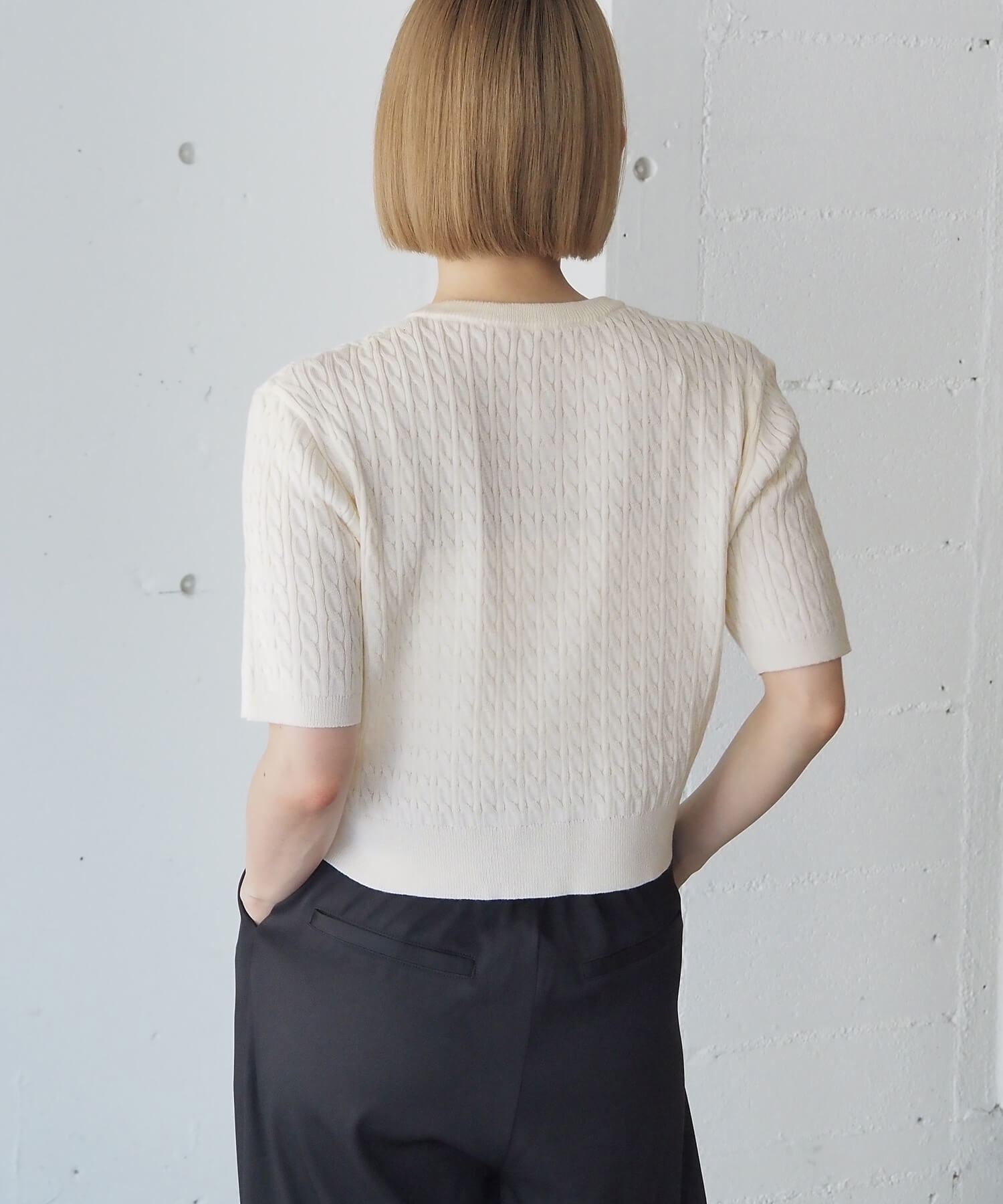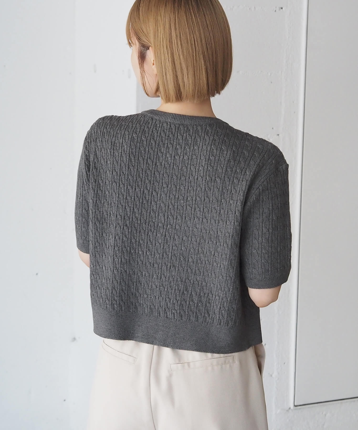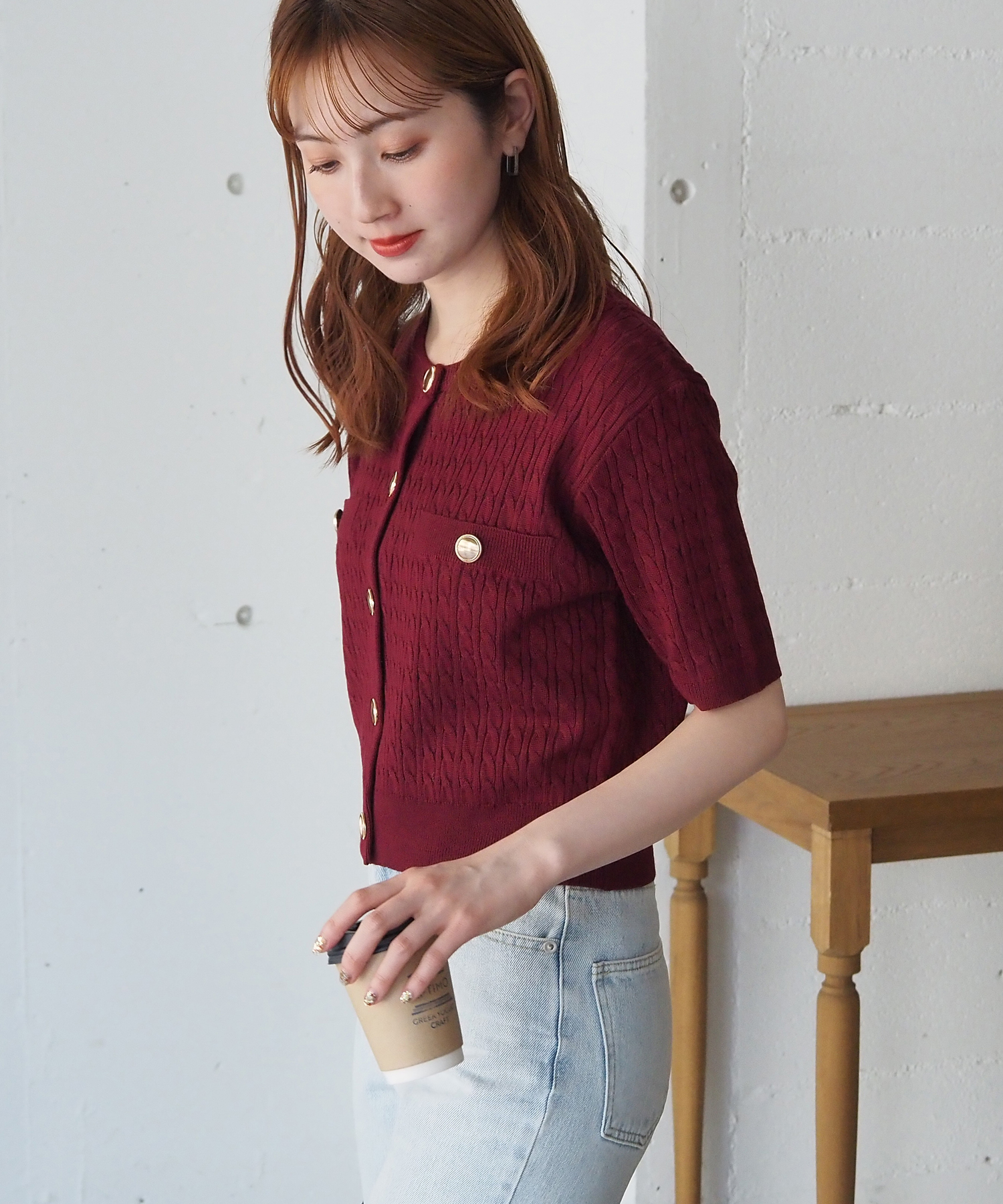 ・品のあるケーブル柄がトレンドライクな半袖ニットカーディガンです。