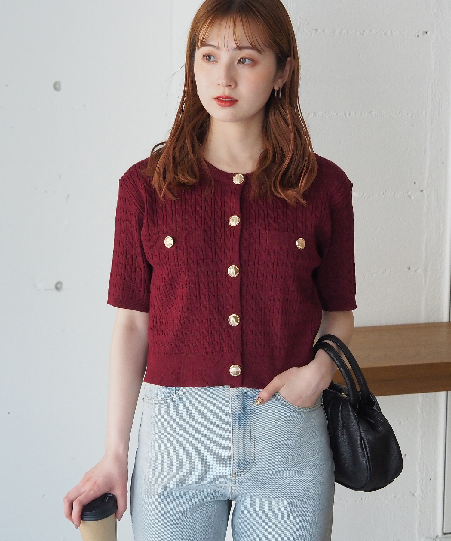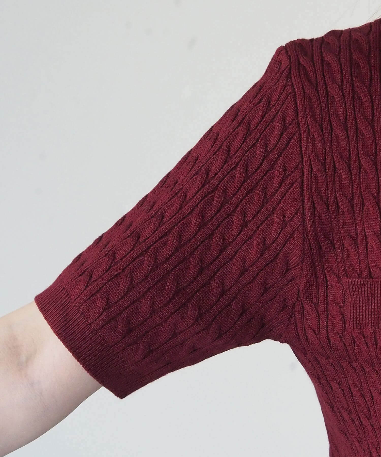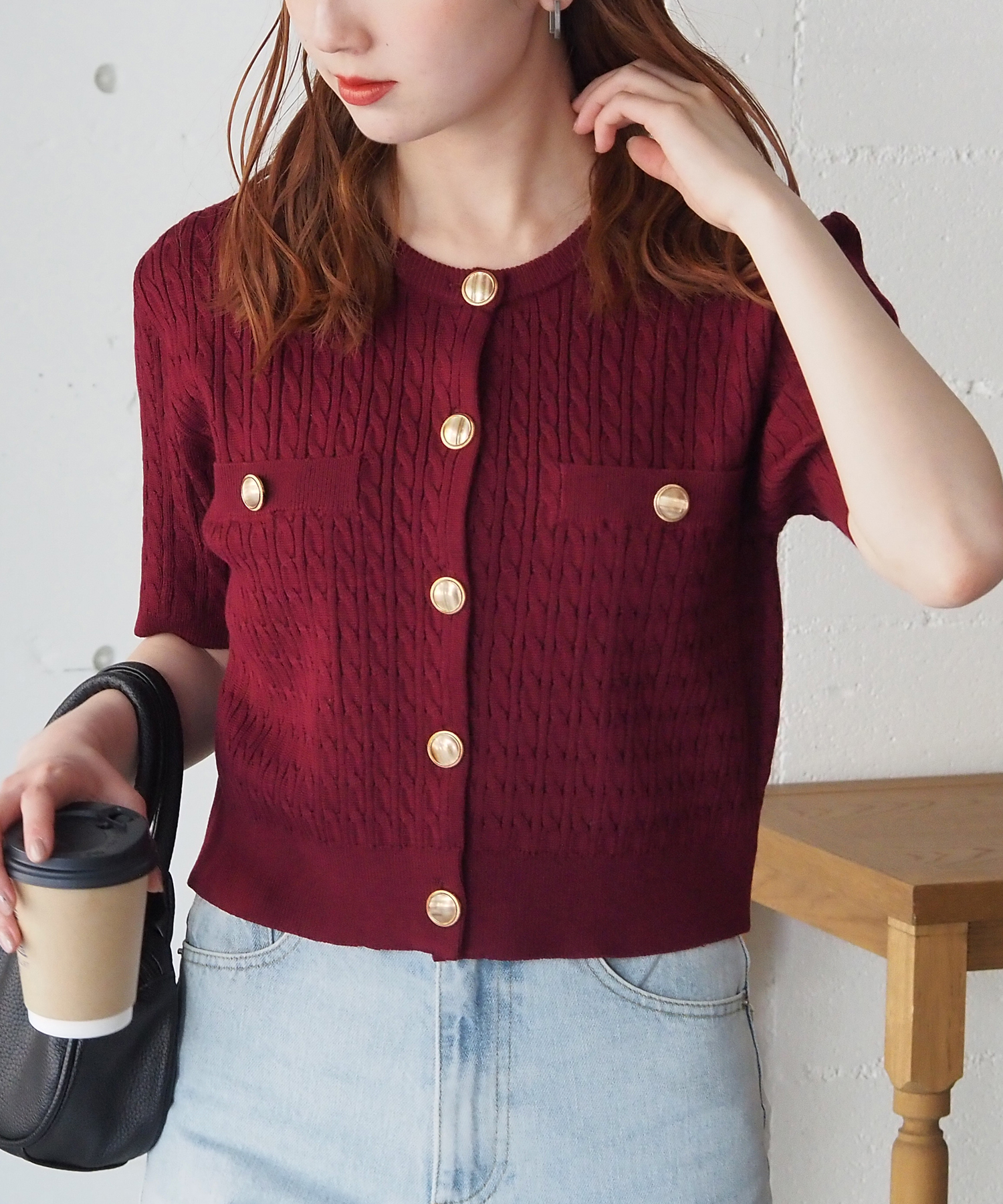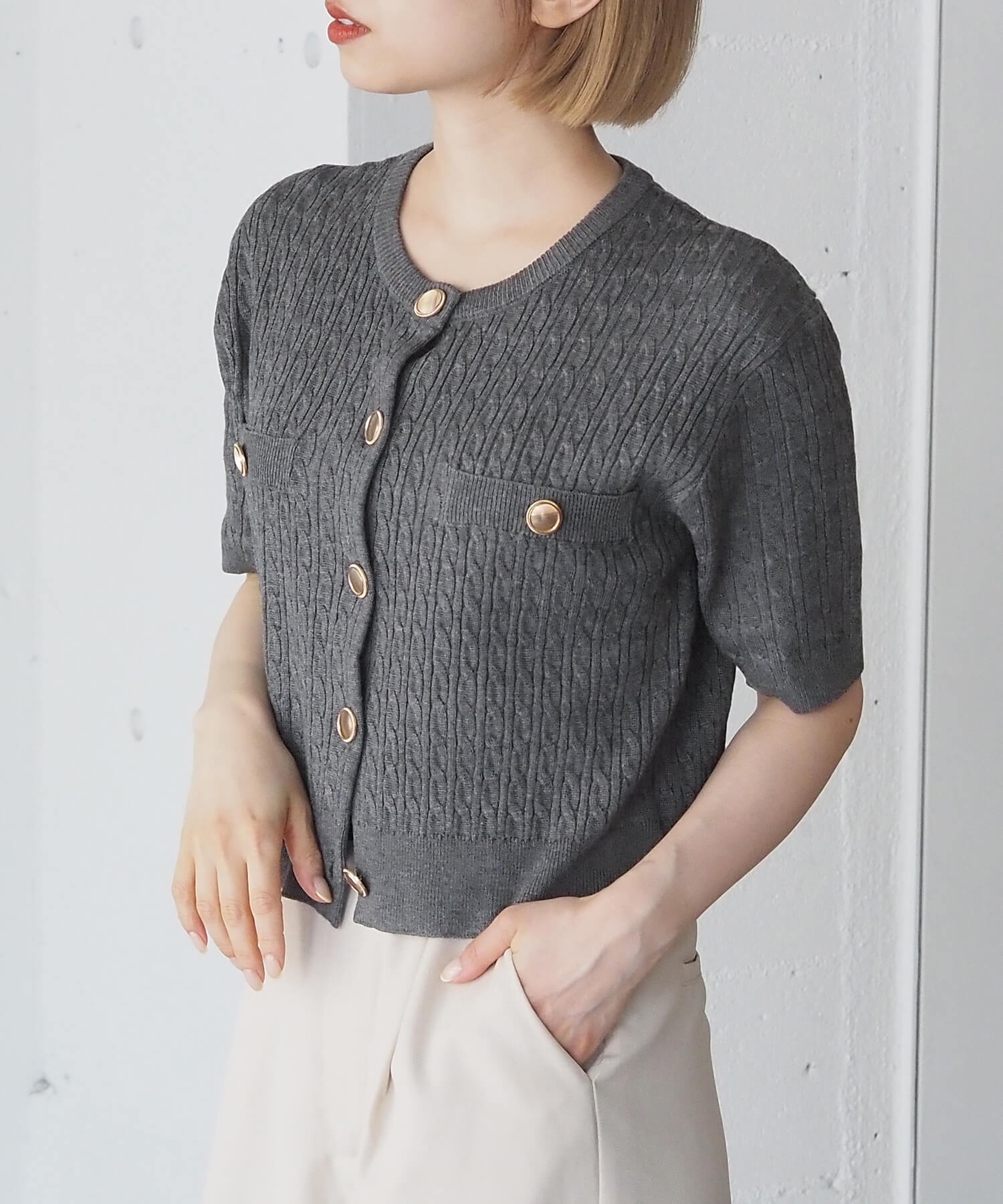 ・品のあるケーブル柄がトレンドライクな半袖ニットカーディガンです。