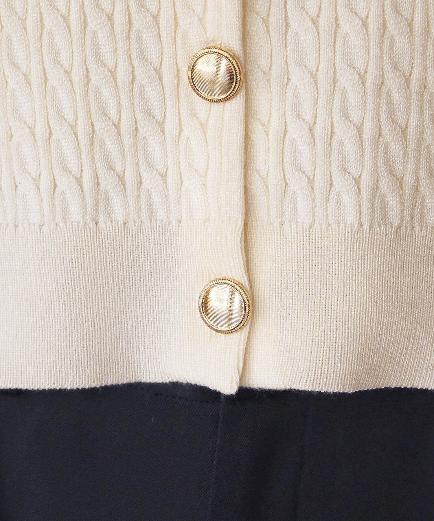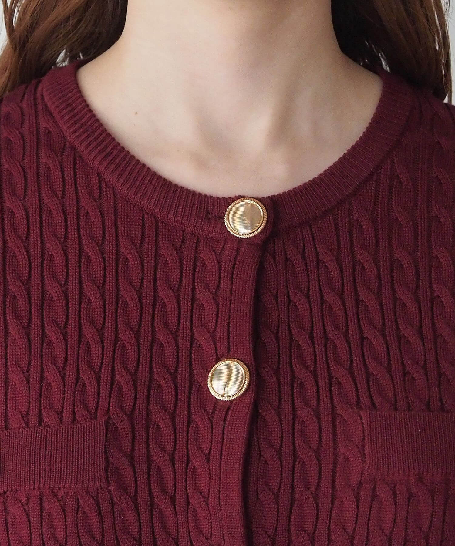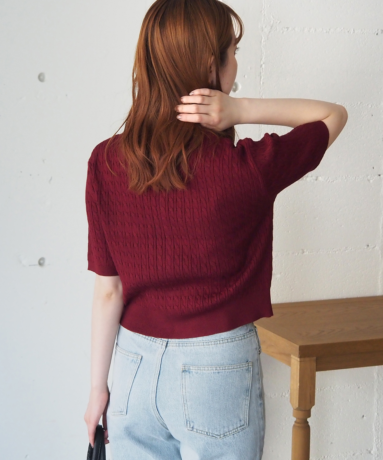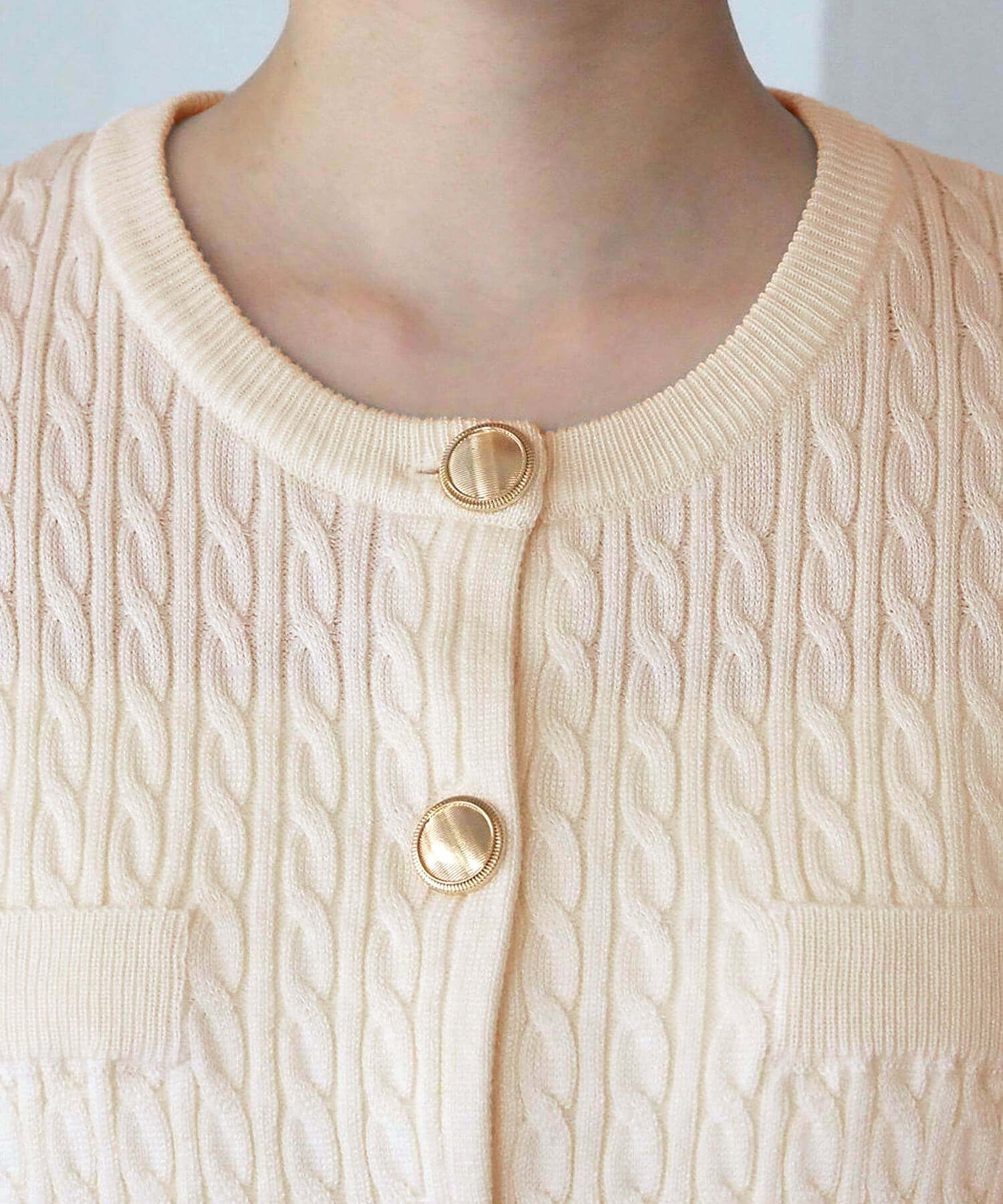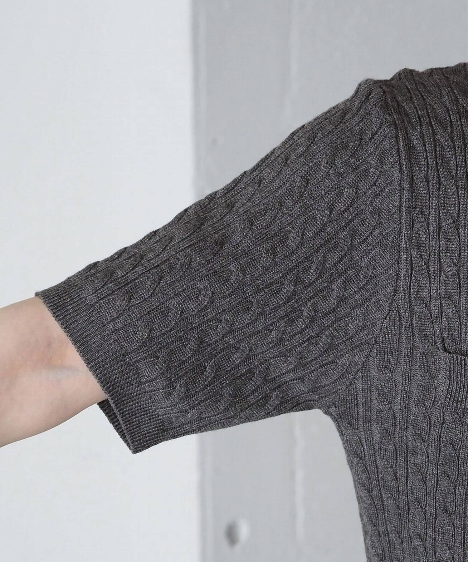 ・品のあるケーブル柄がトレンドライクな半袖ニットカーディガンです。