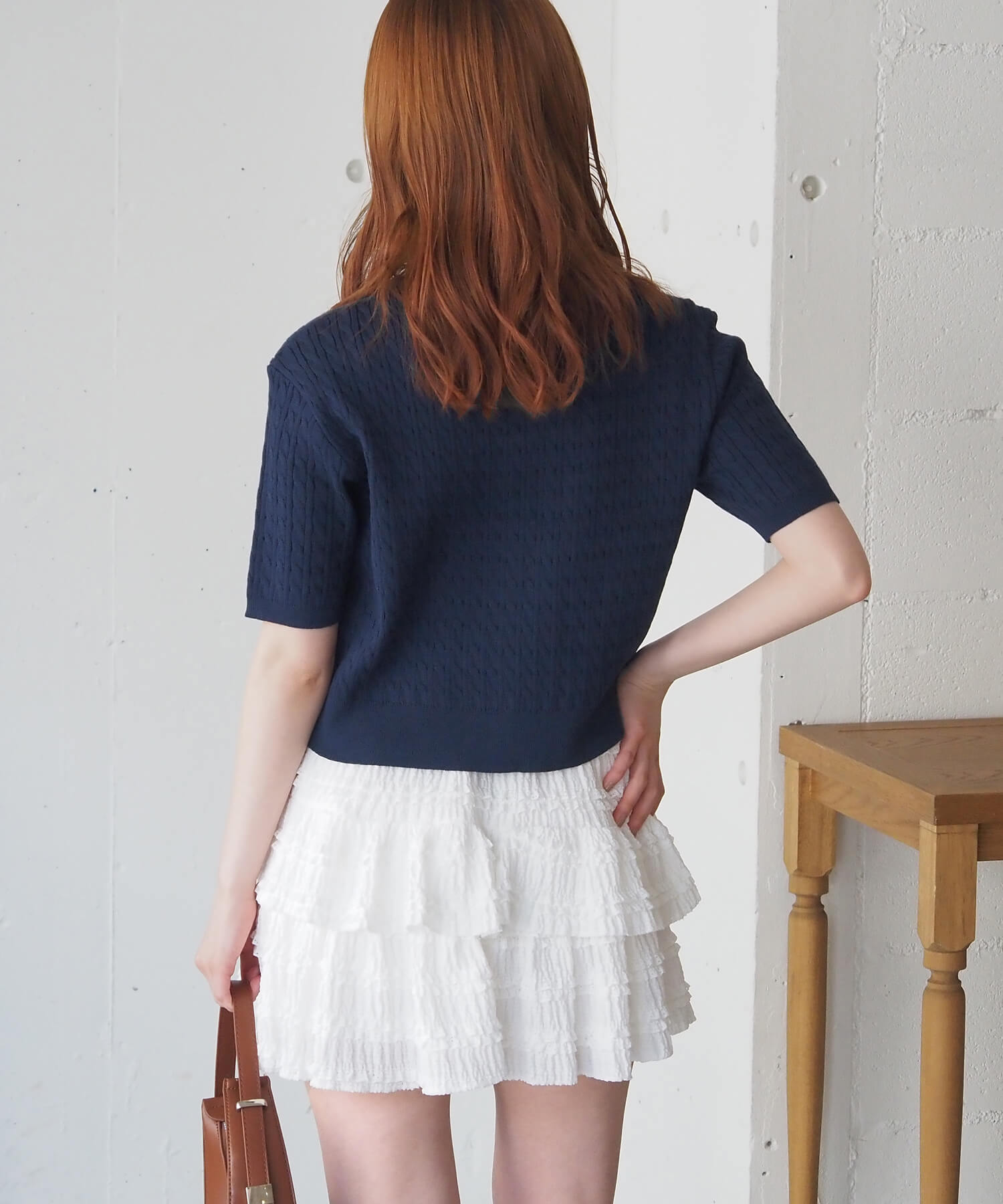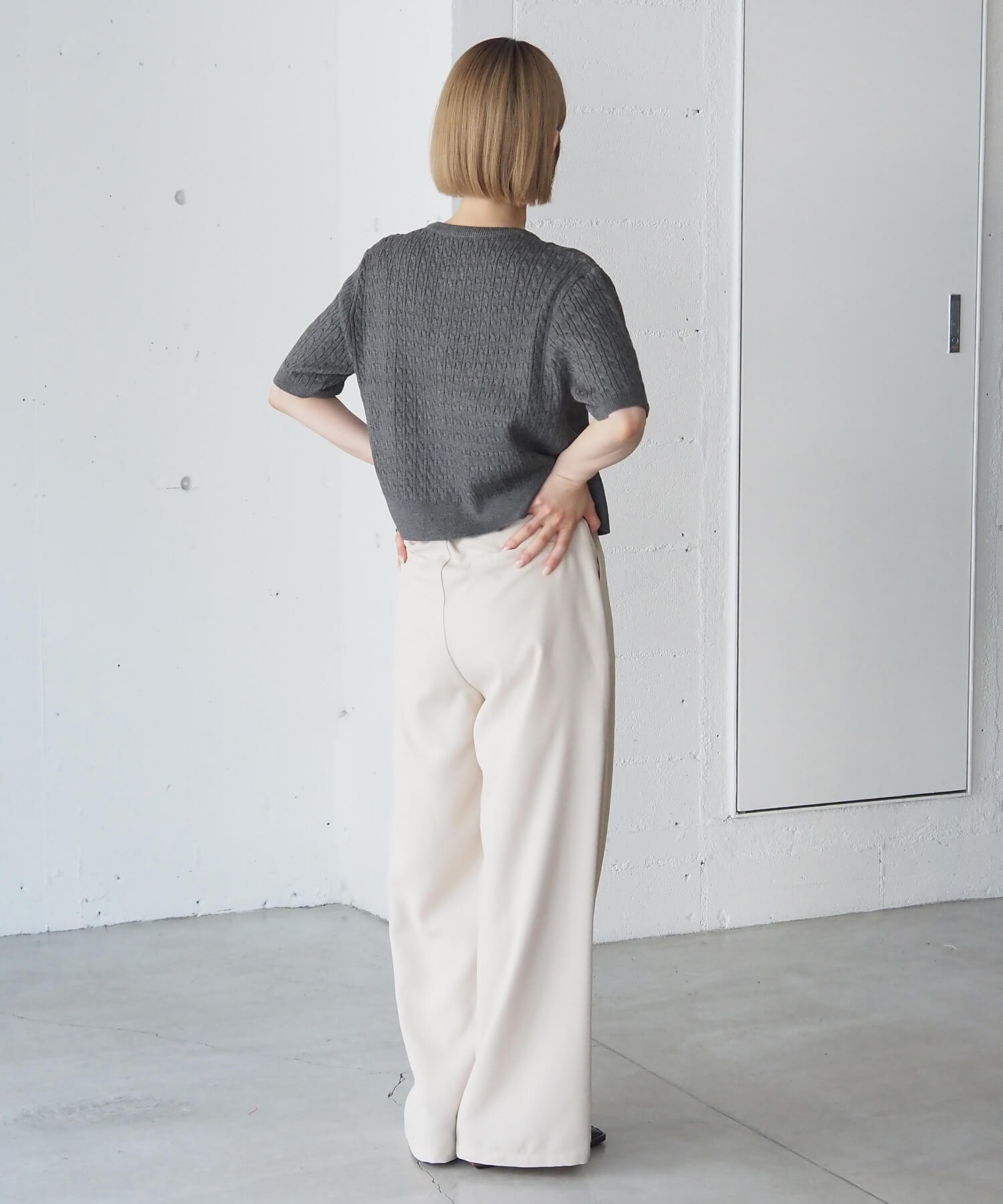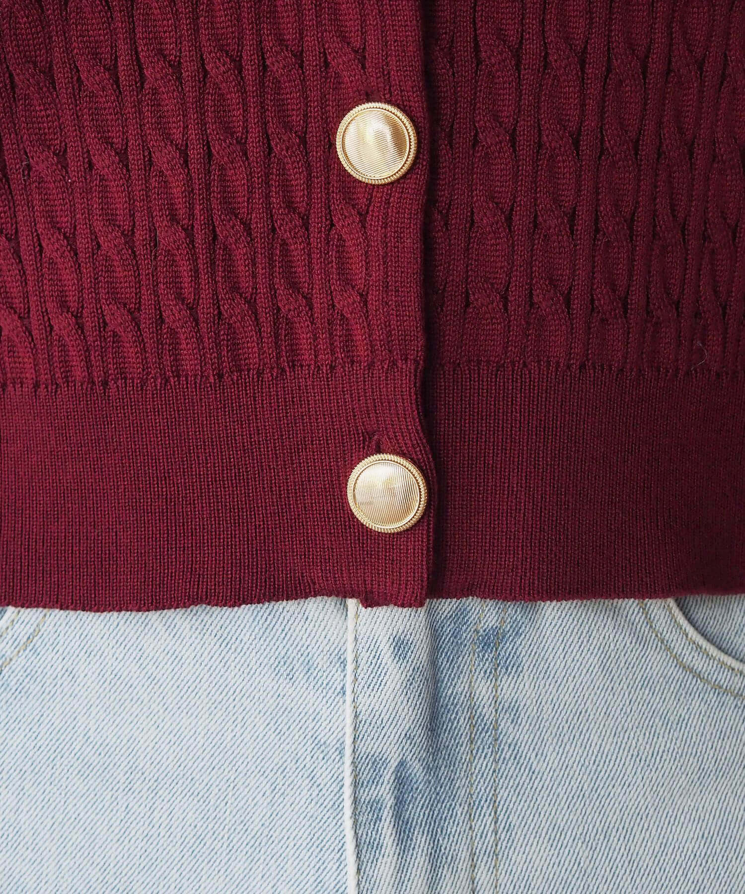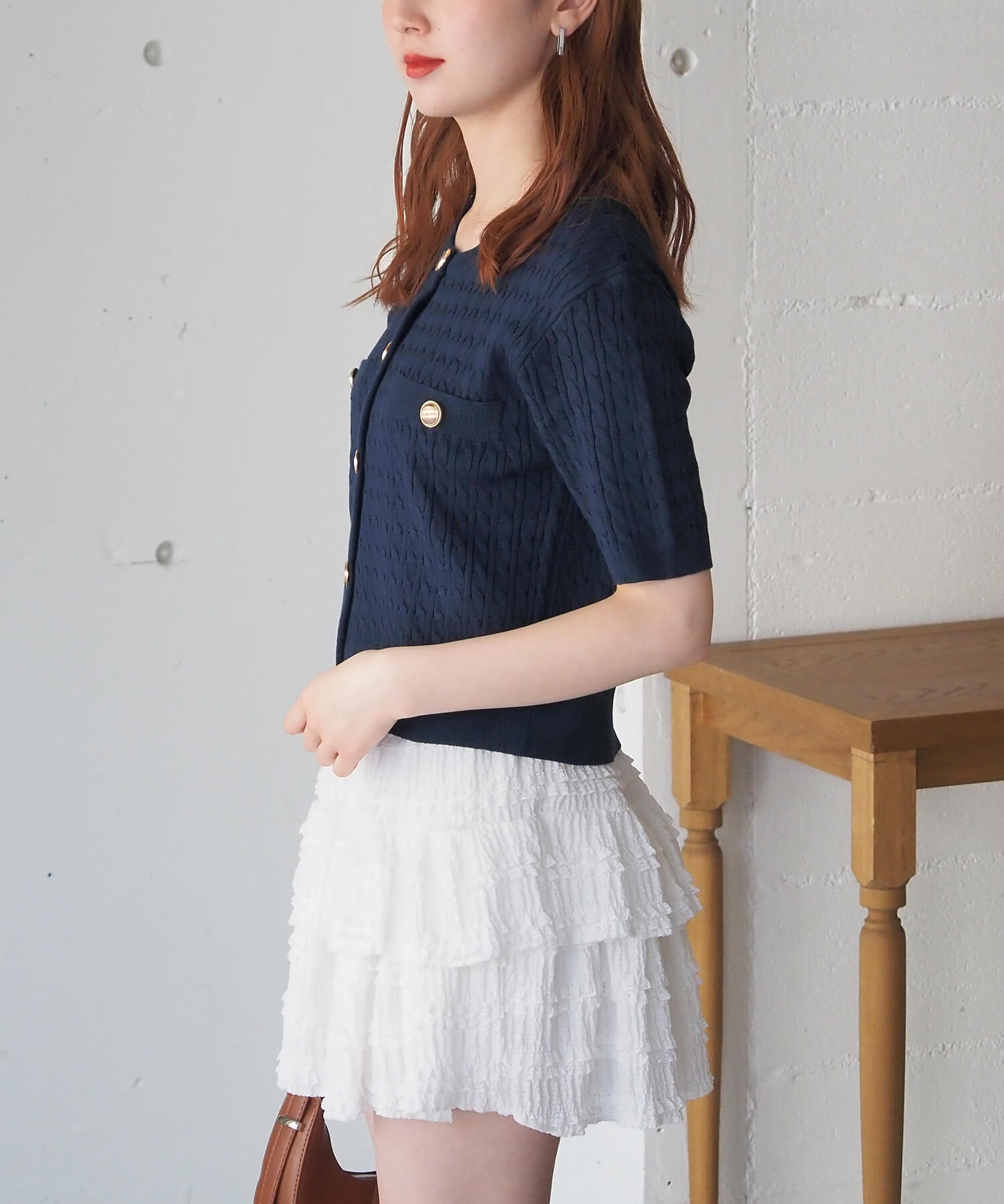 ・品のあるケーブル柄がトレンドライクな半袖ニットカーディガンです。