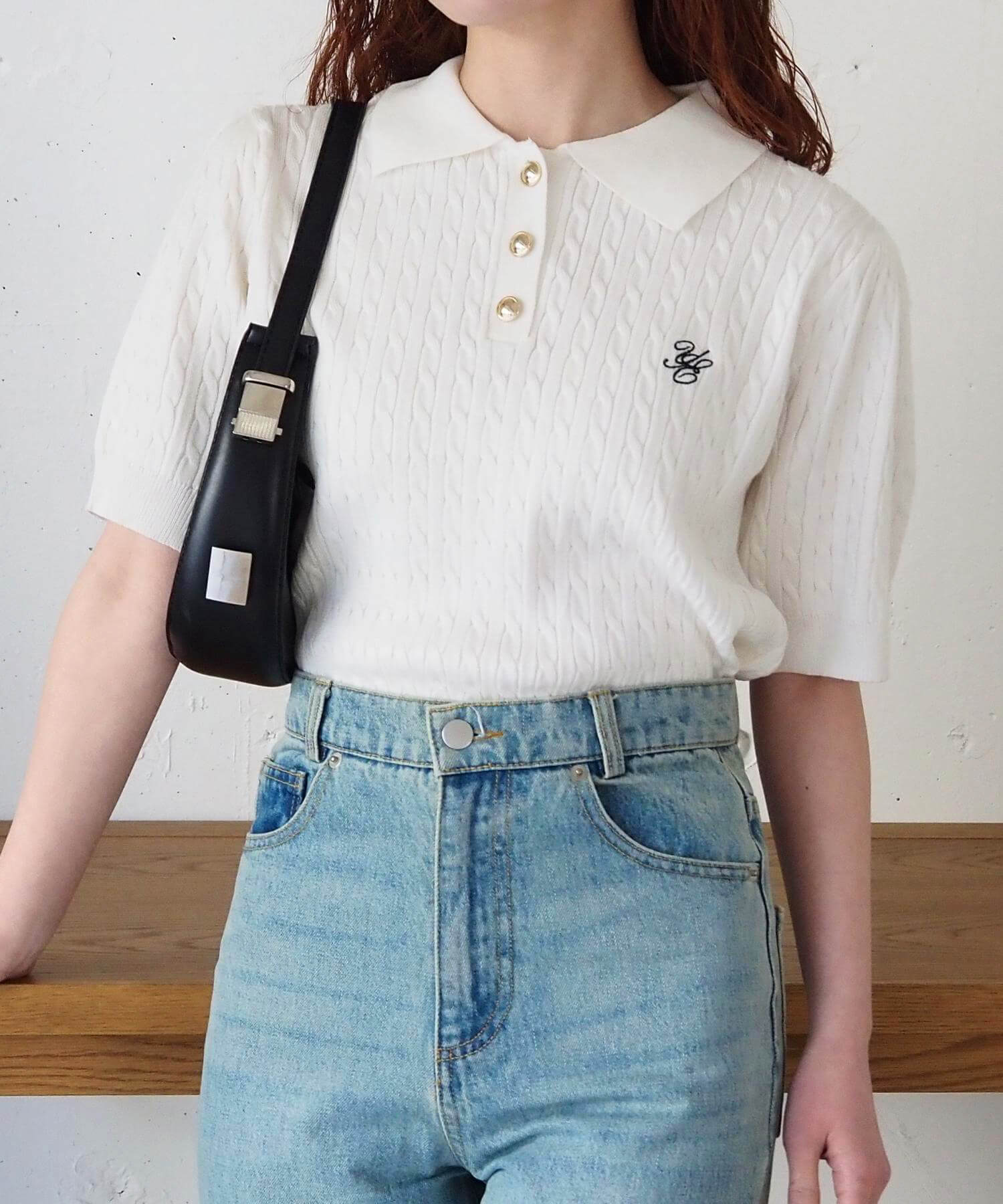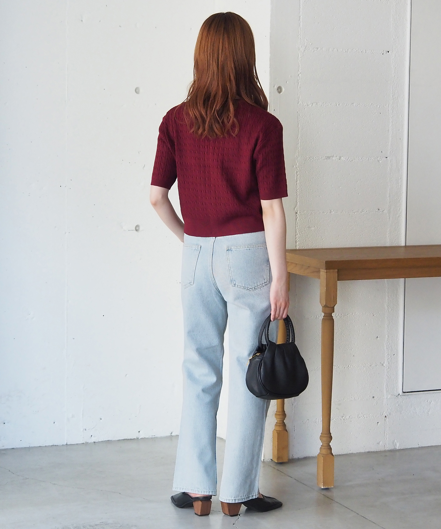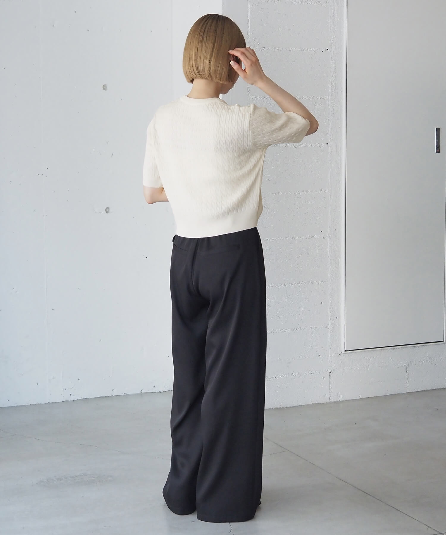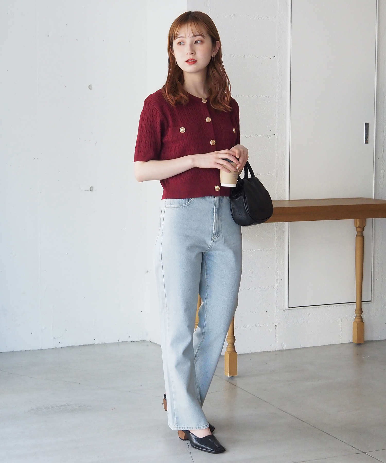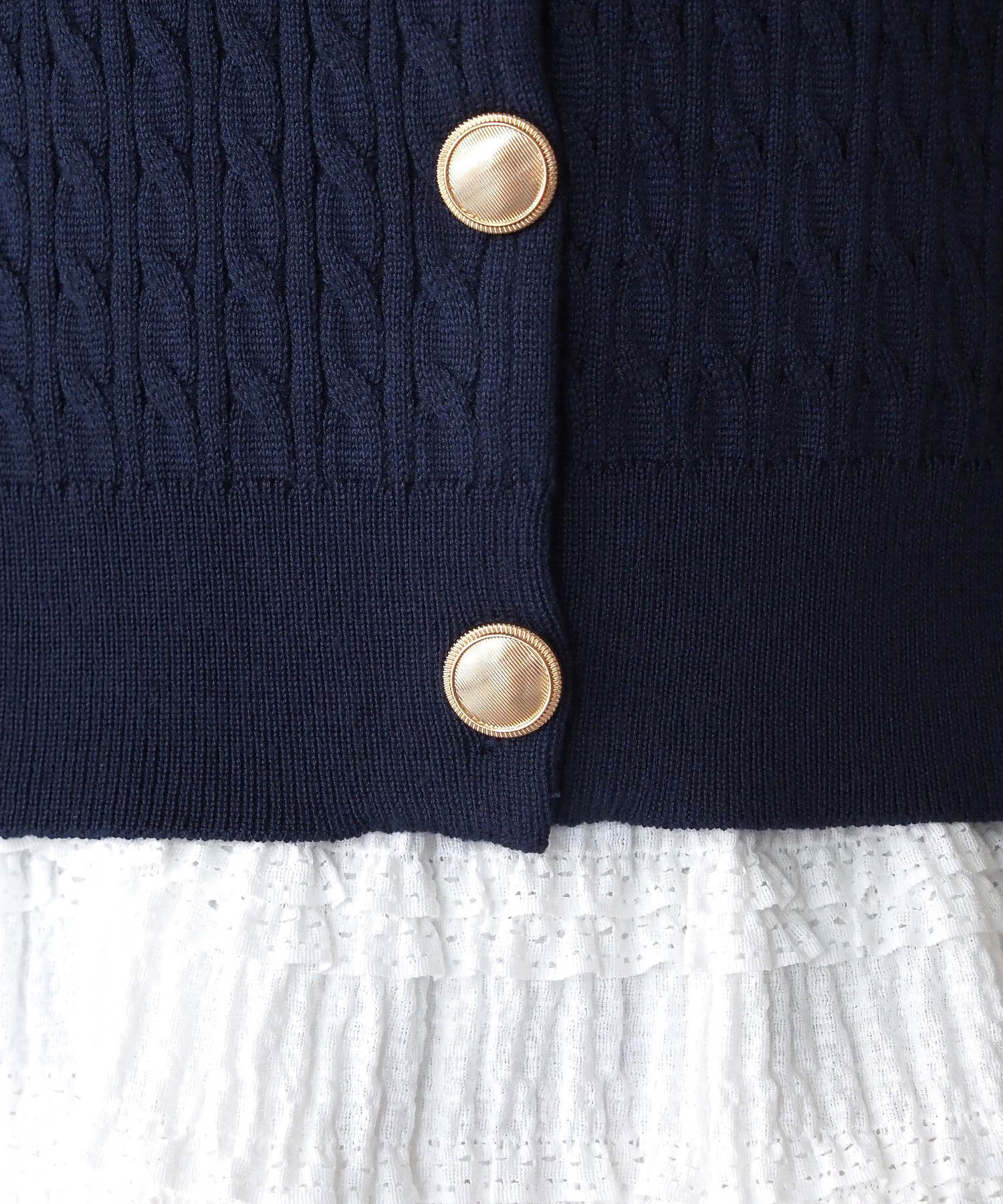 ・品のあるケーブル柄がトレンドライクな半袖ニットカーディガンです。
