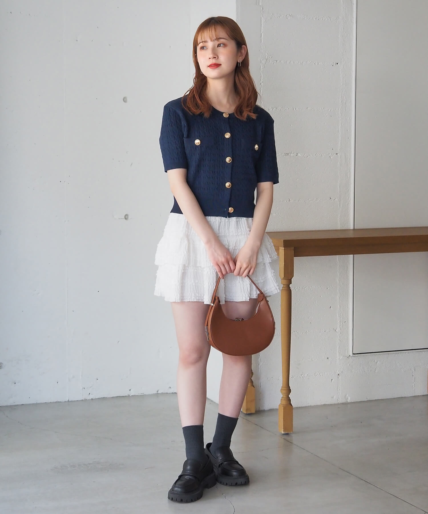 ・目線が上がるショート丈なので、ワンピースの羽織りとしてもおすすめ。スタイルアップが狙えます。