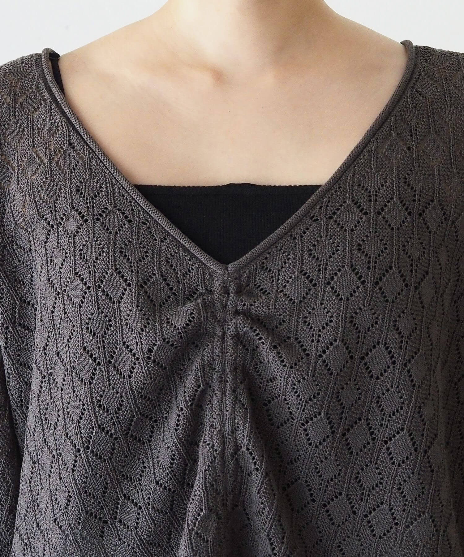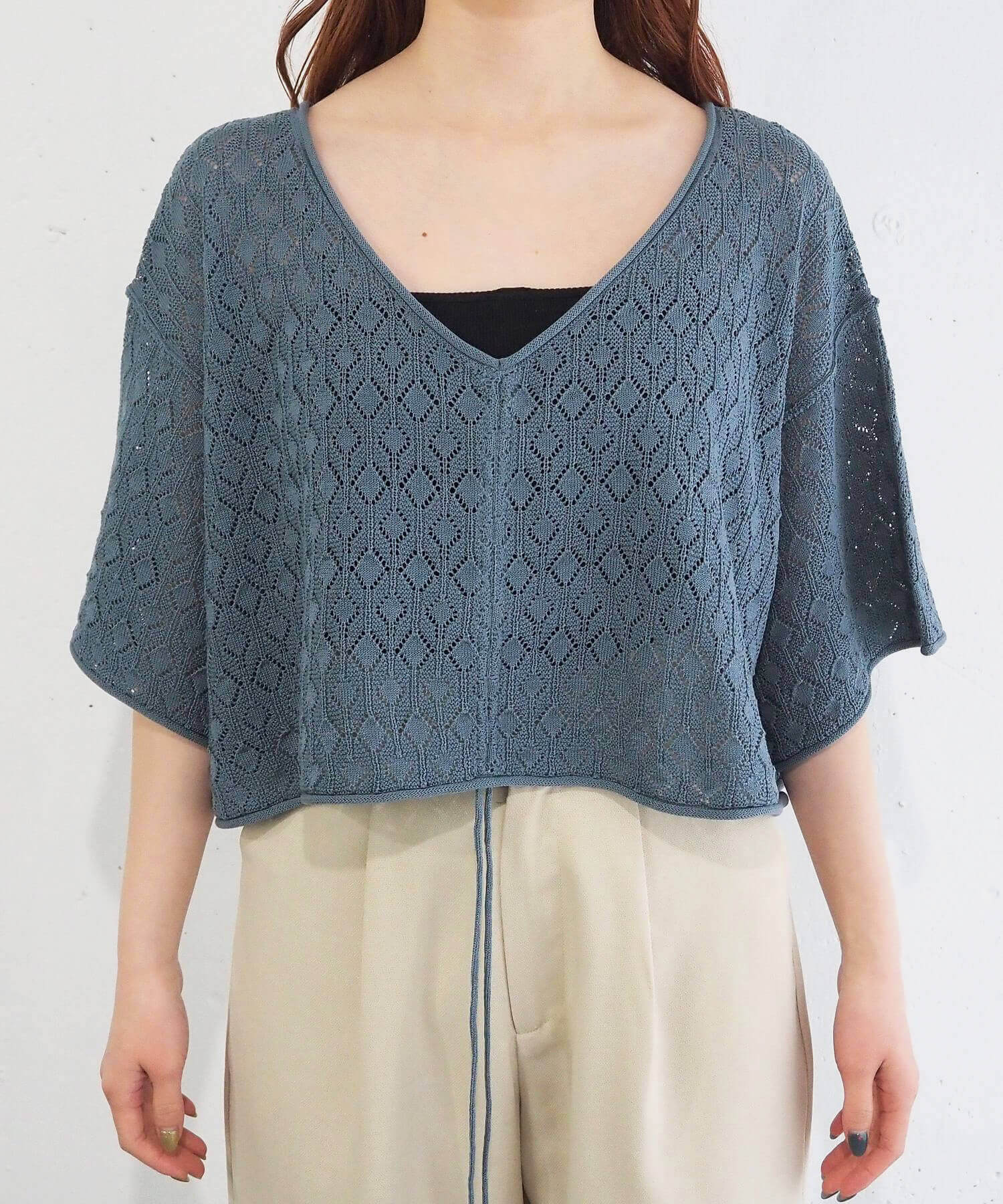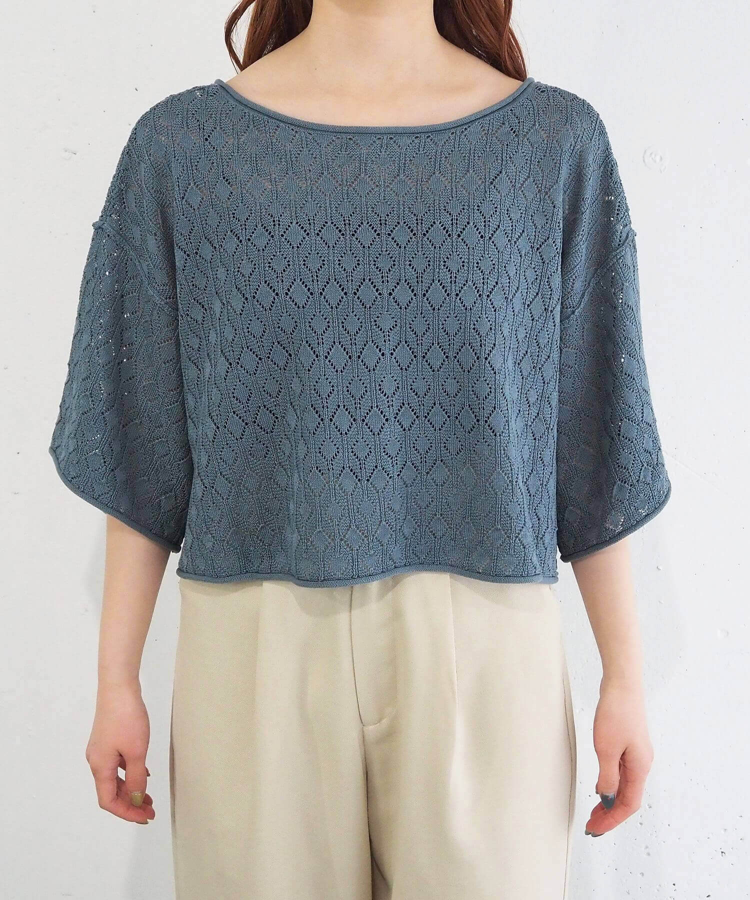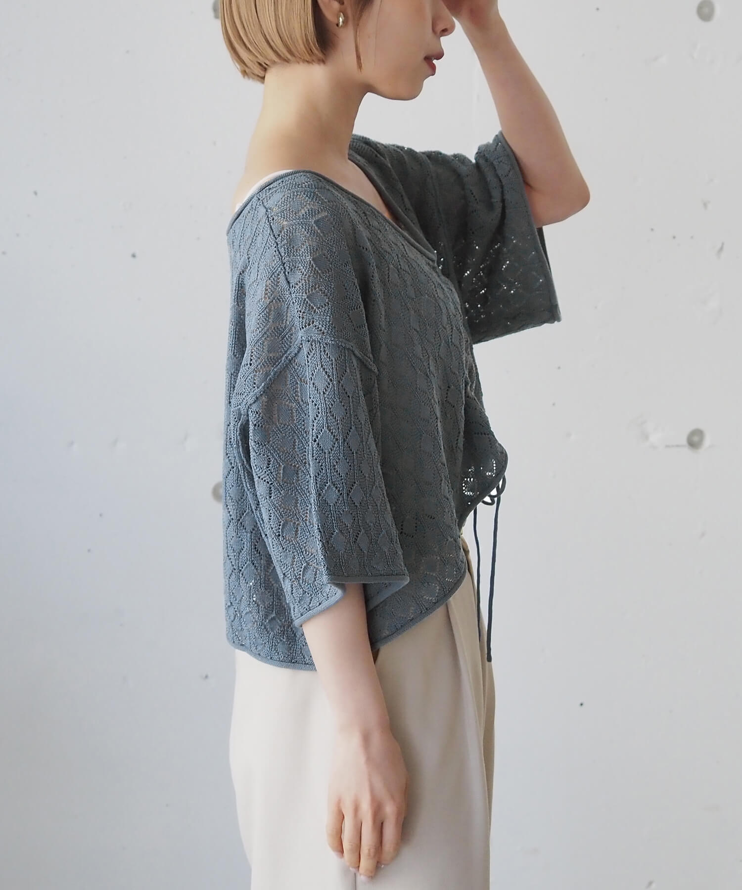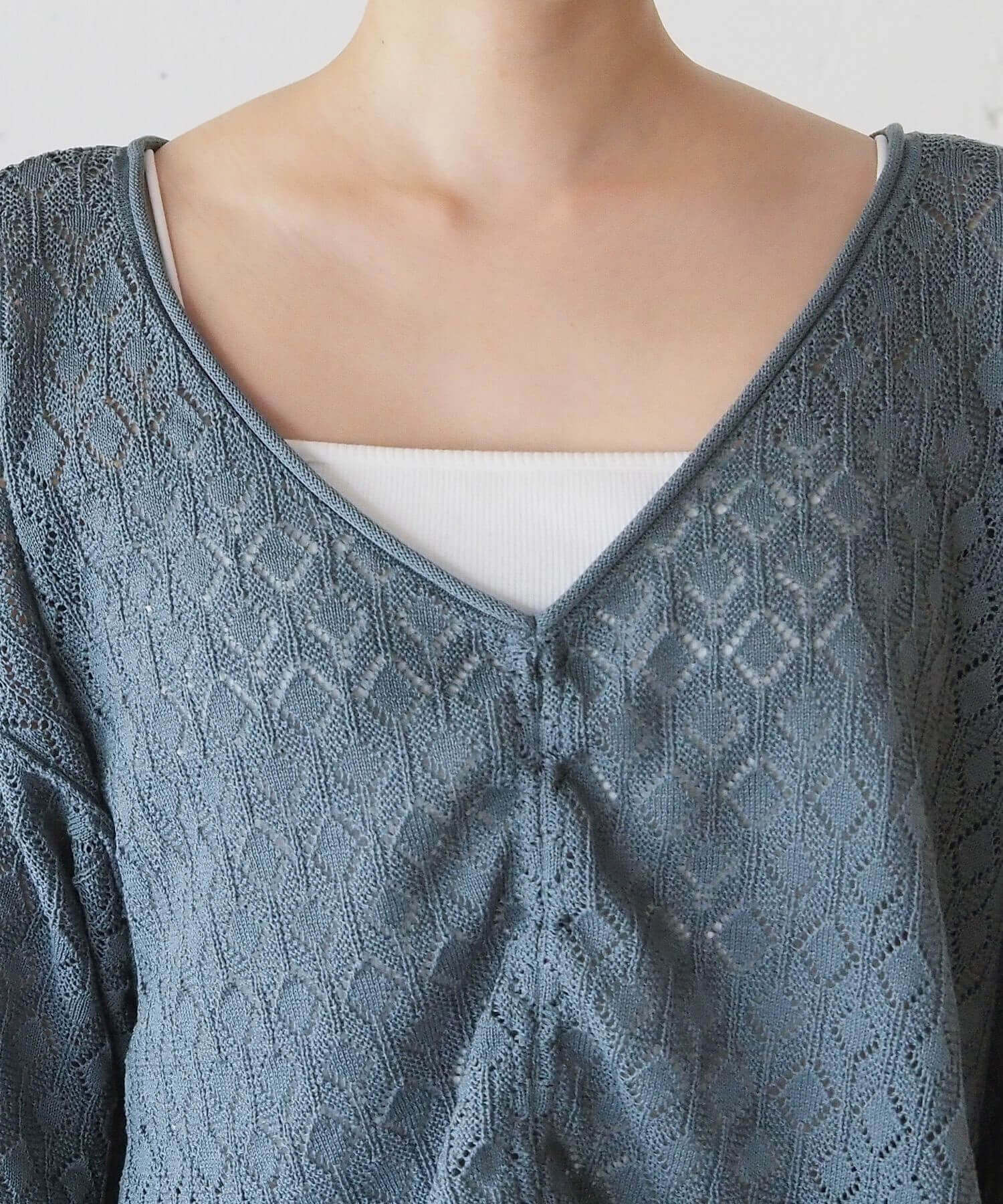 ・旬のドロストデザインとシンプルなクルーネックの前後2wayで着用できるシアーニットです。