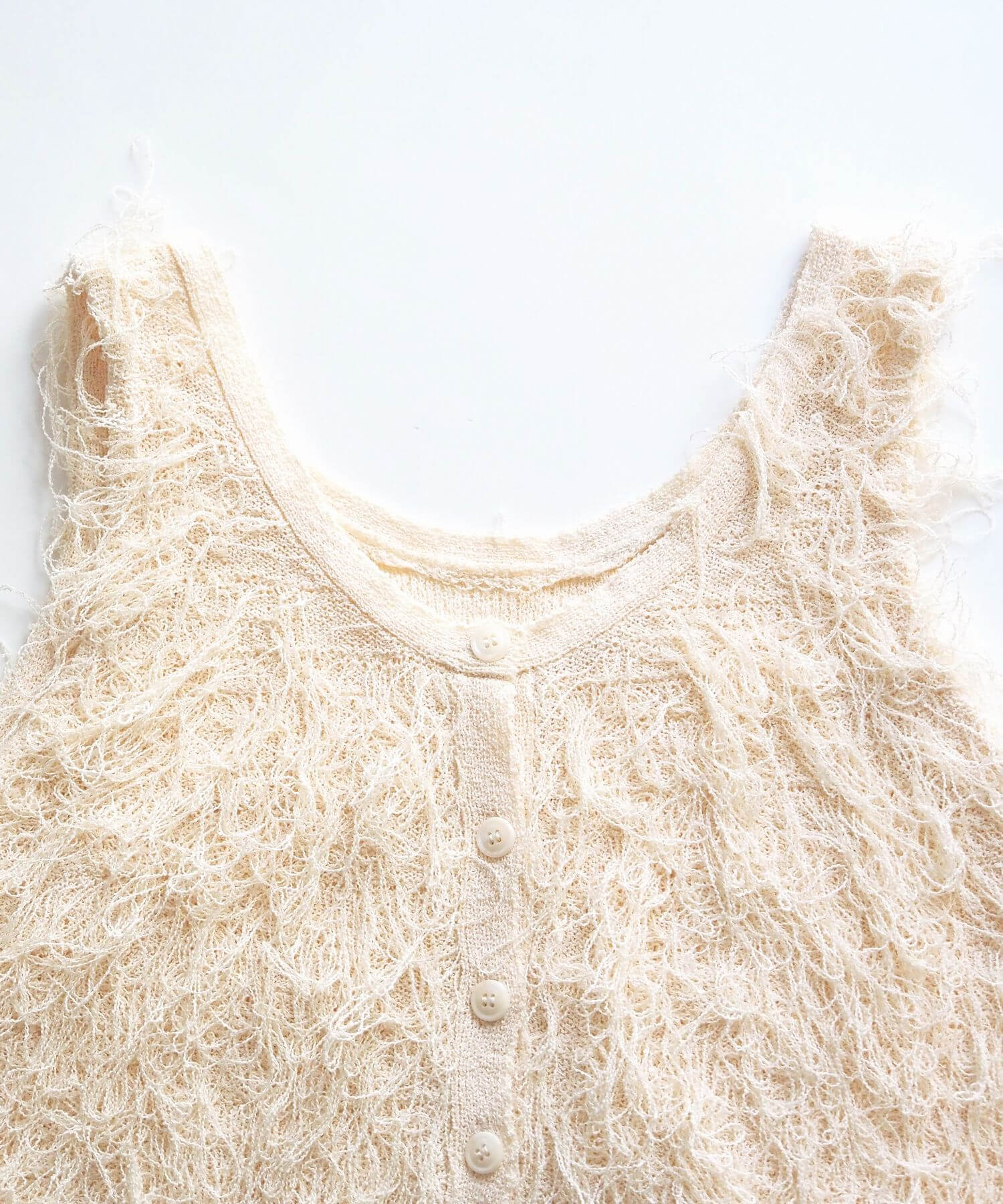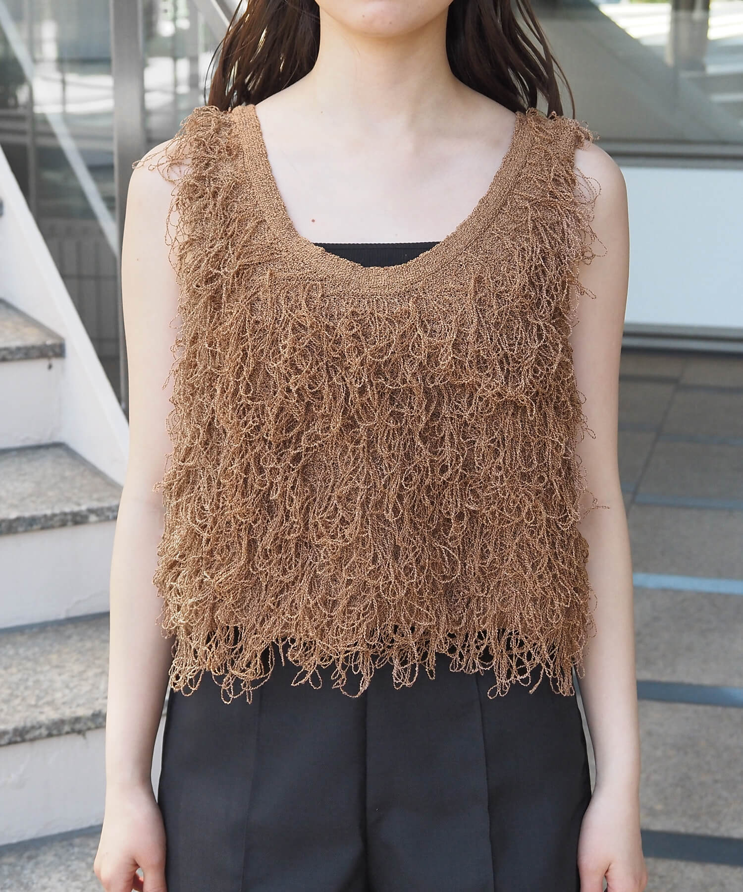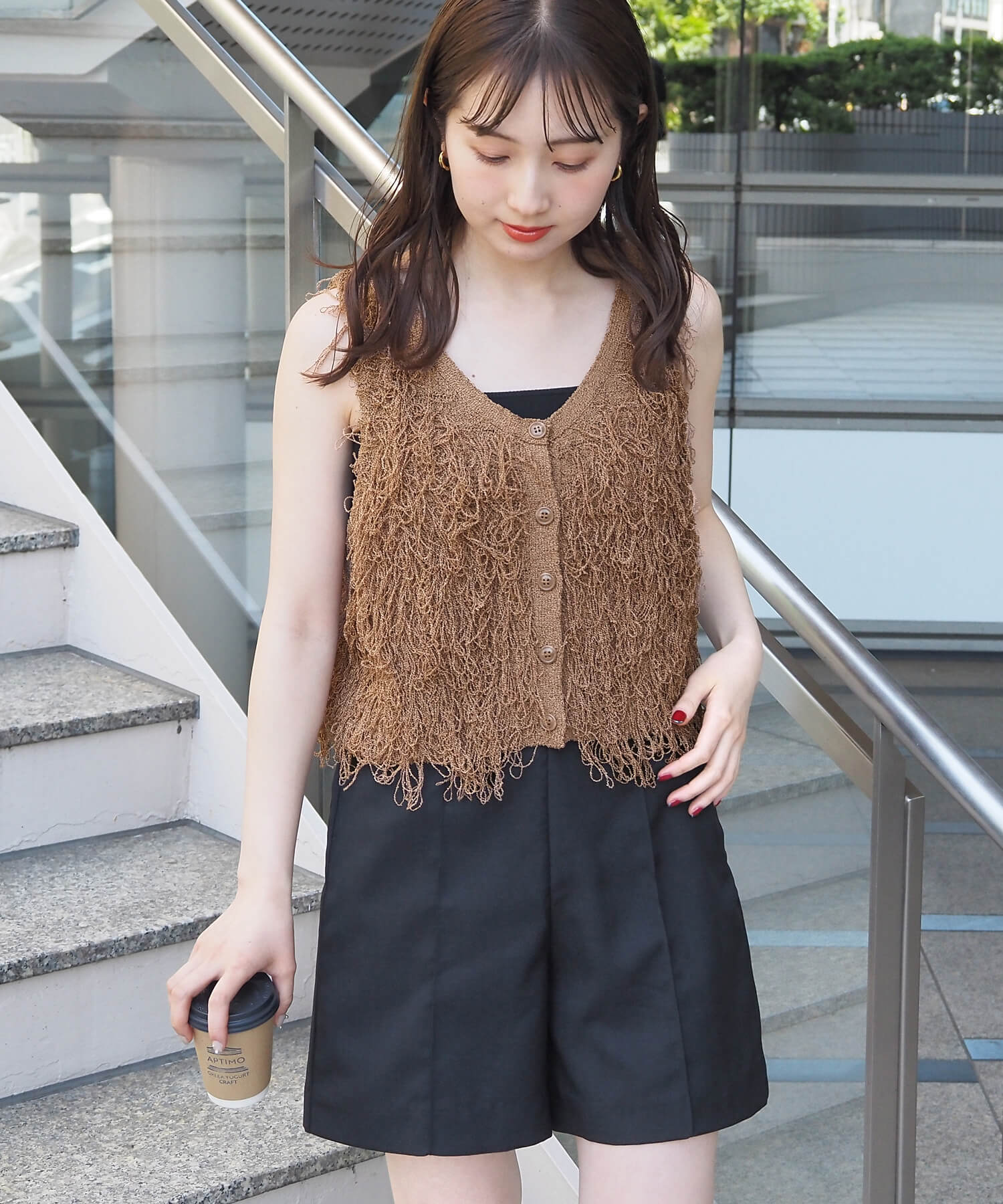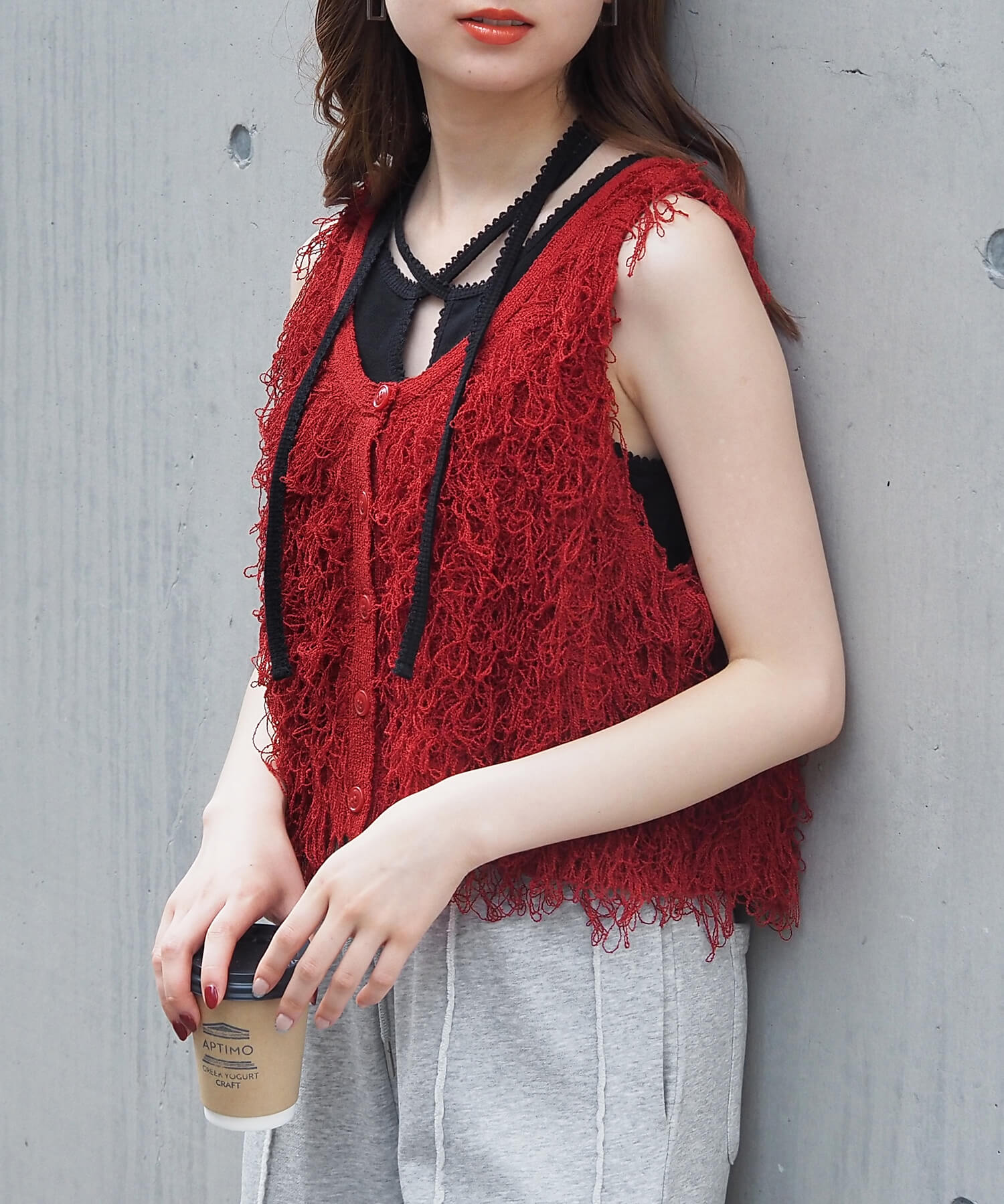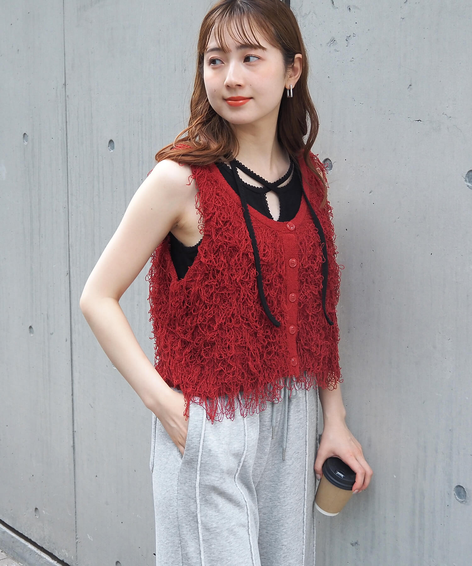 ・表情のあるフリンジ生地が魅力のショート丈ベストです。