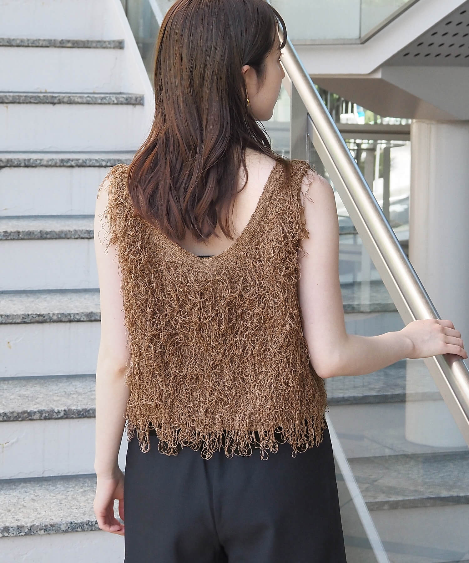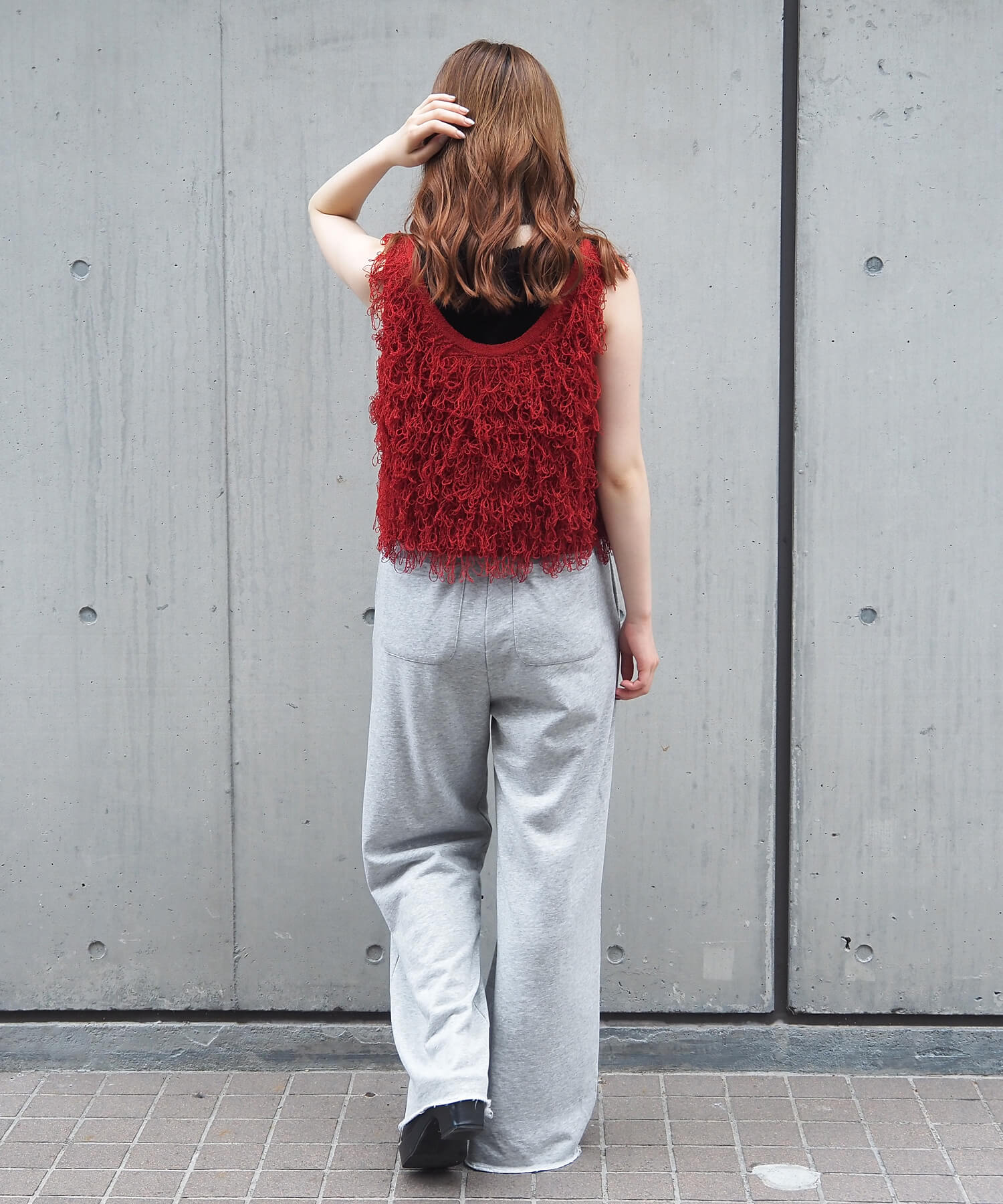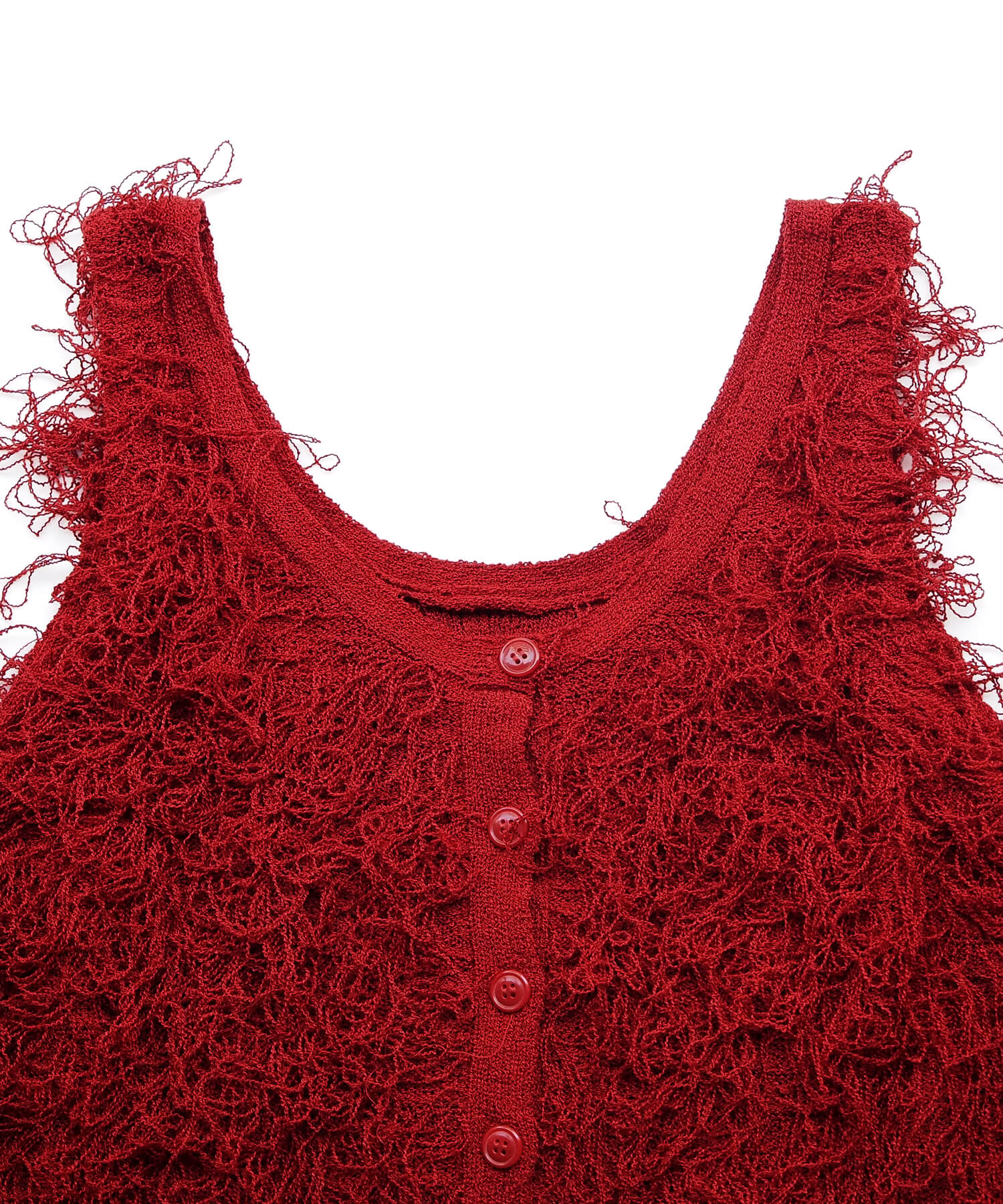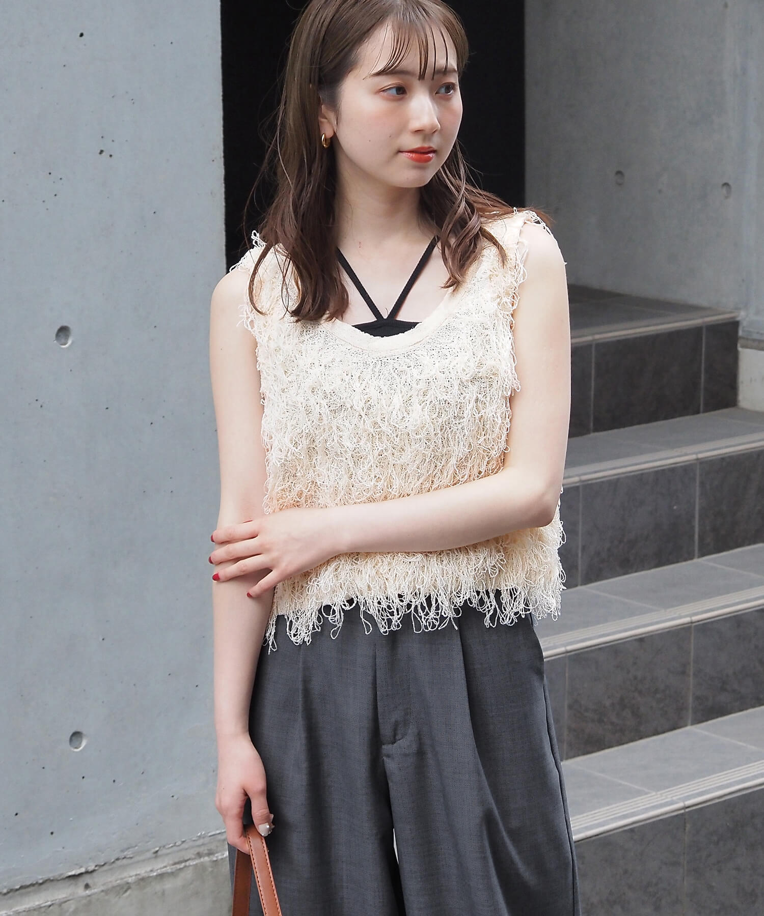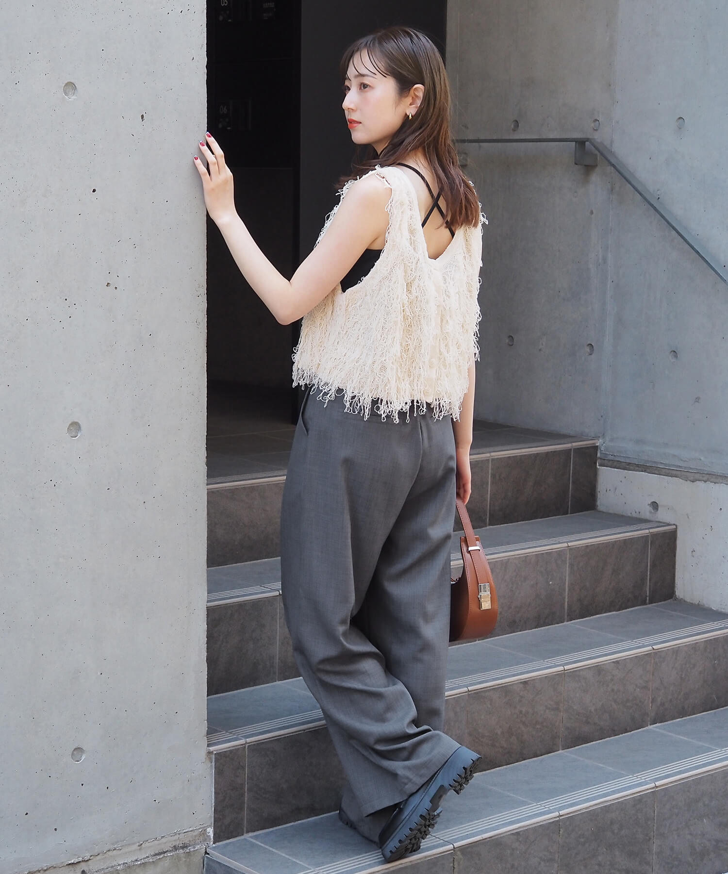 ・表情のあるフリンジ生地が魅力のショート丈ベストです。