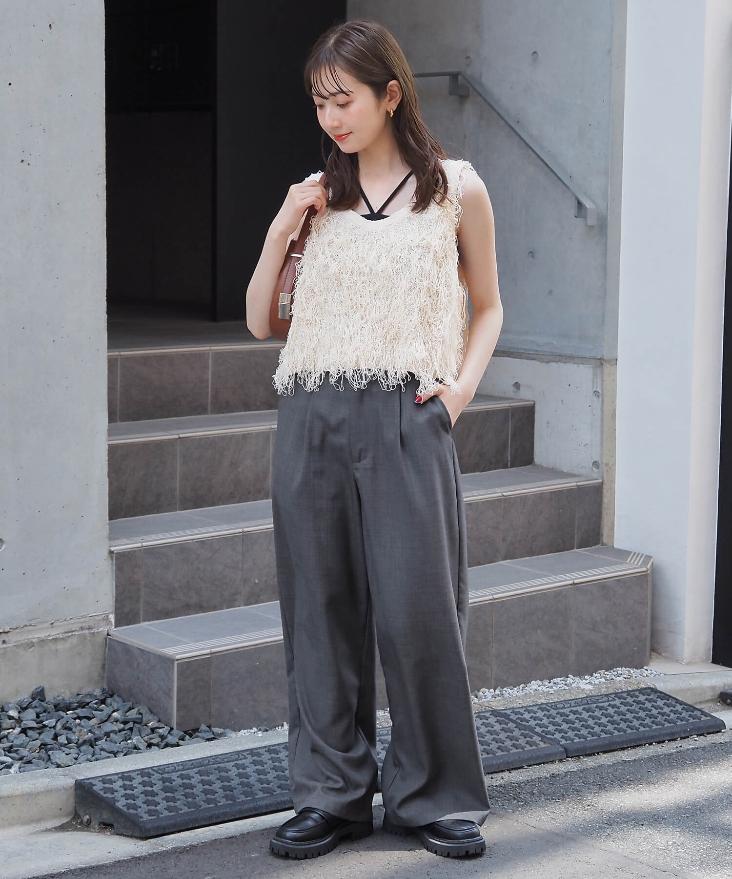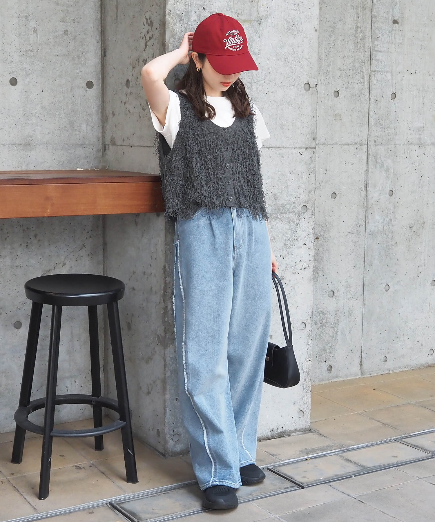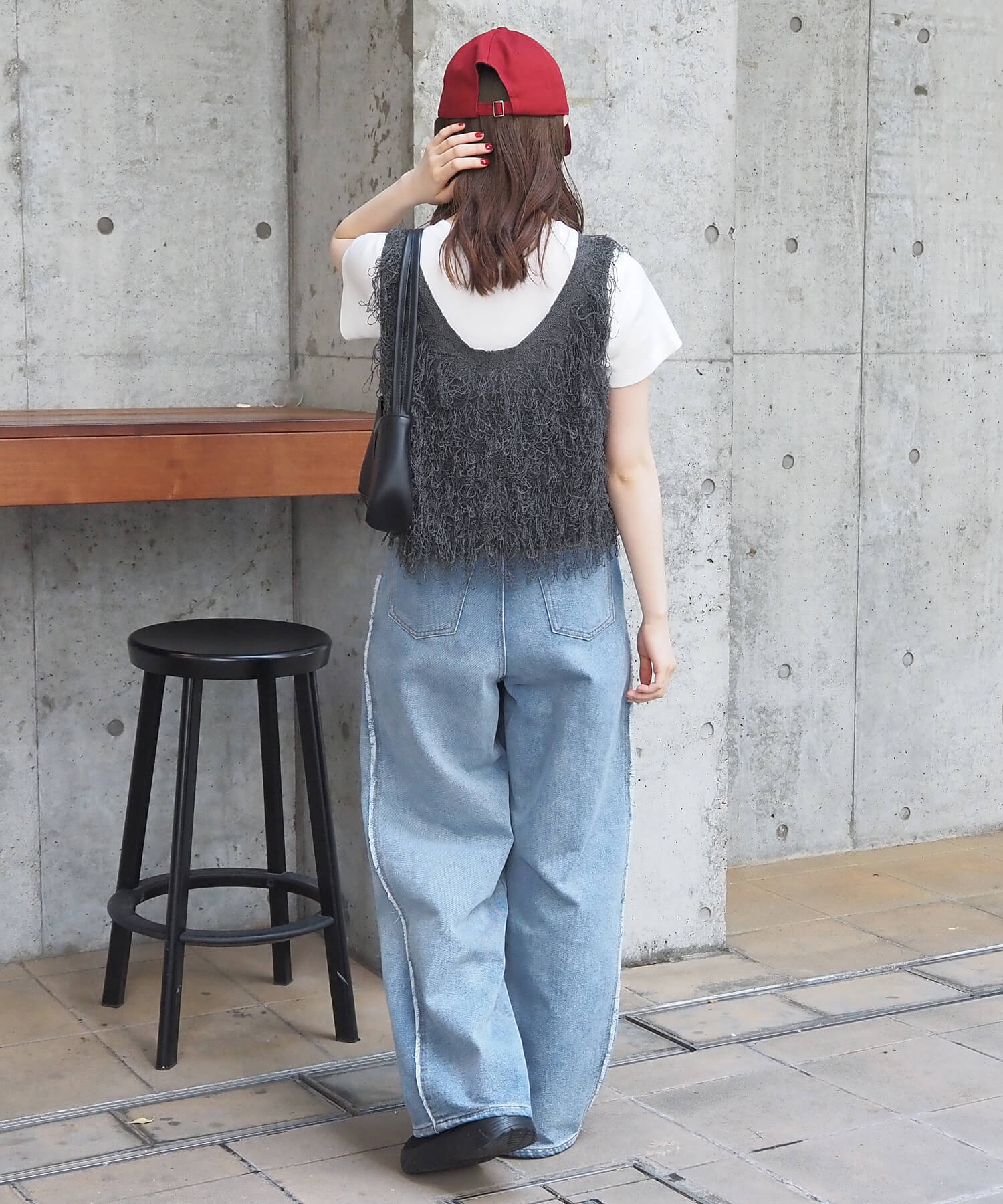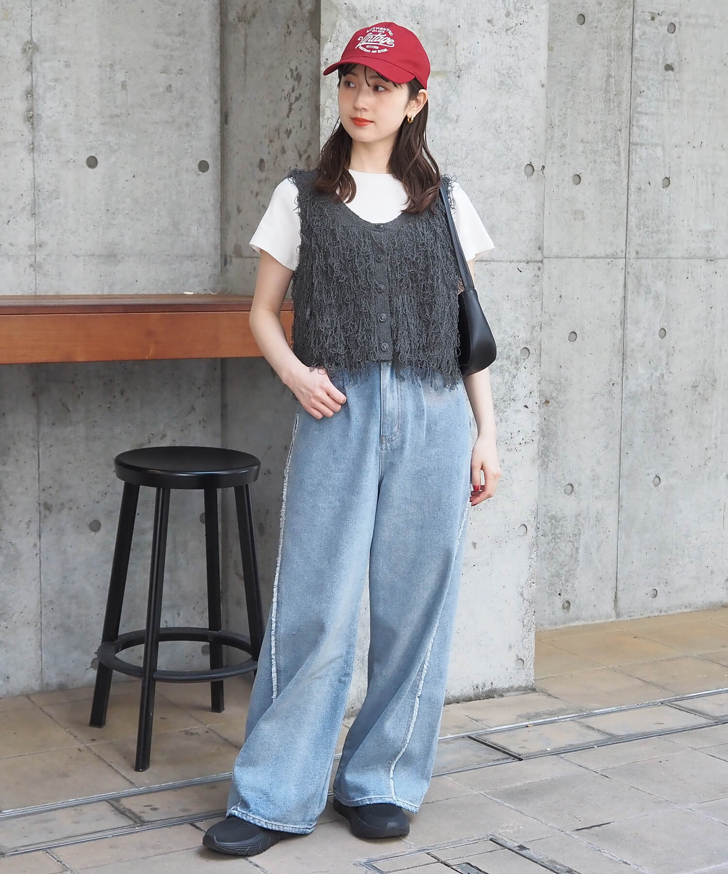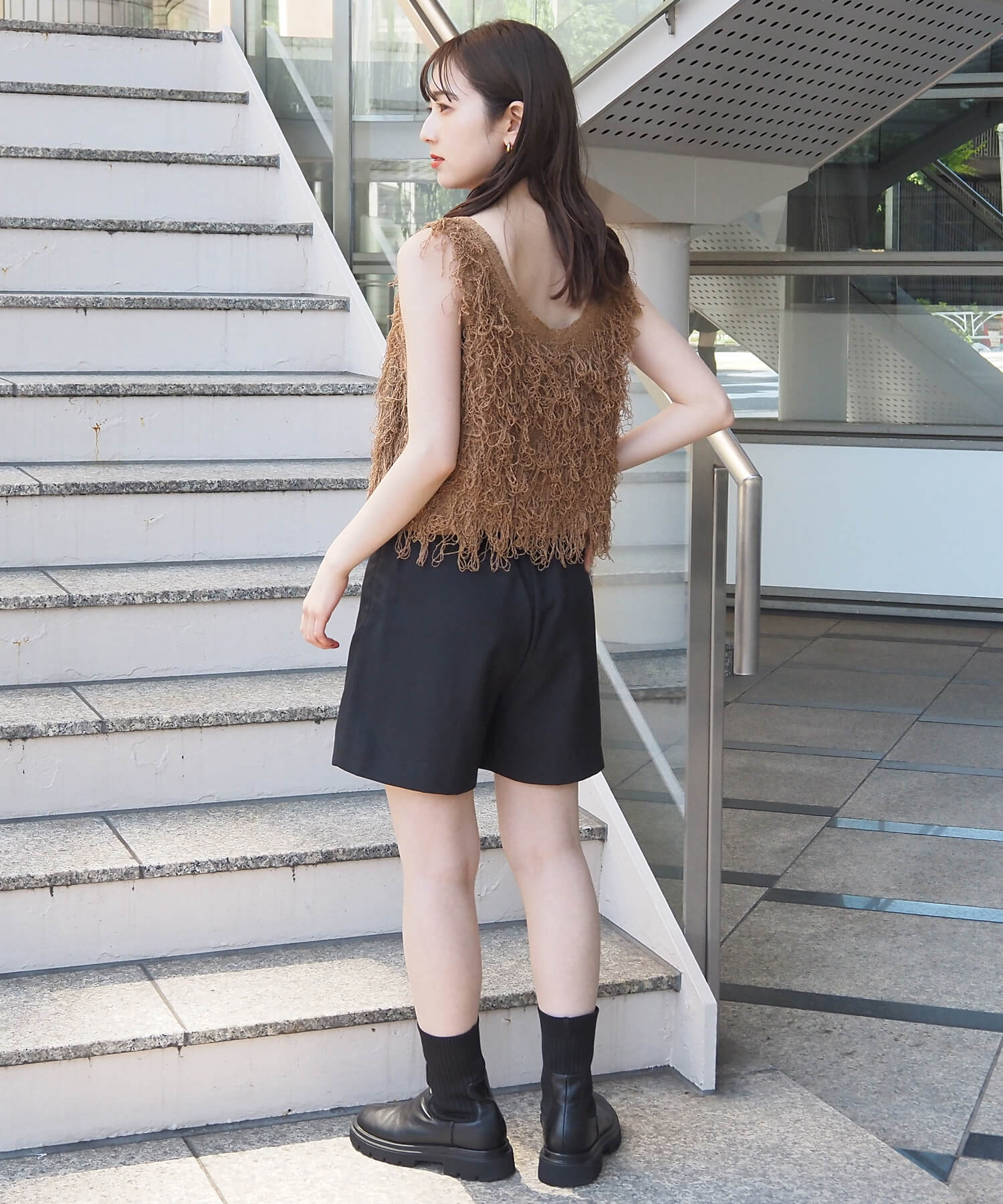 ・表情のあるフリンジ生地が魅力のショート丈ベストです。