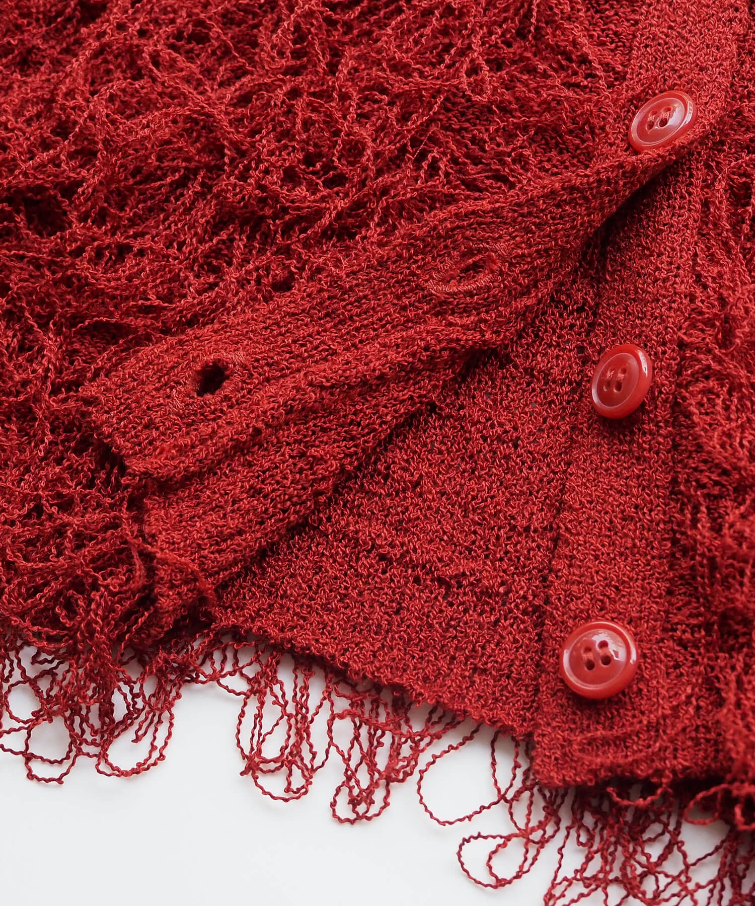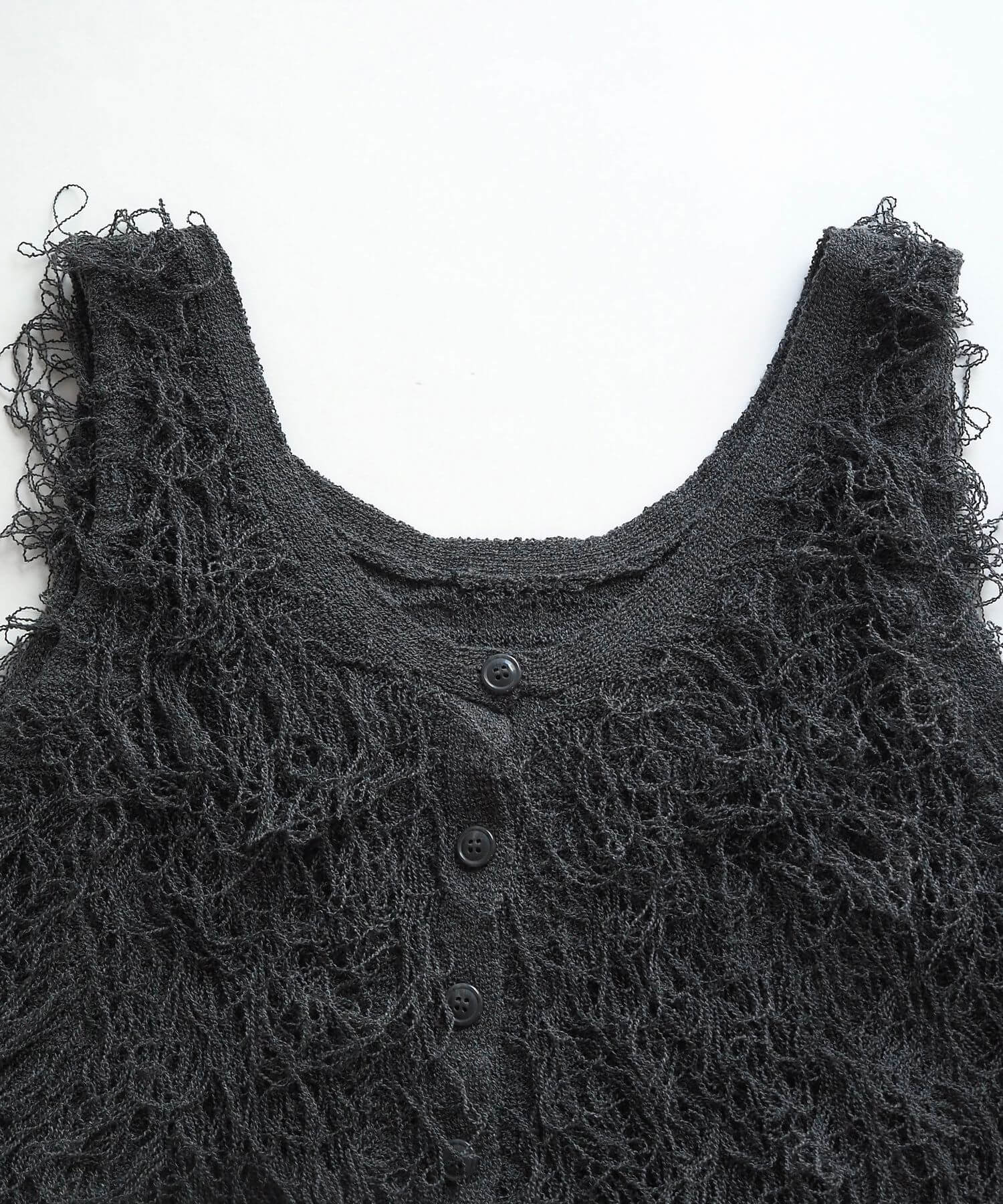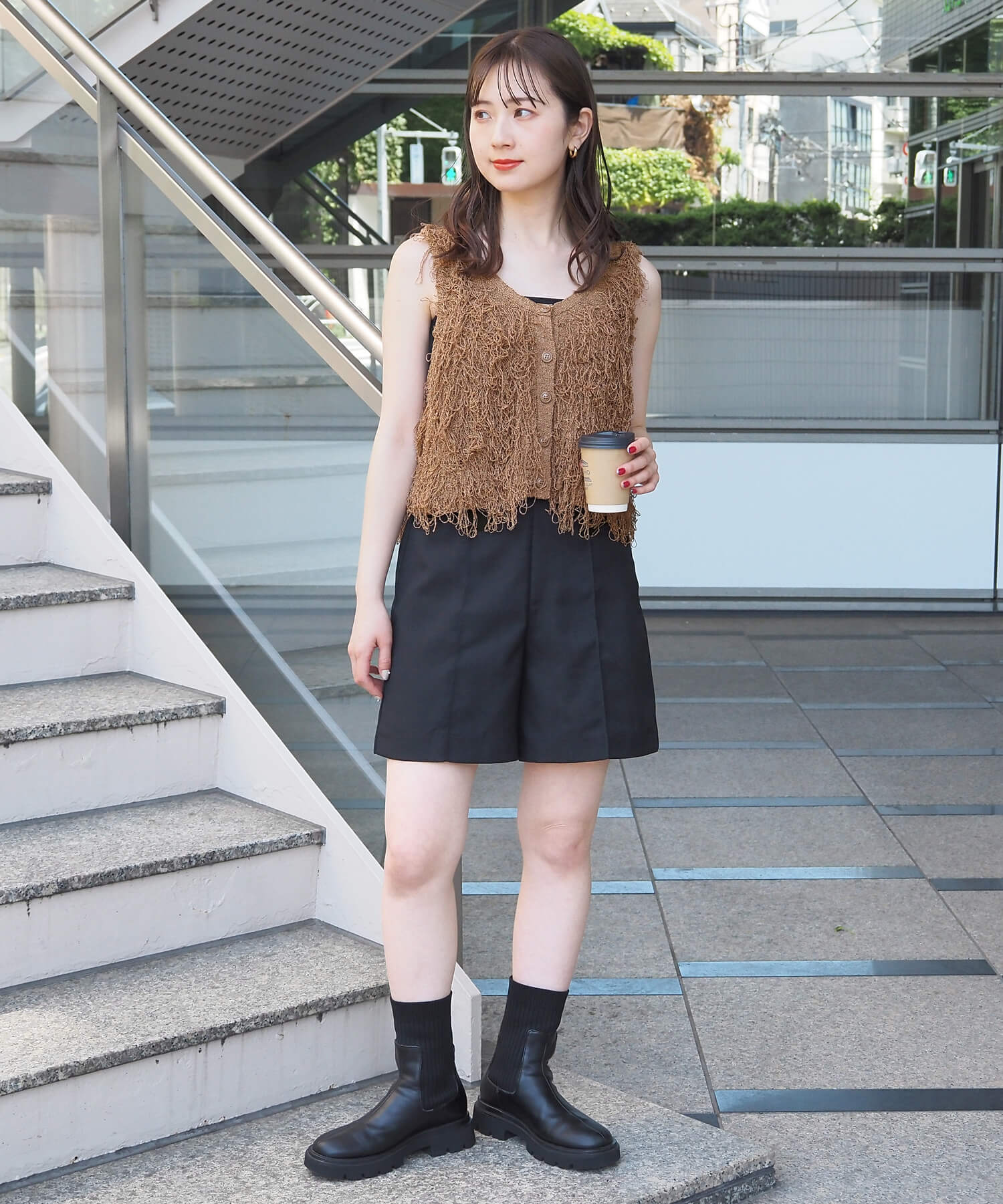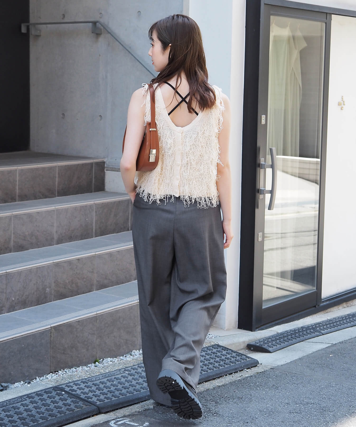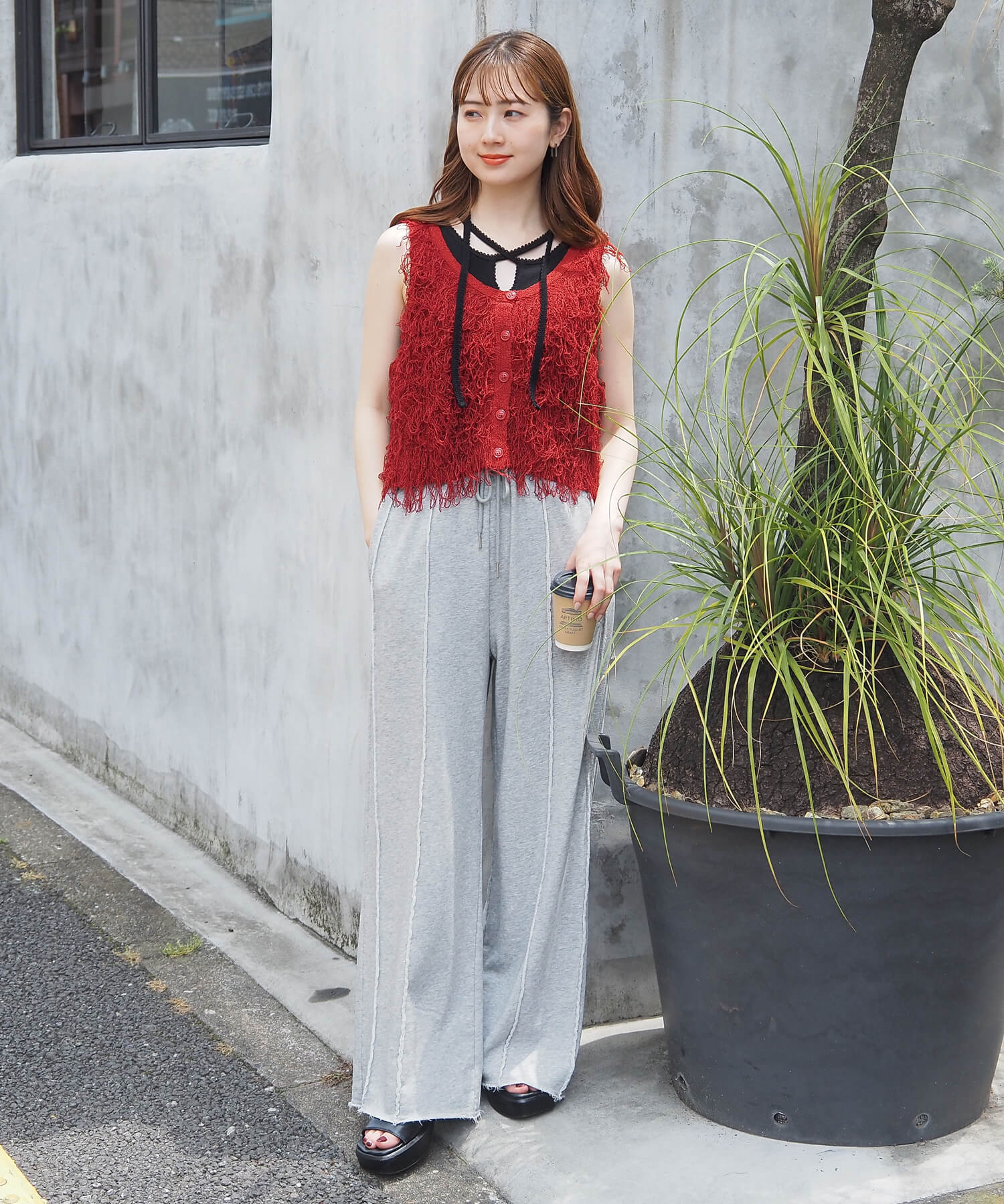 ・表情のあるフリンジ生地が魅力のショート丈ベストです。