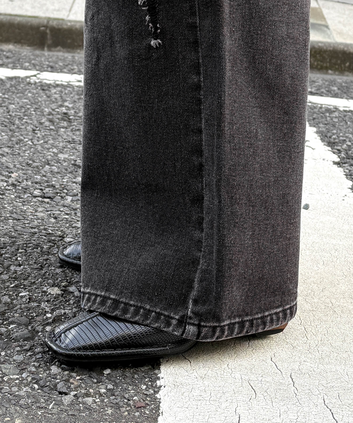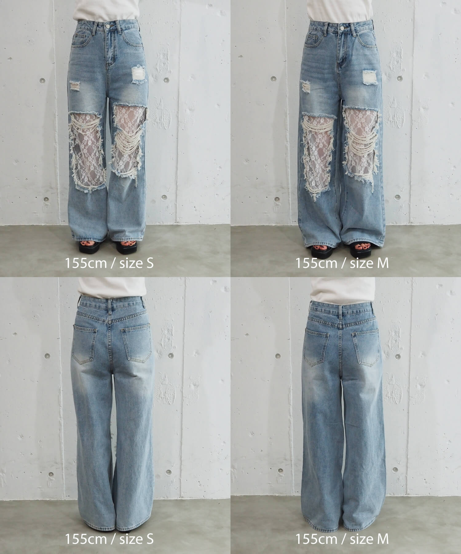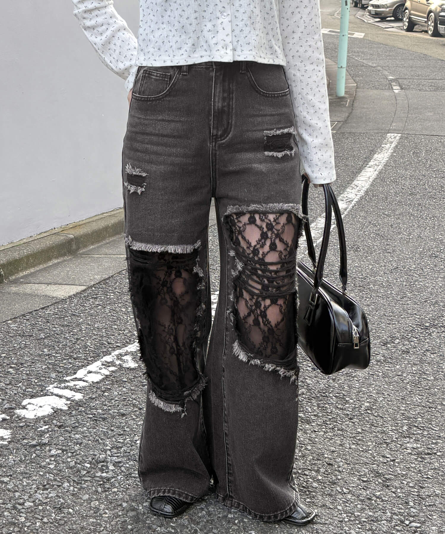 ・大胆なダメージ加工に、ガーリーなレースでハードになりすぎないのがポイント。