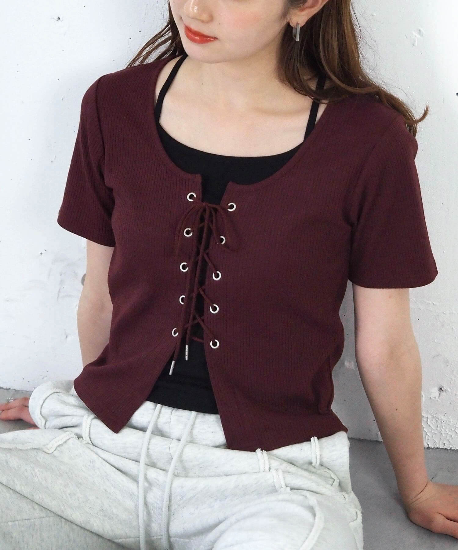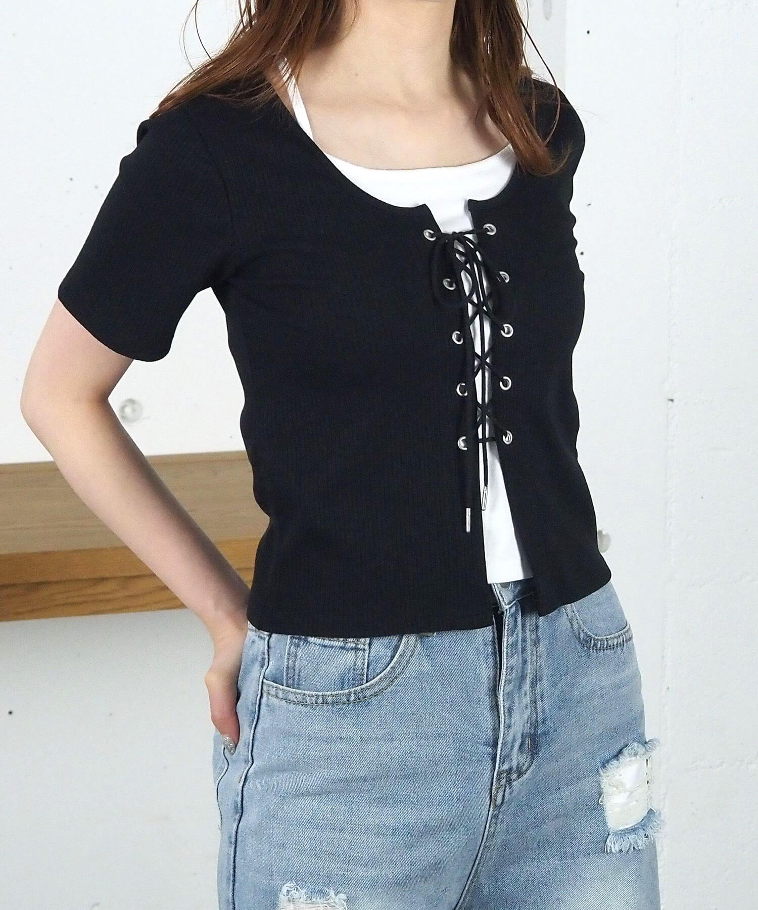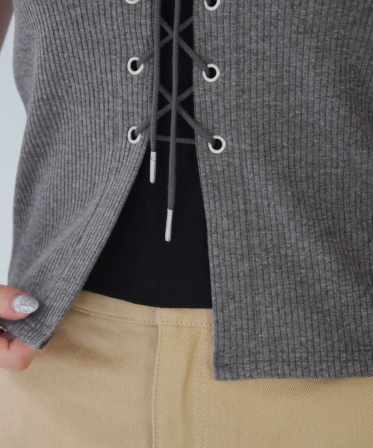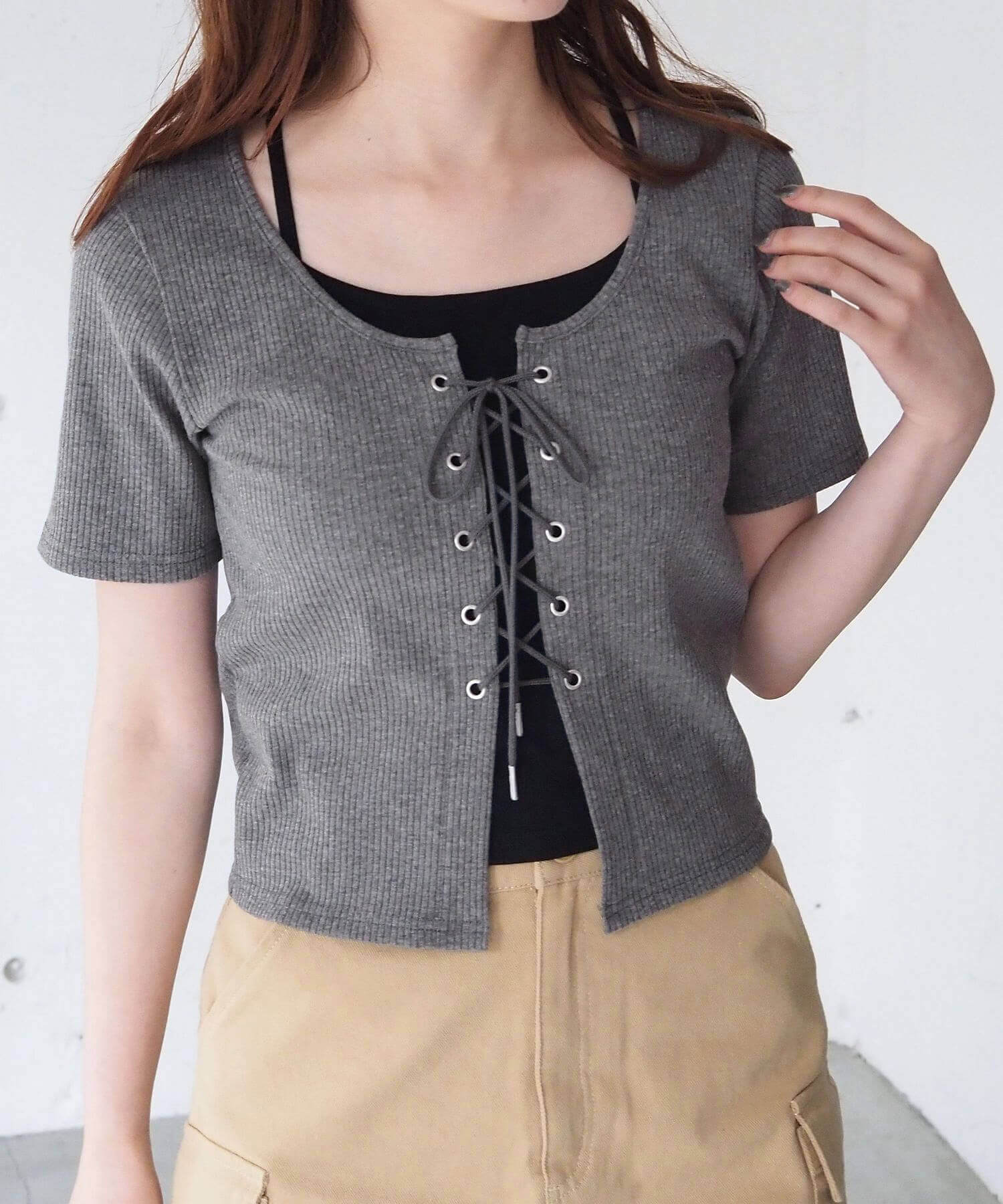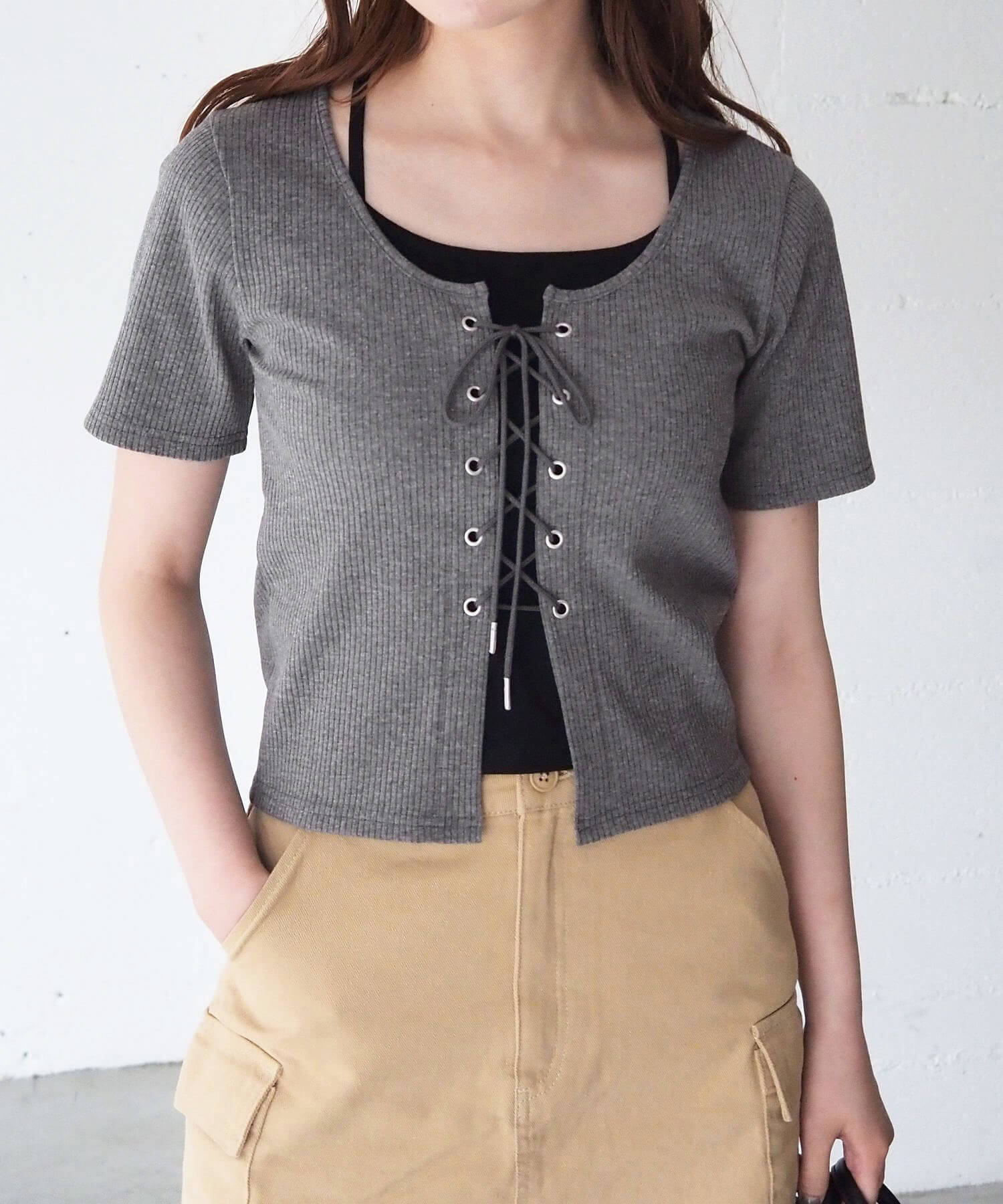 ・フロントのレースアップがコーディネートをひきしめ、1枚で着映えするのも嬉しいポイントです。