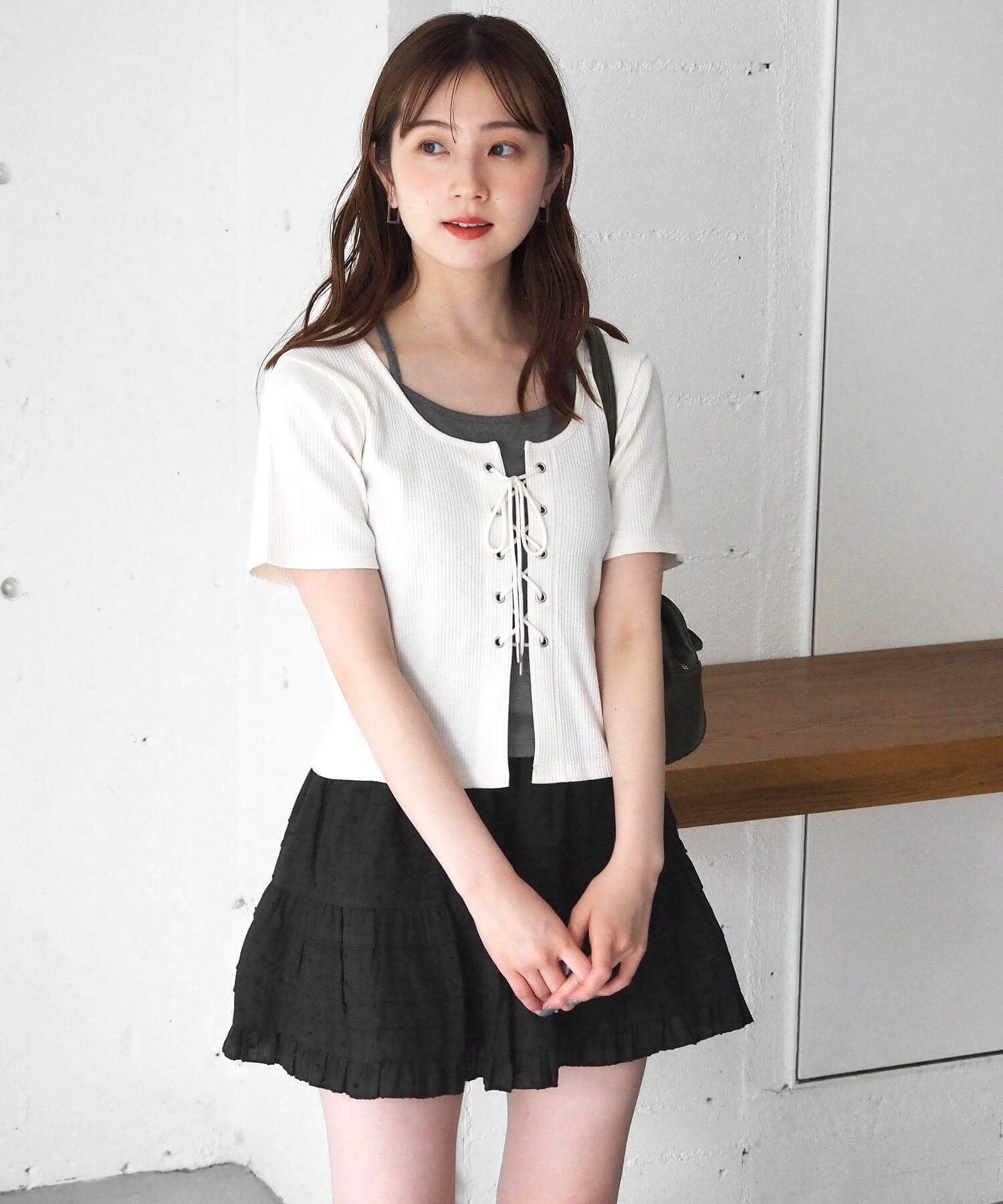 ・前身ごろはキャミソールに半袖カーディガンを羽織ったようなデザイン。2枚重ねているので、よりリアルな着こなしが楽しめます♪