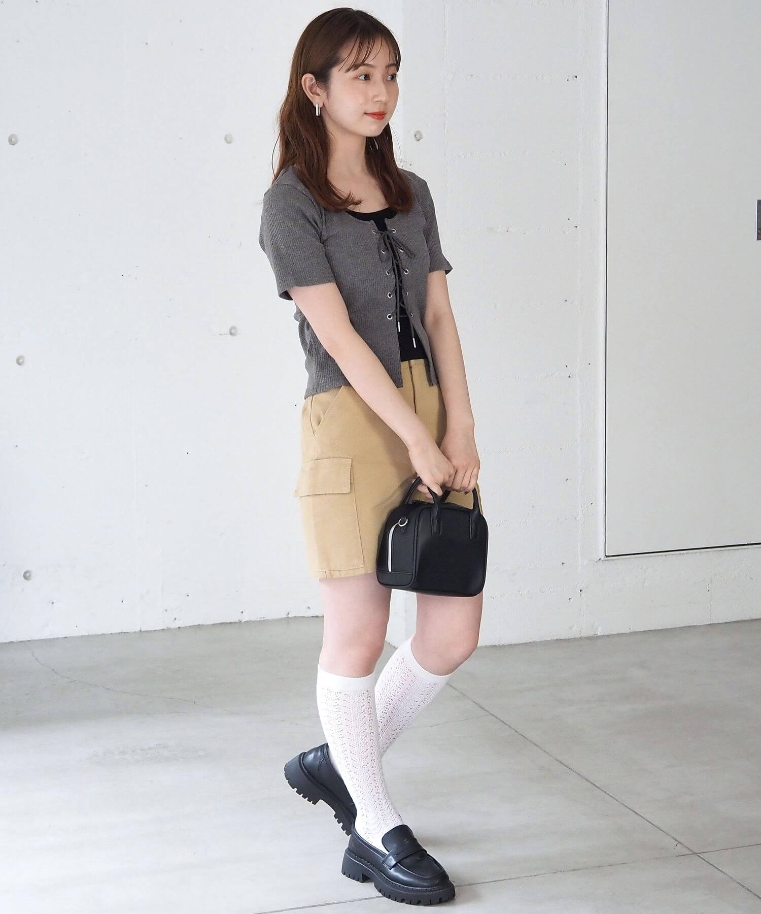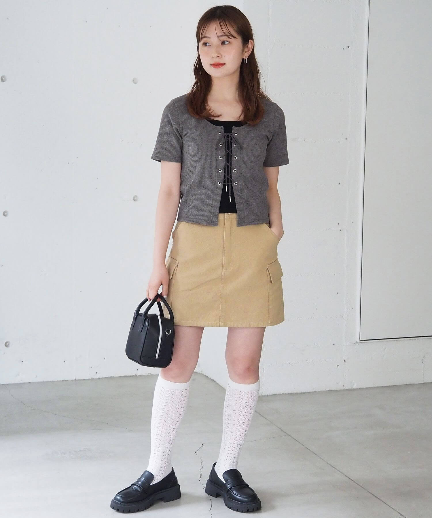 ・トレンドのミニボトムでガーリーカジュアルに。コンパクトなコーデはソックスやブーツでボリュームを追加してスタイルアップを狙うのもおすすめです♪