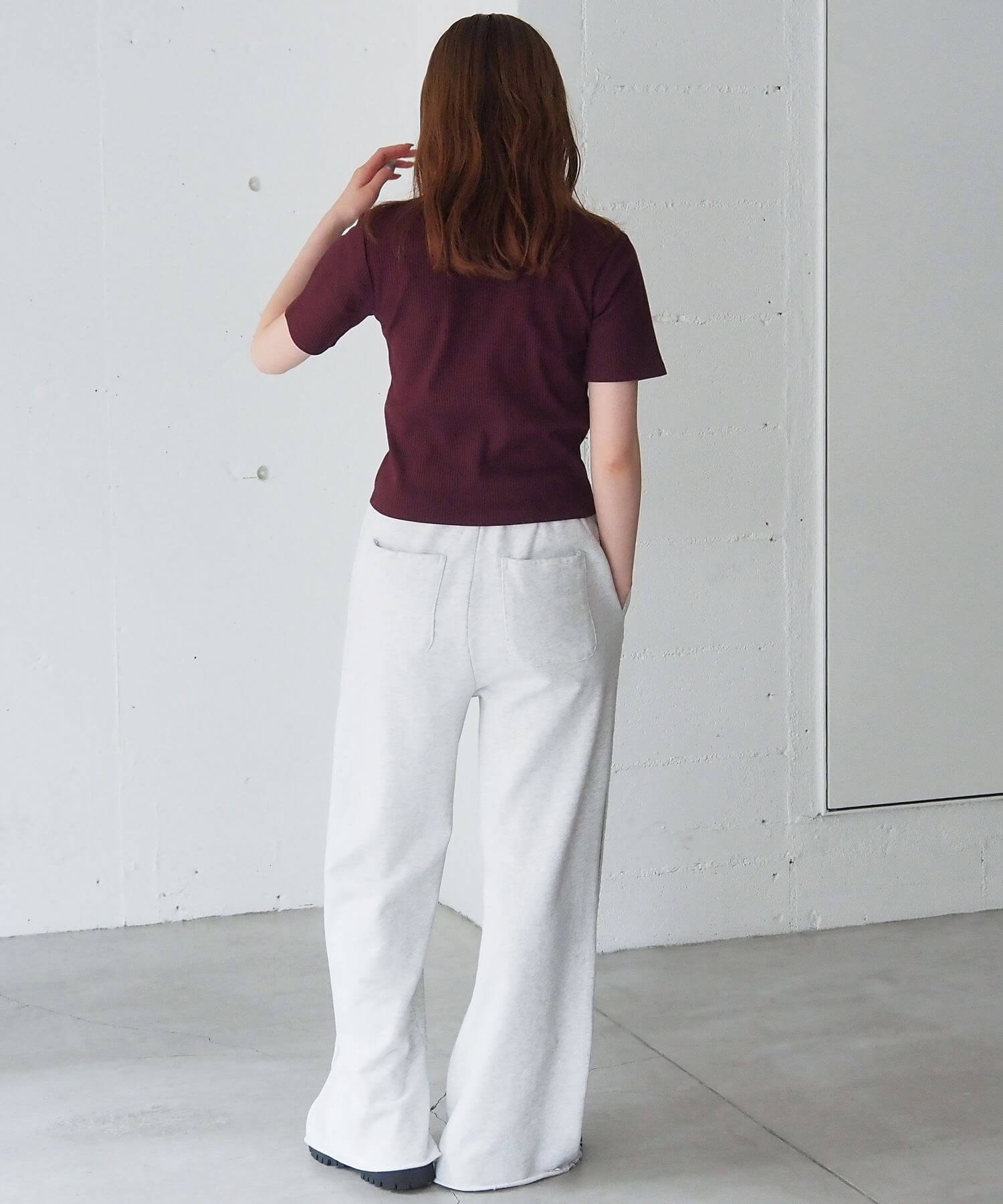 ・ワイドパンツとメリハリのあるコーディネートに。