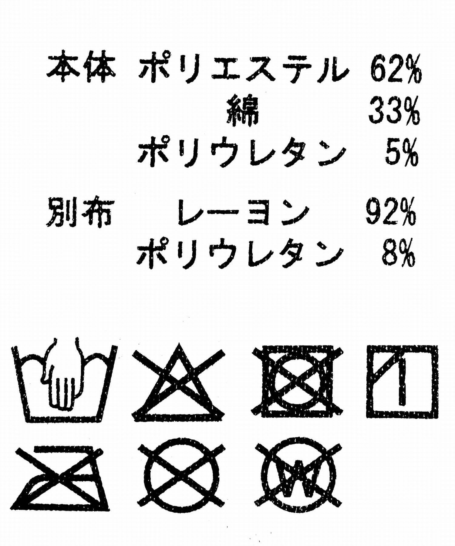 本体: ポリエステル62%, コットン33% ,ポリウレタン5%, 別布: レーヨン92% ,ポリウレタン8%