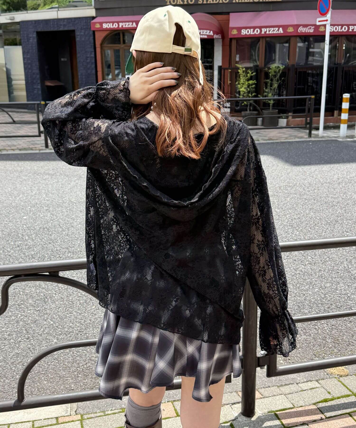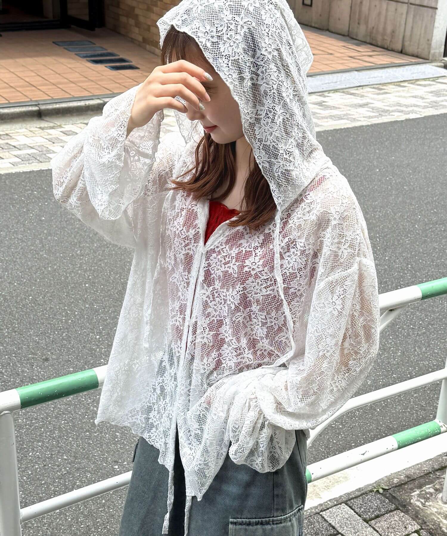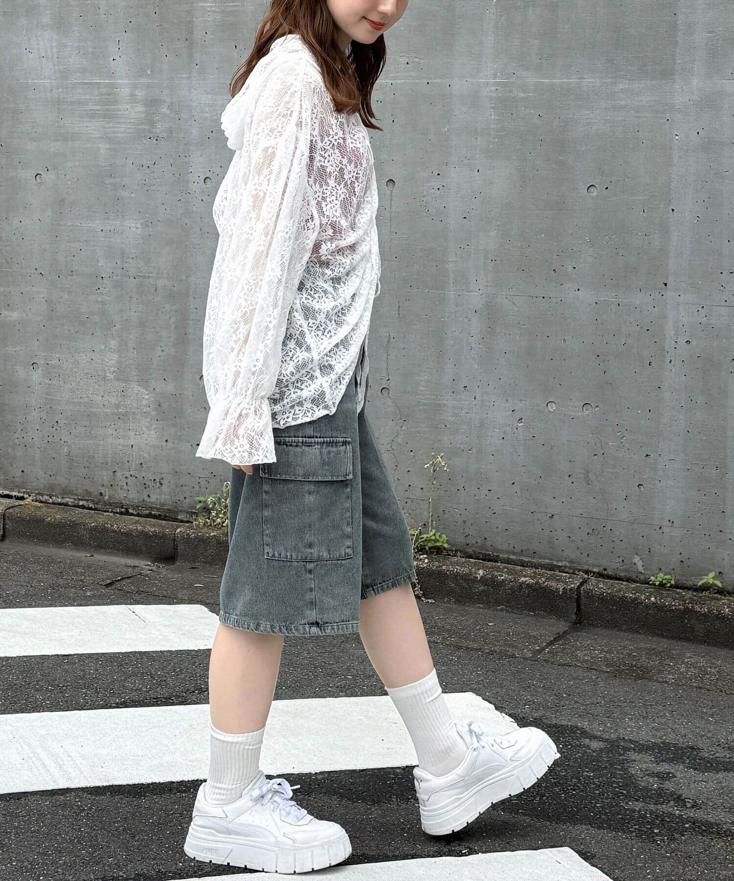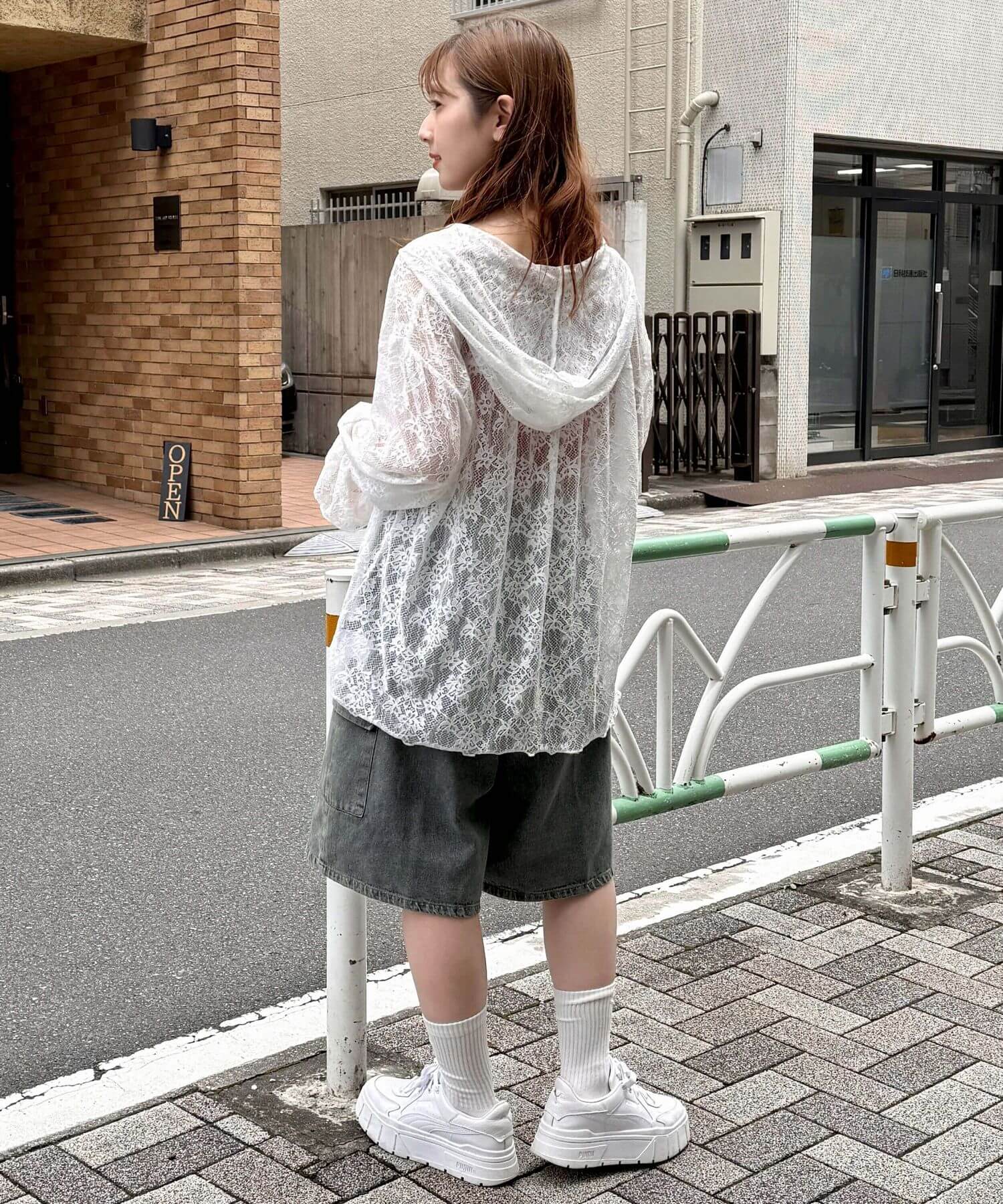 ・ミニスカートでコンパクトに。ゆるっと感のあるレースフーディならではの、絶妙なガーリーカジュアルが完成します。
