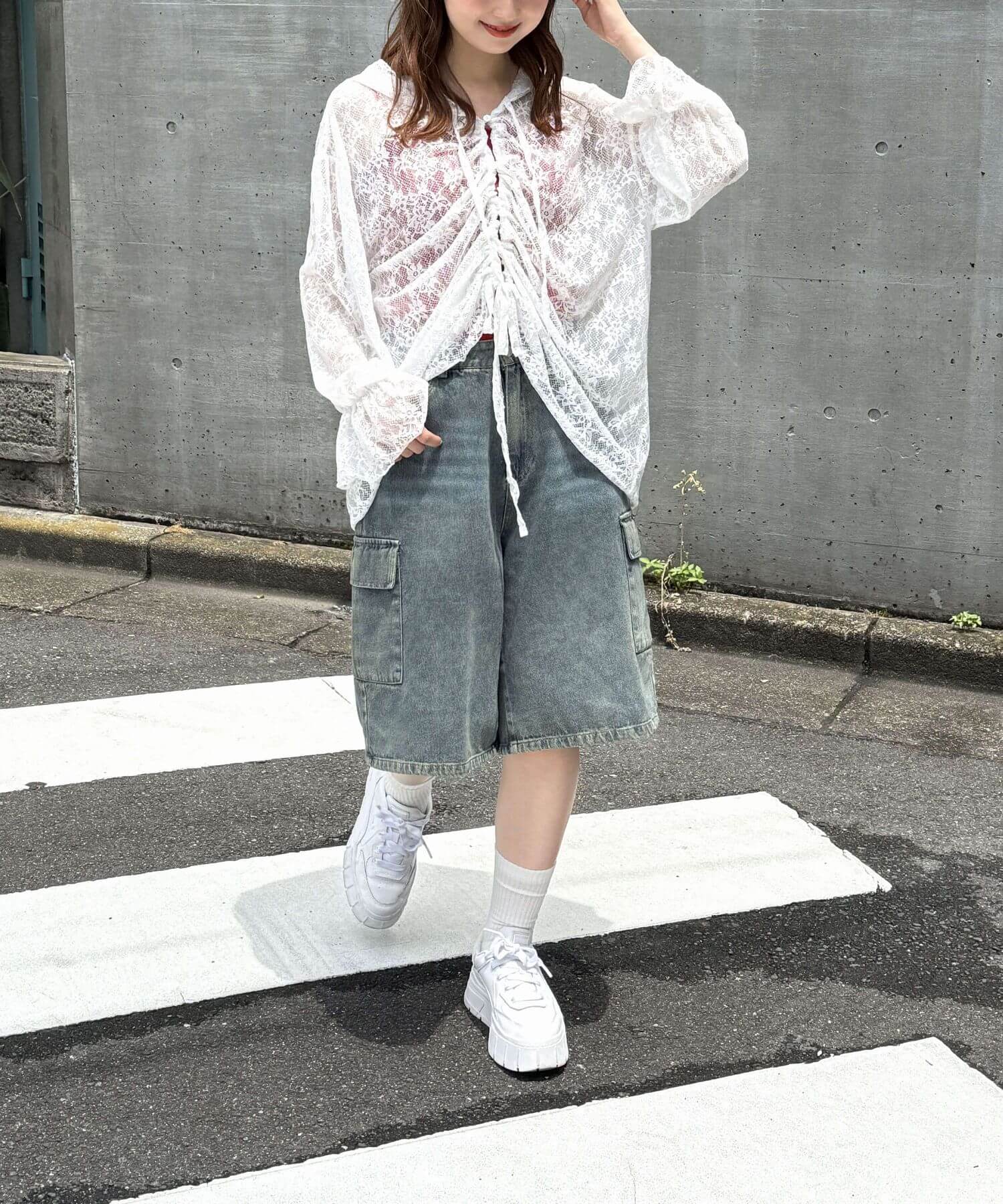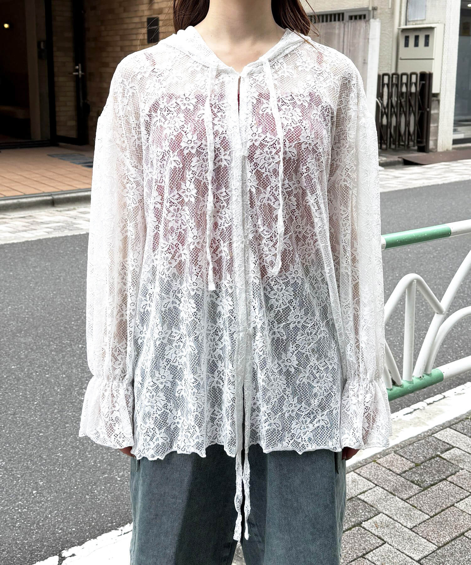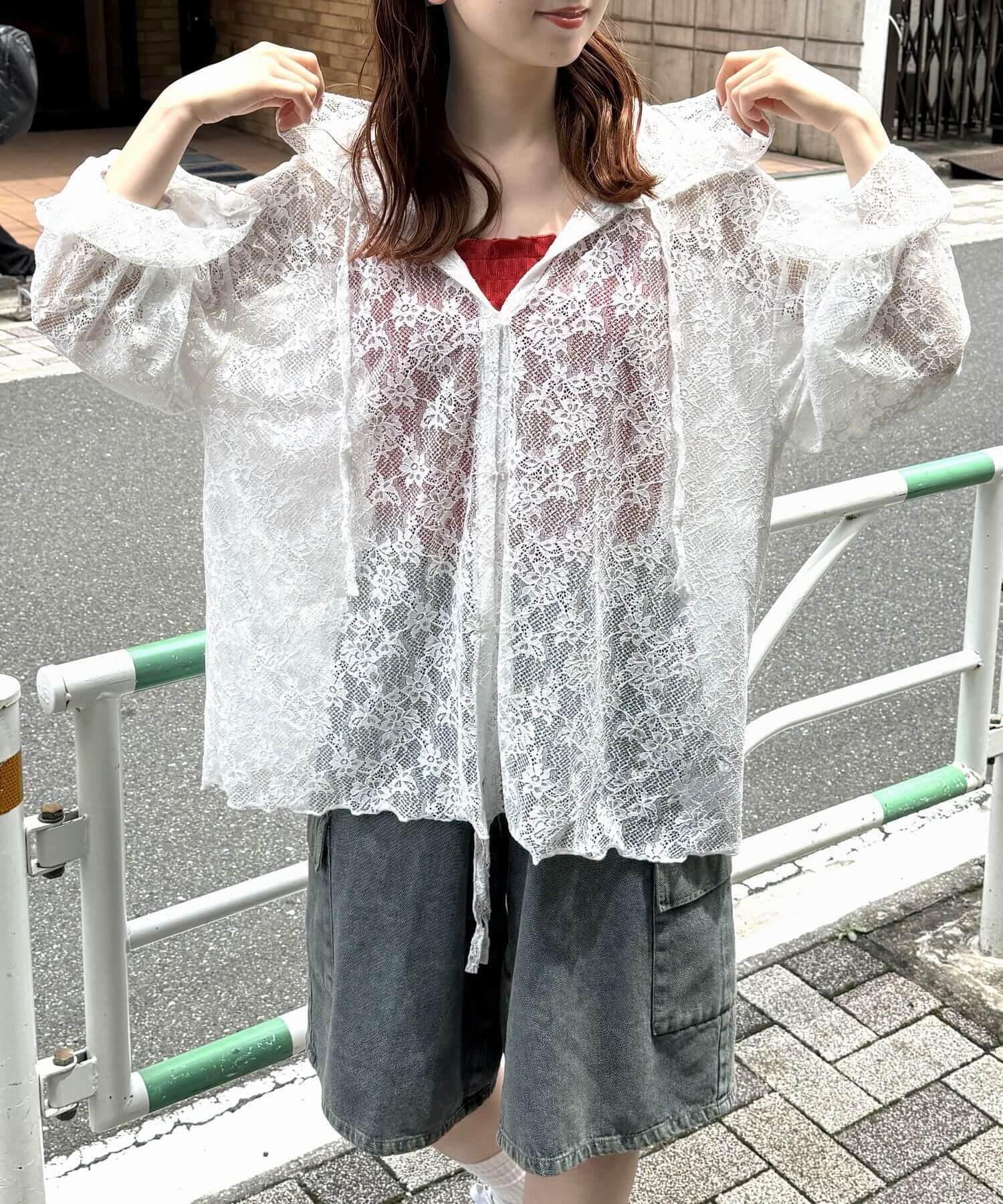 ・ミニスカートでコンパクトに。ゆるっと感のあるレースフーディならではの、絶妙なガーリーカジュアルが完成します。