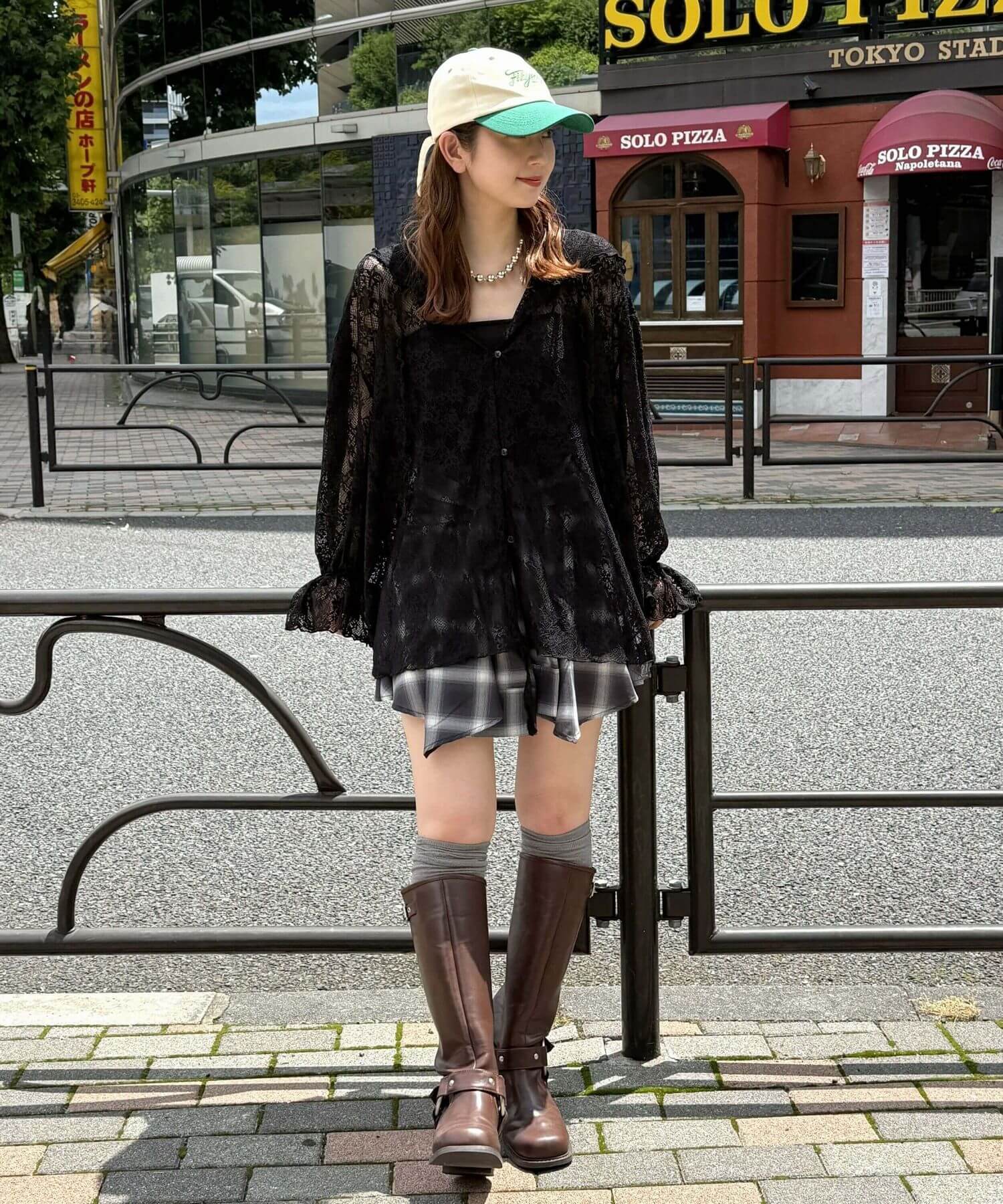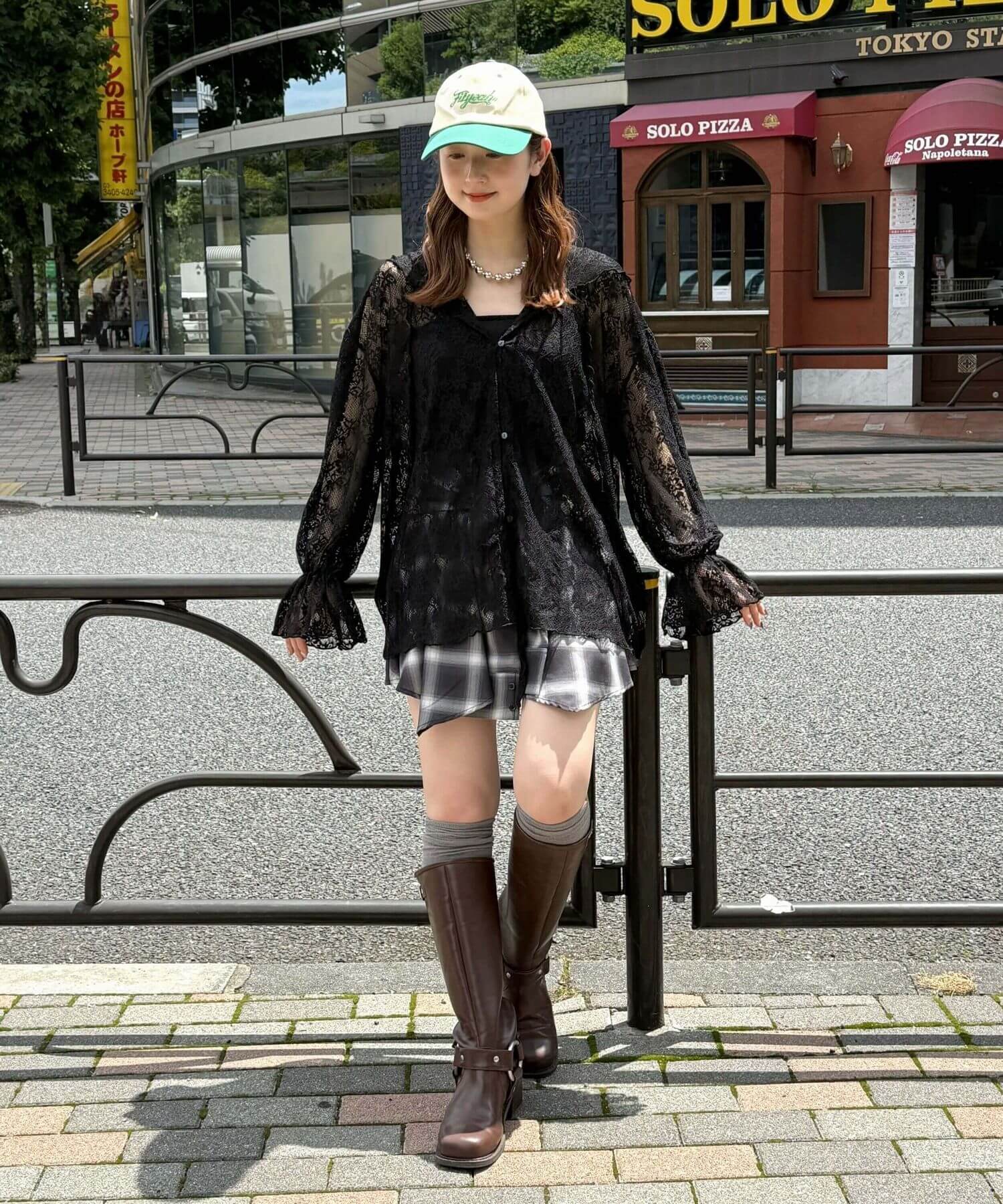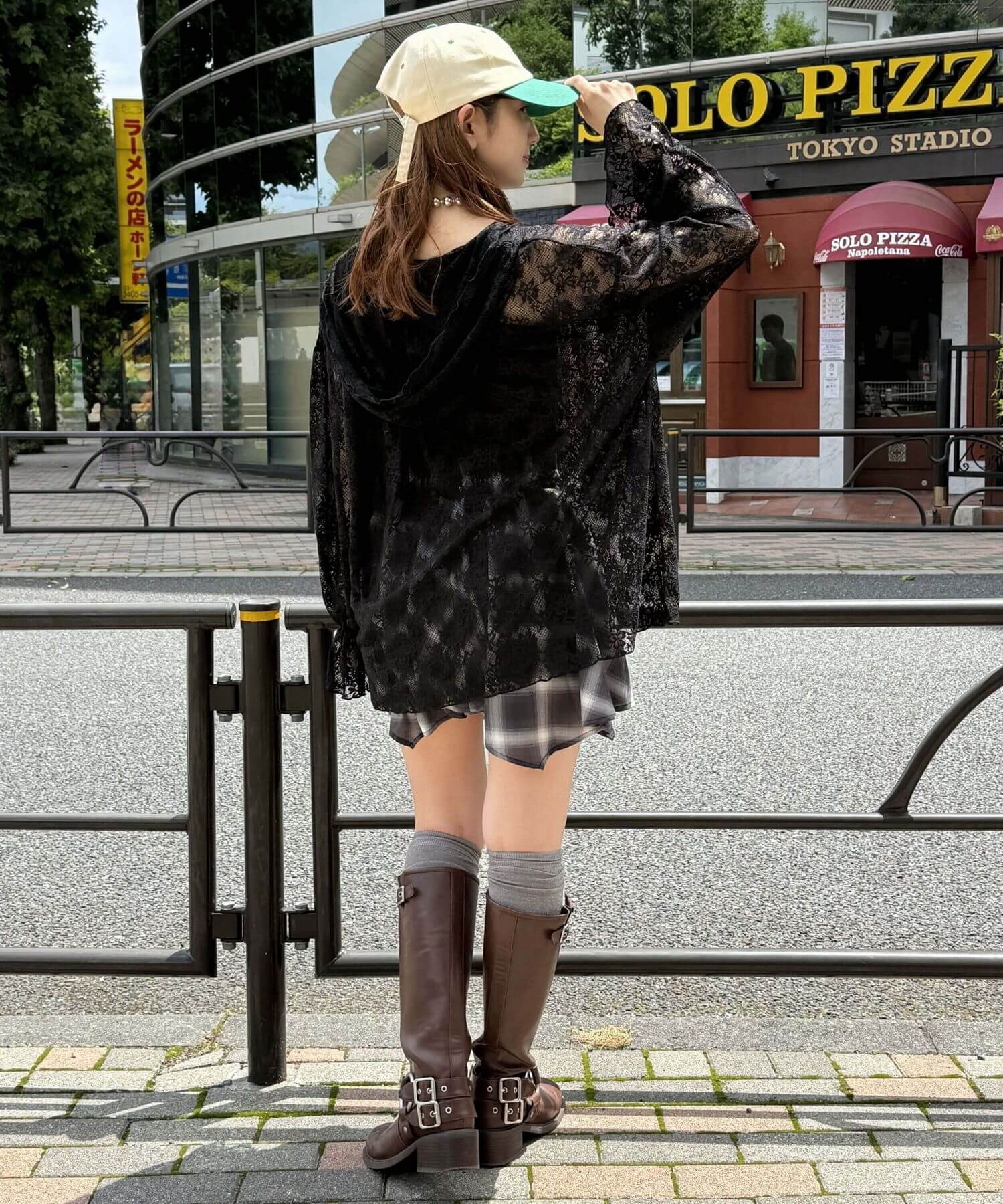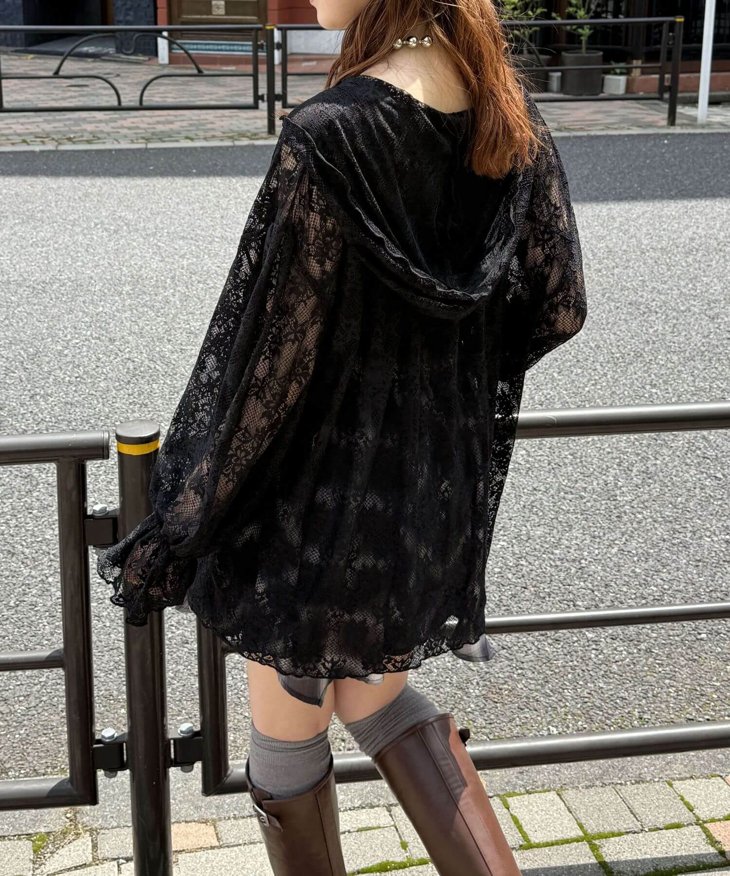 ・ミニスカートでコンパクトに。ゆるっと感のあるレースフーディならではの、絶妙なガーリーカジュアルが完成します。