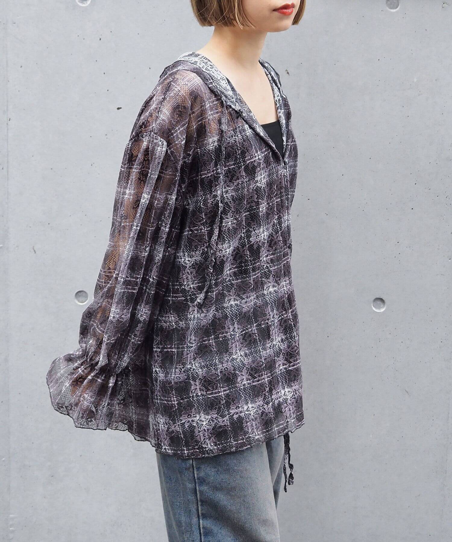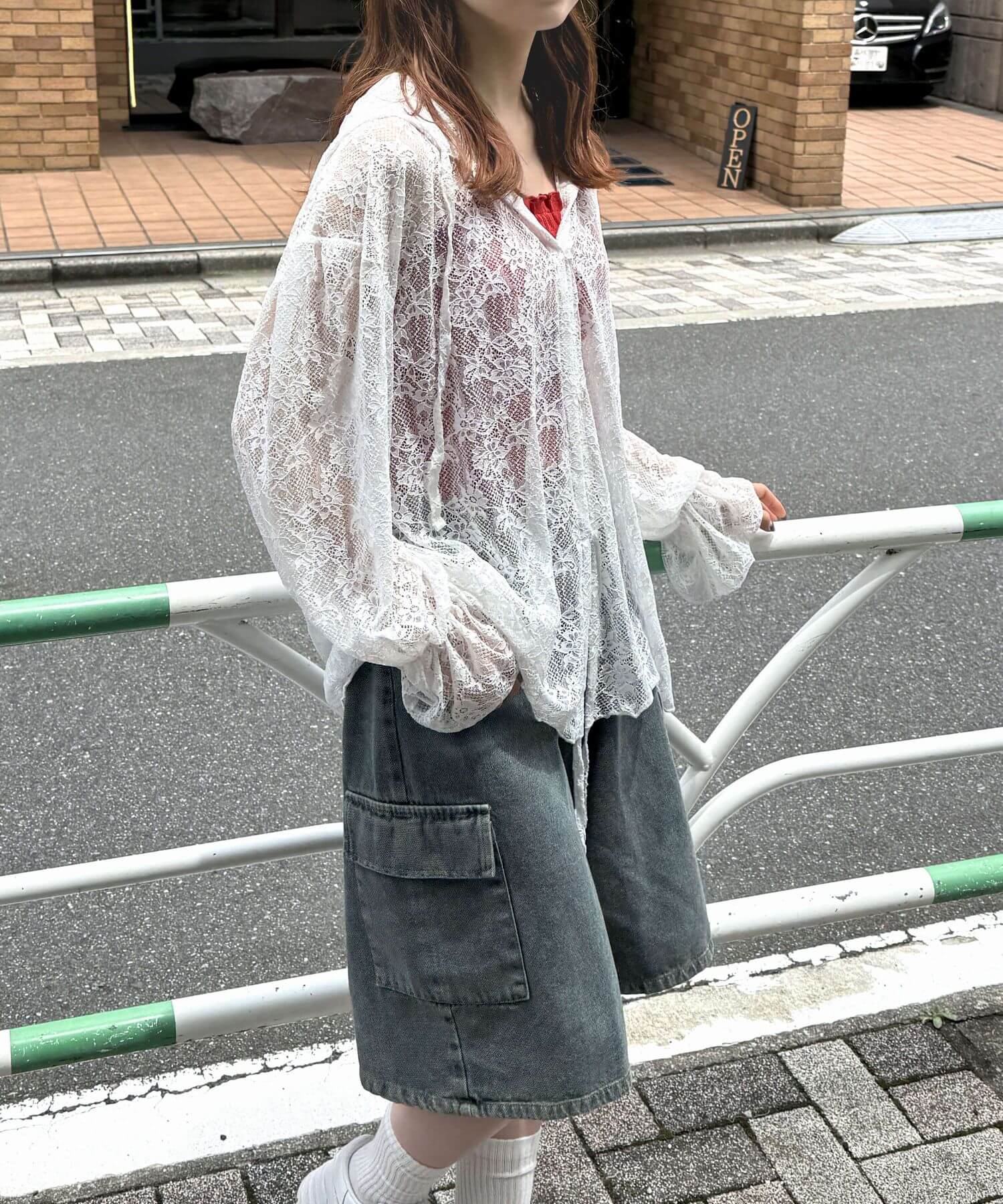 ・裾を絞ってドロストブラウスとして、さらりと羽織ってカーディガンとして、トップスを重ねてレースインナーとして、マルチな着こなしが可能です。