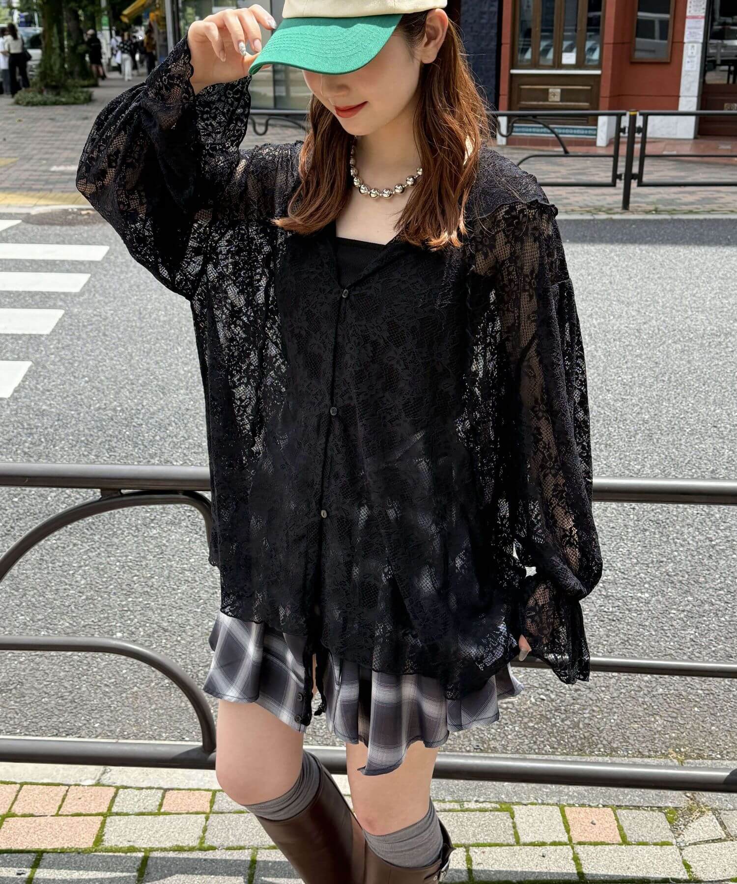 ・ビッグTシャツなど、トップスと重ねてコーディネートのアクセントに。レース素材でもたつきにくく、重ね着が楽しめます。