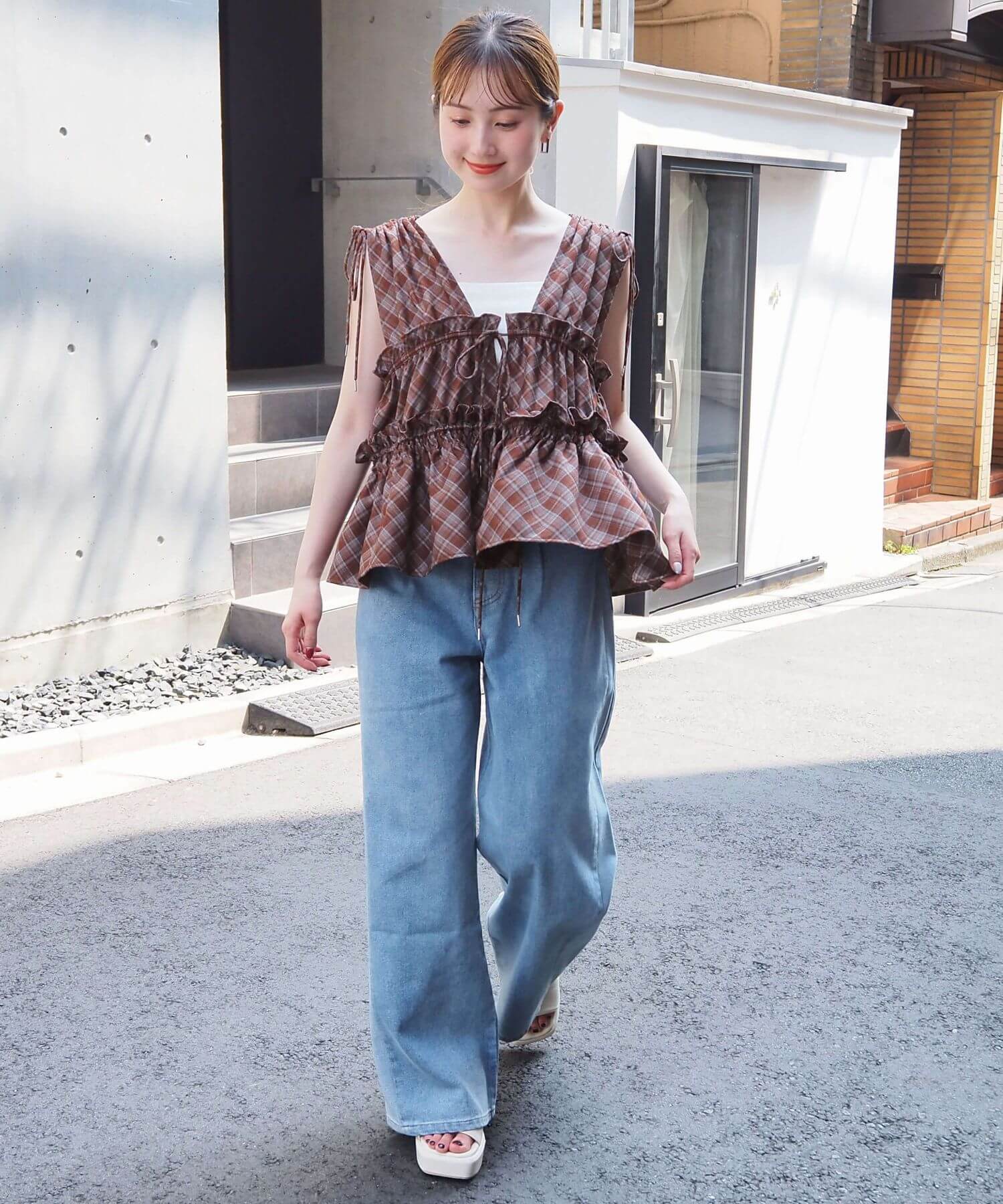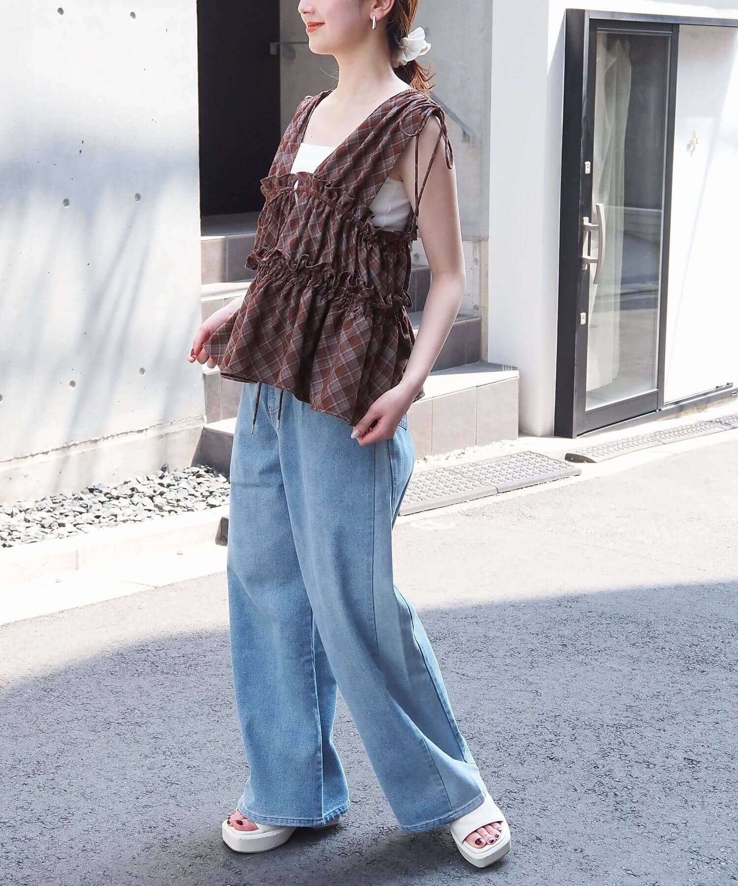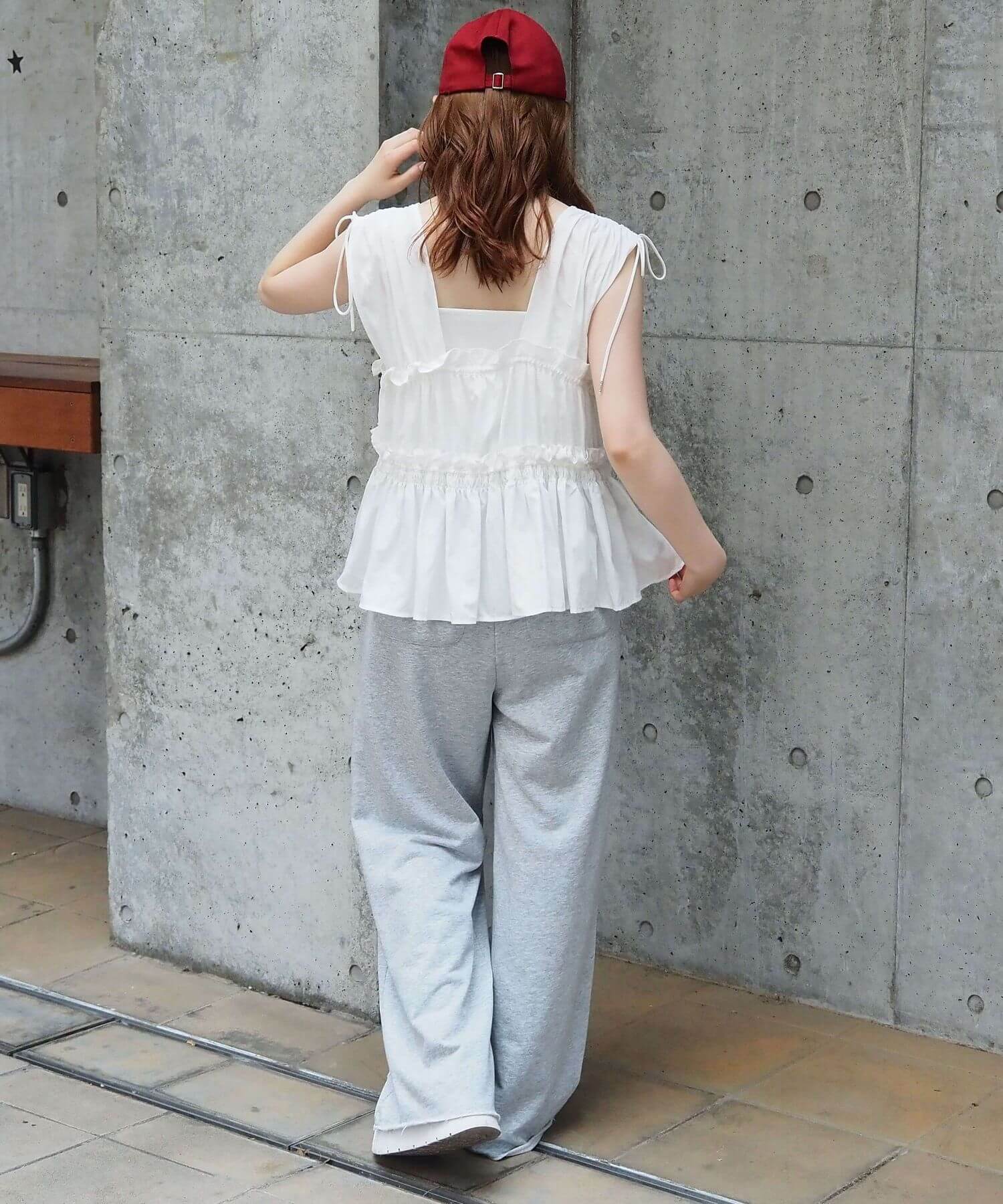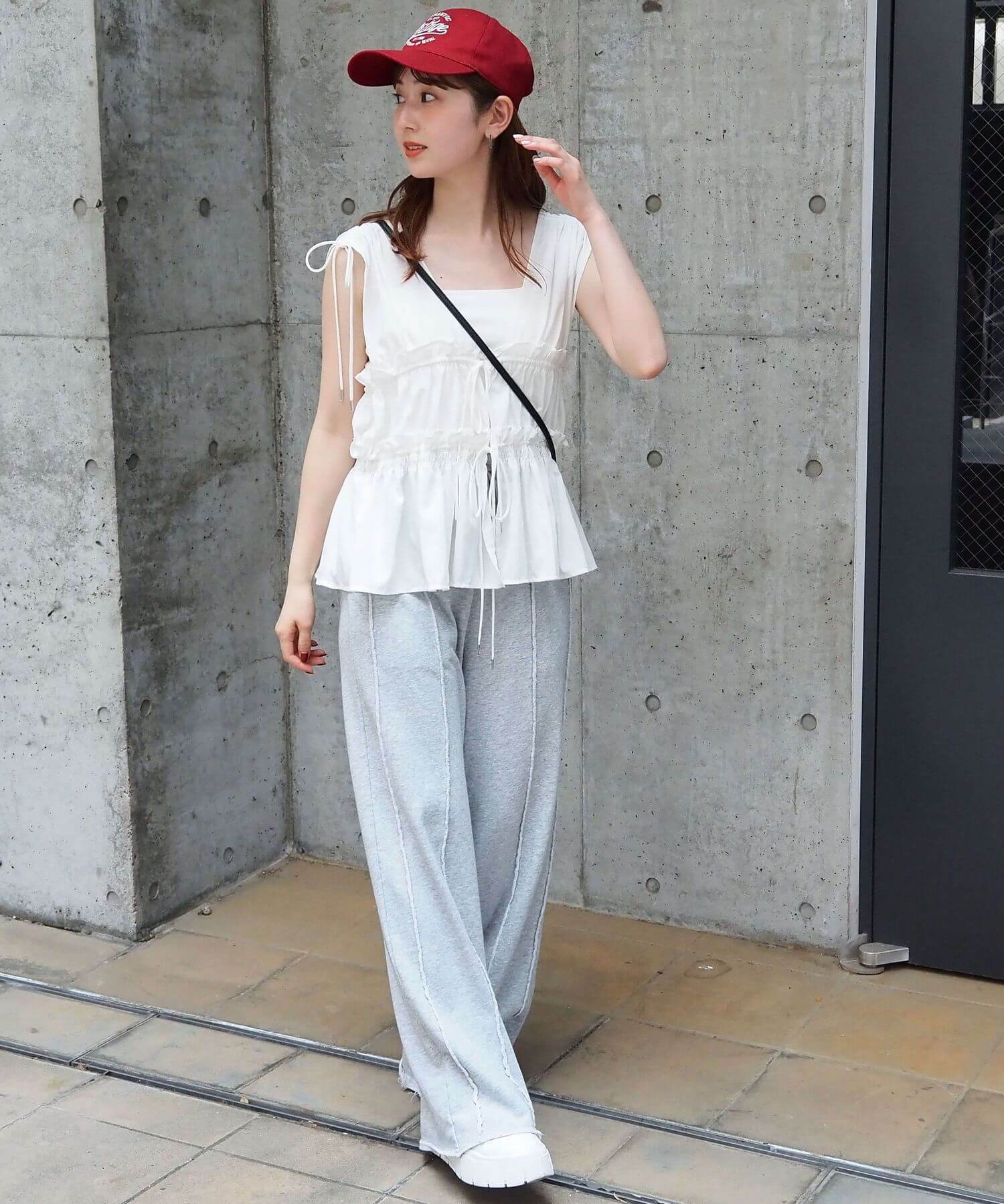 ・フリル使いやギャザーなどデザイン性の高いトップスなので、イージーパンツもおしゃれに決まります♪