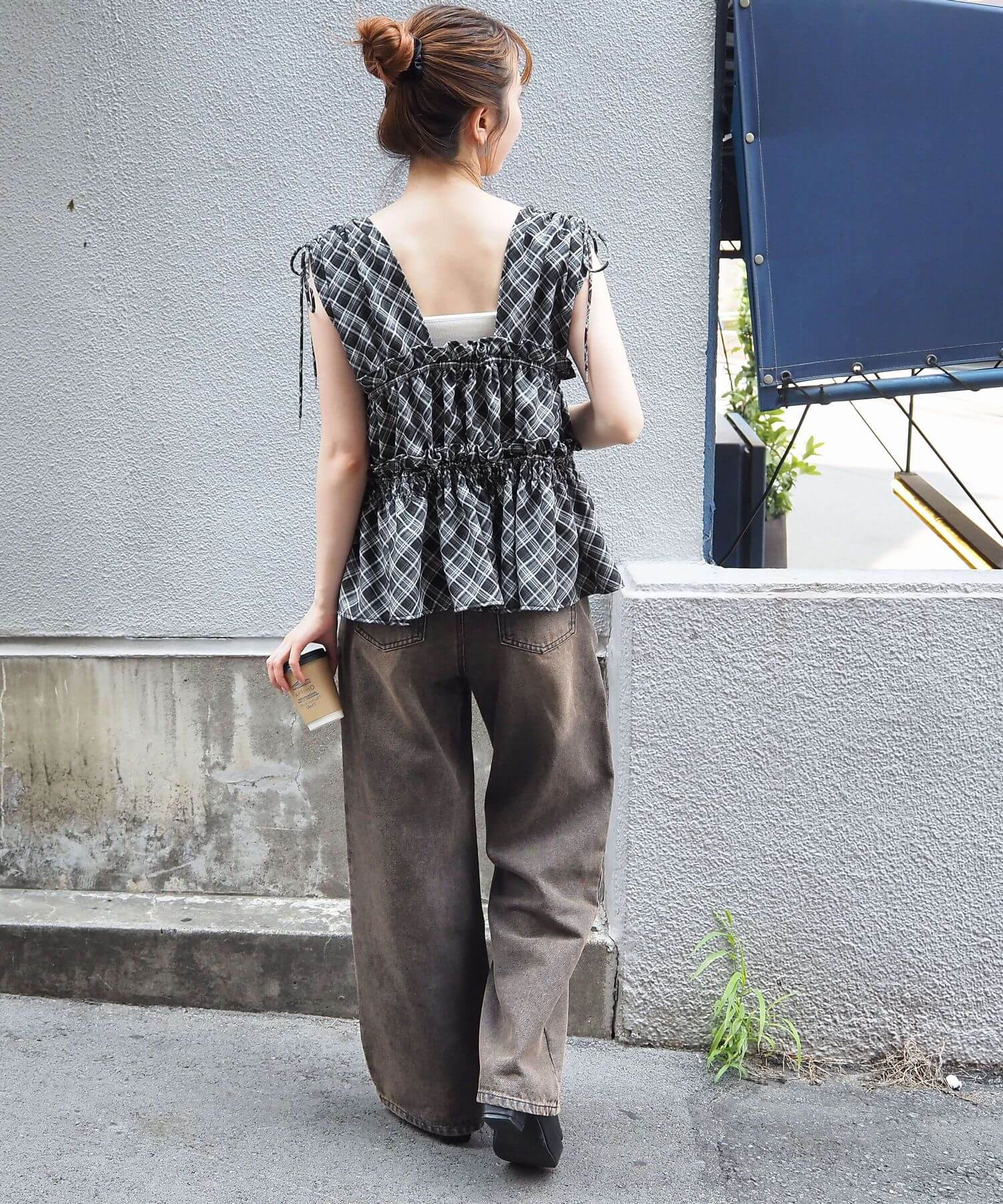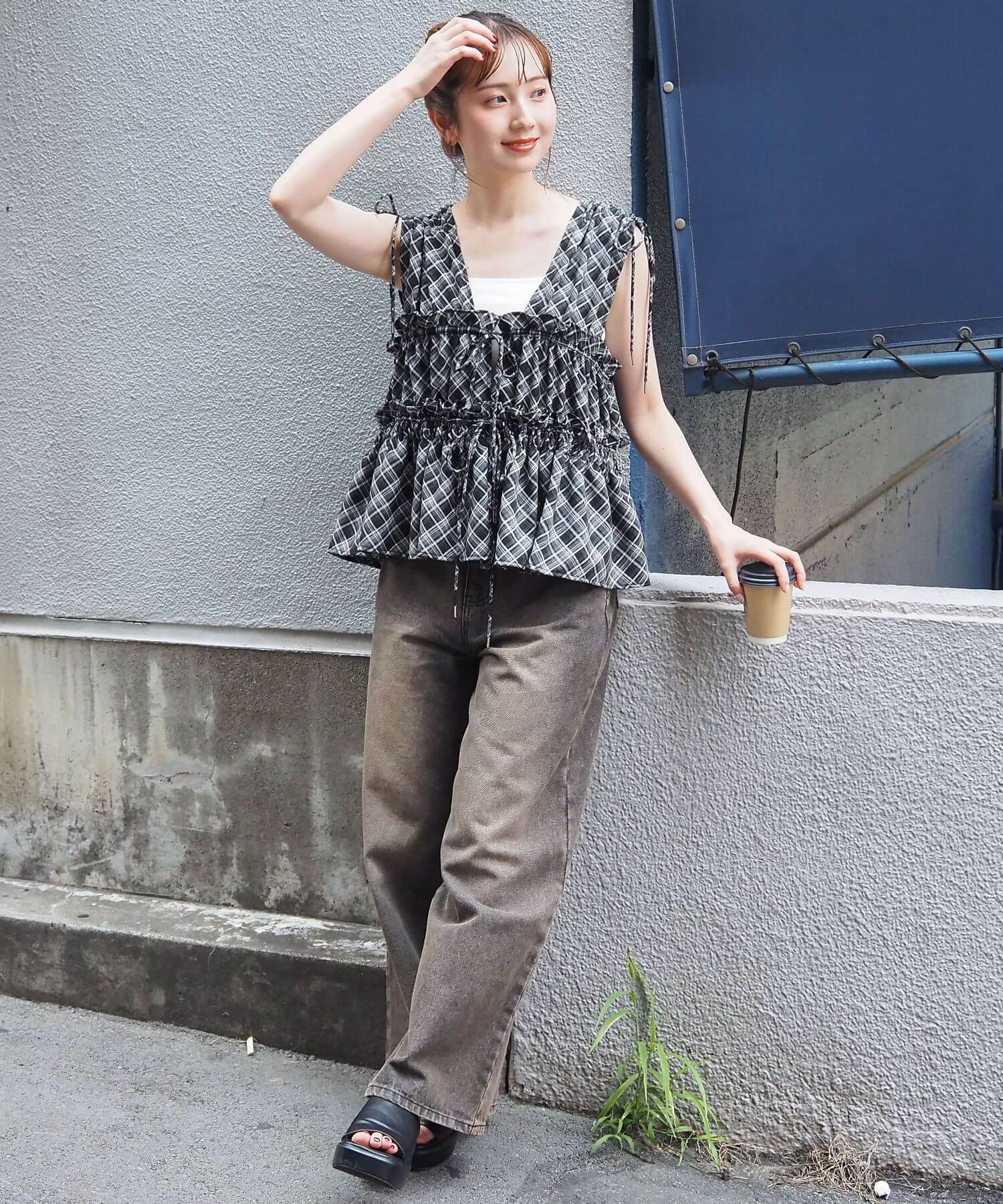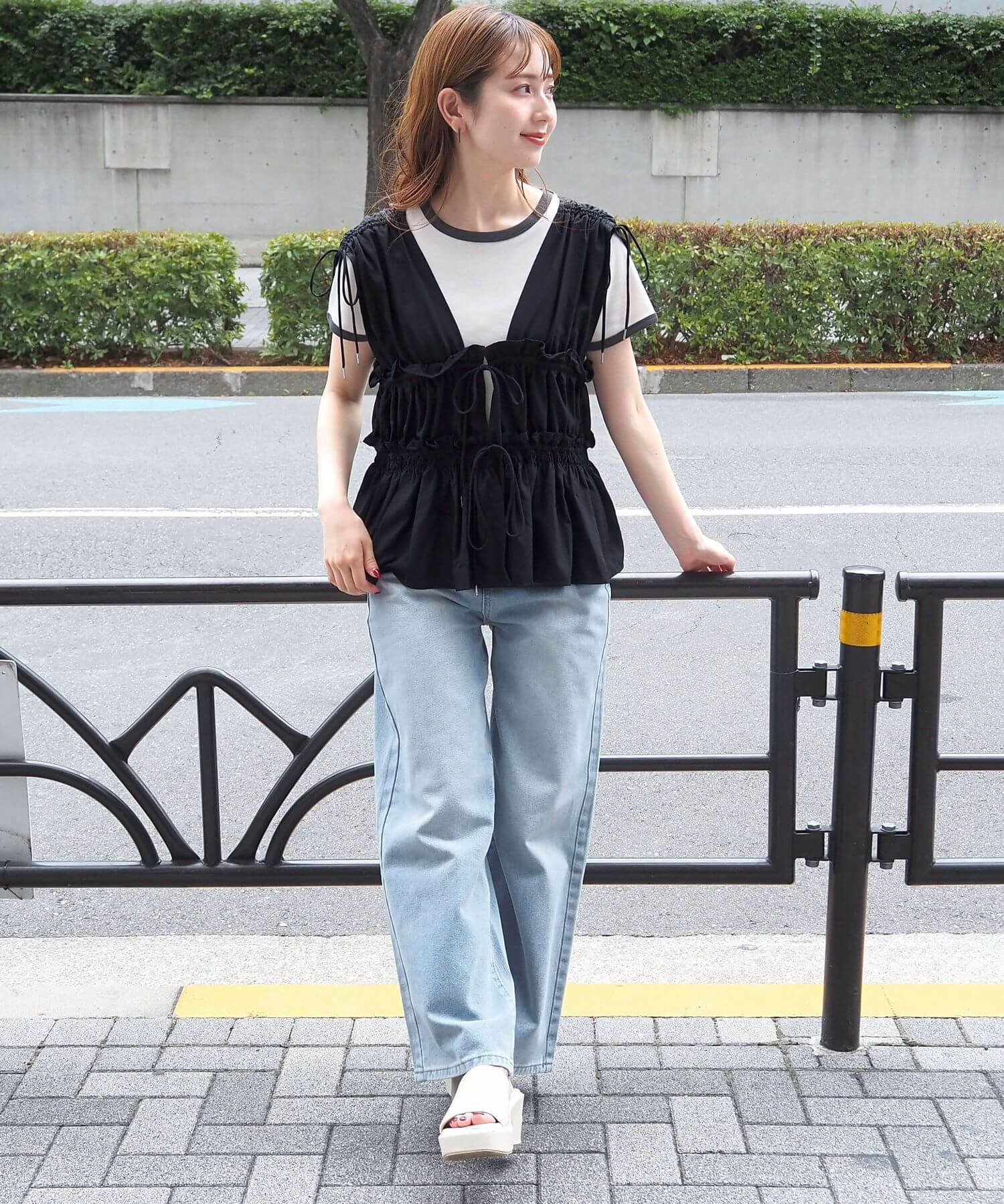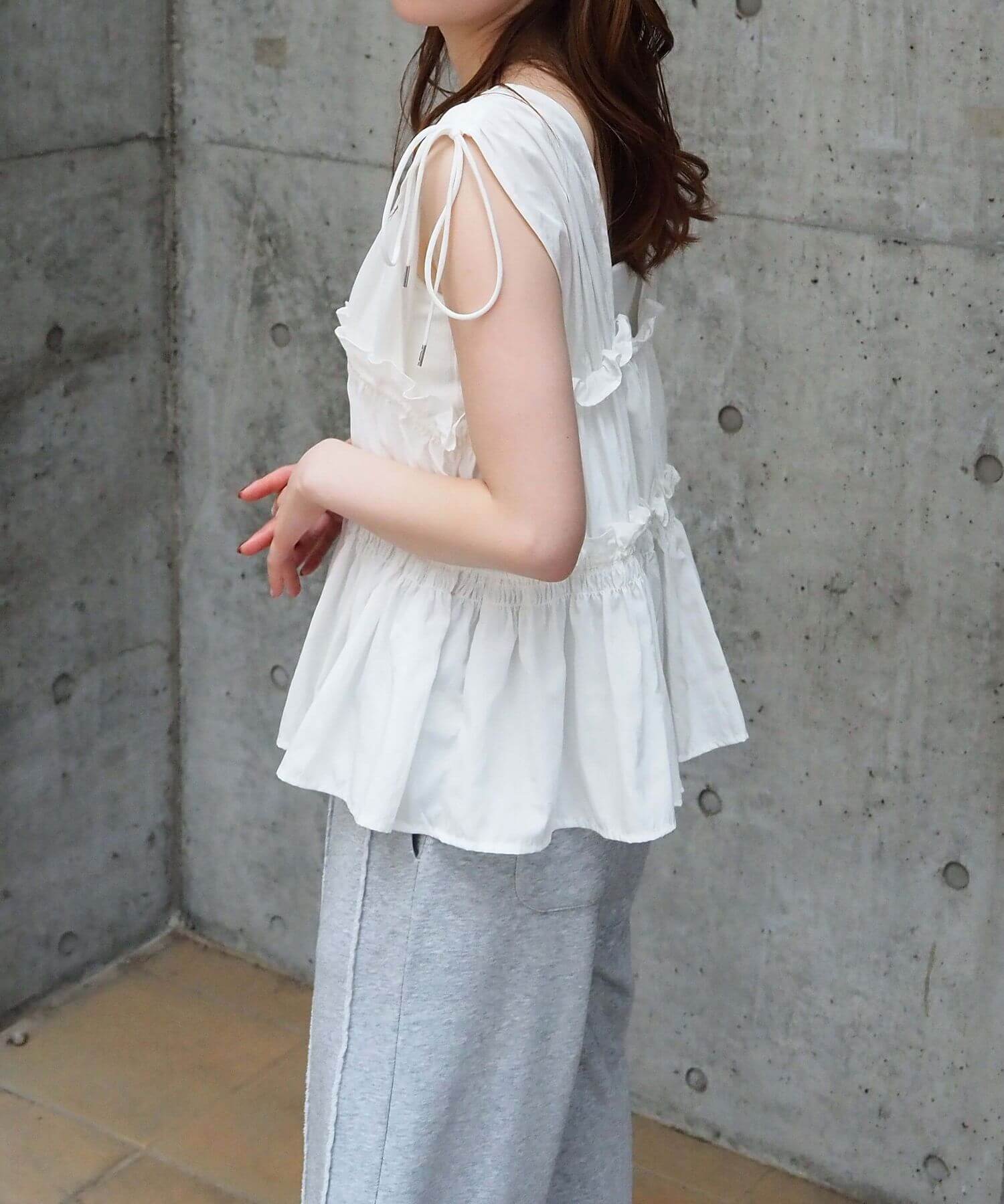 ・フリル使いやギャザーなどデザイン性の高いトップスなので、イージーパンツもおしゃれに決まります♪