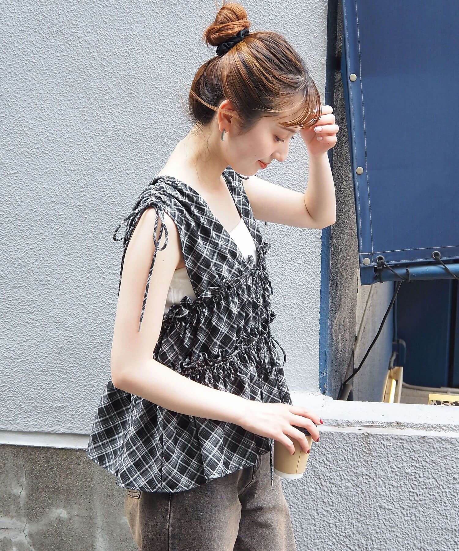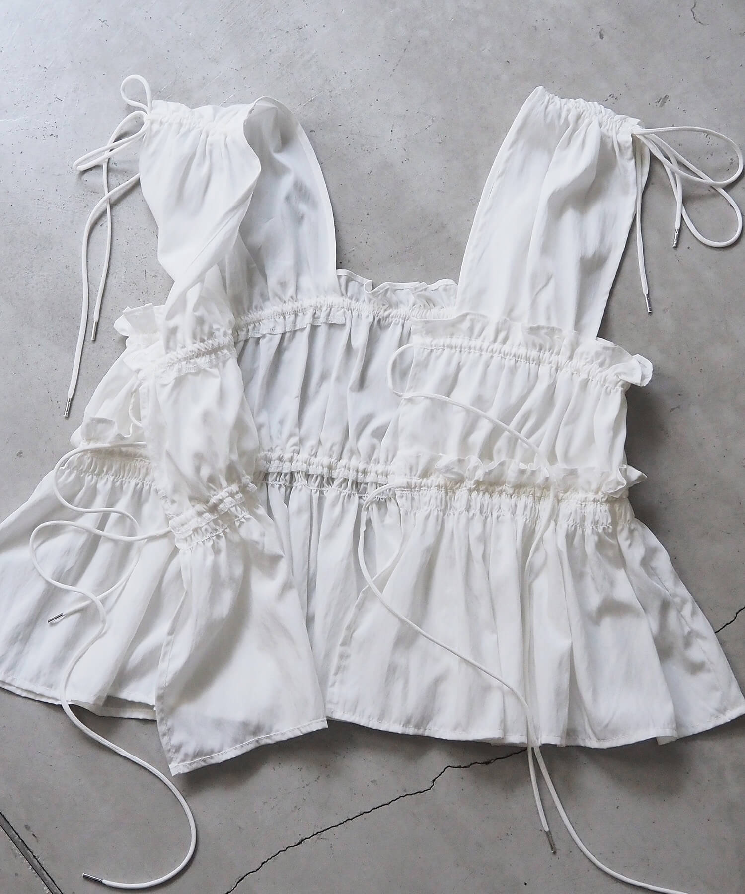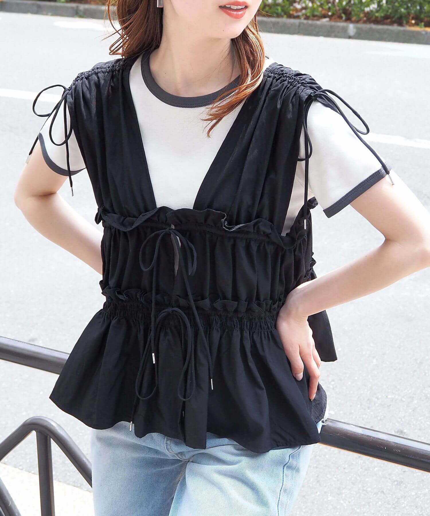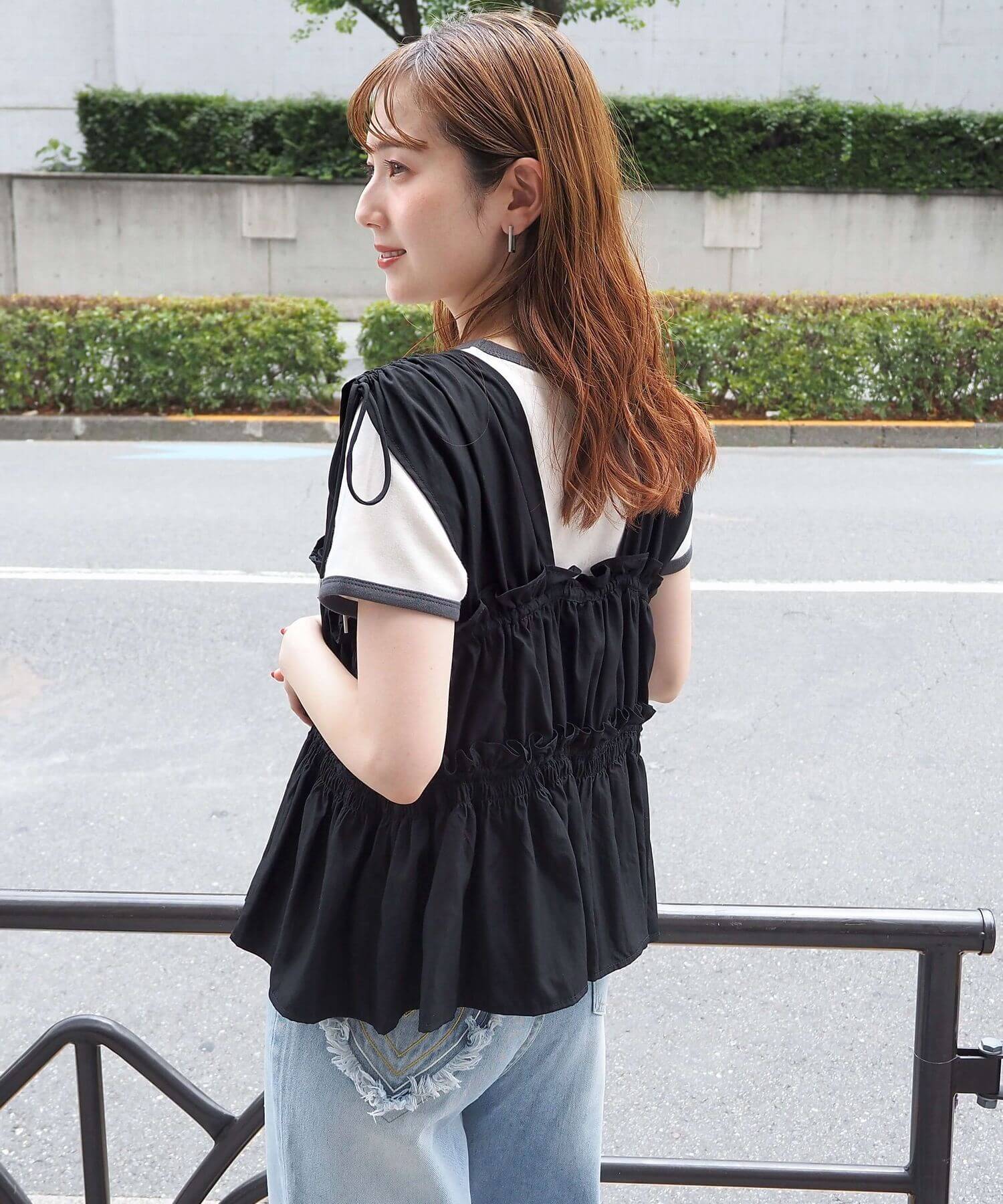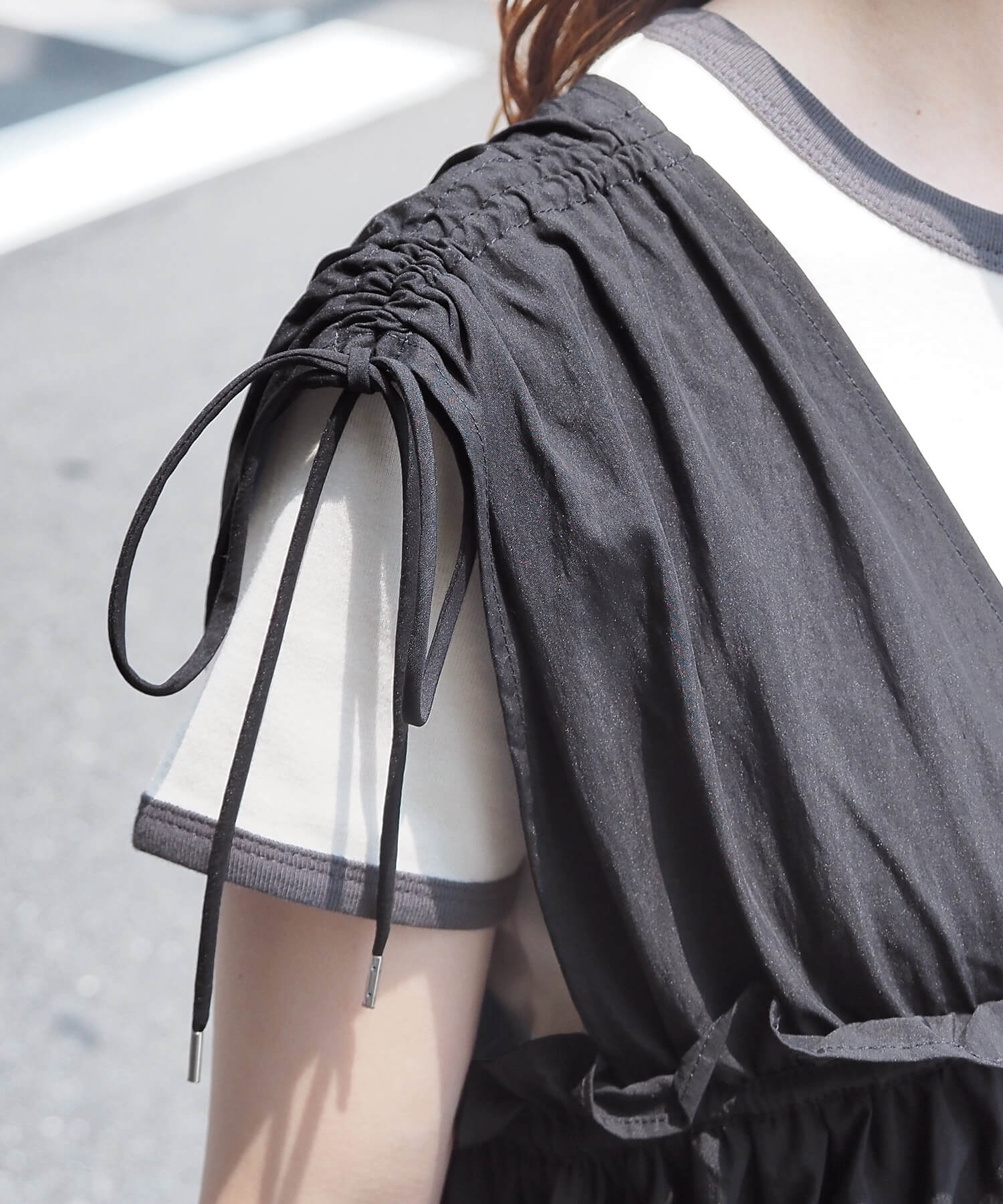 ・身頃と肩のギャザー部分はドロストになっているので、好みで絞りを調節可能です。