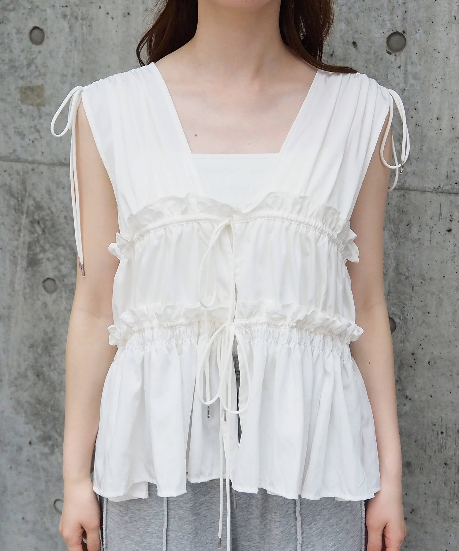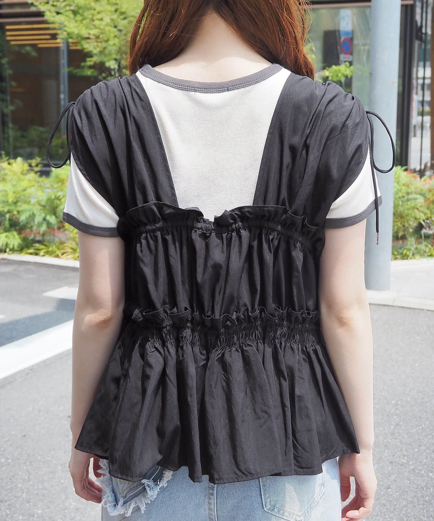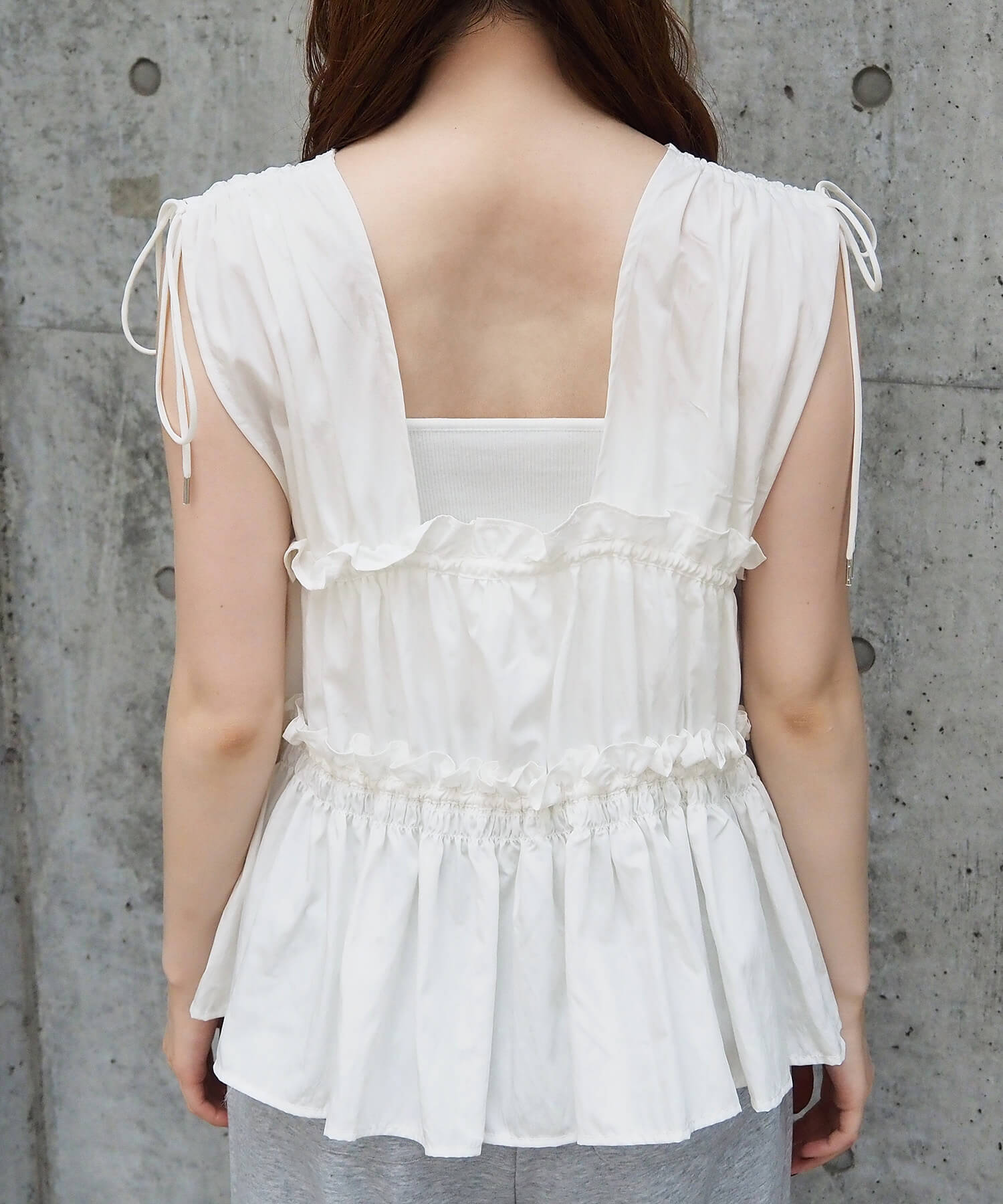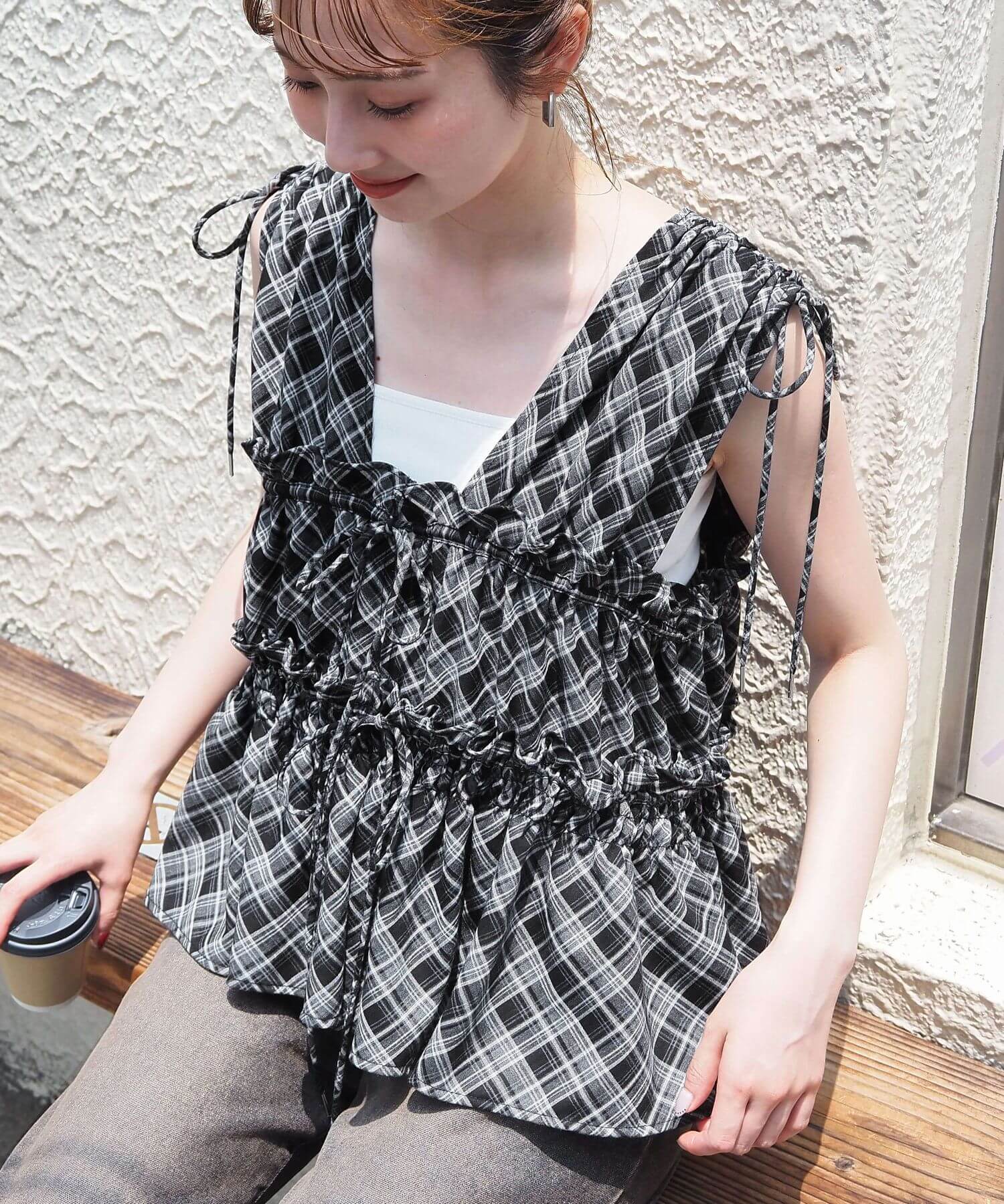 ・身頃と肩のギャザー部分はドロストになっているので、好みで絞りを調節可能です。