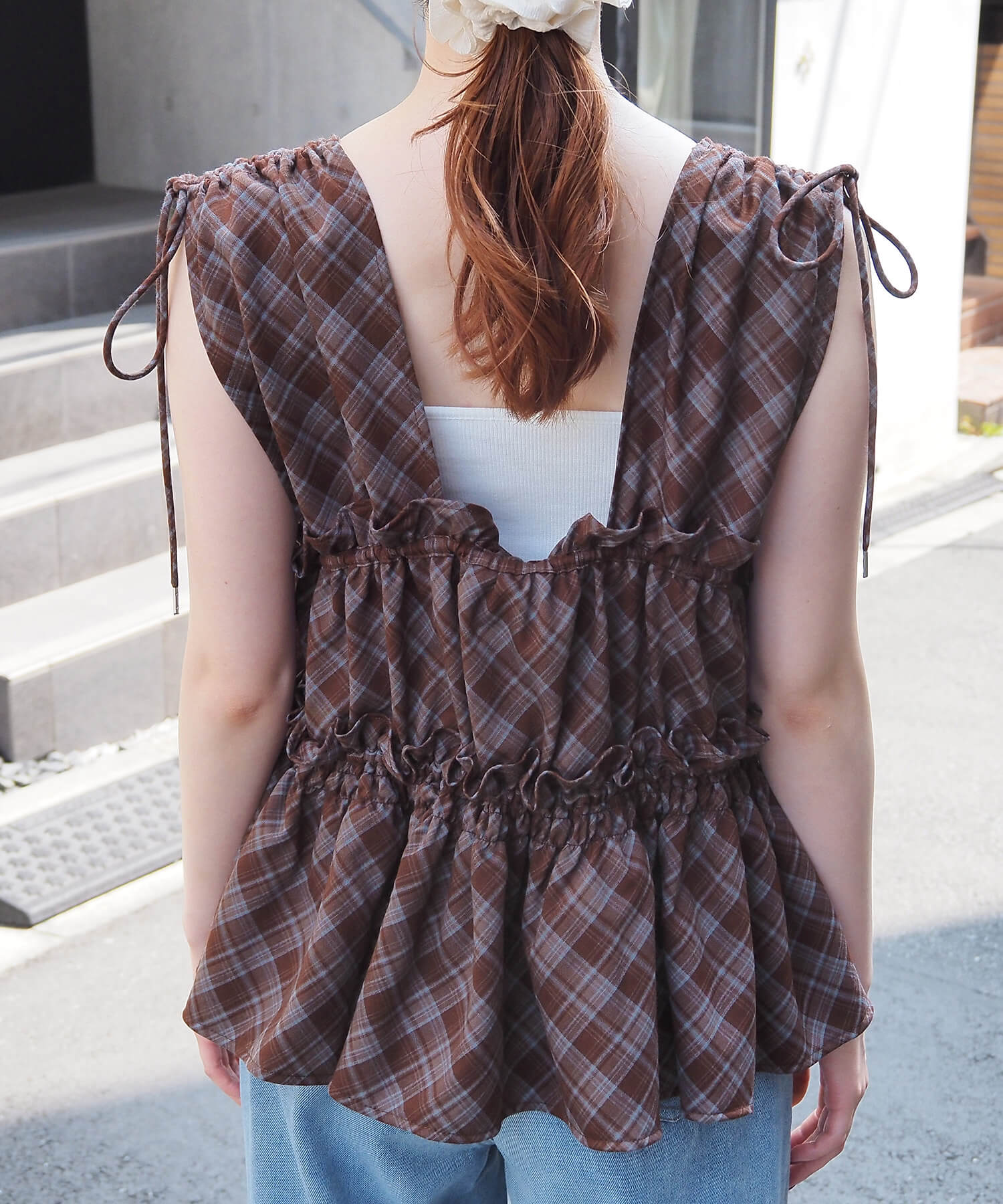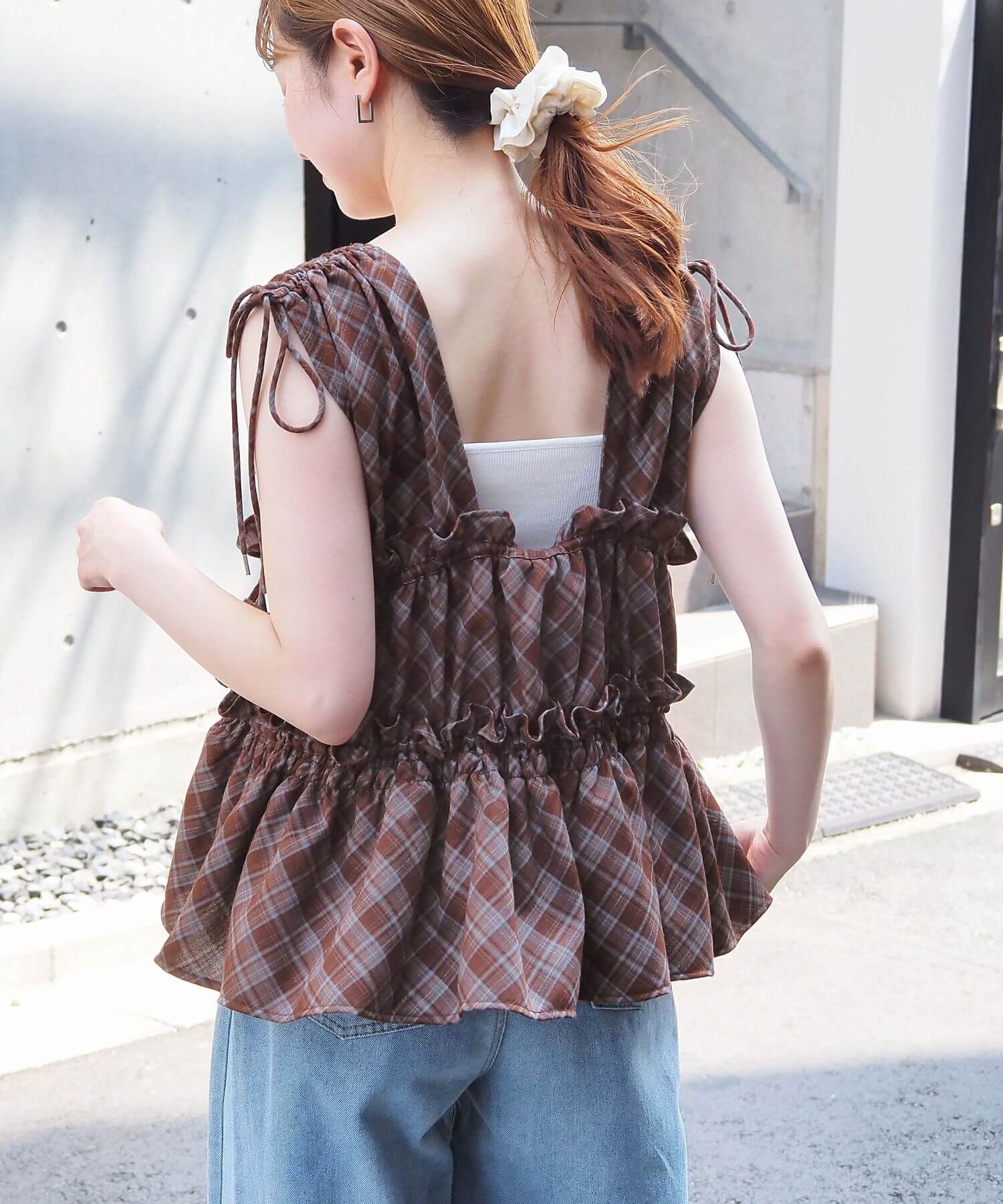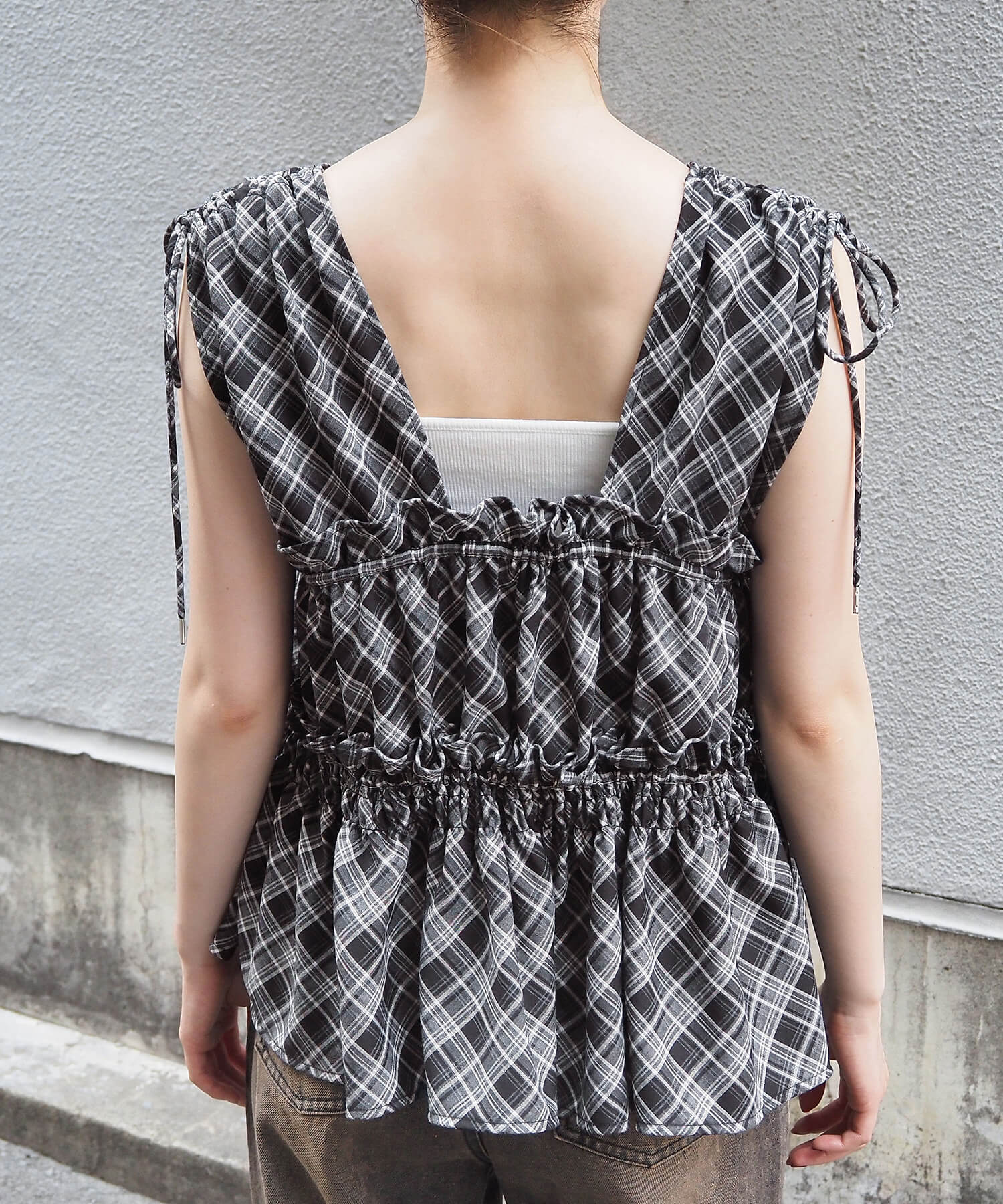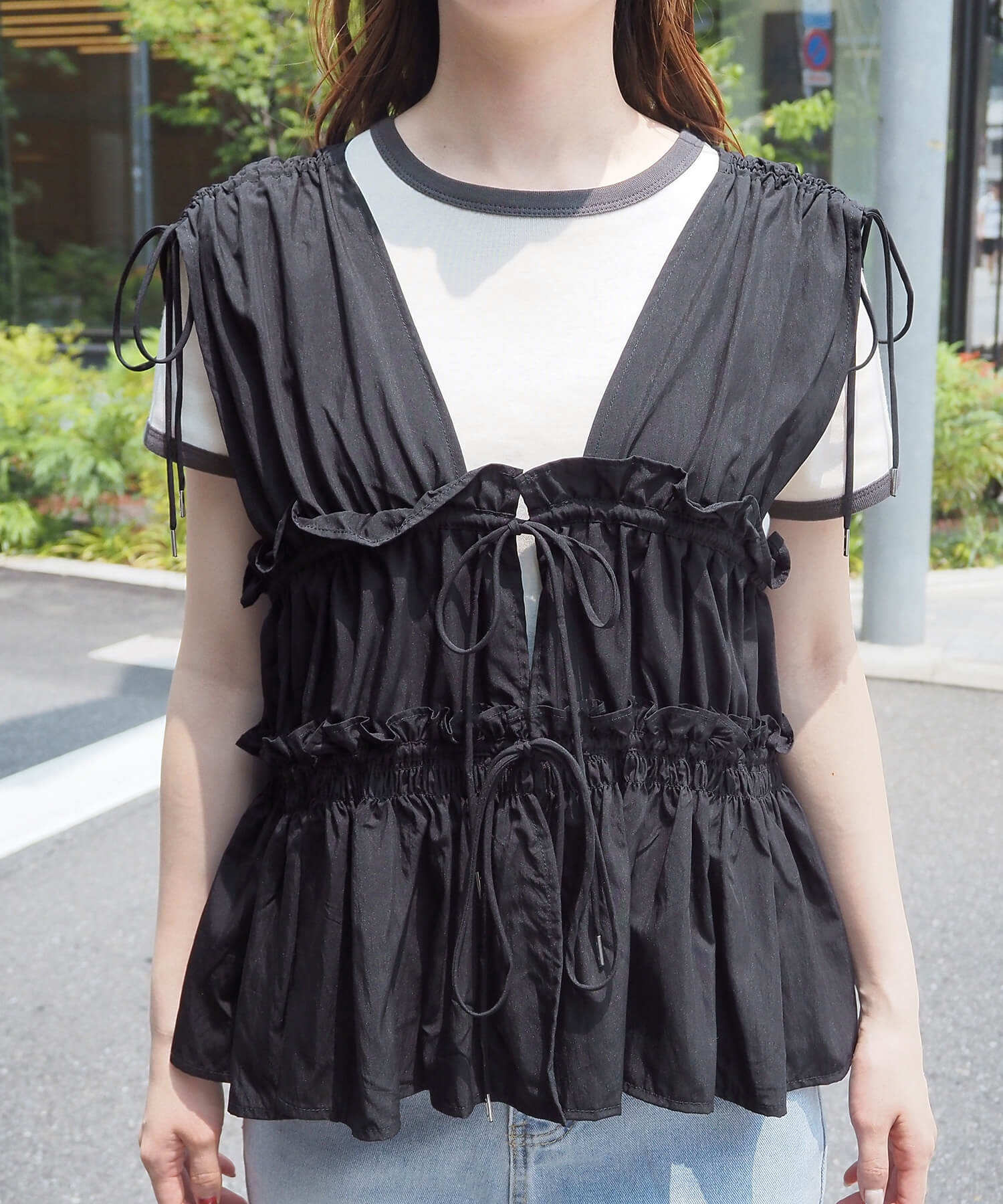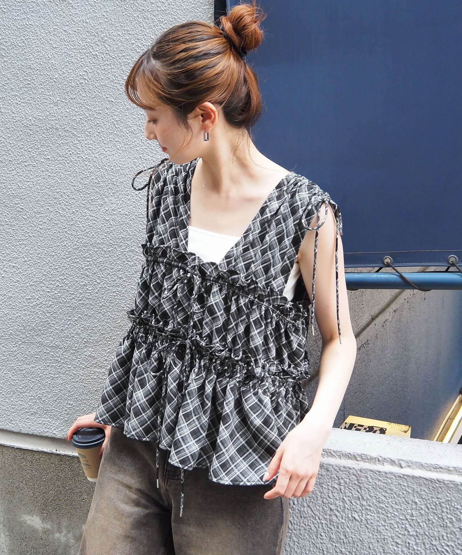 ・身頃と肩のギャザー部分はドロストになっているので、好みで絞りを調節可能です。