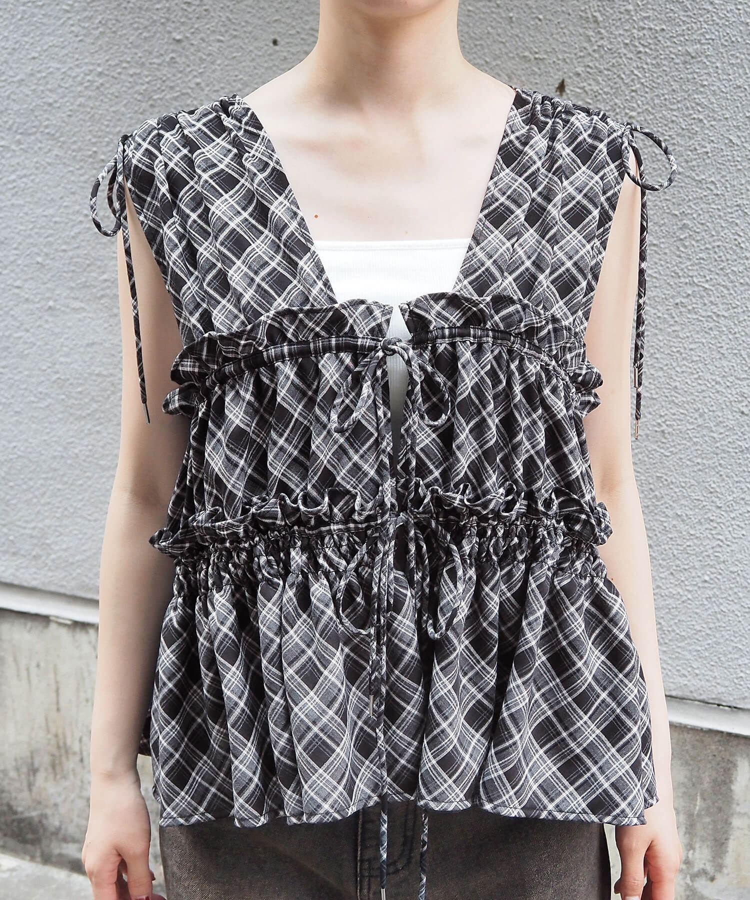 ・たっぷりのギャザーとフリル使いが大人可愛いブラウスです。