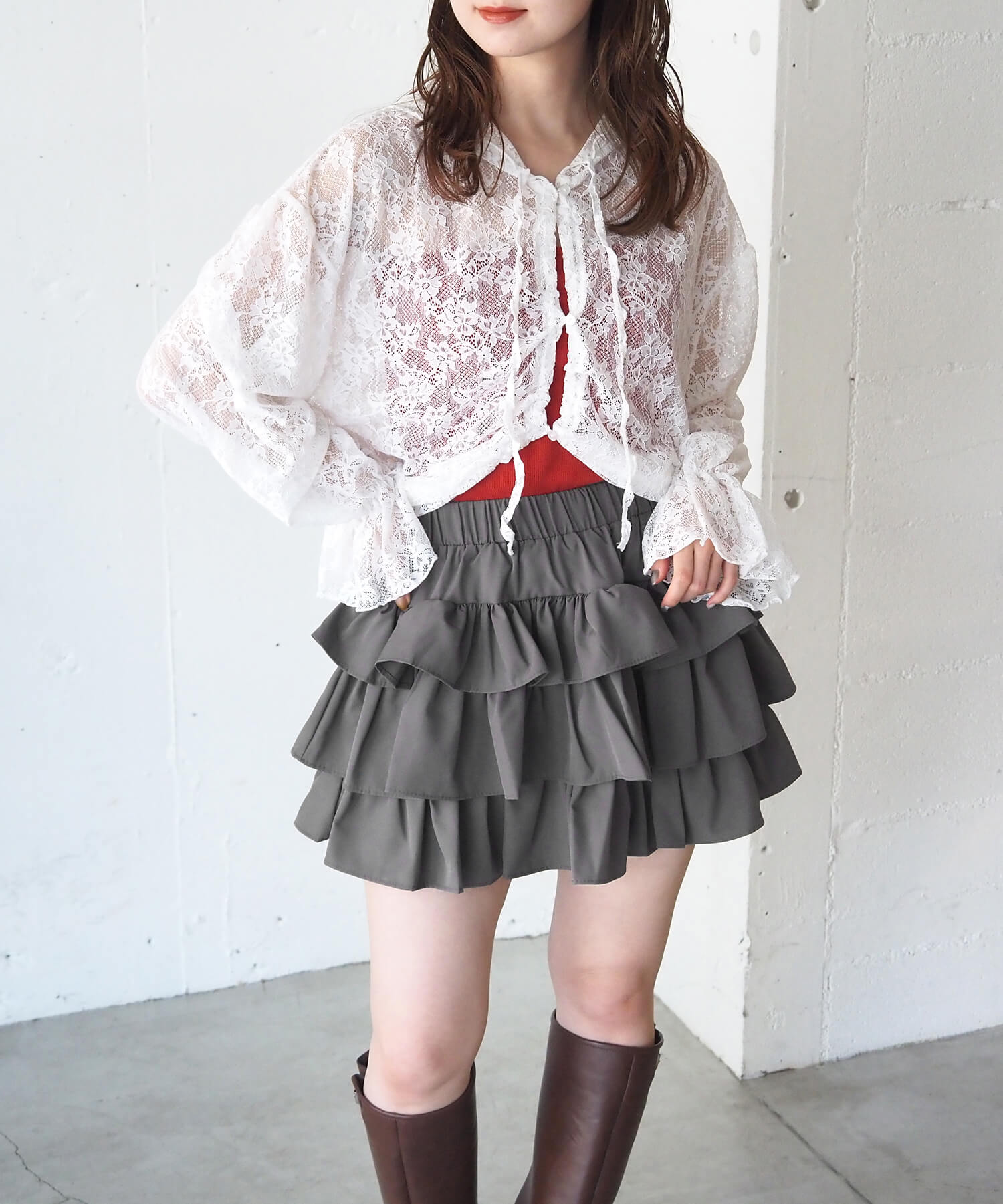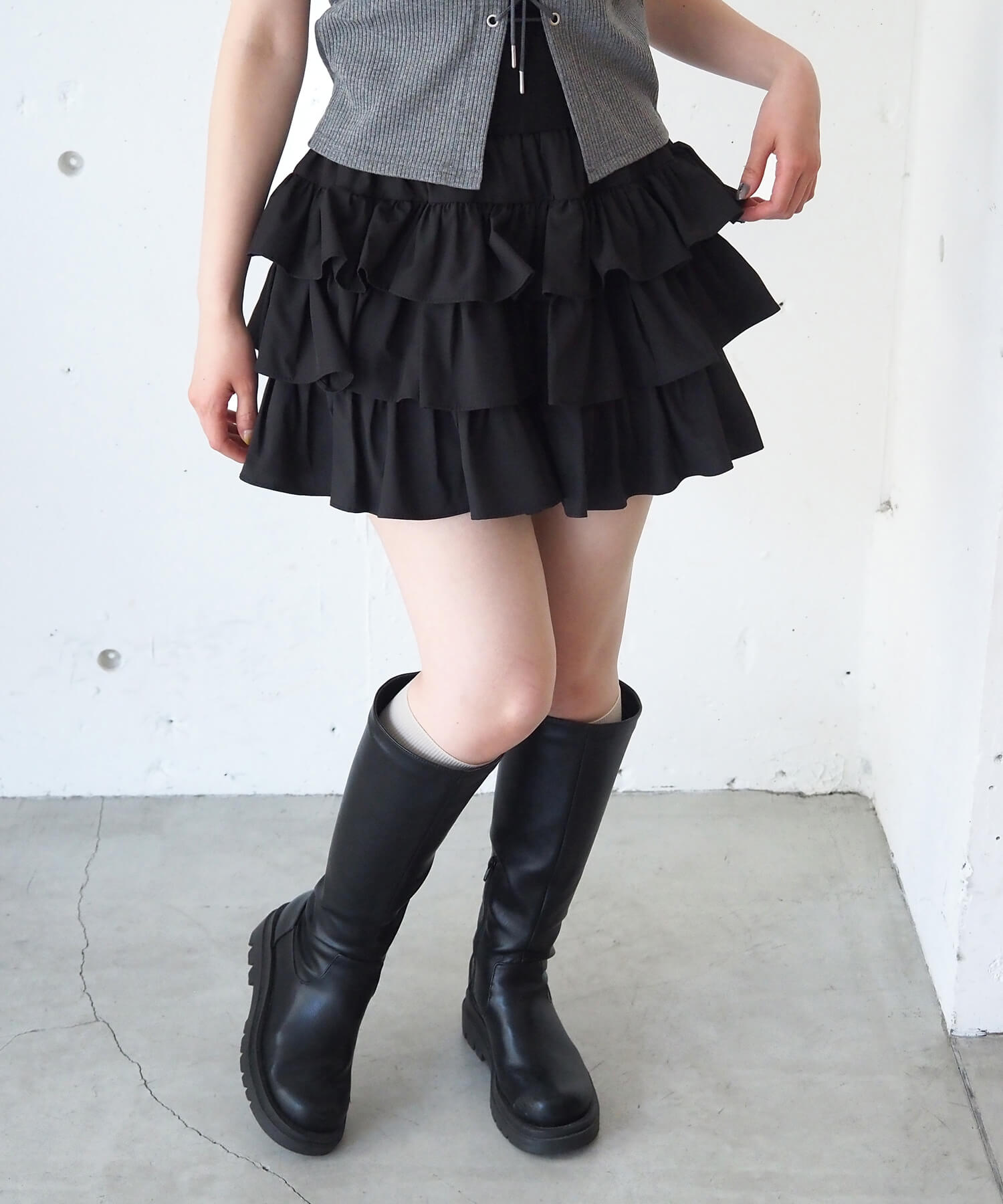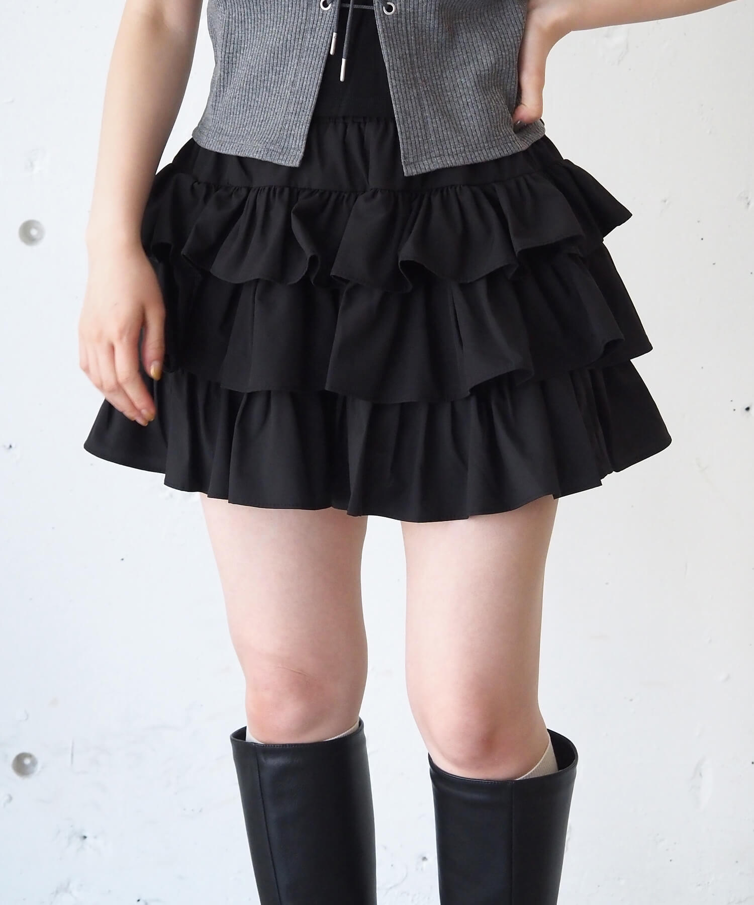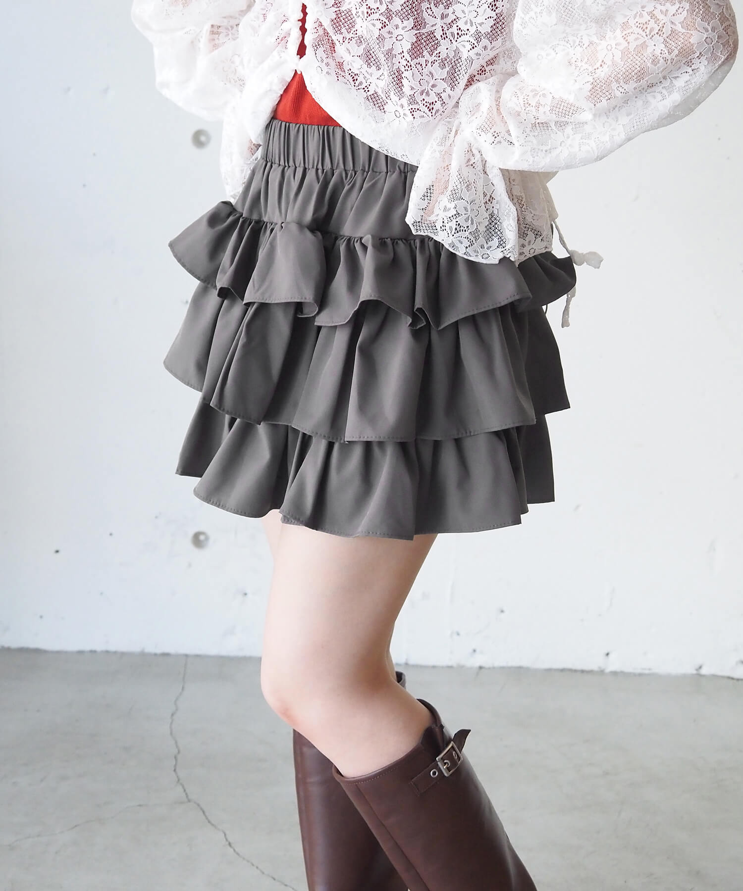 ・ボリュームたっぷりの3段フリルが可愛いミニスカートです。