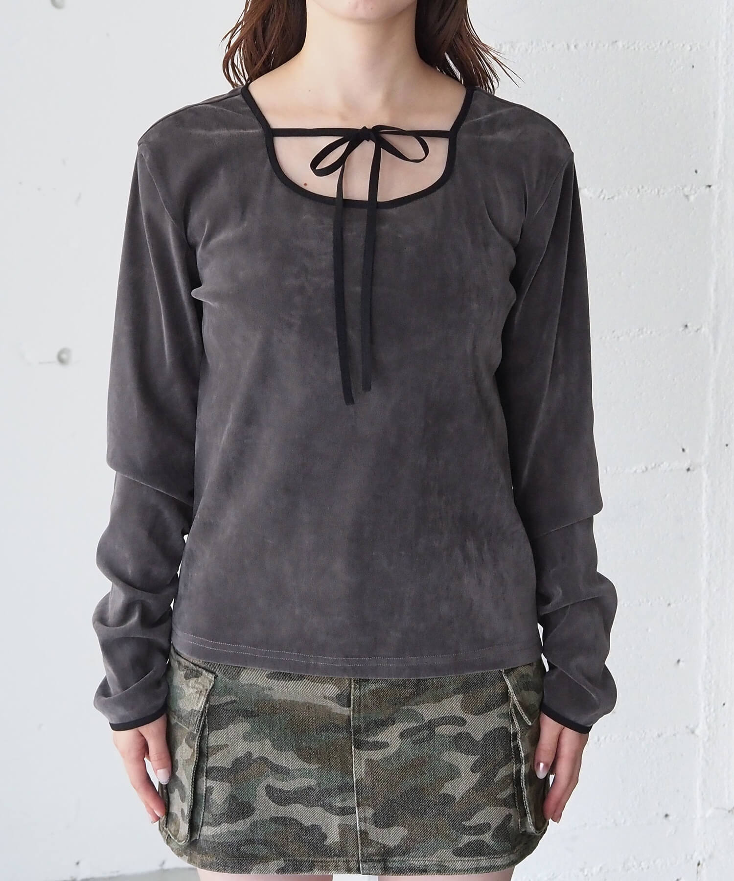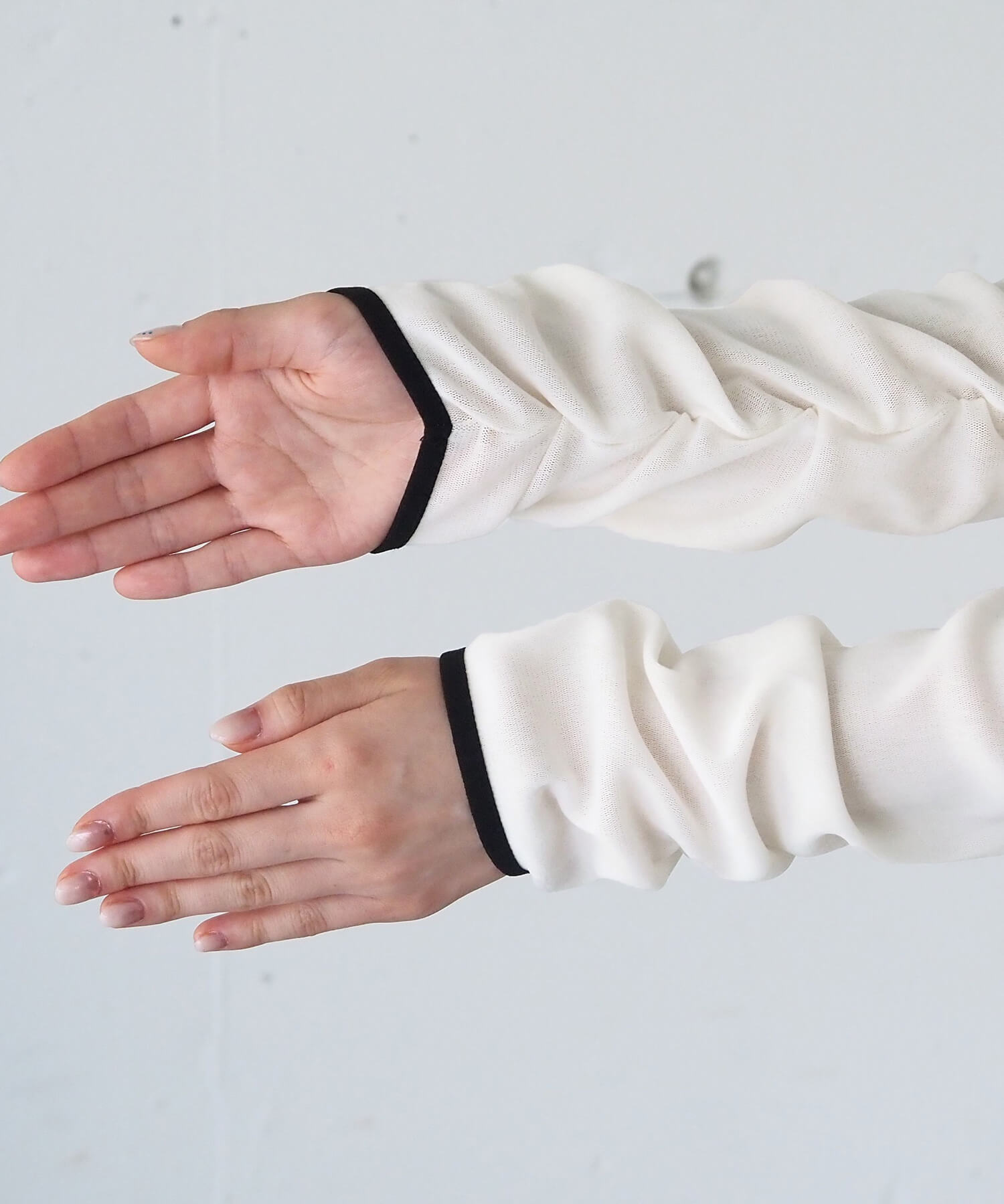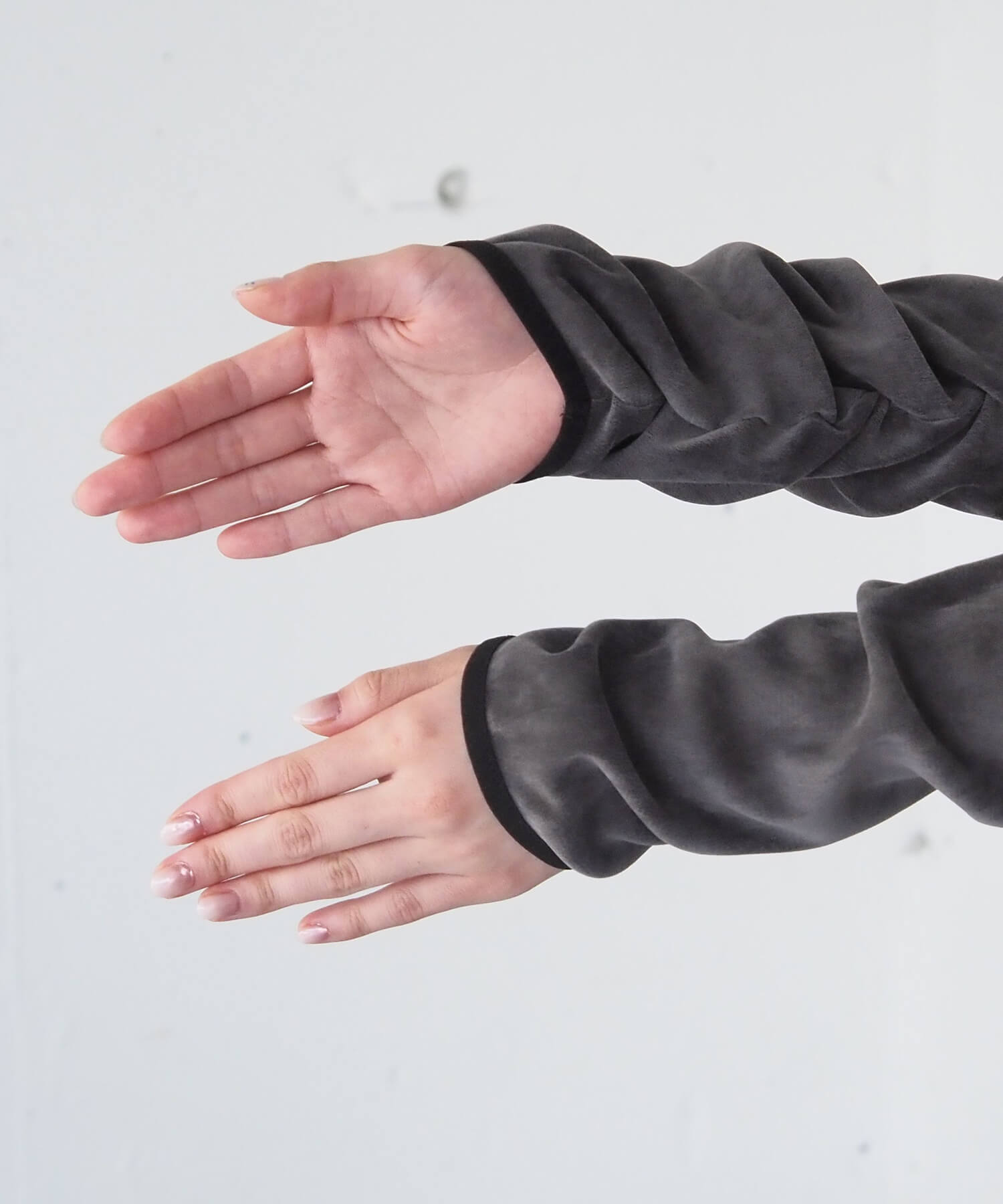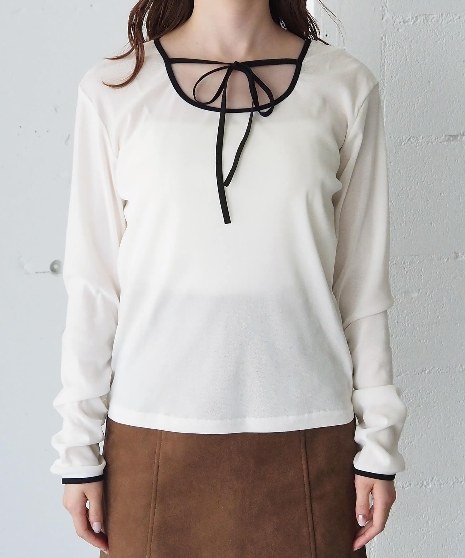 ・袖はひじ下にギャザーを施し、着るだけでクシュっと溜まるこなれ感の出る袖に仕上げました。
