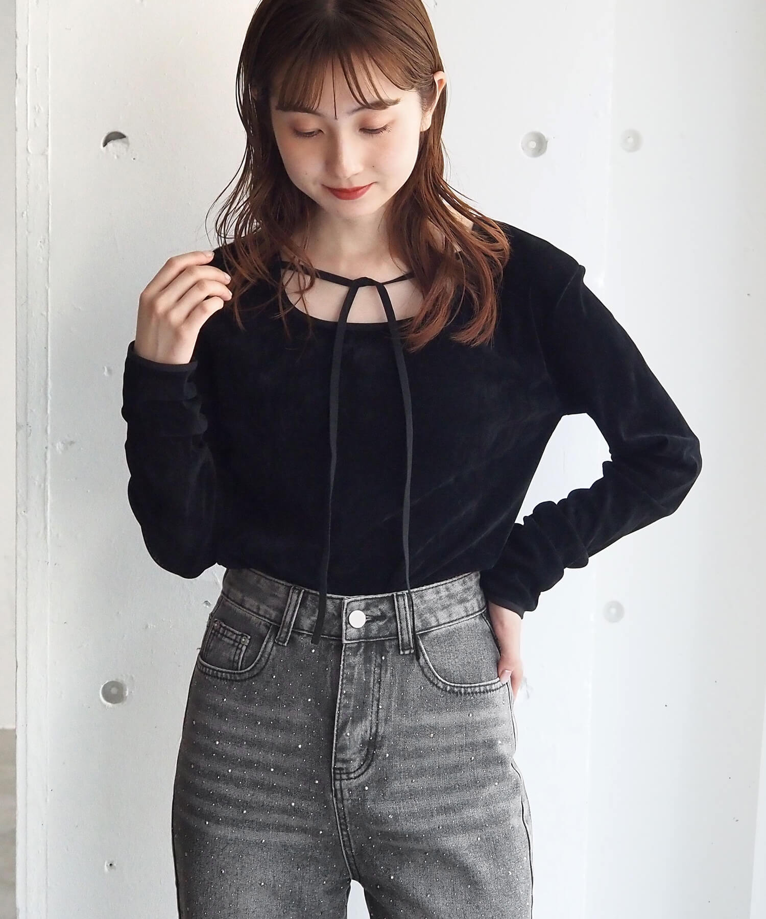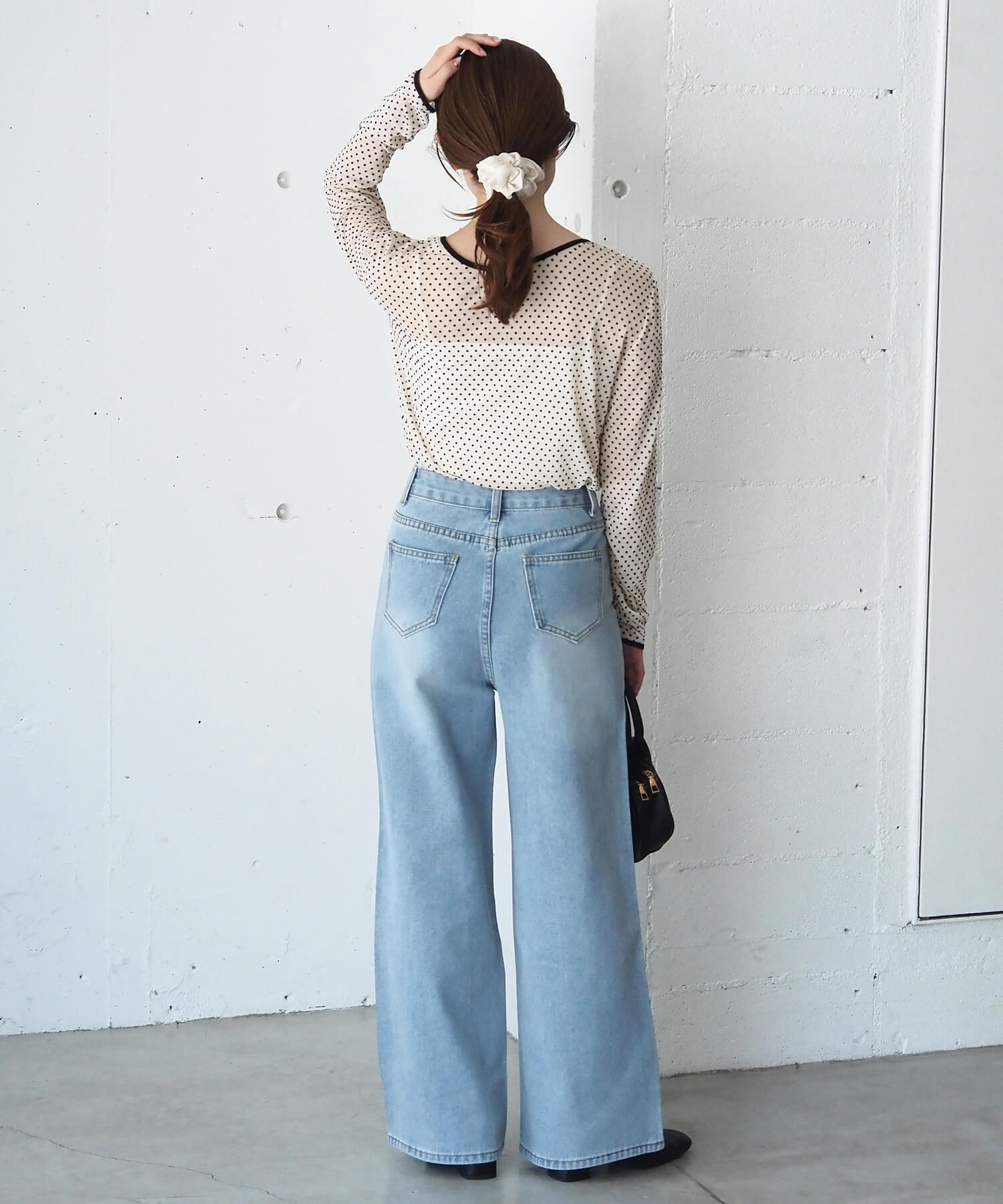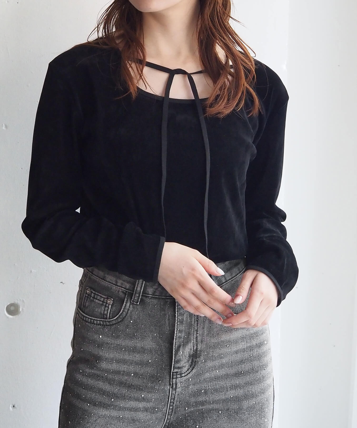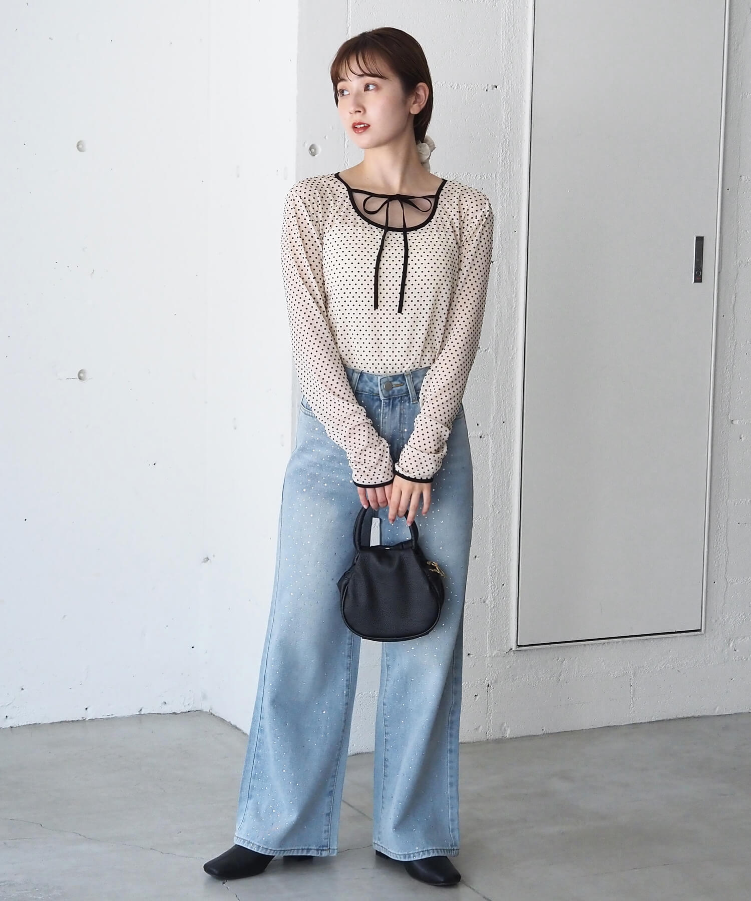・大人可愛いドット柄チュール生地と、上品なベロア調無地の2タイプ。どちらも程よいシアー感で軽さのあるアイテムです。