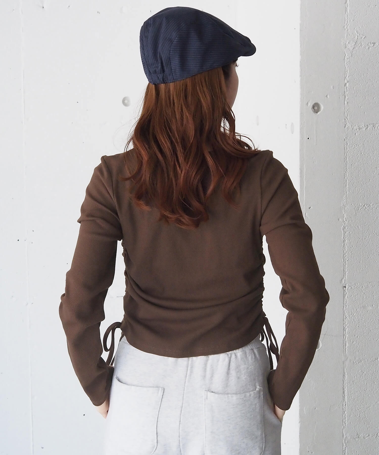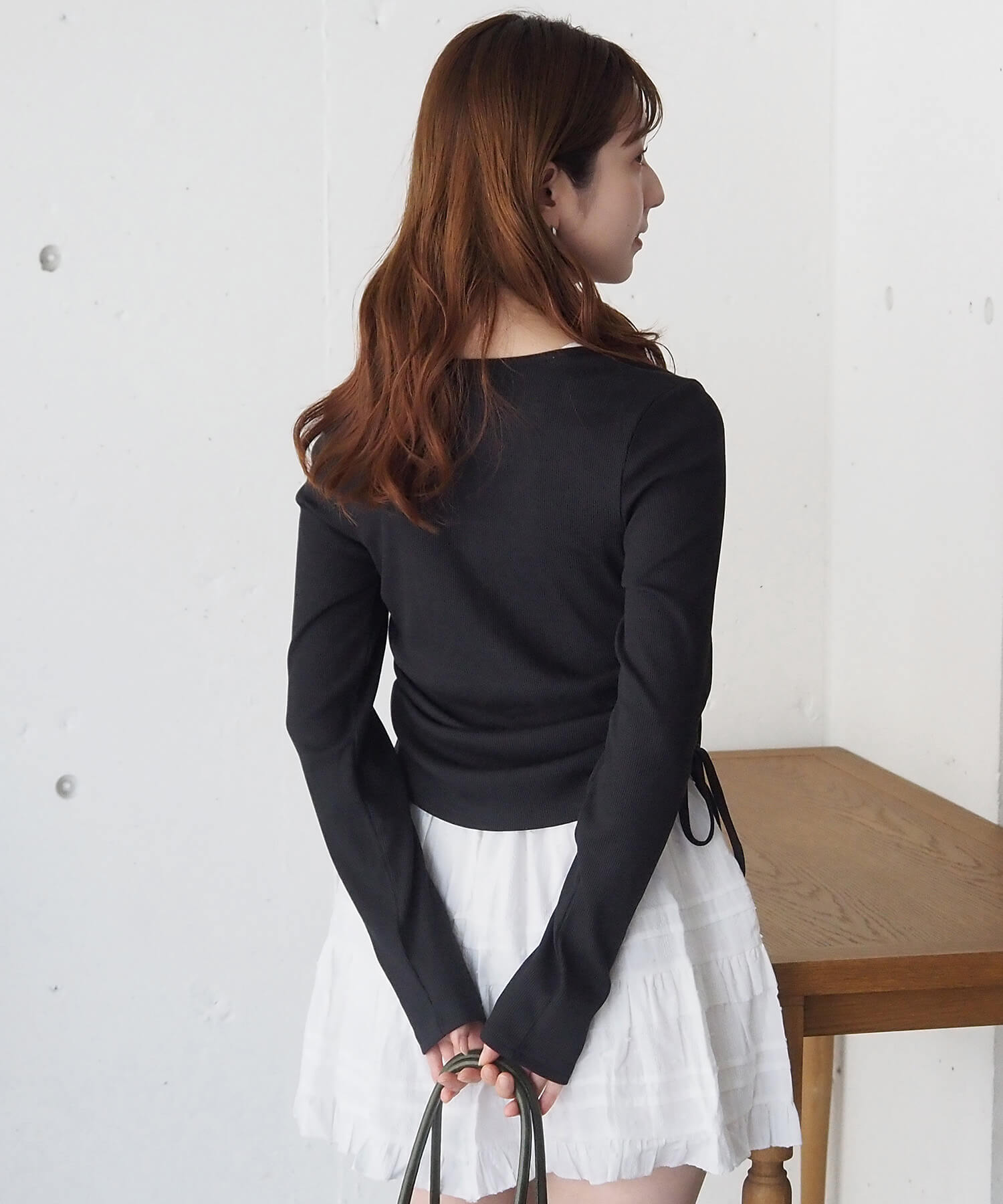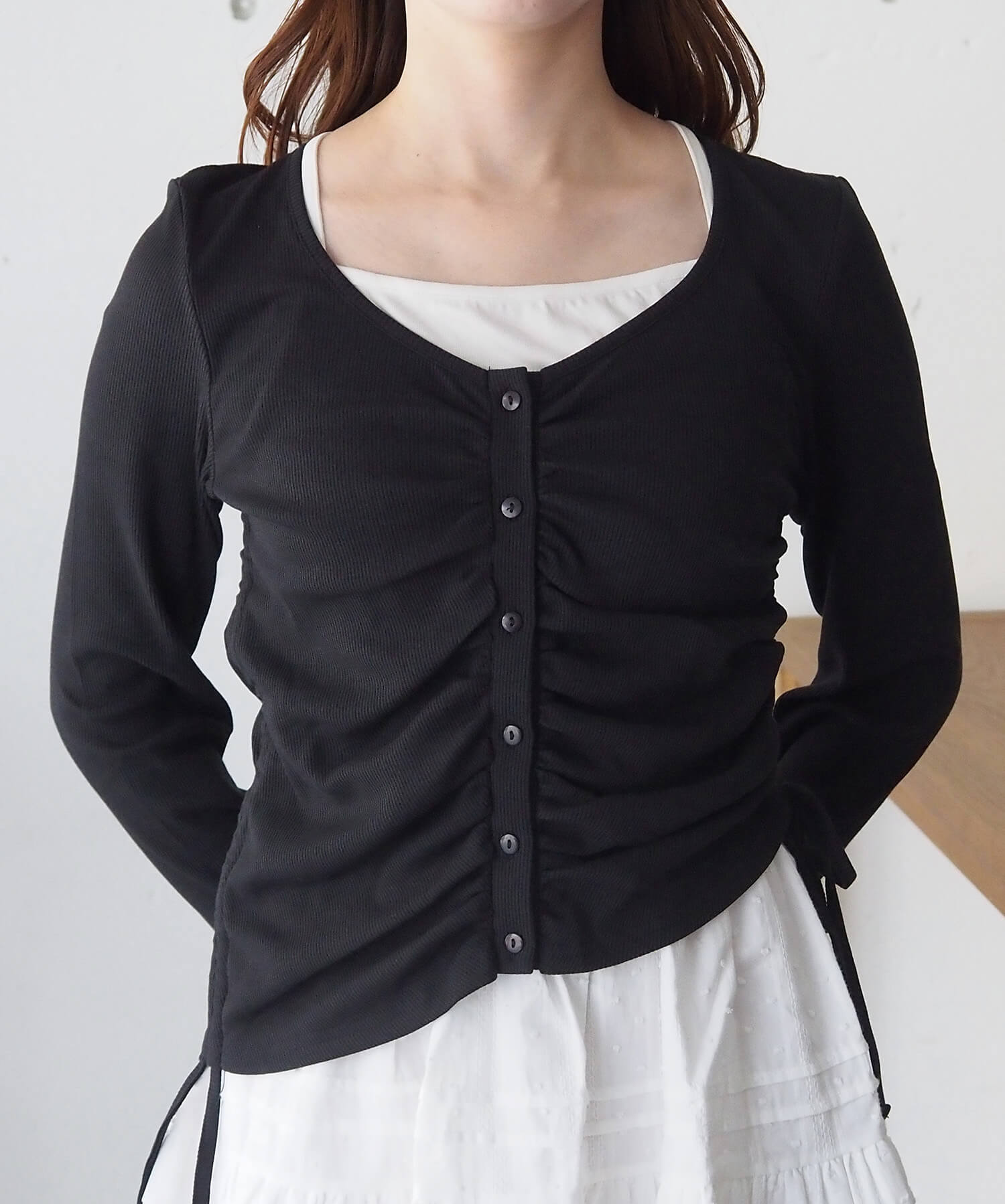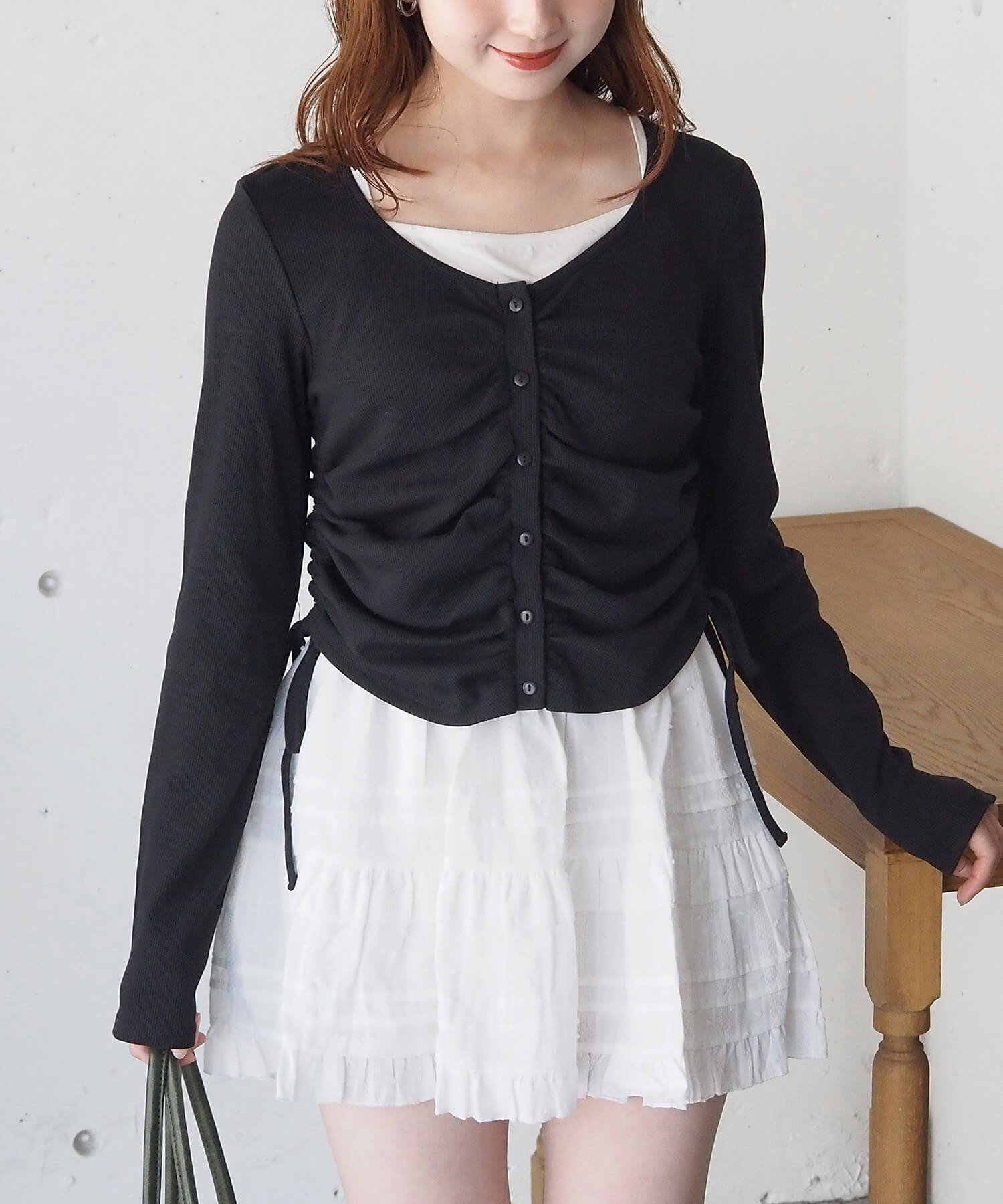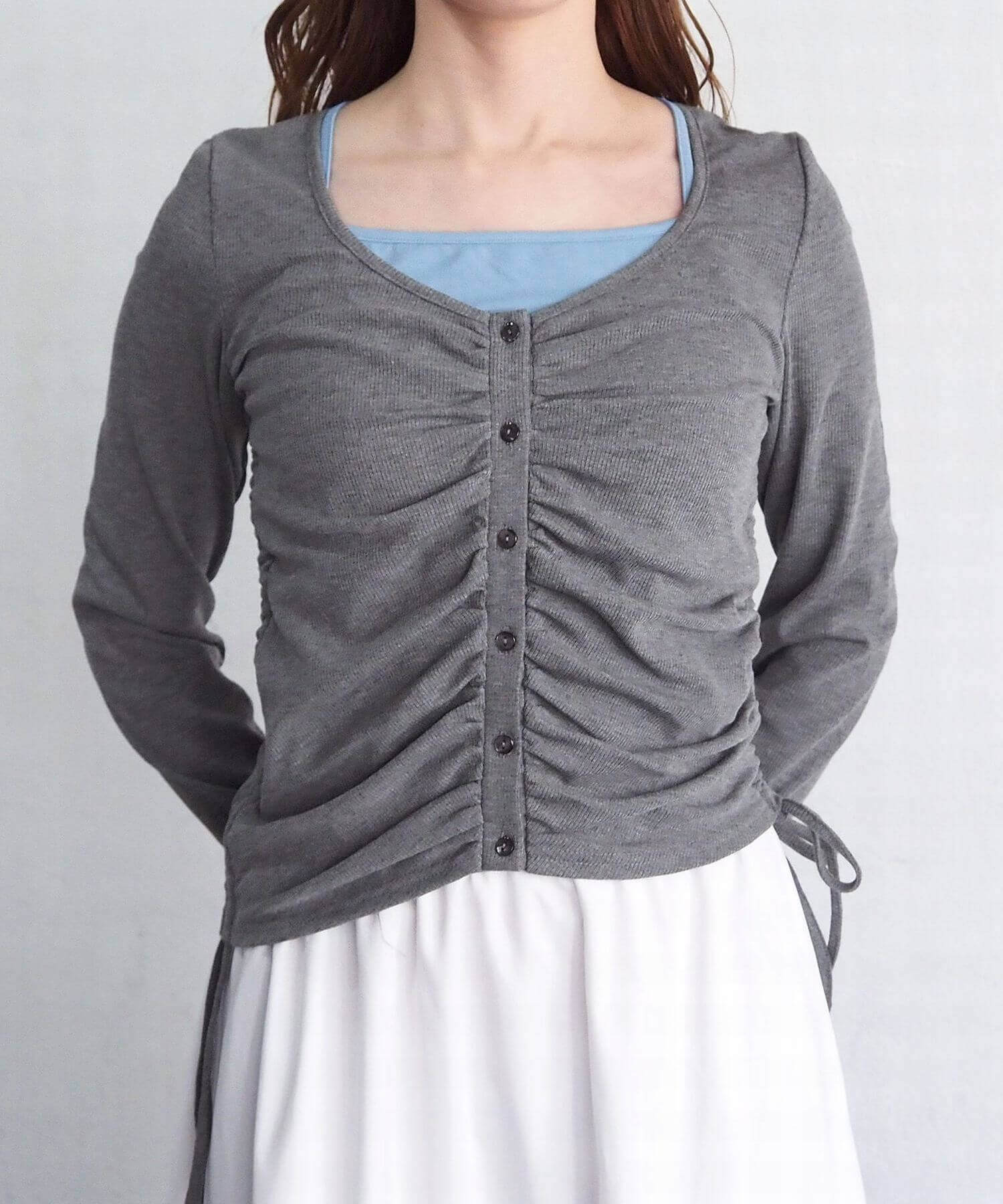 ・サイドのドロストとフロントのギャザーでトレンド感と着痩せ効果も抜かりなく◎