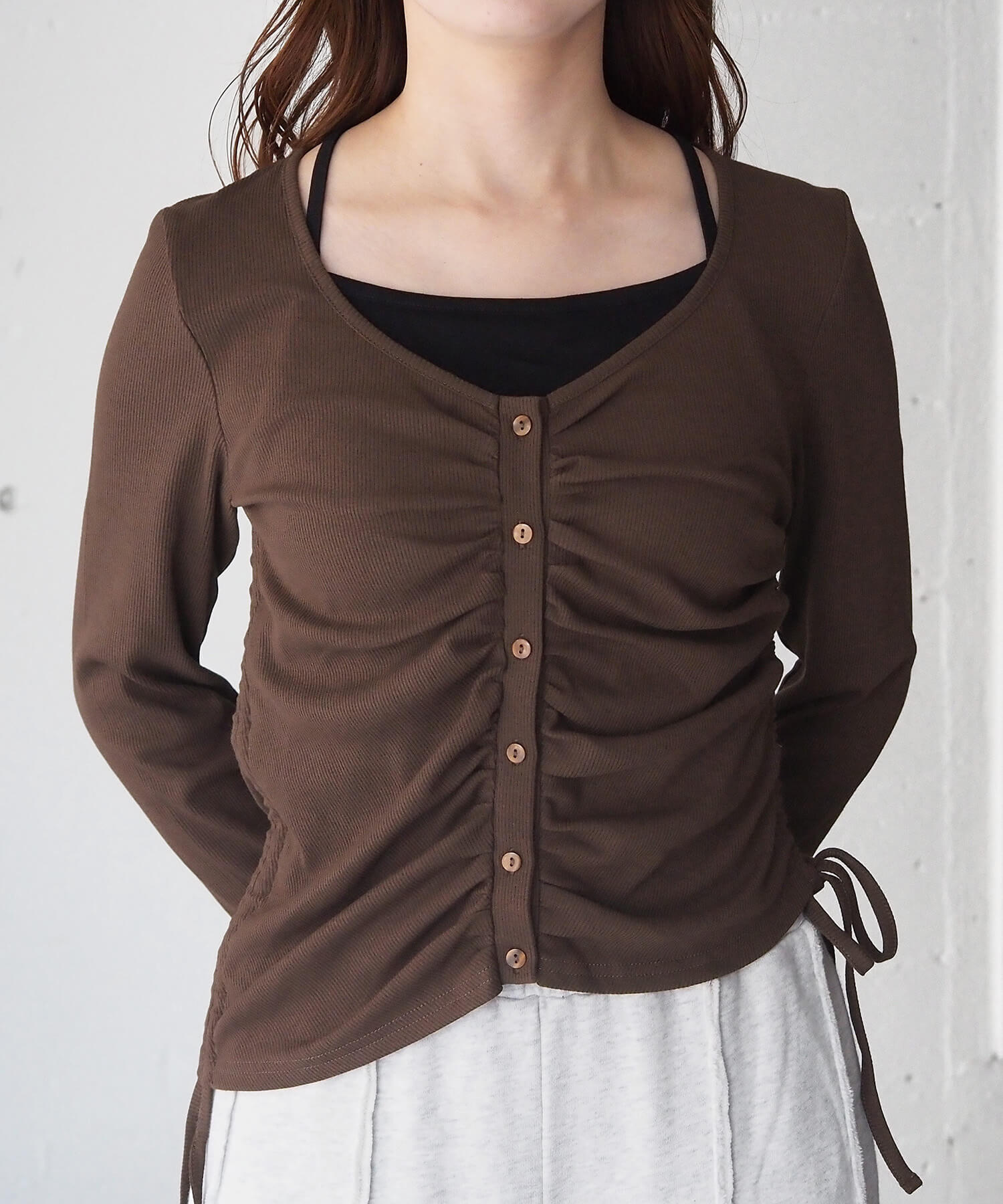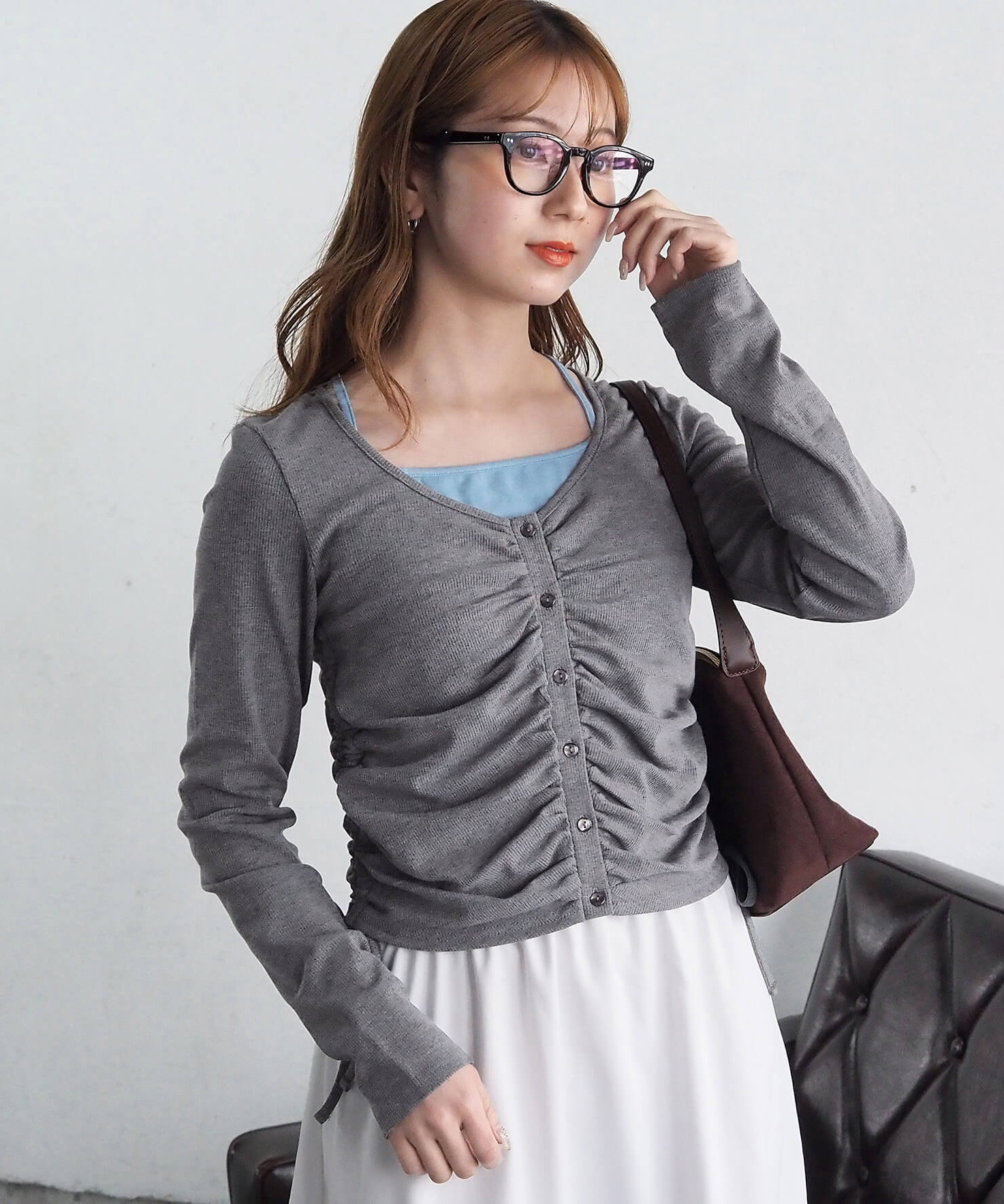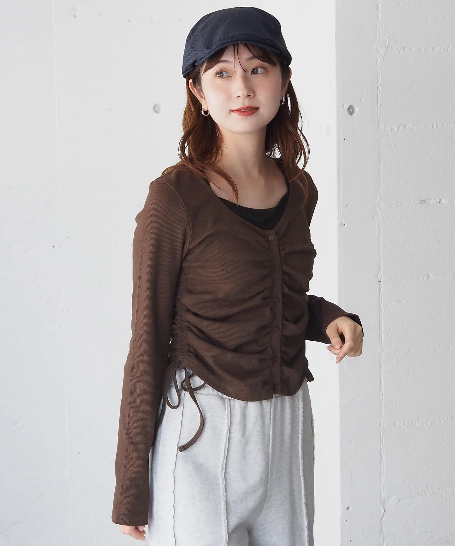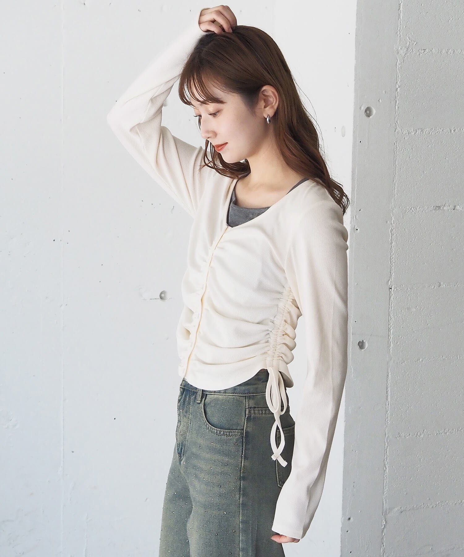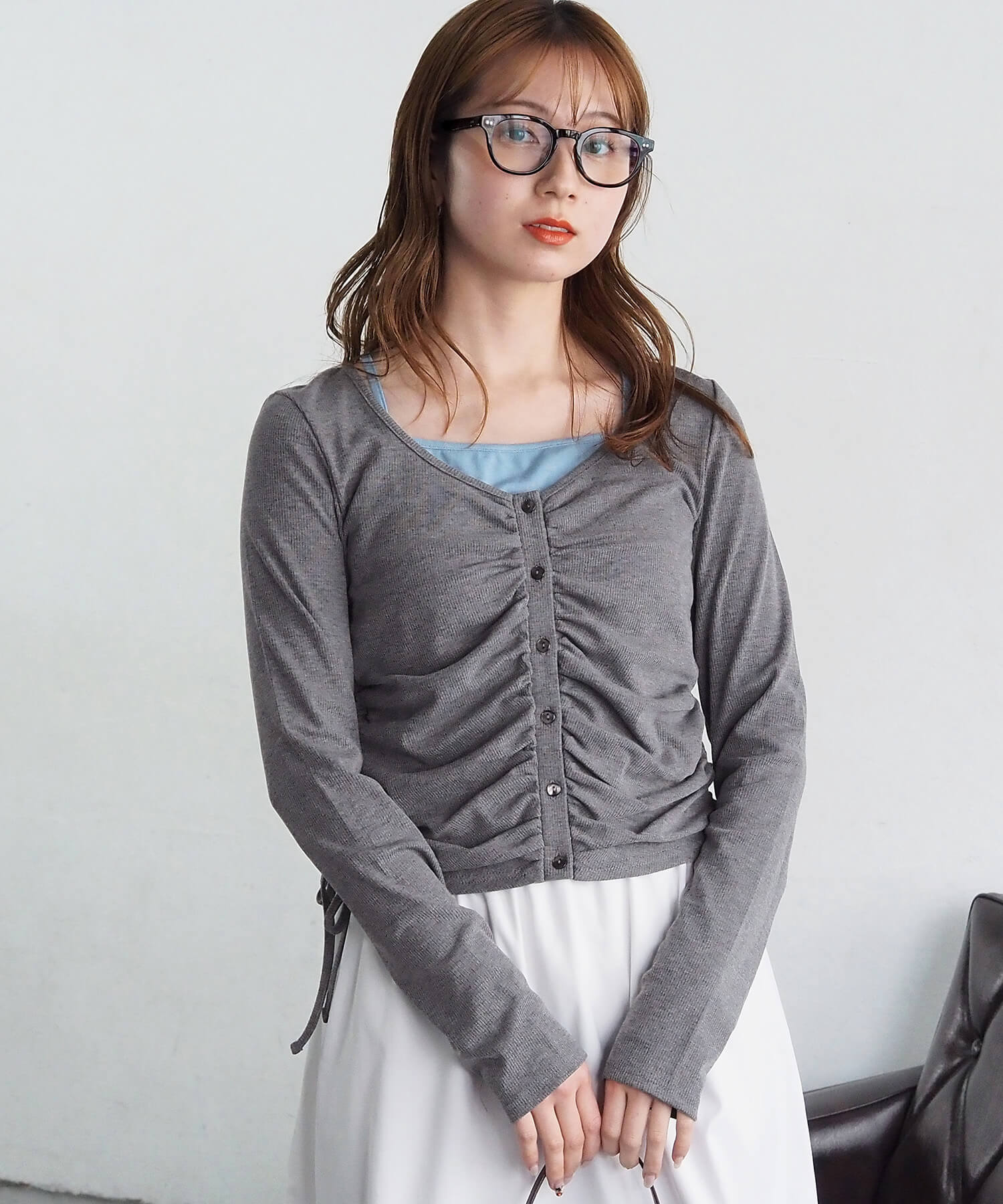 ・サイドのドロストとフロントのギャザーでトレンド感と着痩せ効果も抜かりなく◎