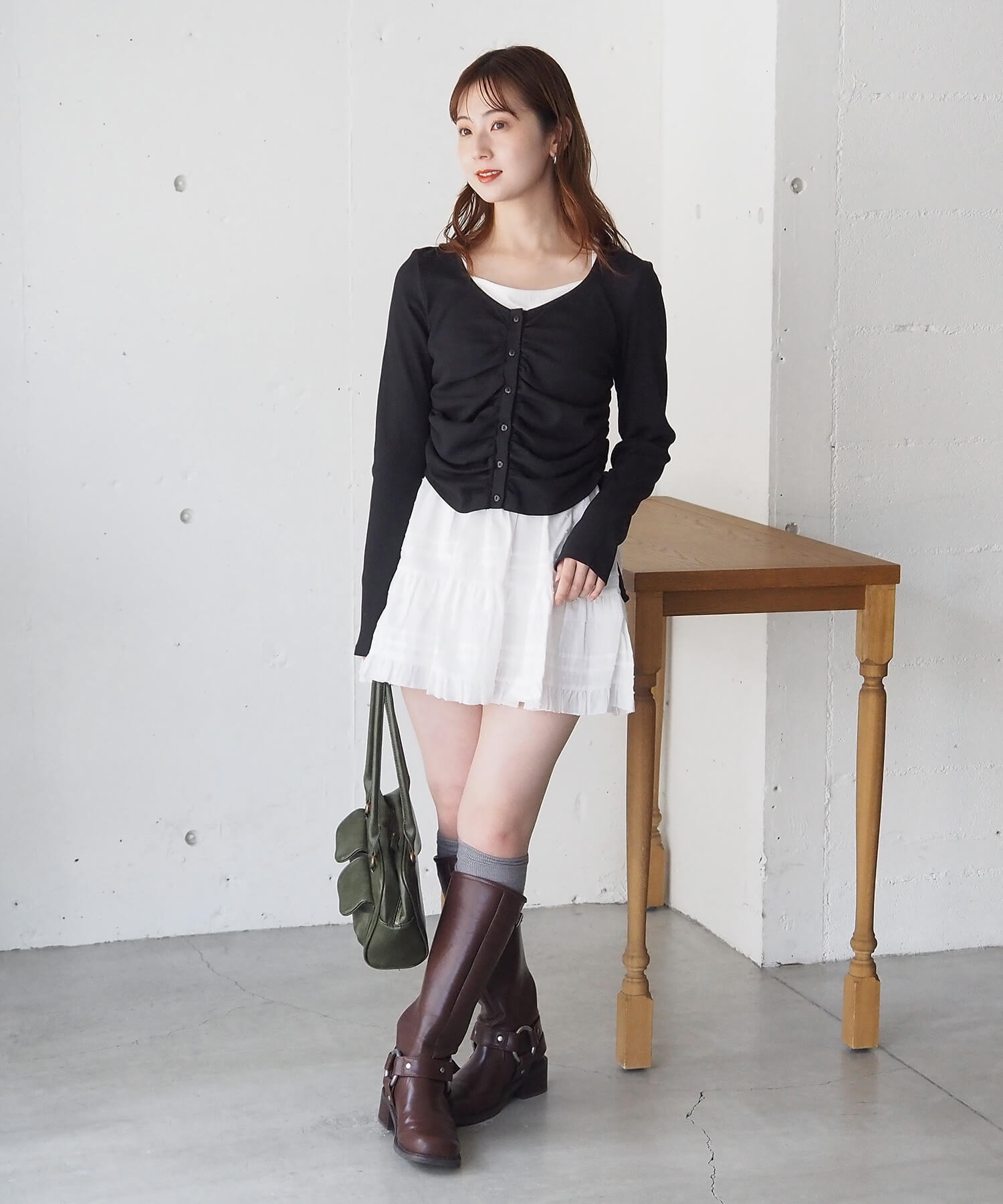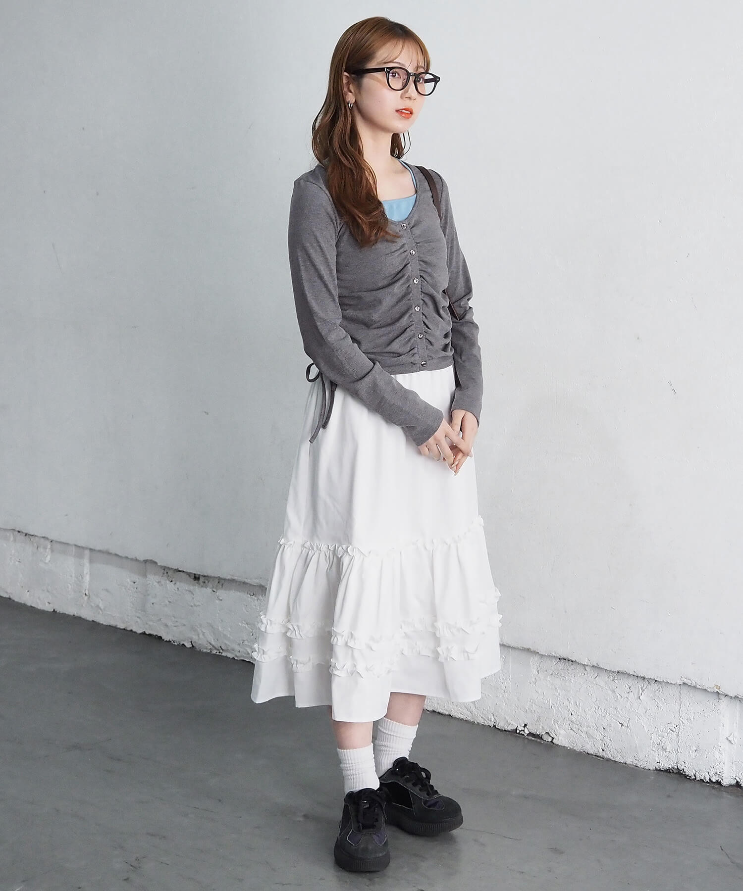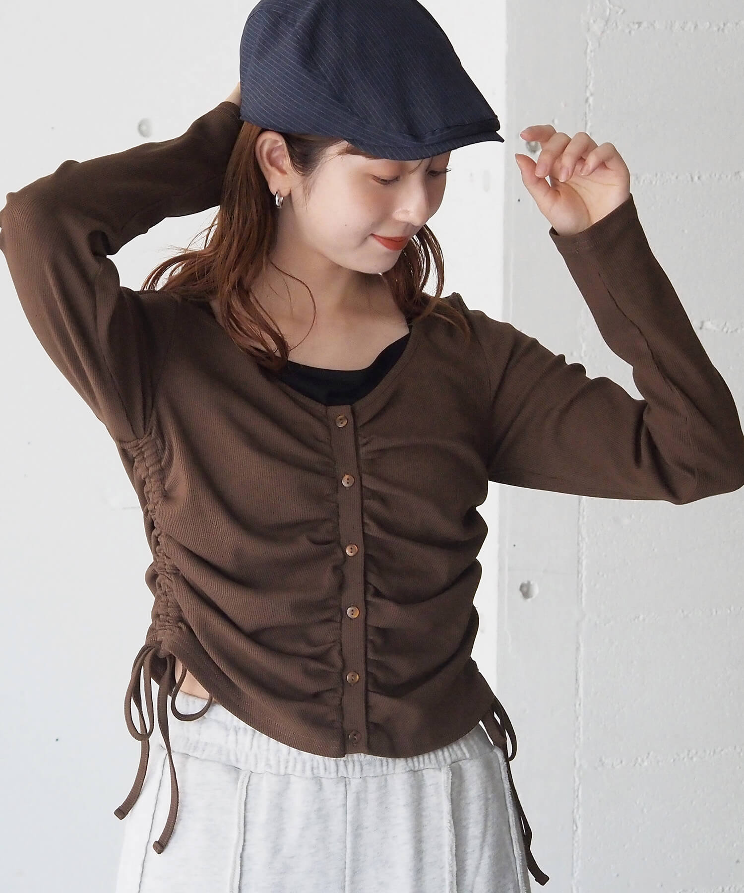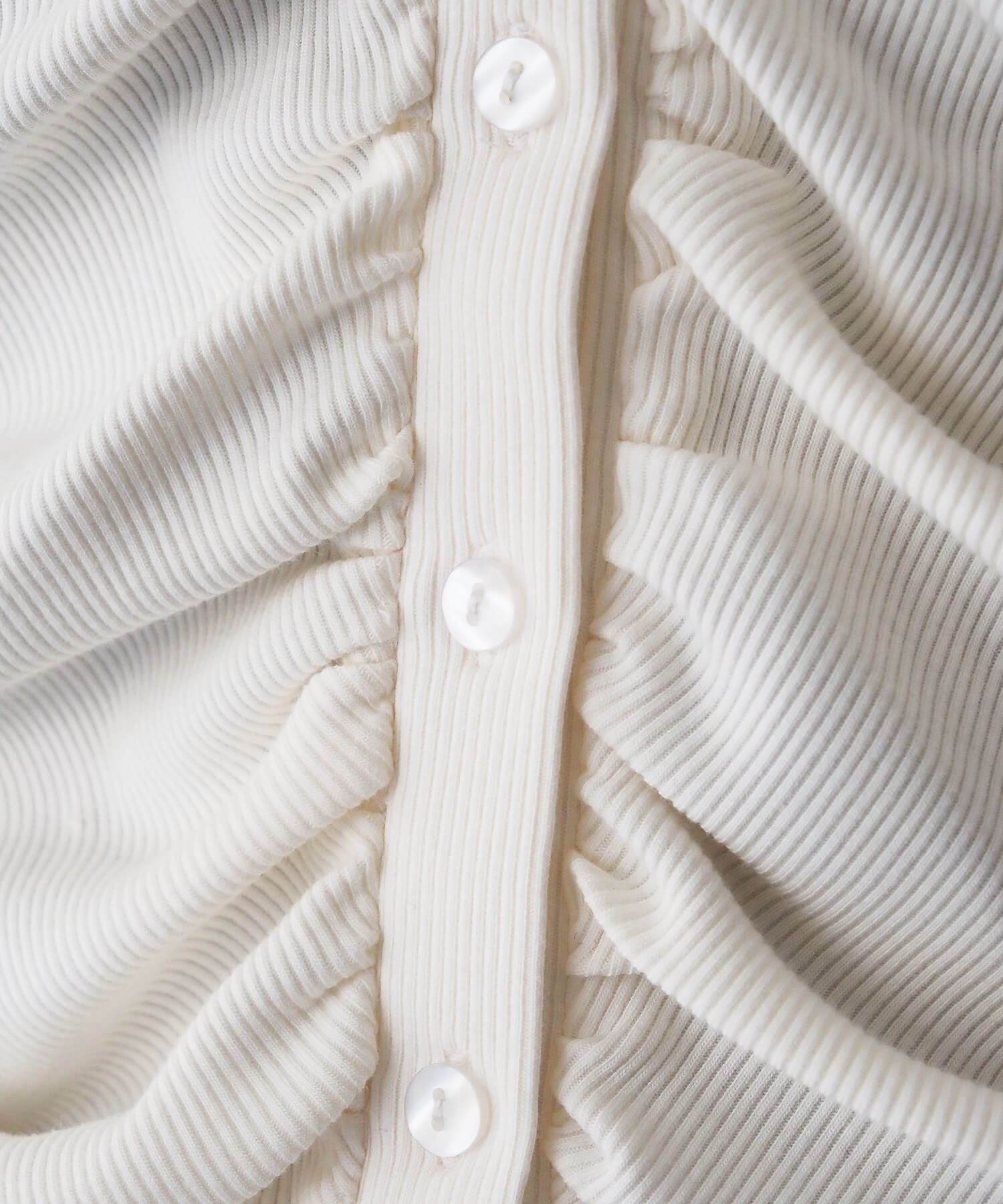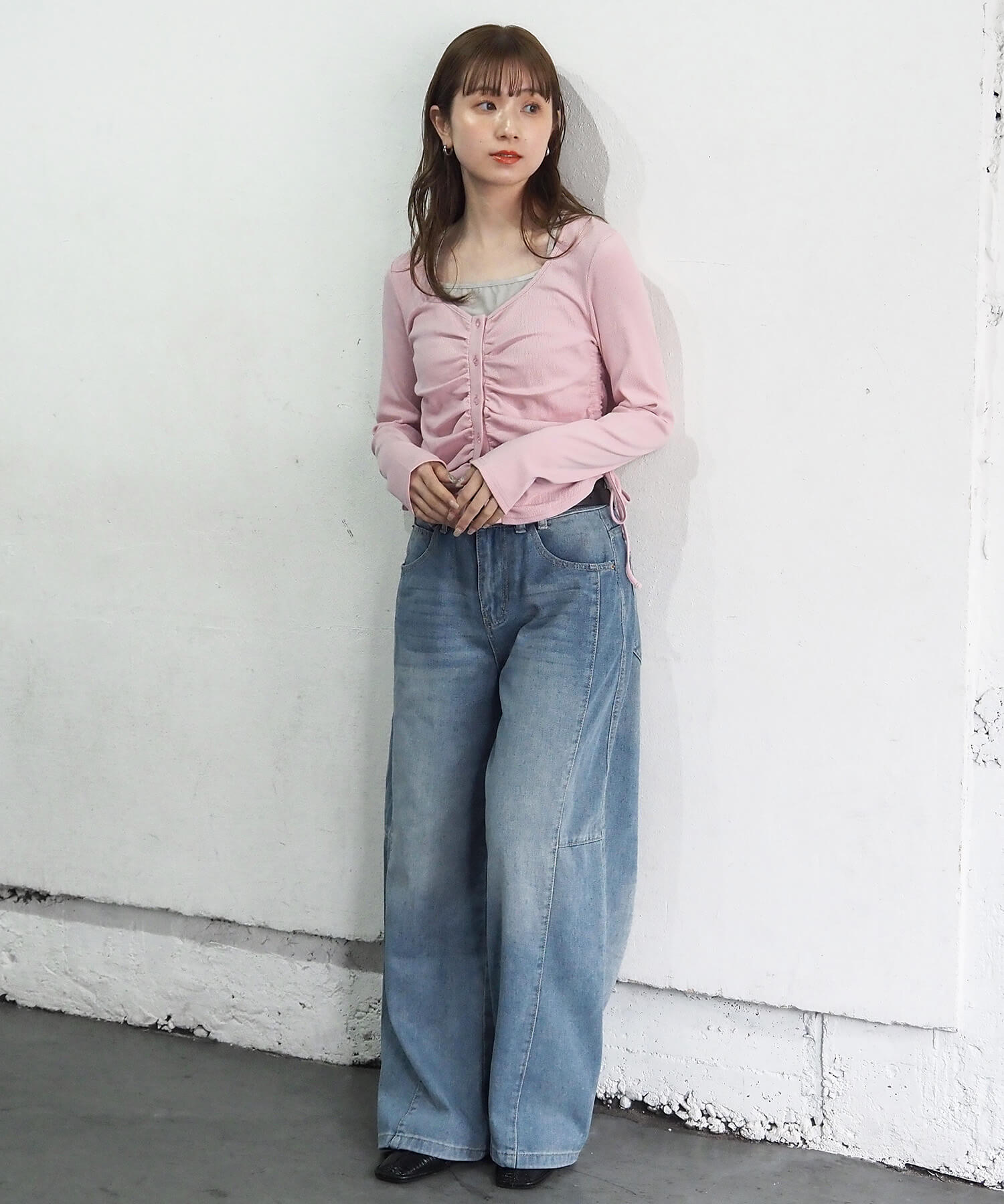 ・サイドのドロストとフロントのギャザーでトレンド感と着痩せ効果も抜かりなく◎
