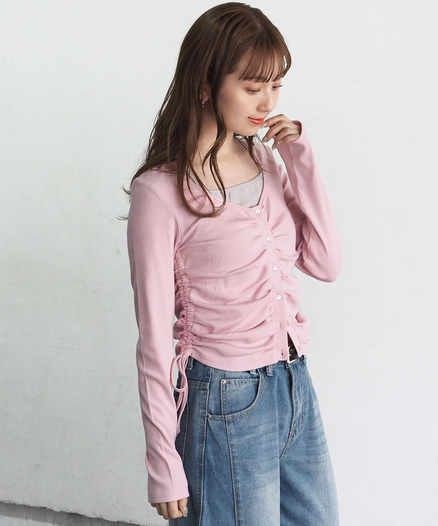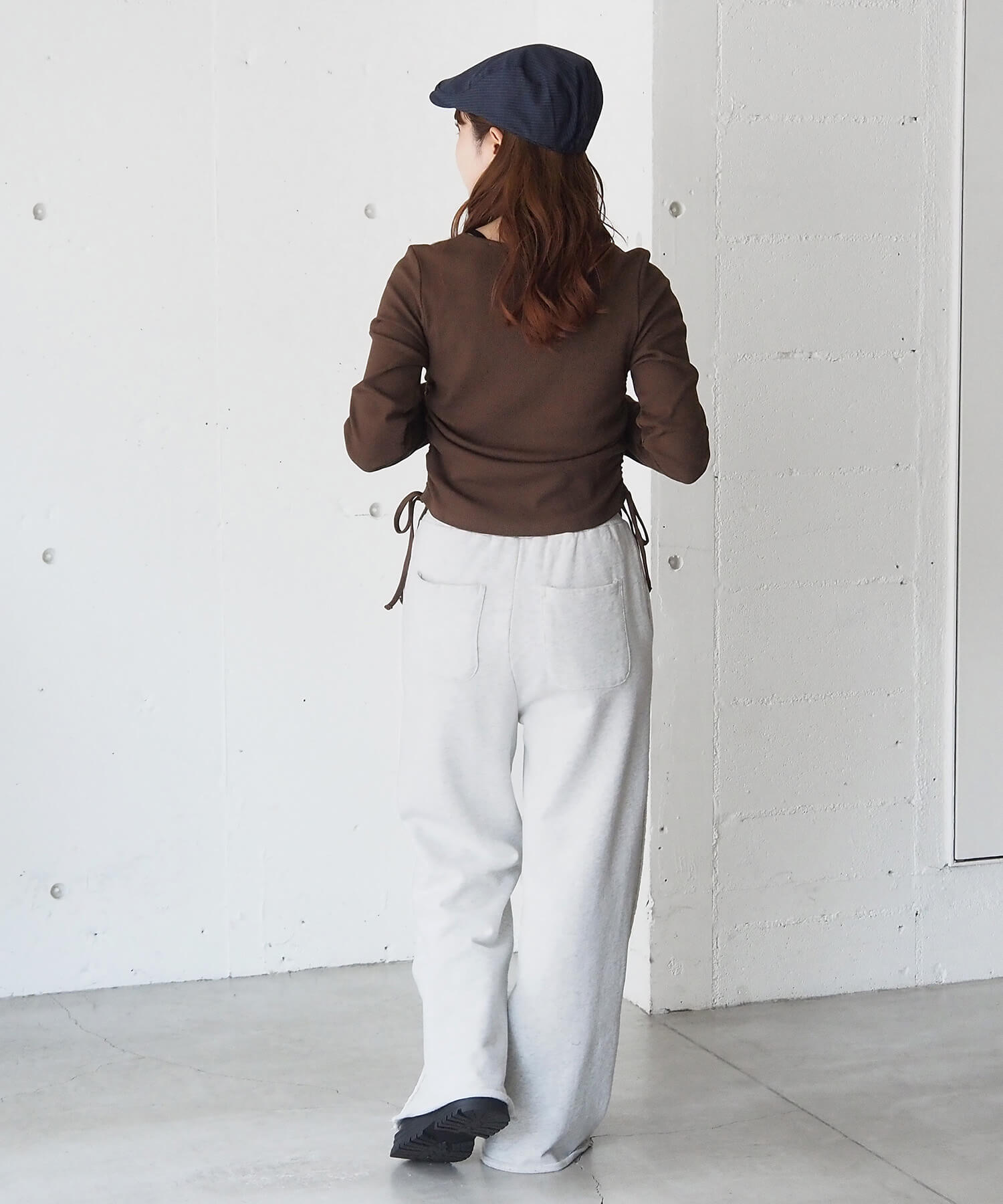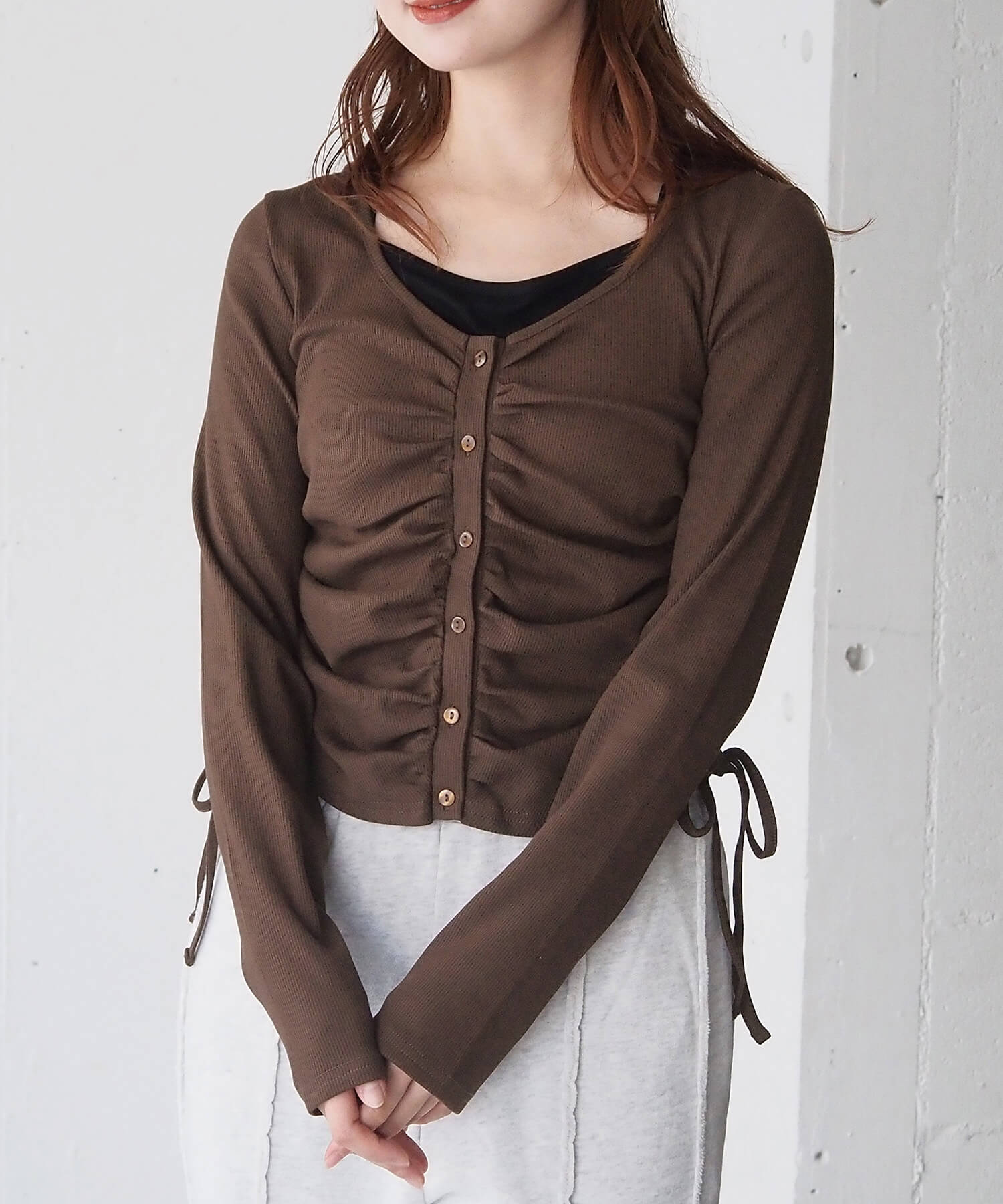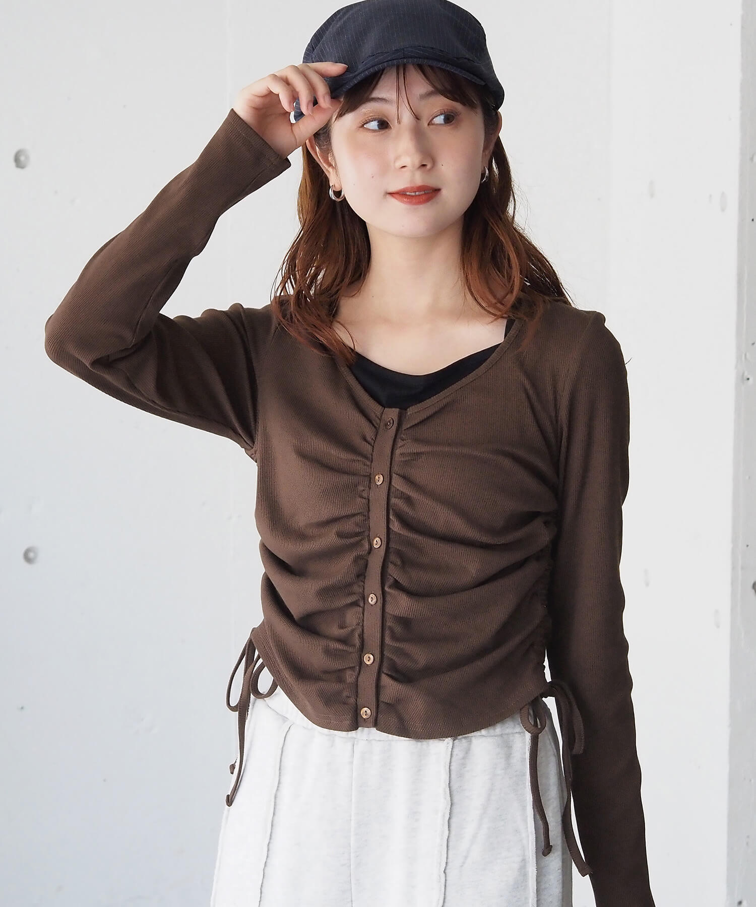 ・サイドのドロストとフロントのギャザーでトレンド感と着痩せ効果も抜かりなく◎