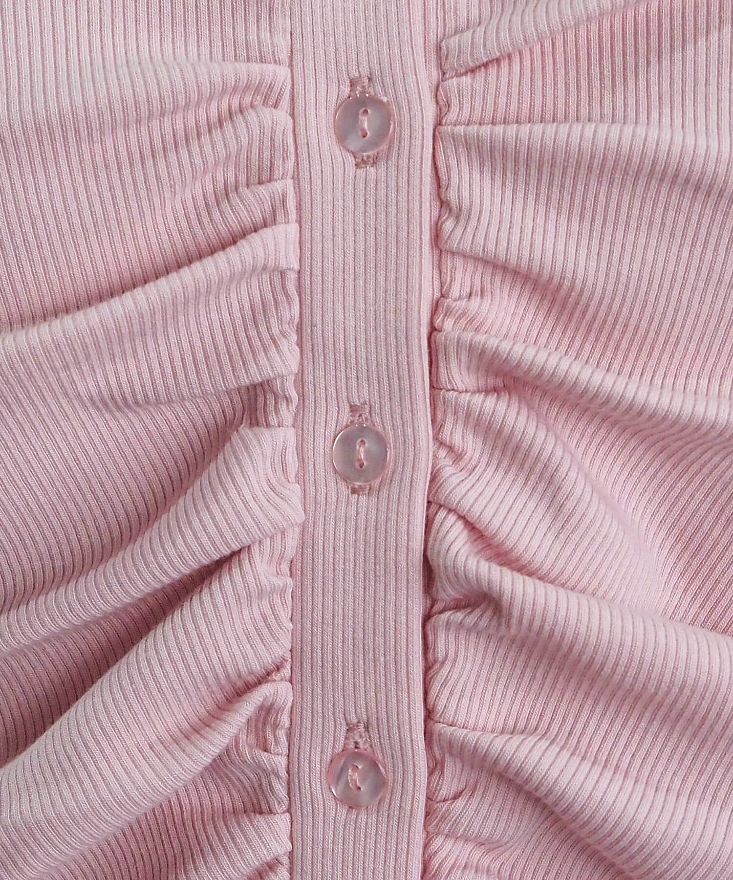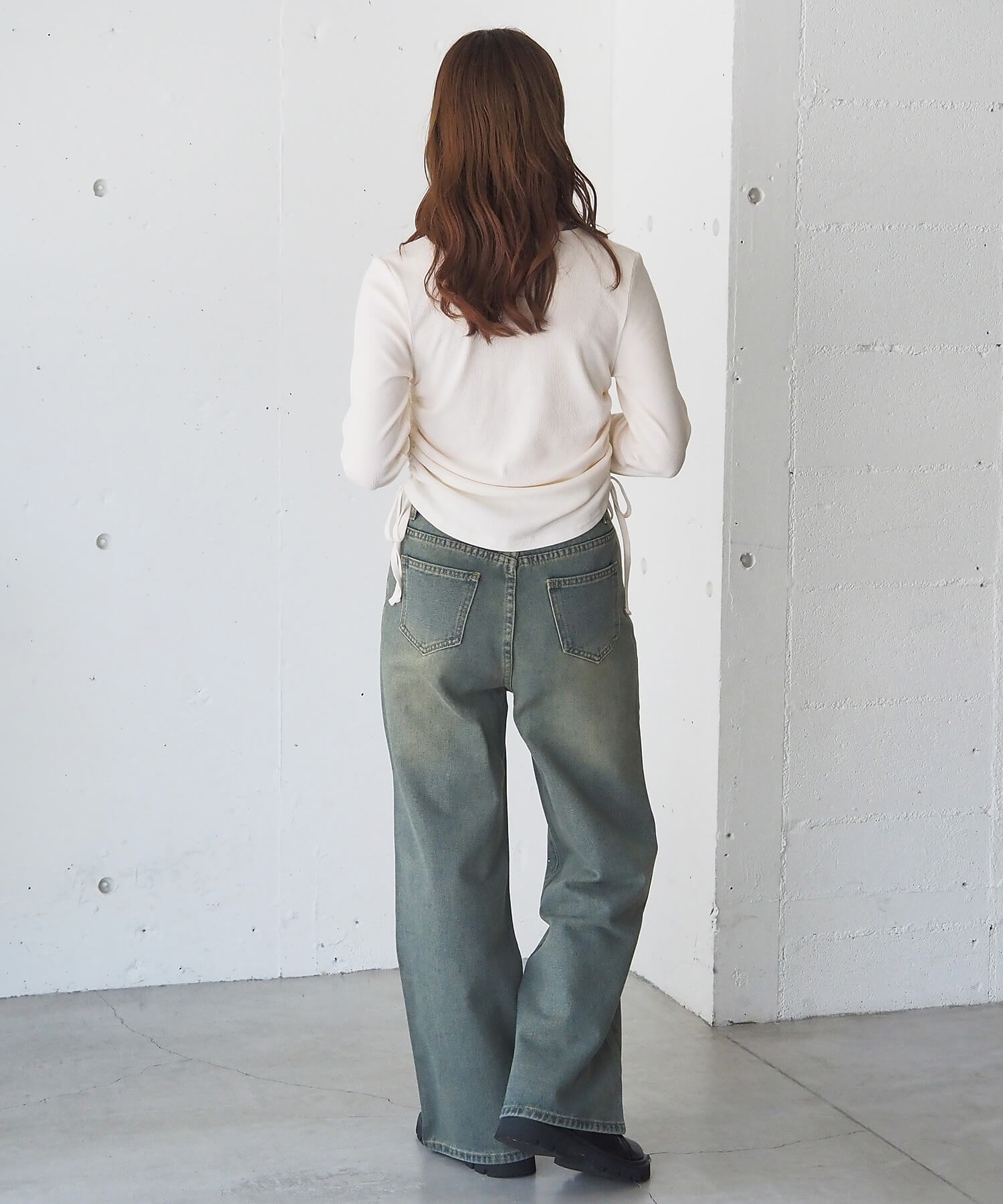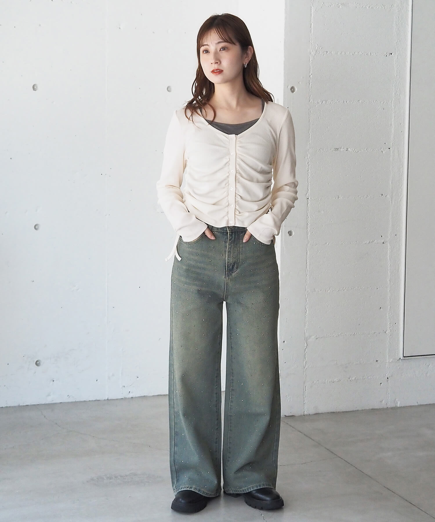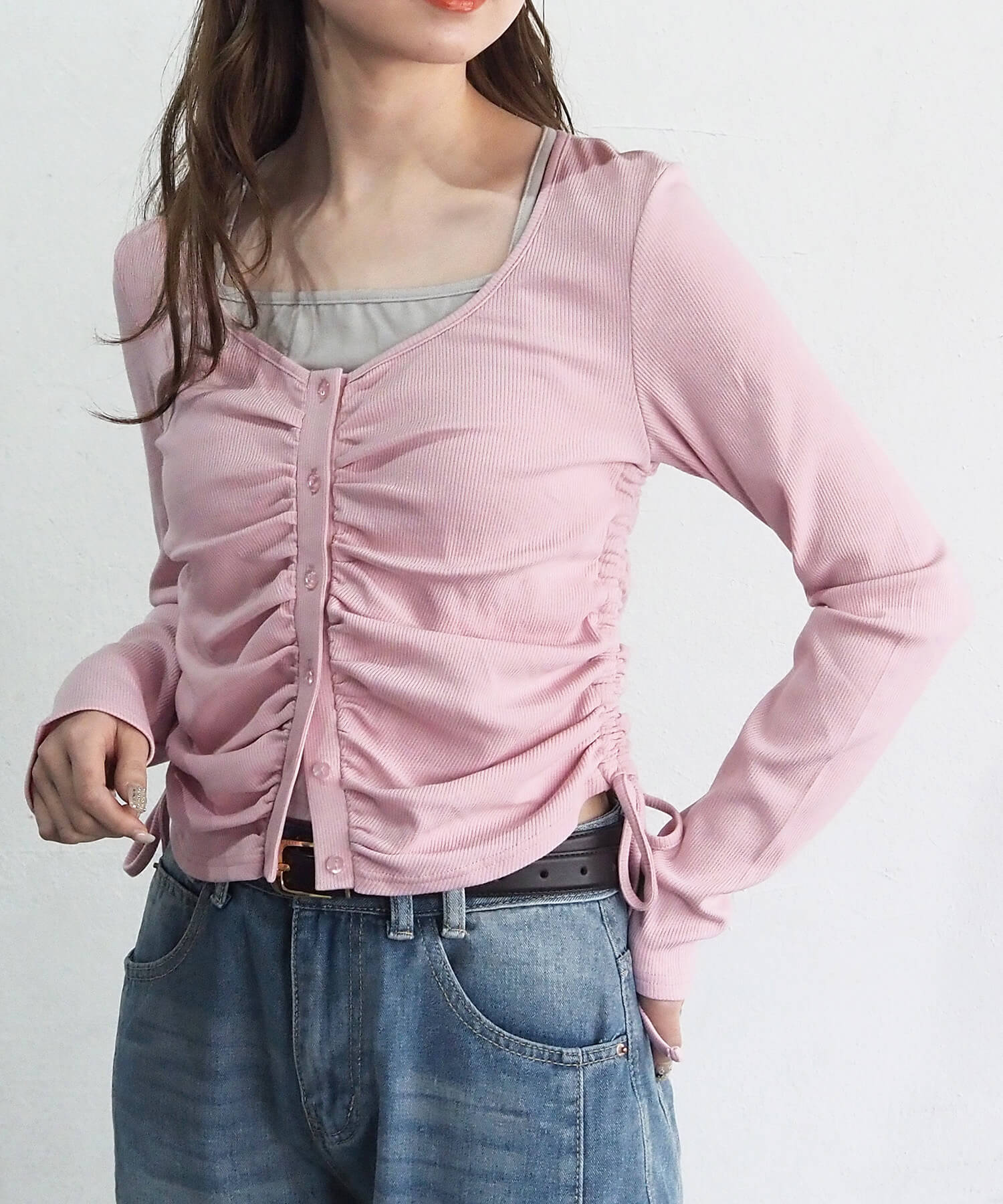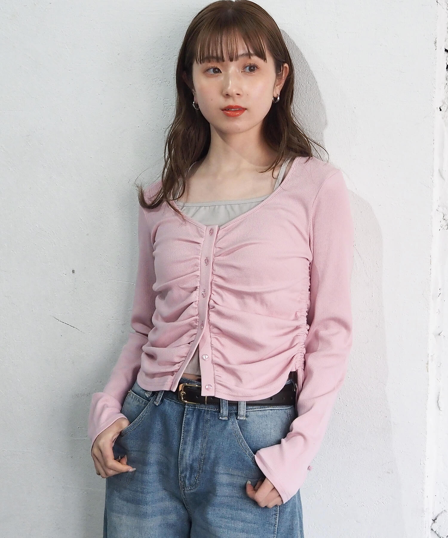 ・サイドのドロストとフロントのギャザーでトレンド感と着痩せ効果も抜かりなく◎